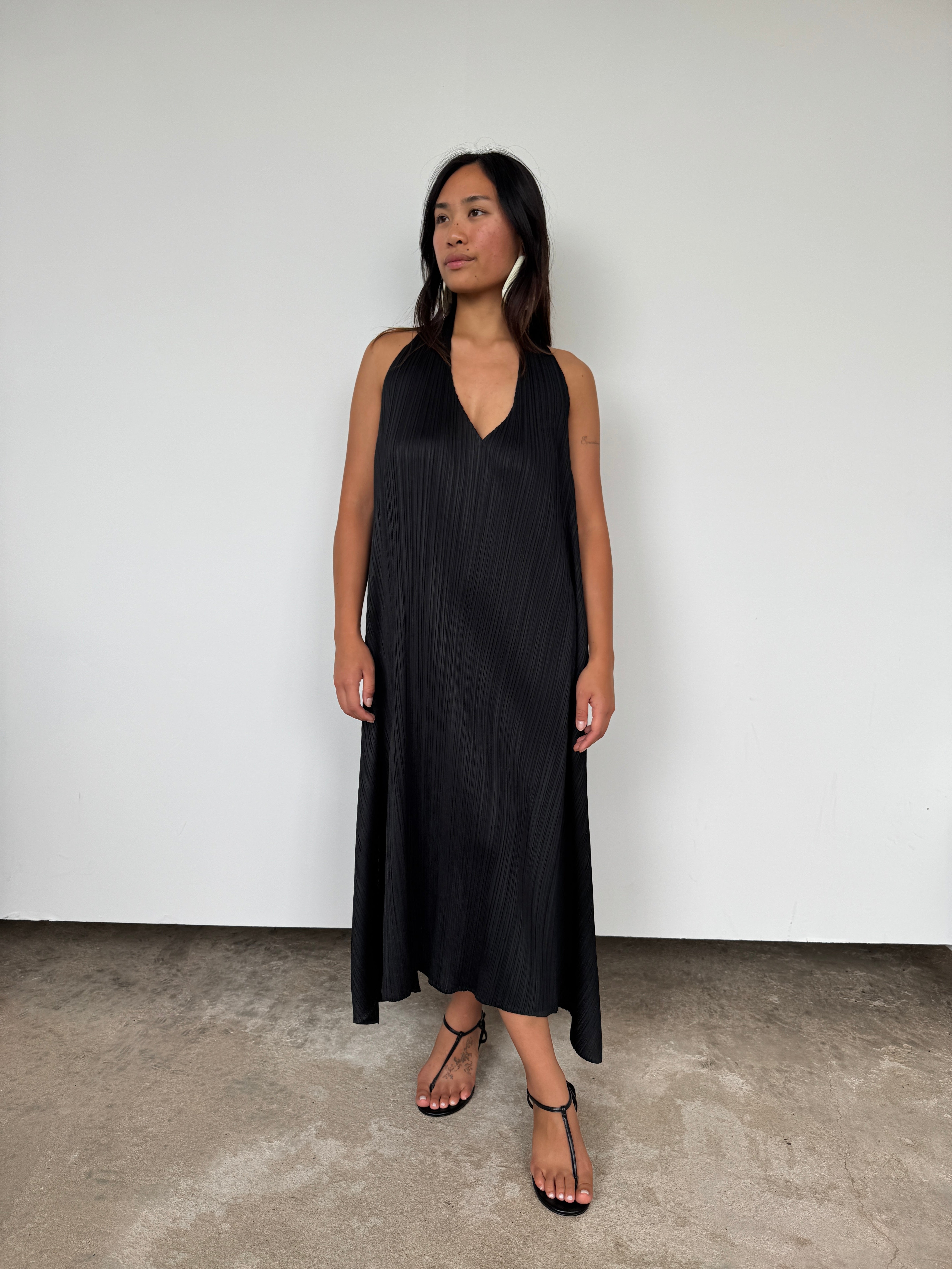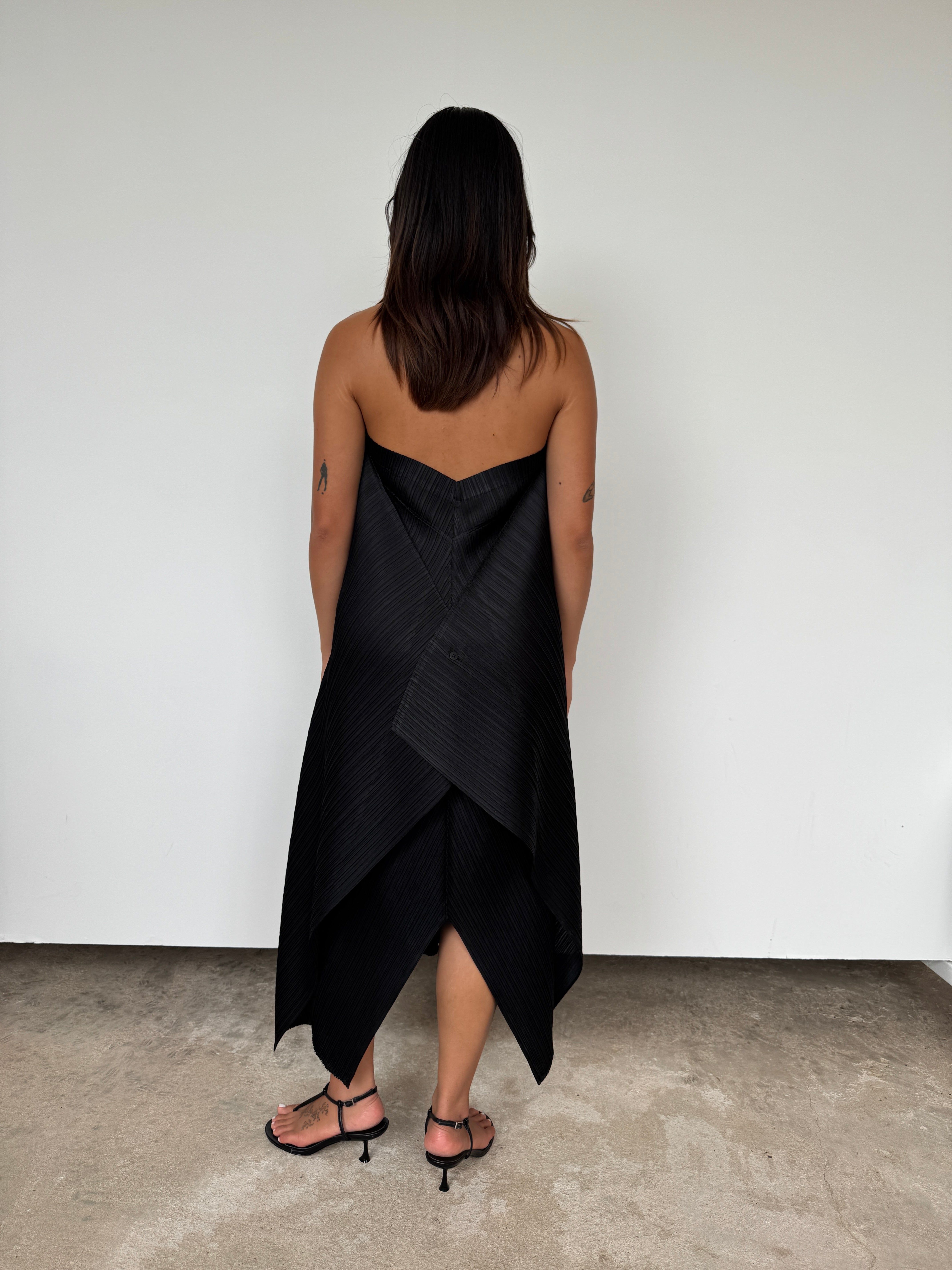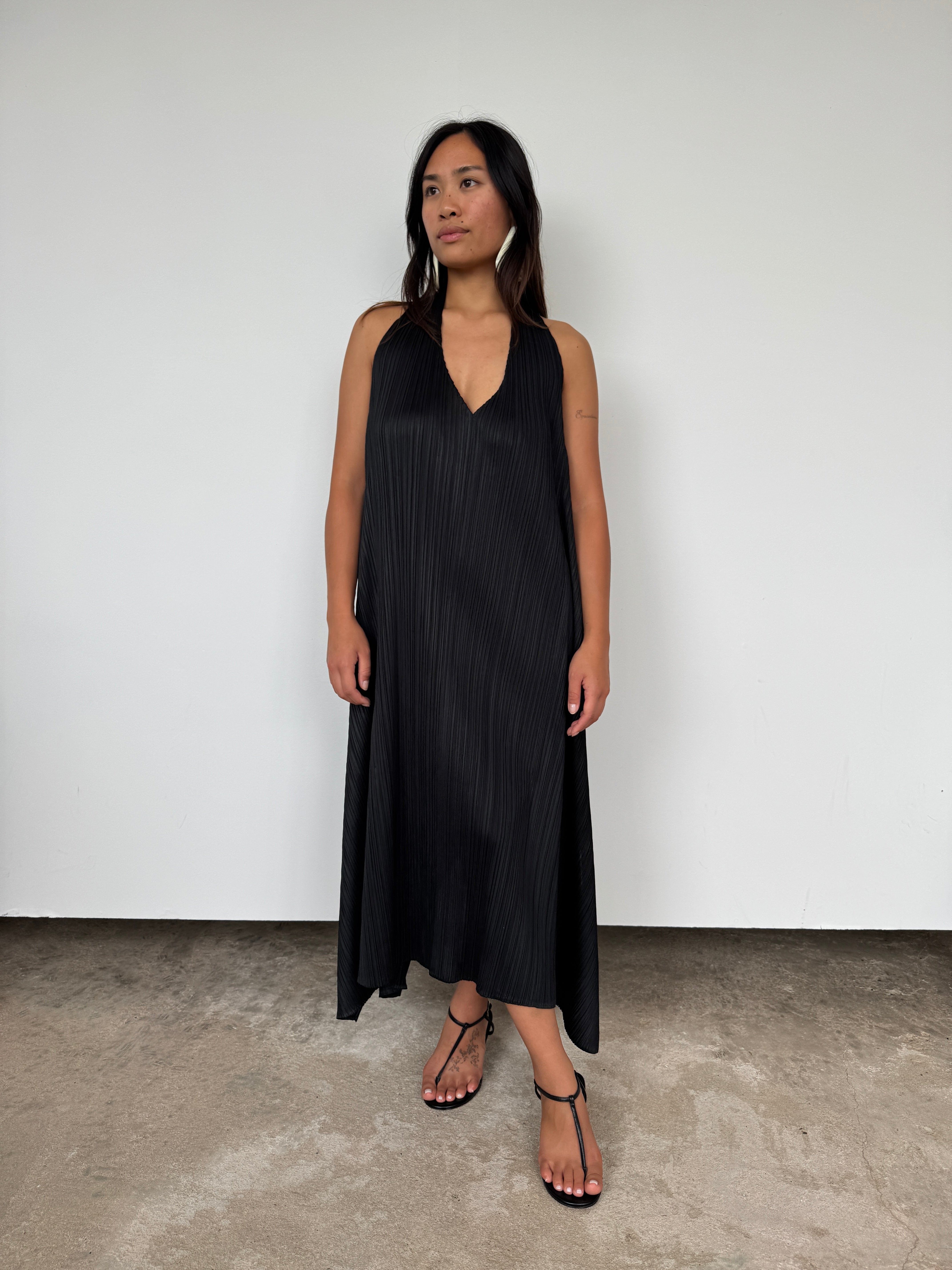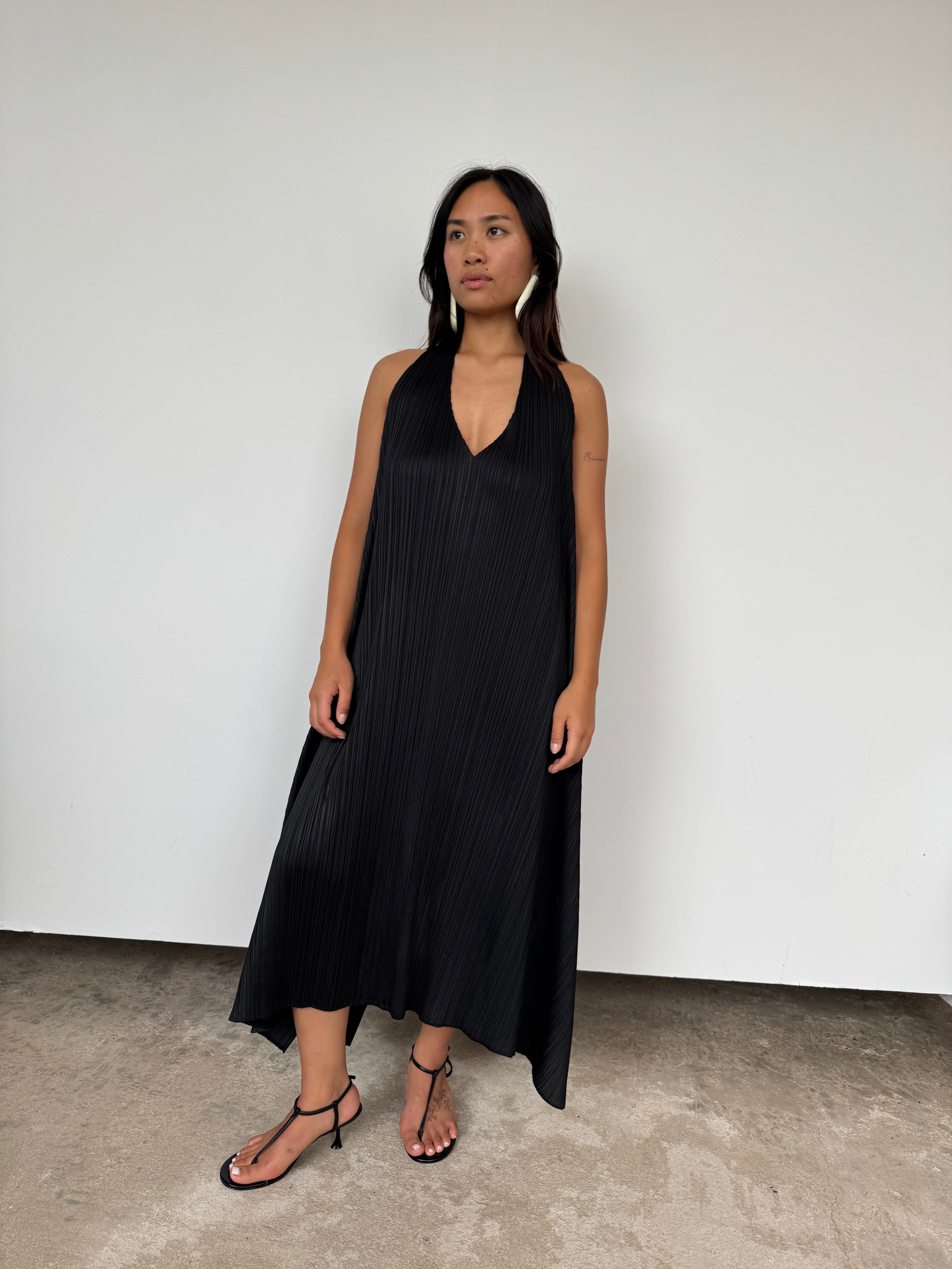 Issey Miyake Pleats Please Black 'Echo' Halterneck Wrap Dress | UK10-14