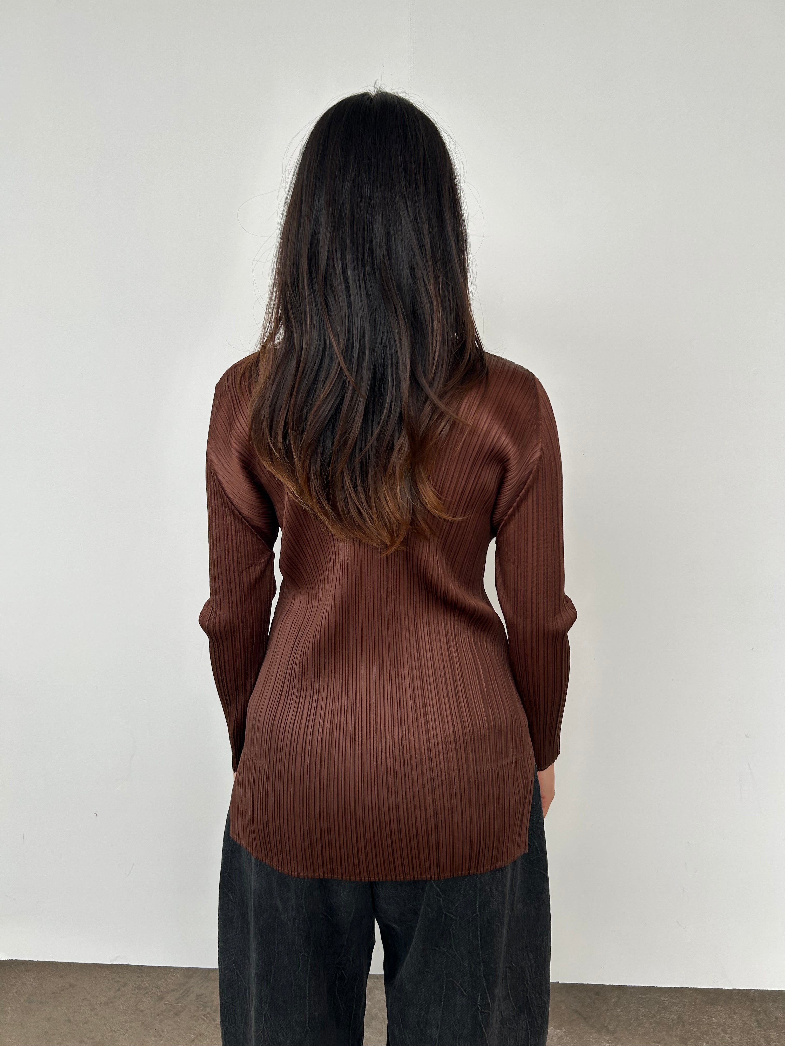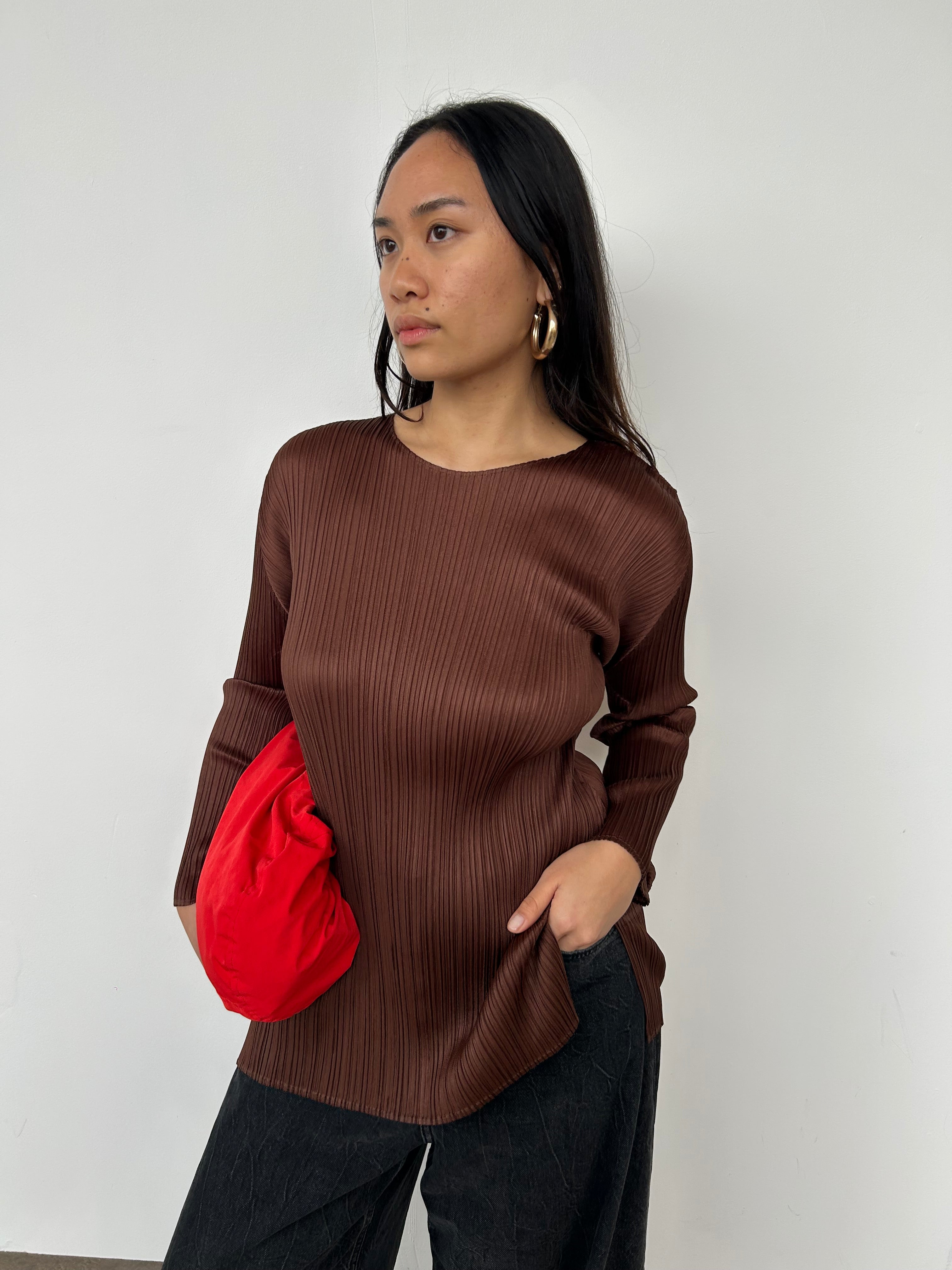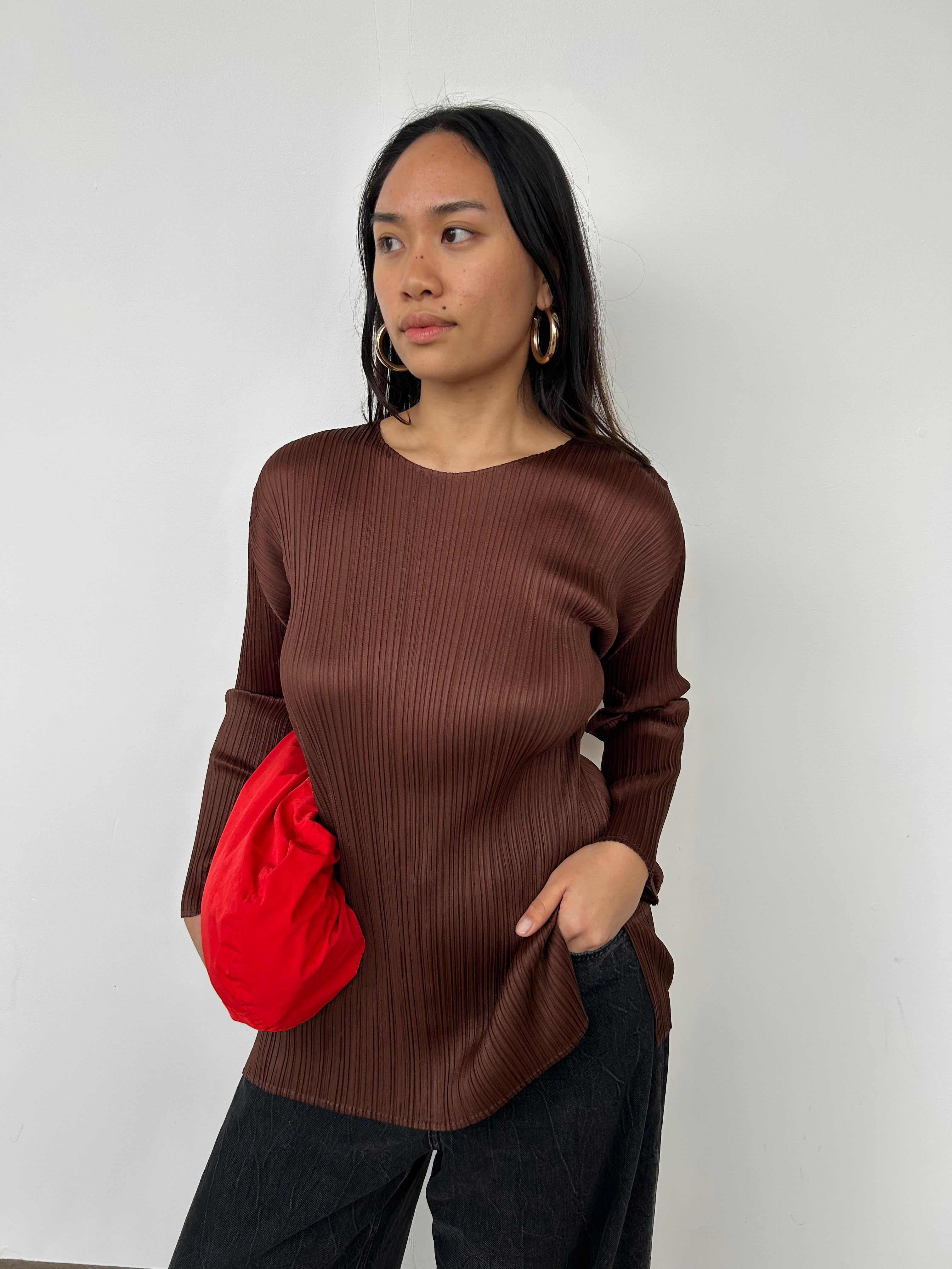 Issey Miyake Pleats Please Brown Long Sleeve Top | UK8-10