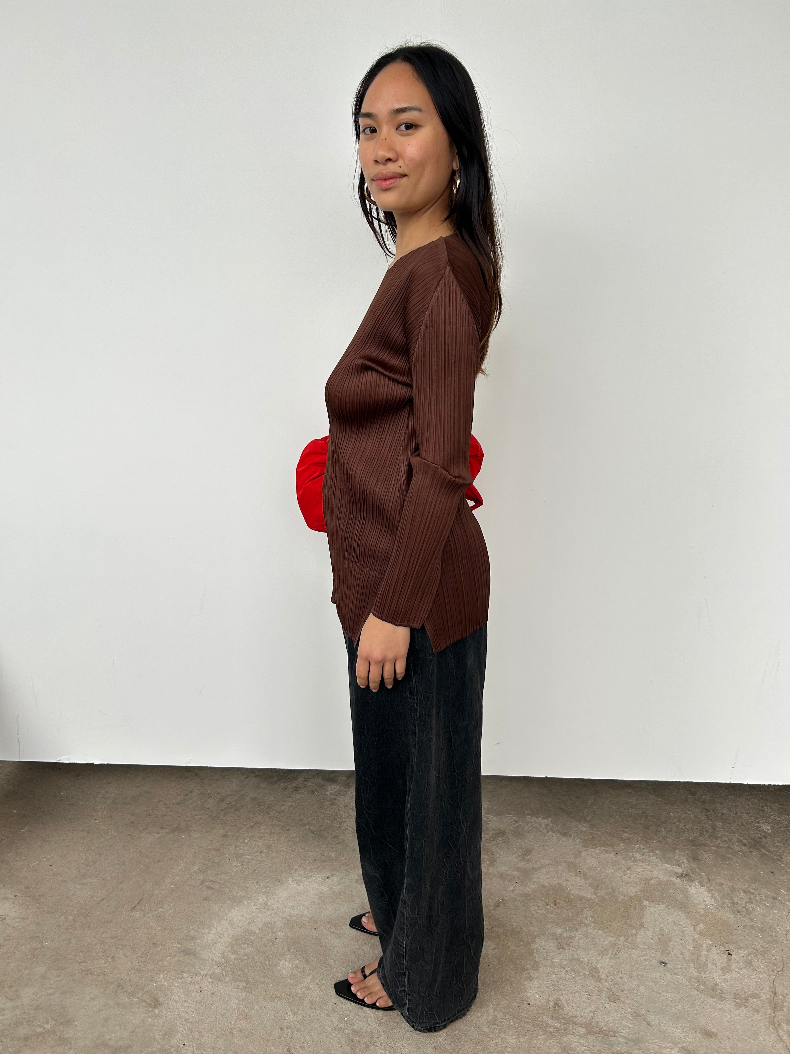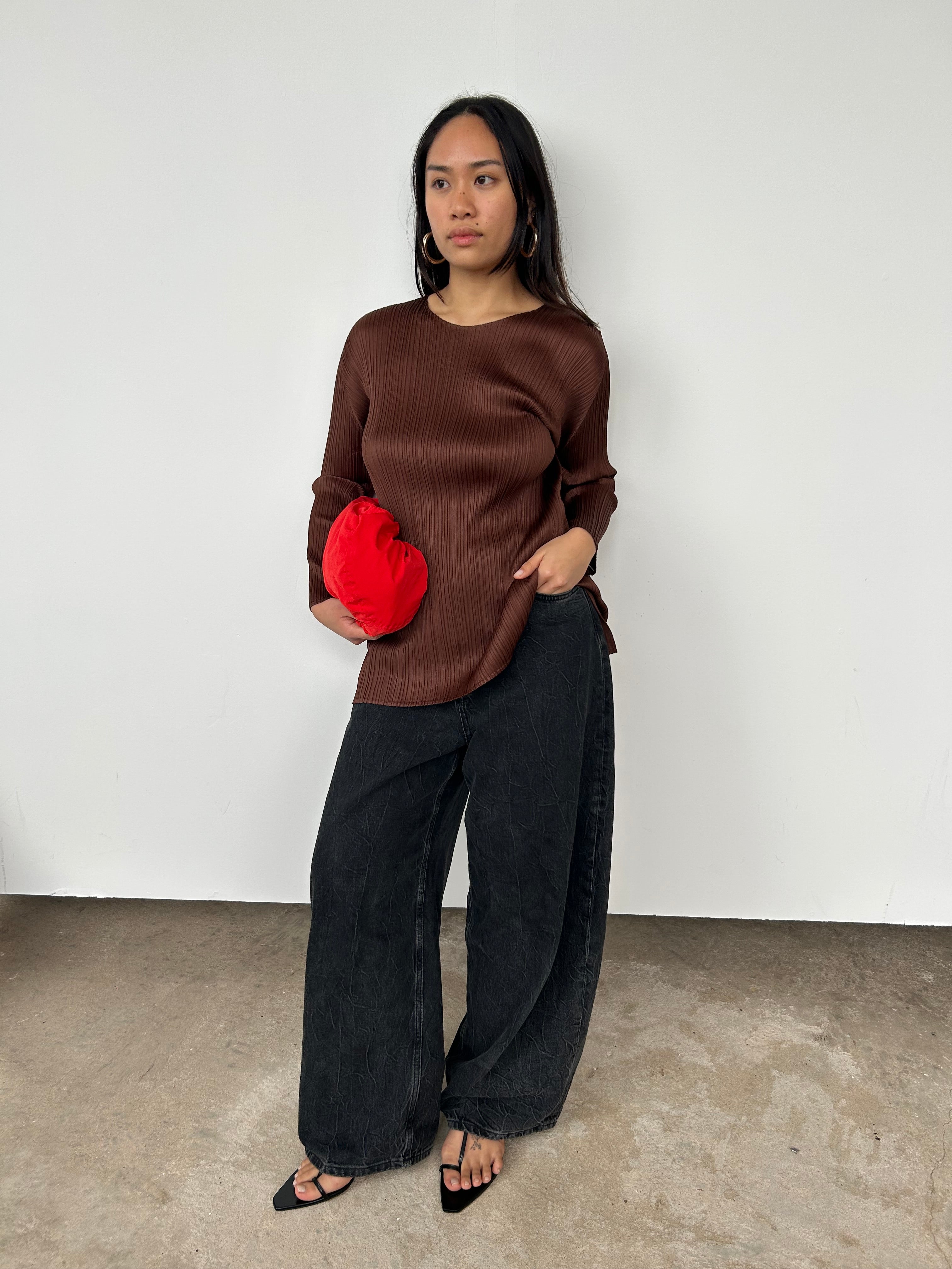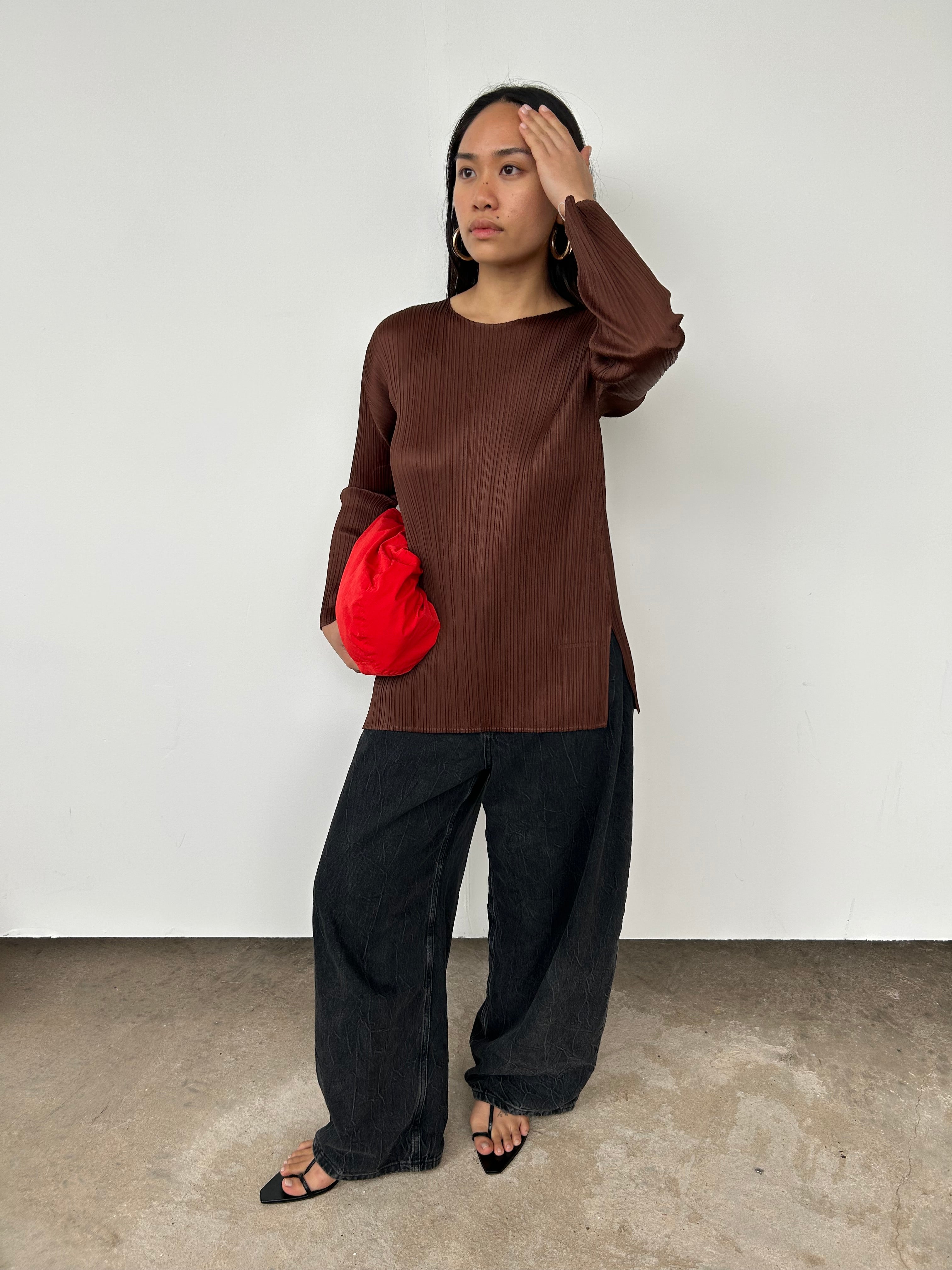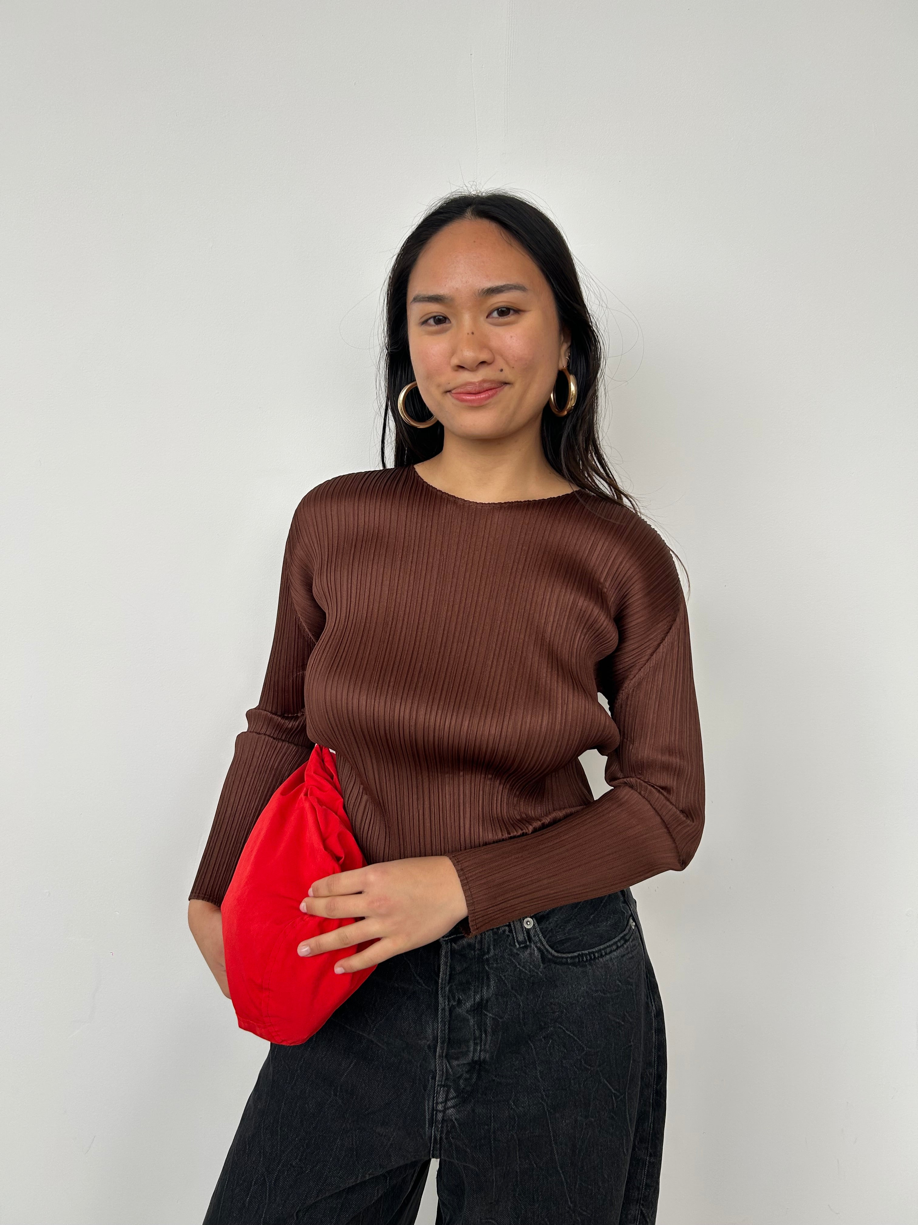 Issey Miyake Pleats Please Brown Long Sleeve Top | UK8-10