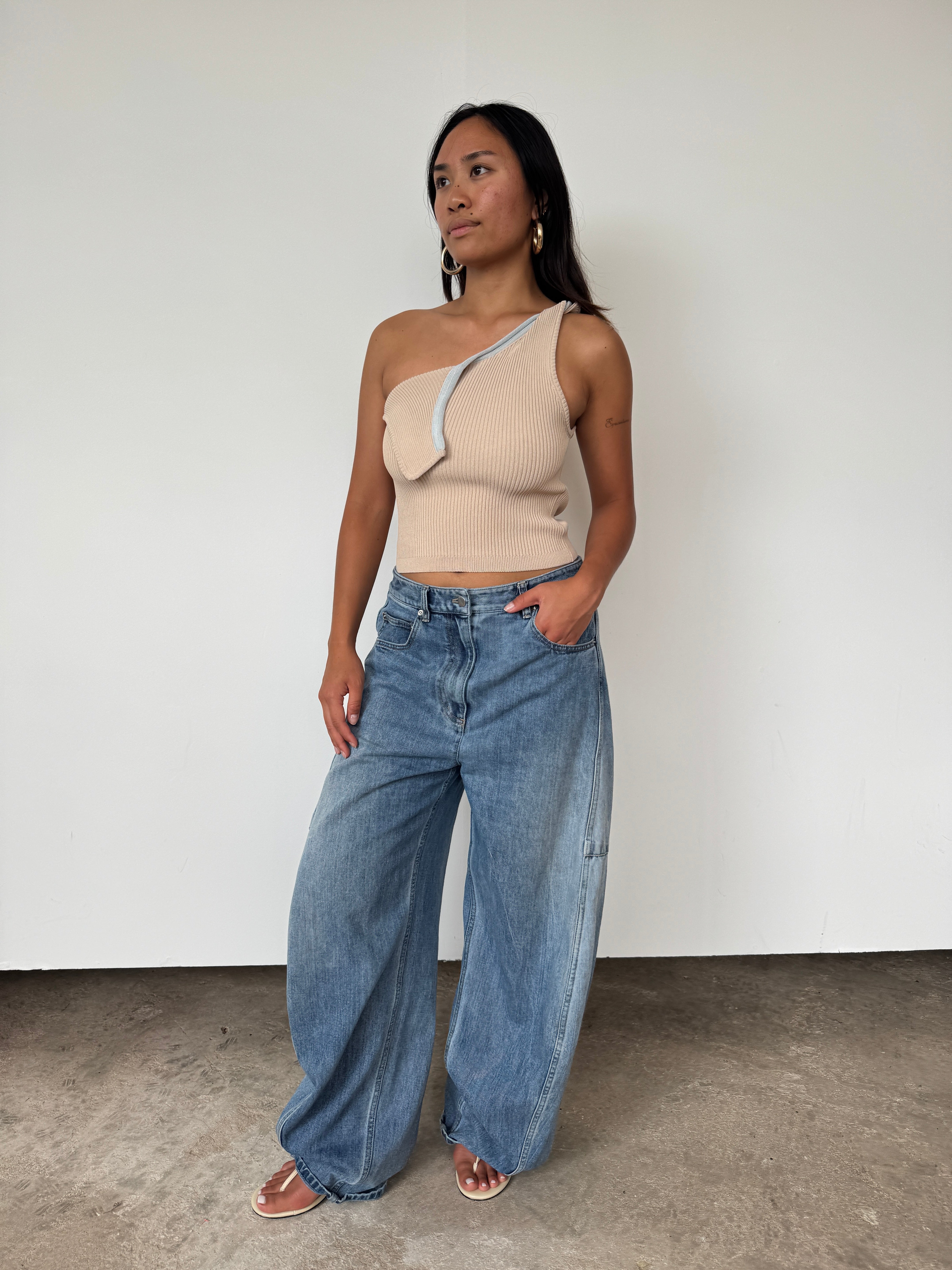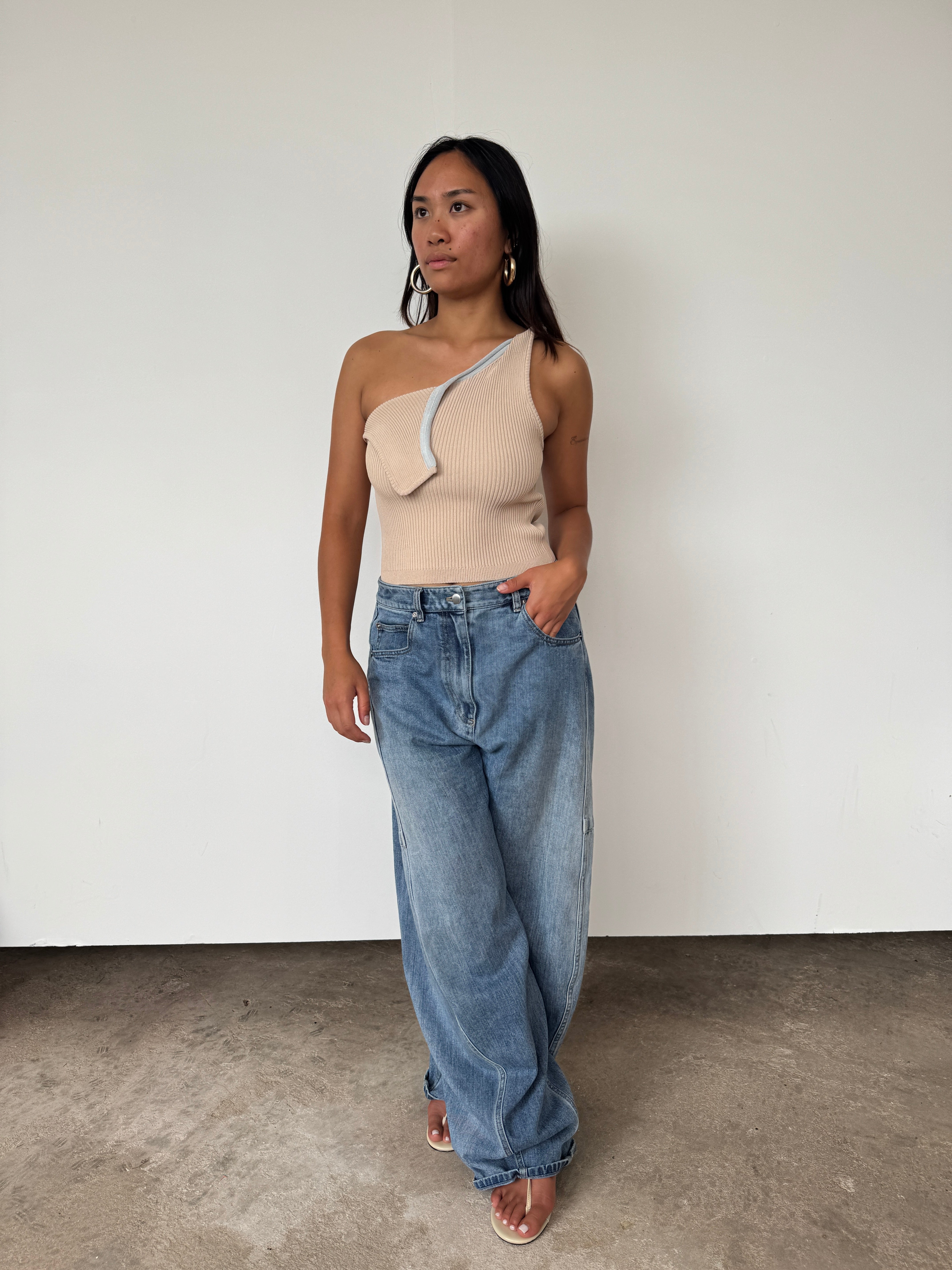 Jacquemus Beige + Blue Knitted 'Aceno' Top | UK10