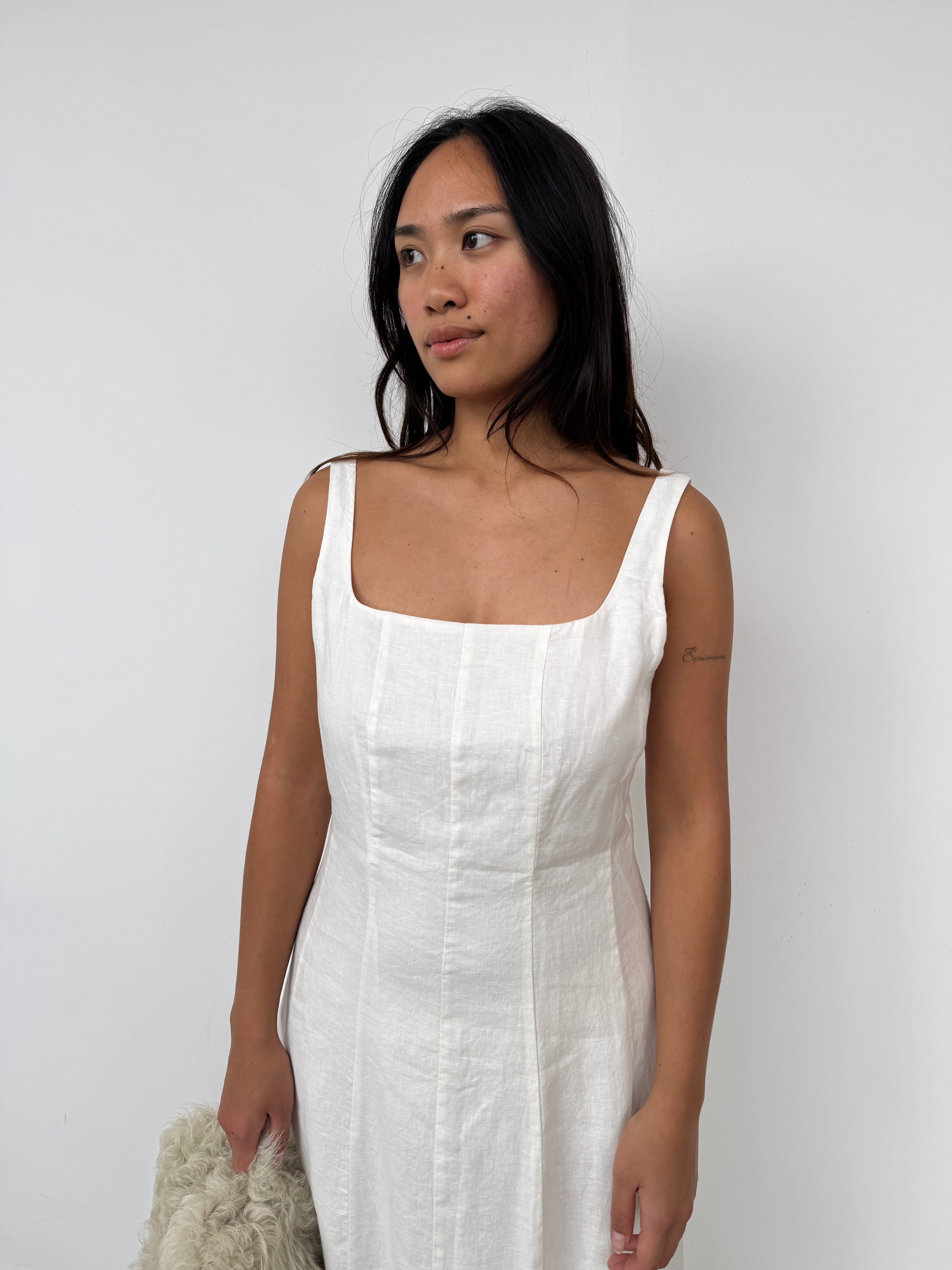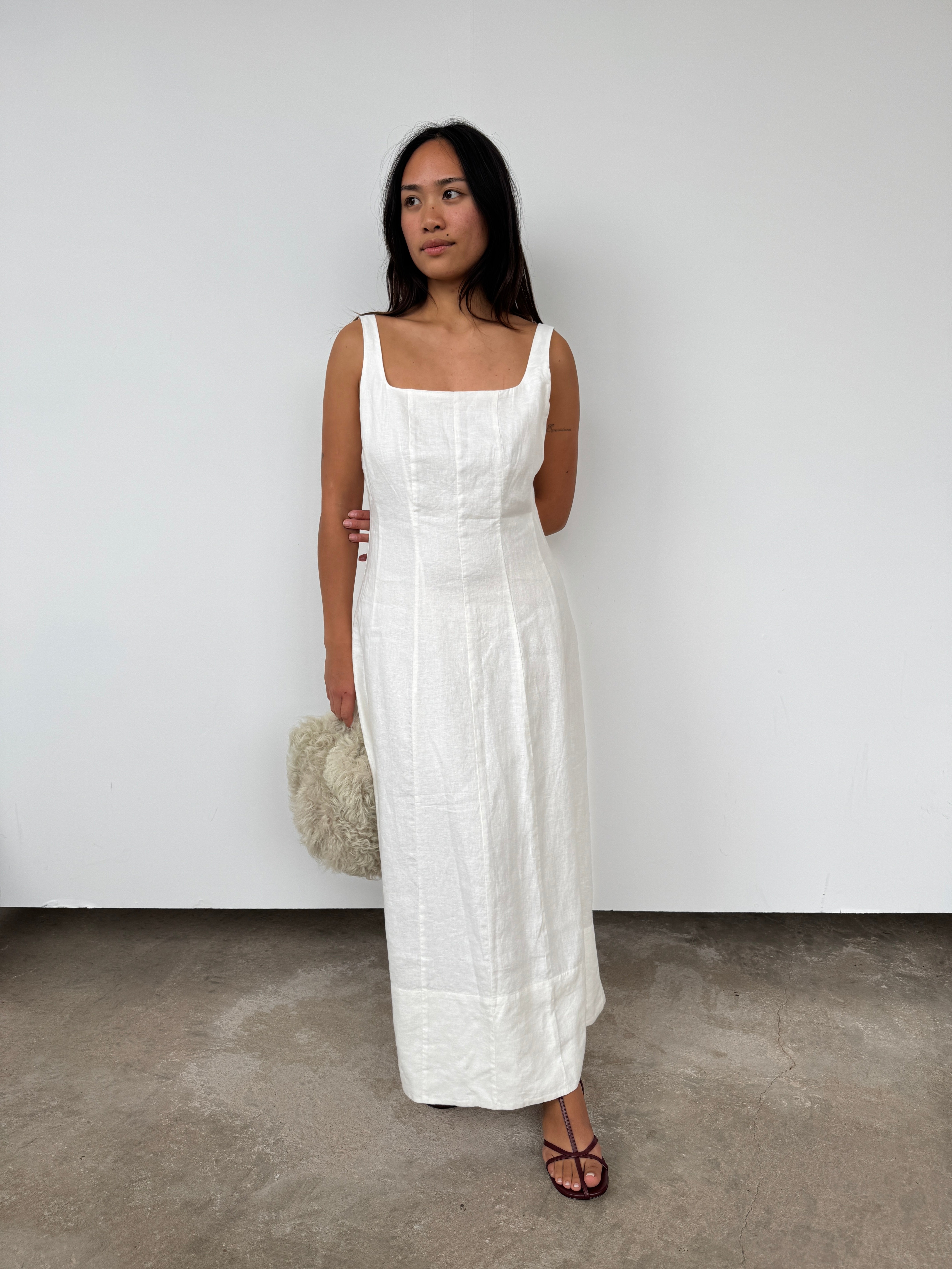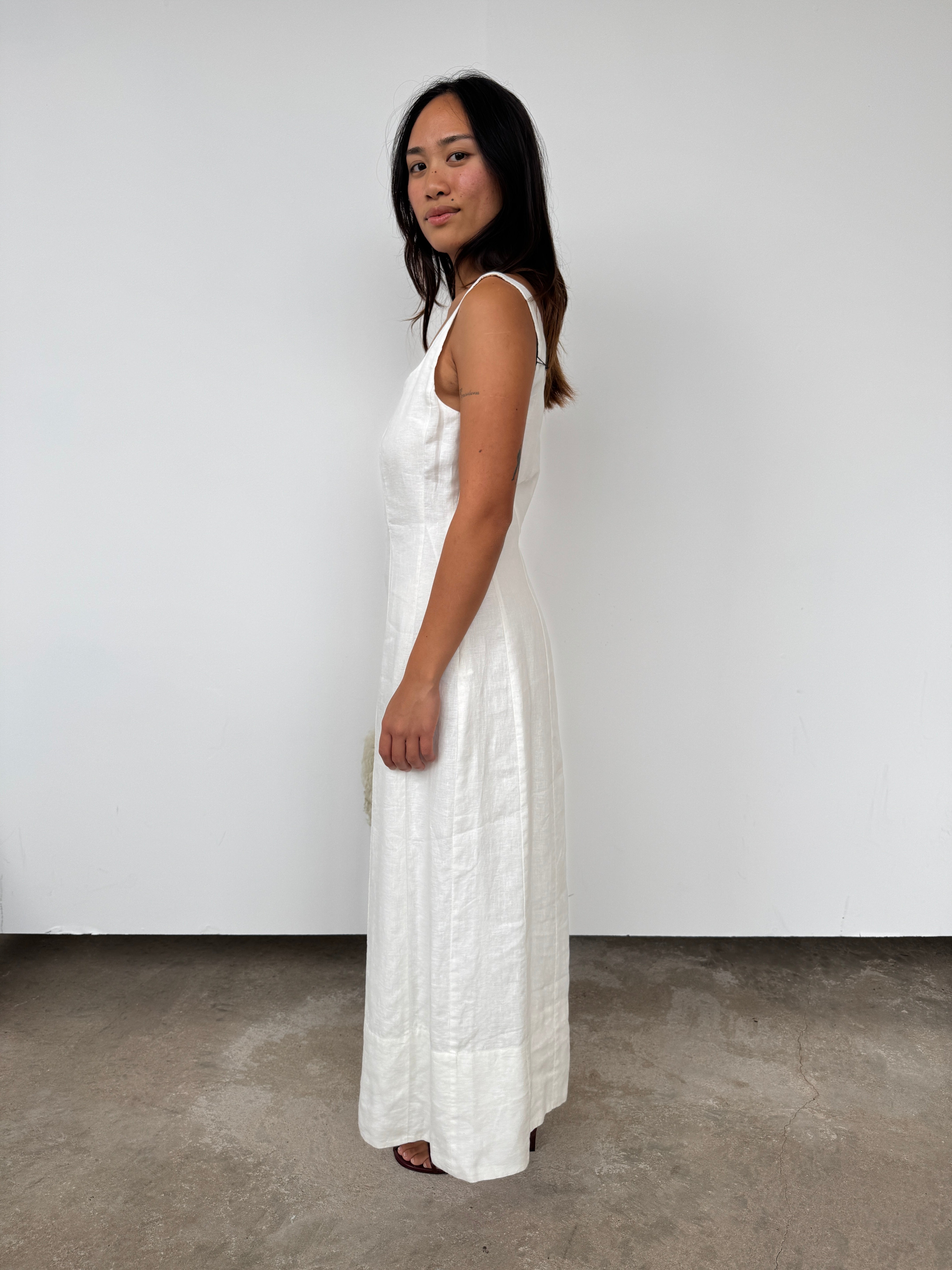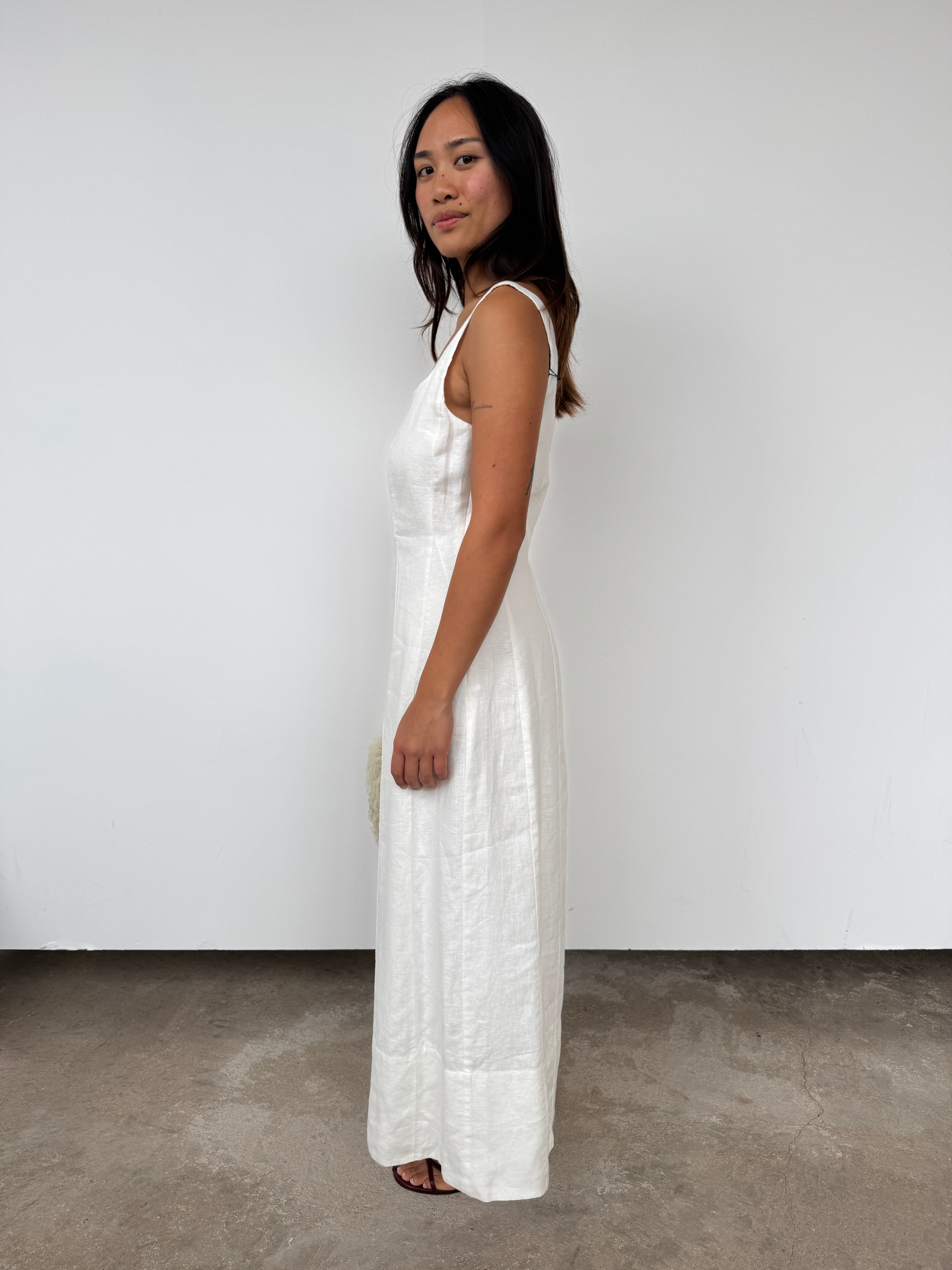 Made from washed linen, this dress features a soft and lightweight feel. Seam details shape the body to turn a simple style into something that will transcend every season.
