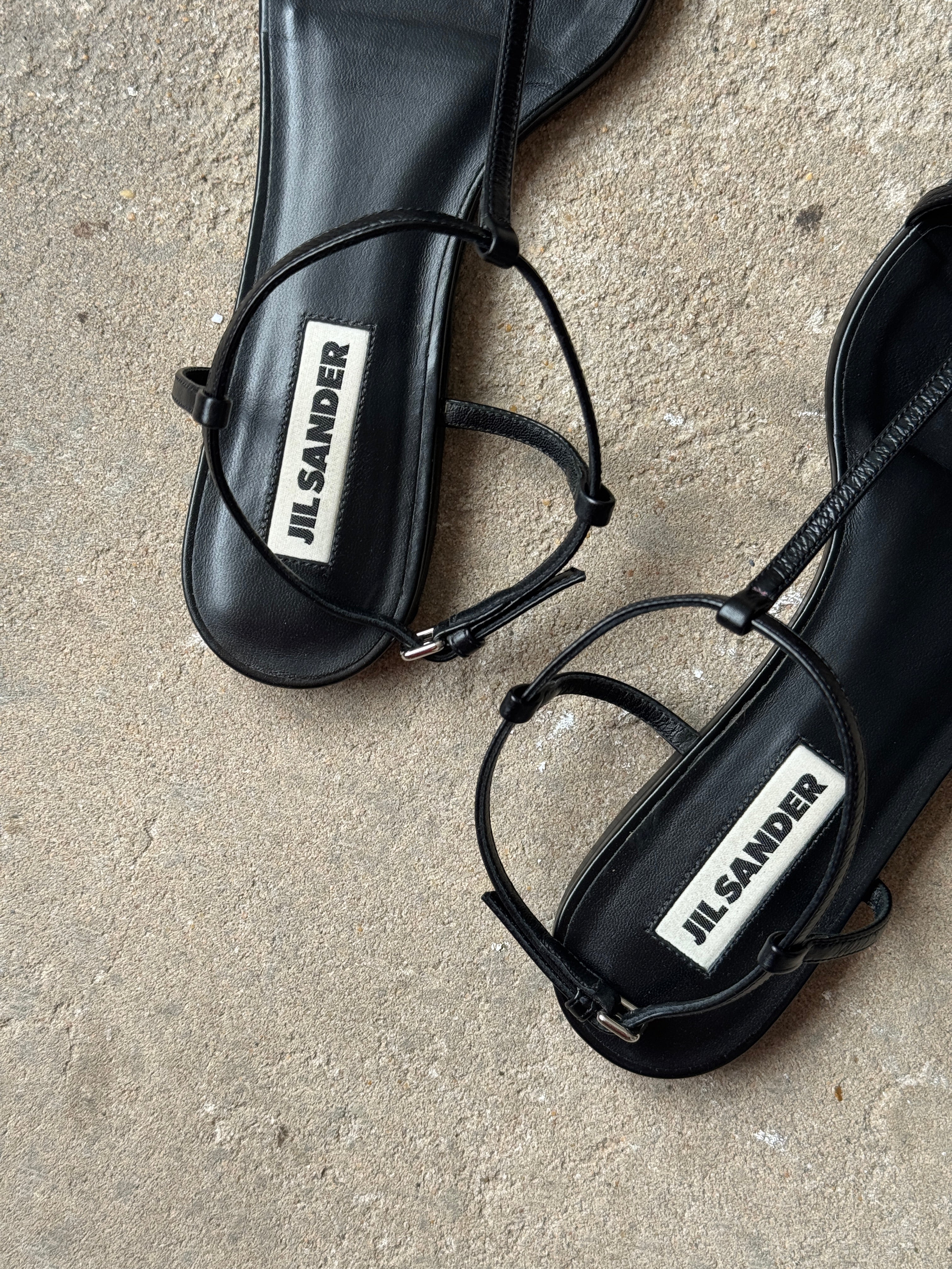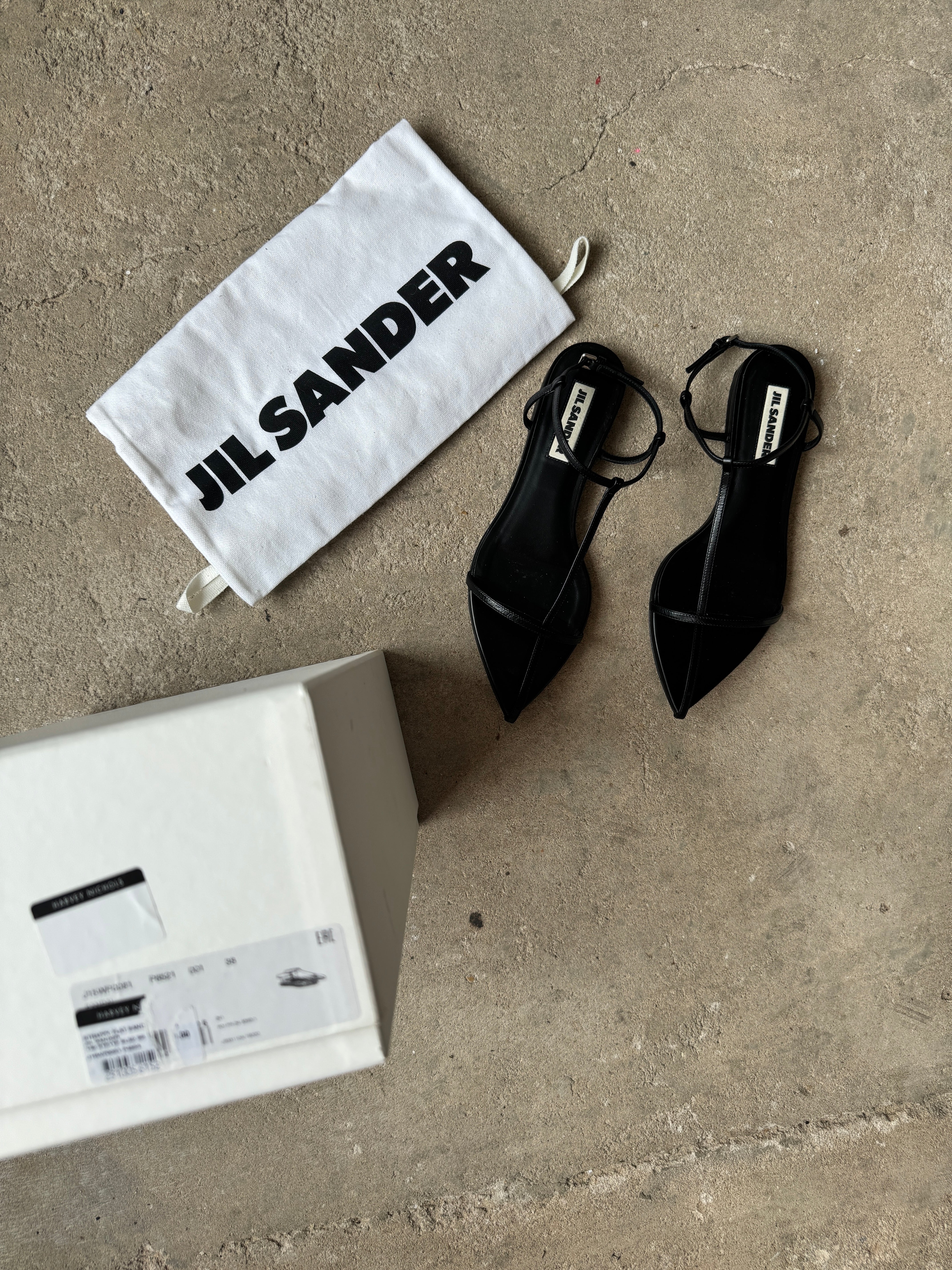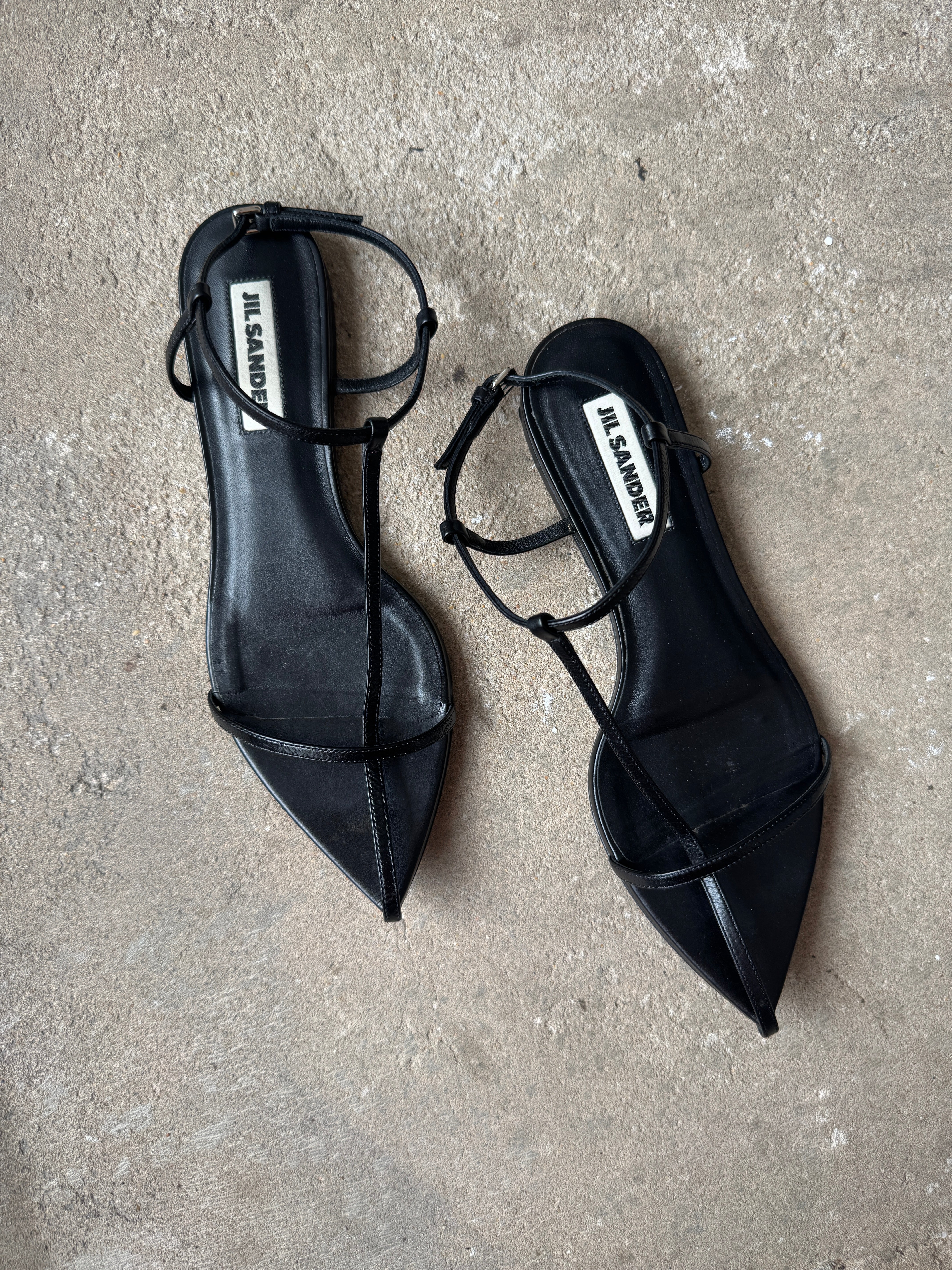 Jil Sander Black Leather Point-Toe Sandals | UK5