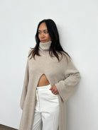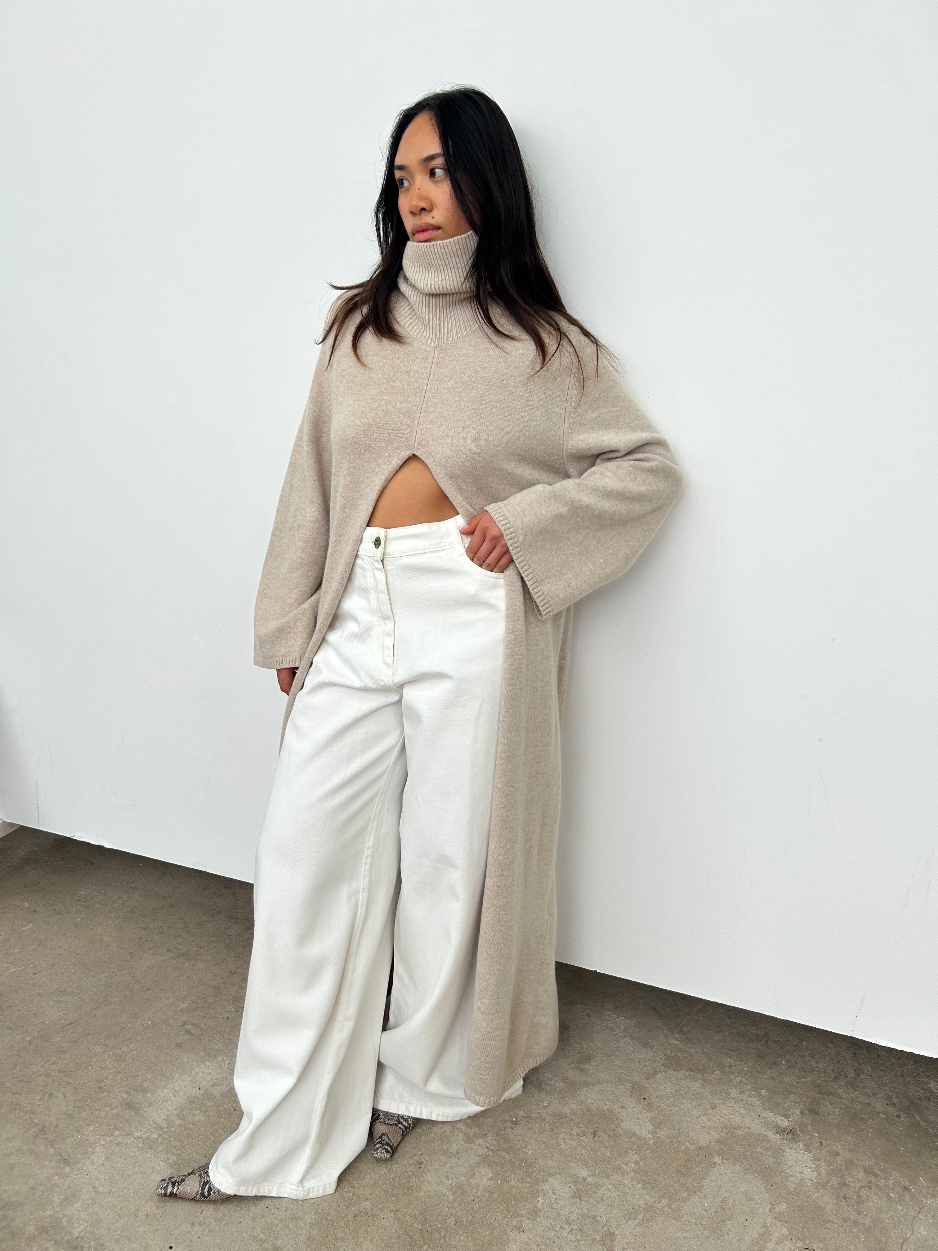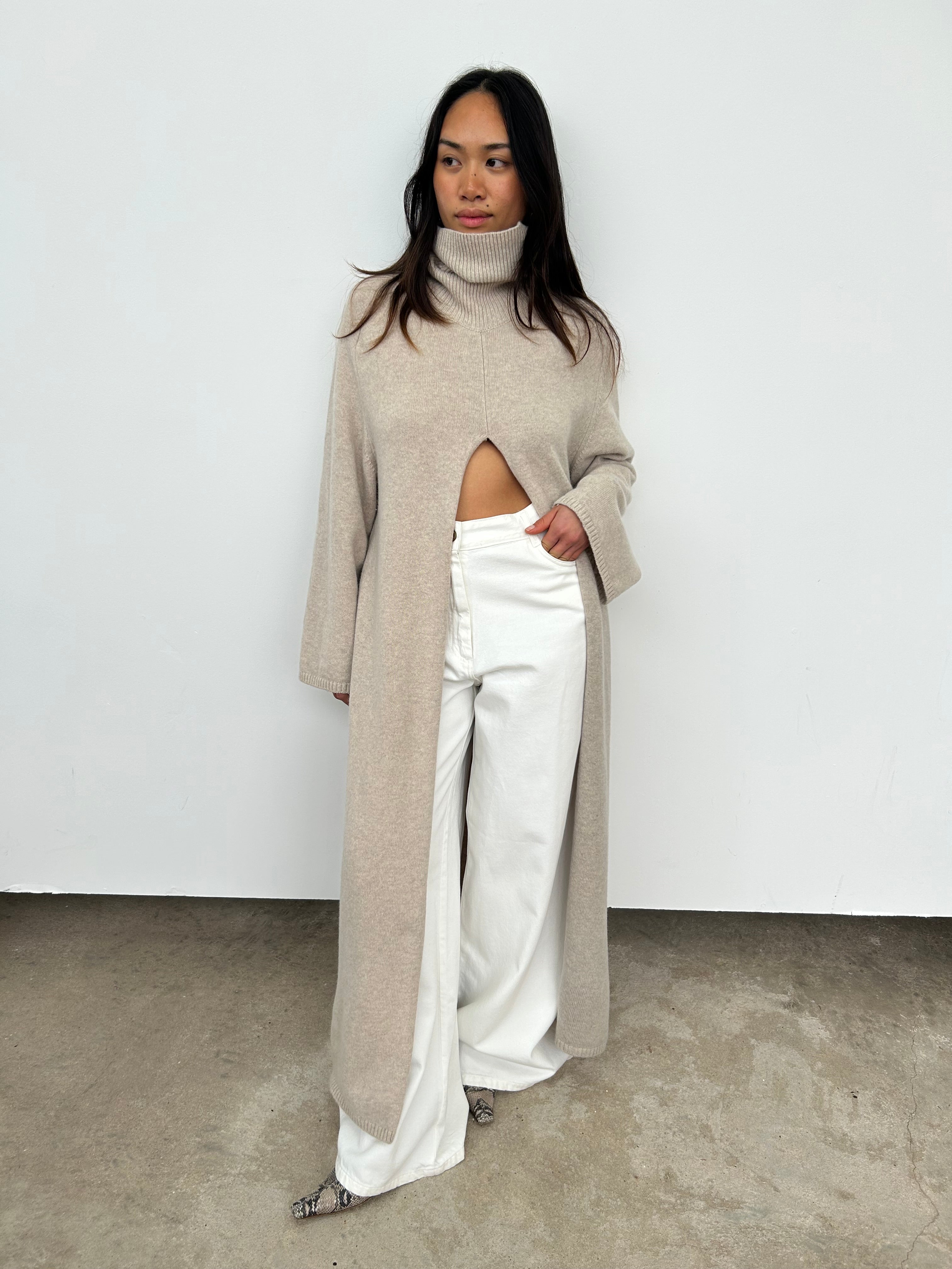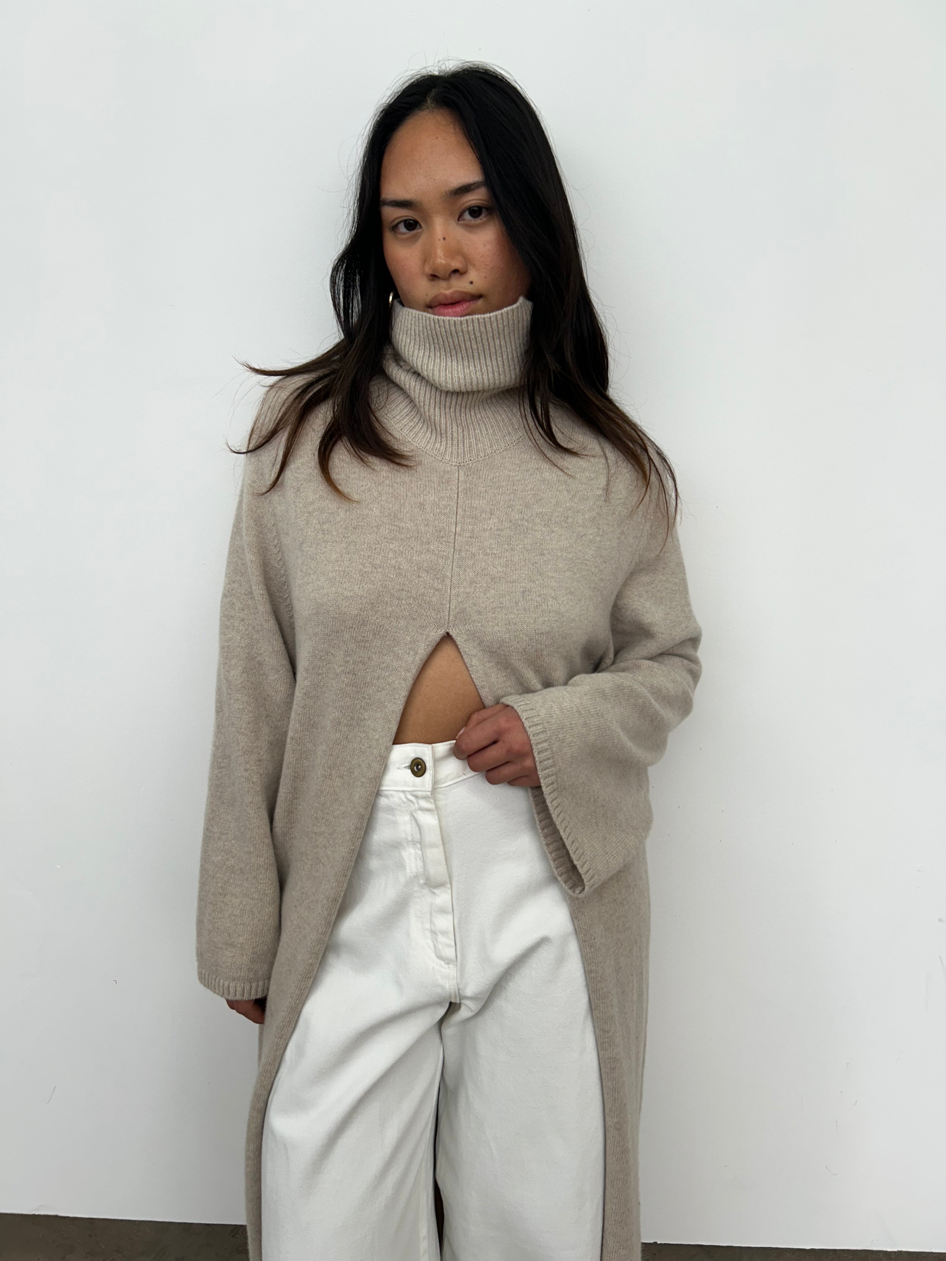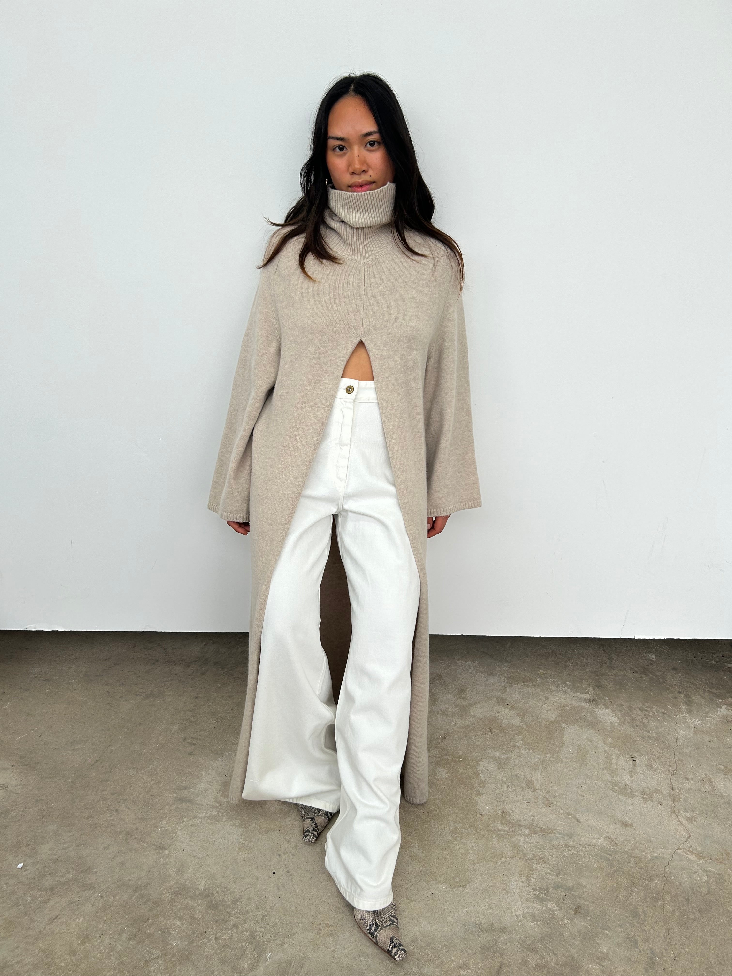 This piece is designed with a relaxed fit. We love it worn over jeans for an effortless look