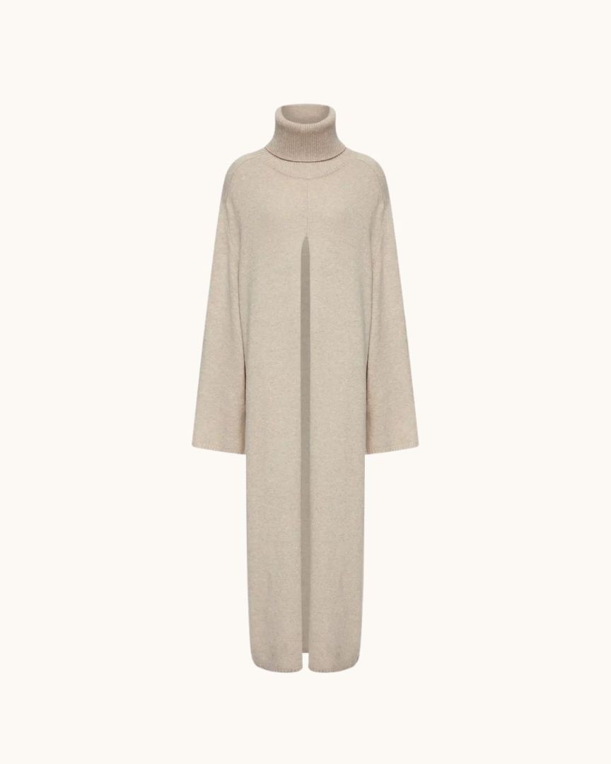 Joseph Beige 'Viviane' Split-Front Wool Dress | S