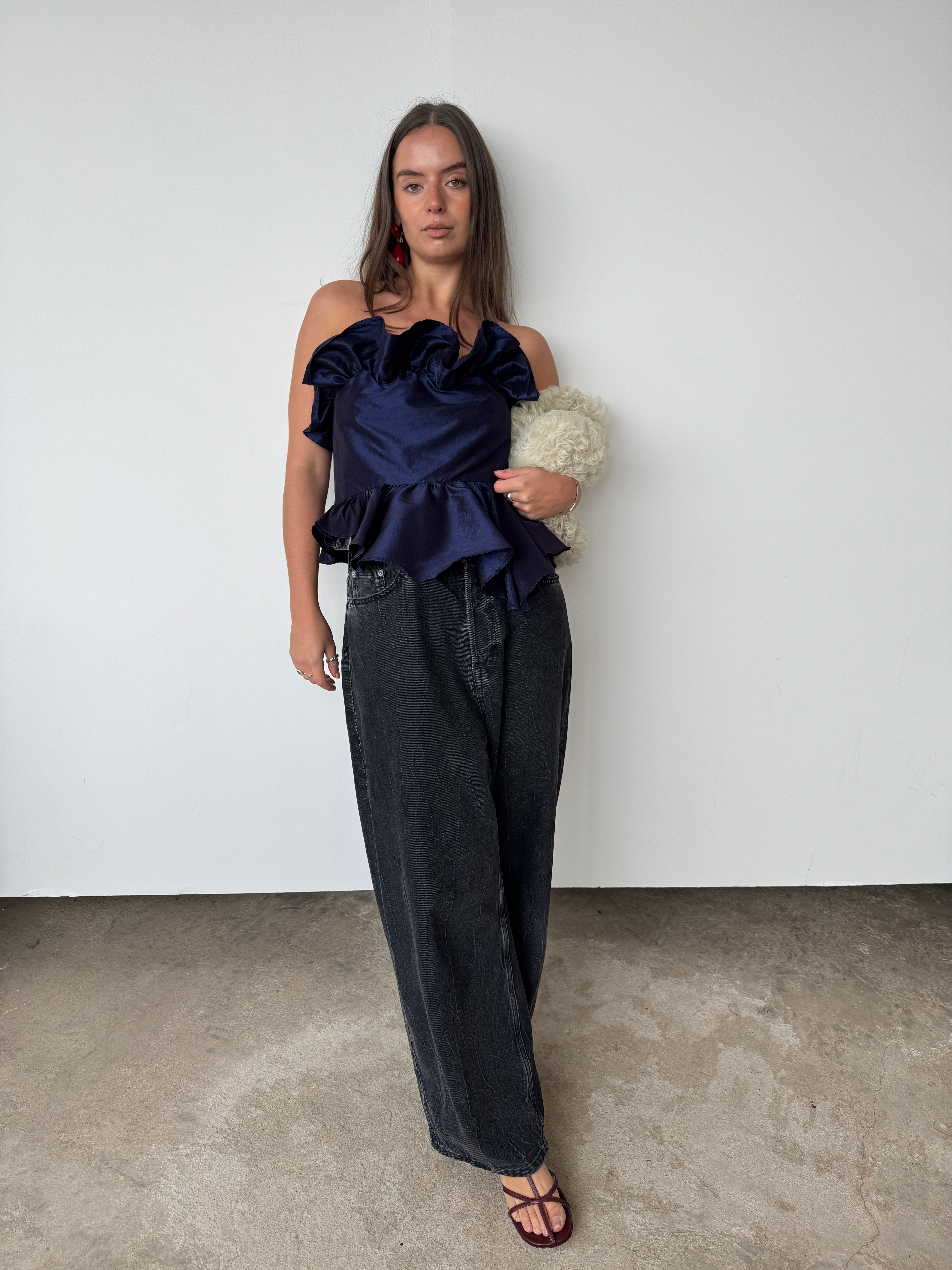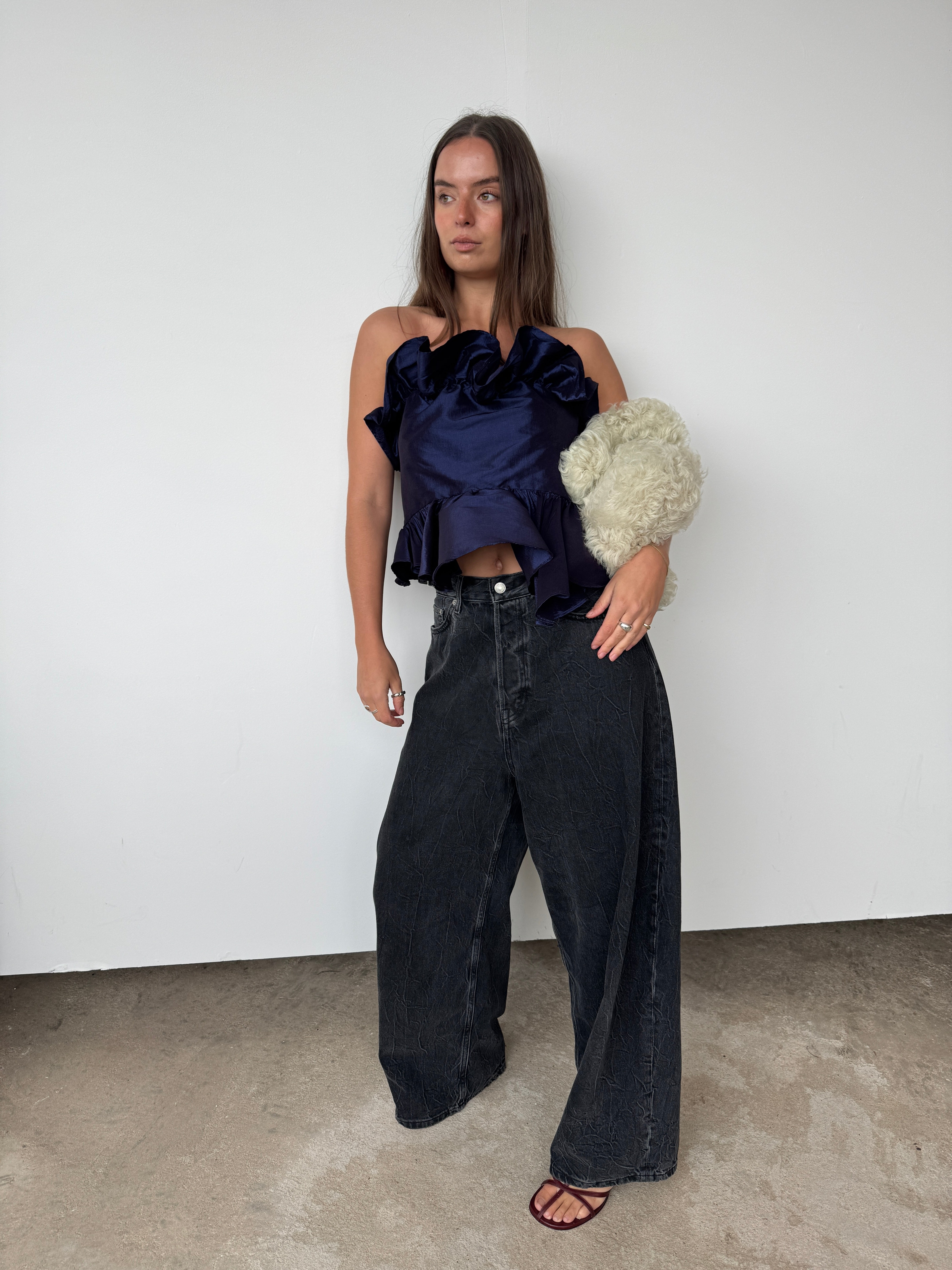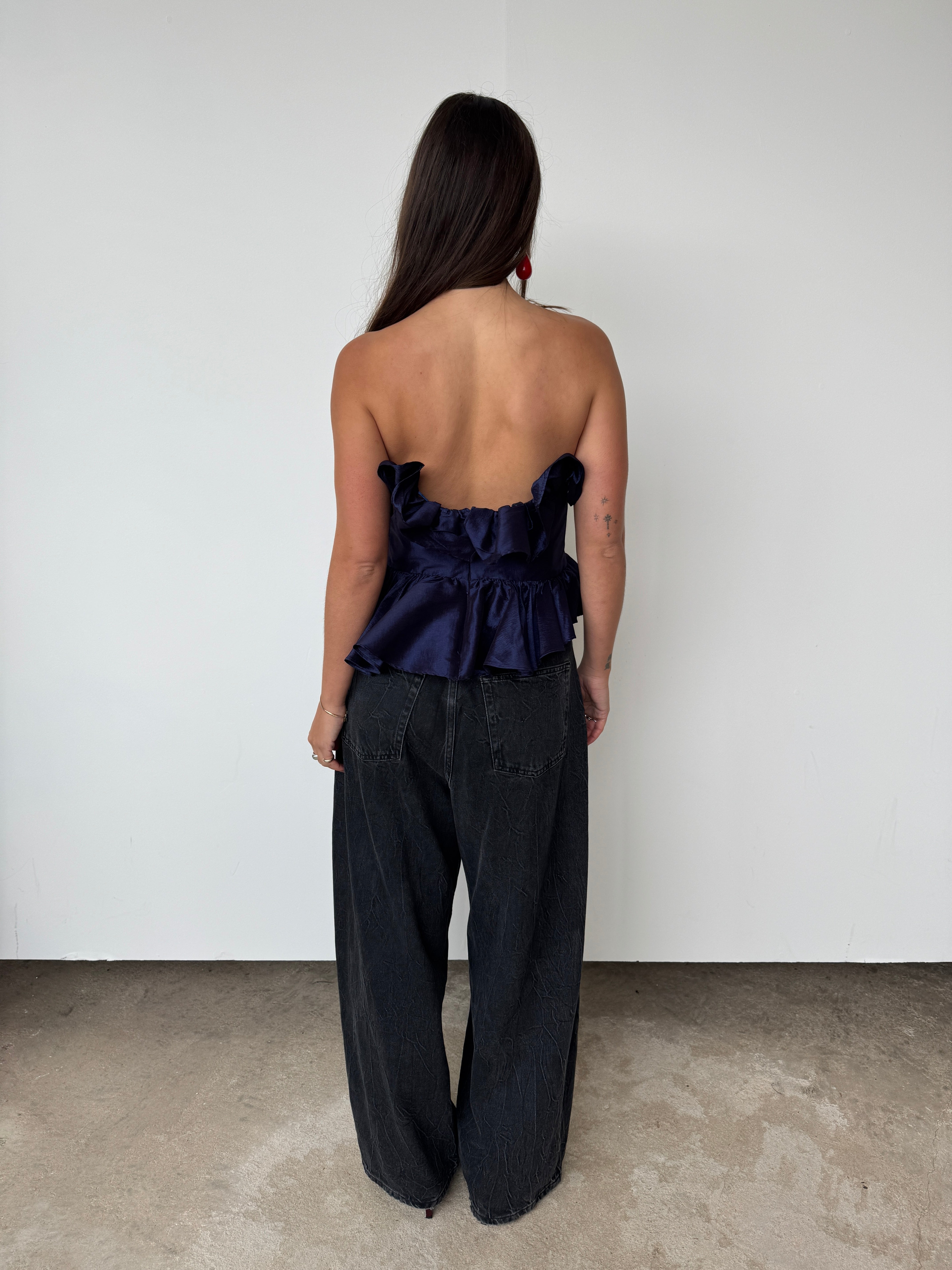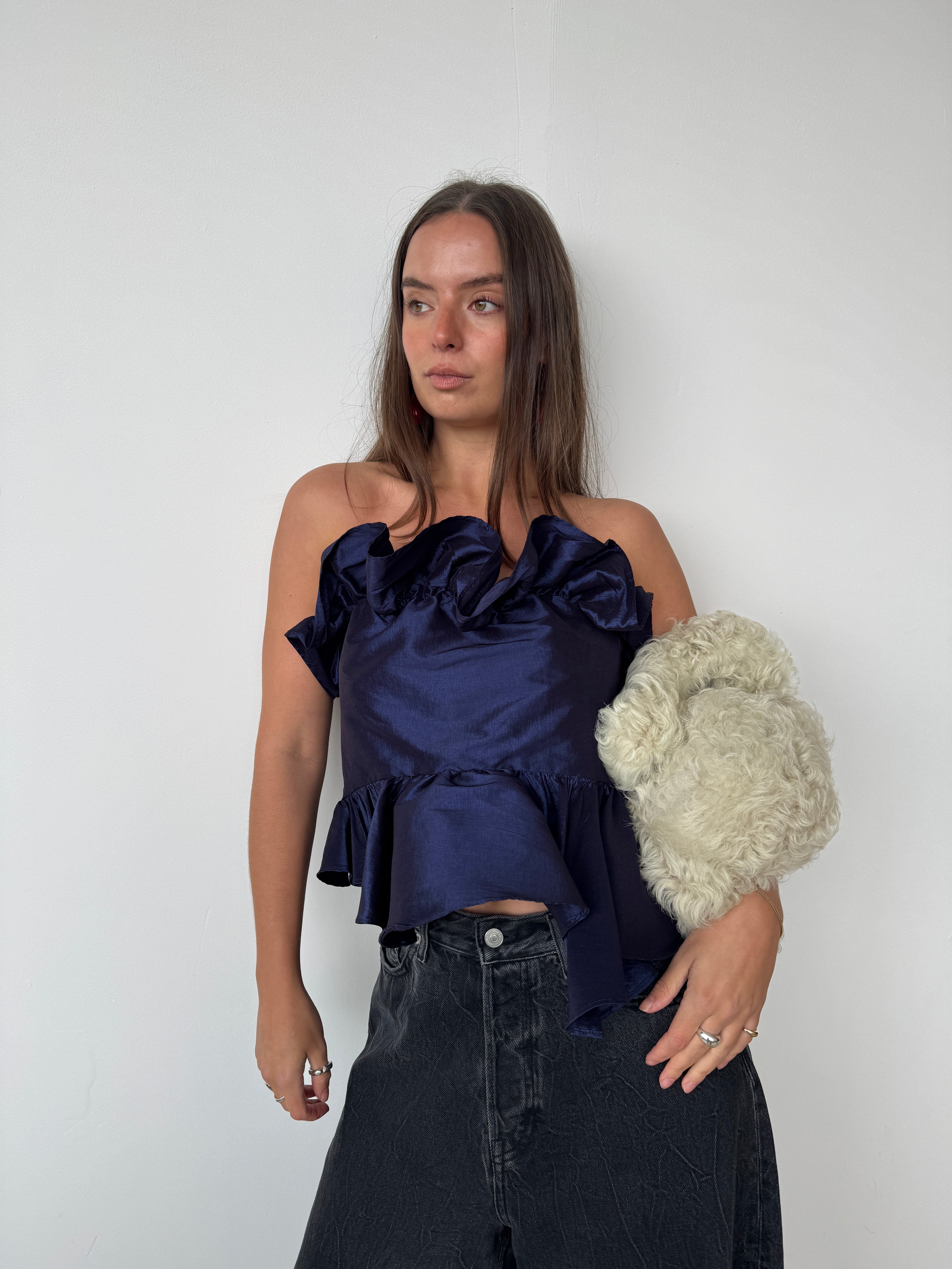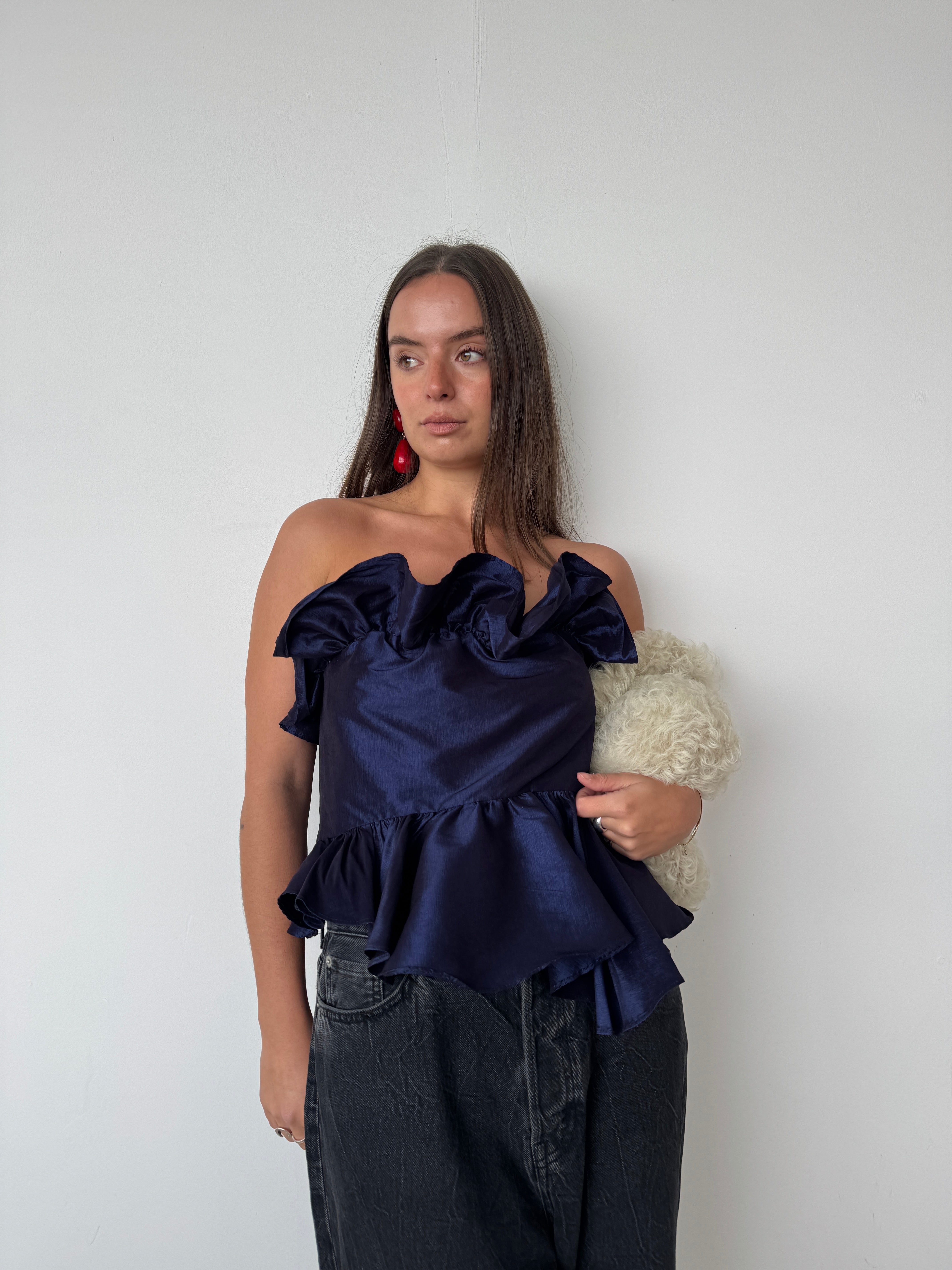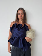 Kika Vargus Navy Taffeta Top | L