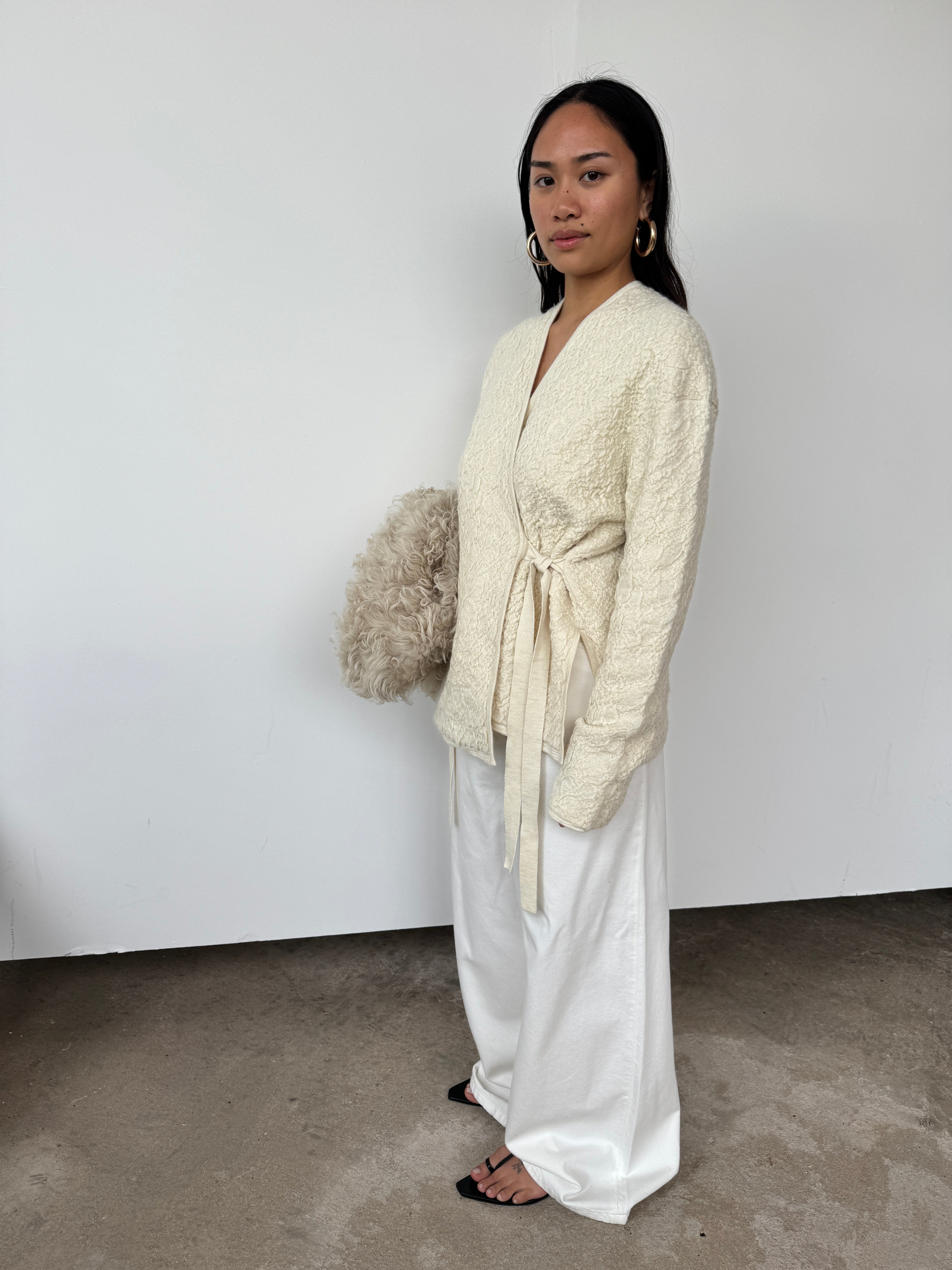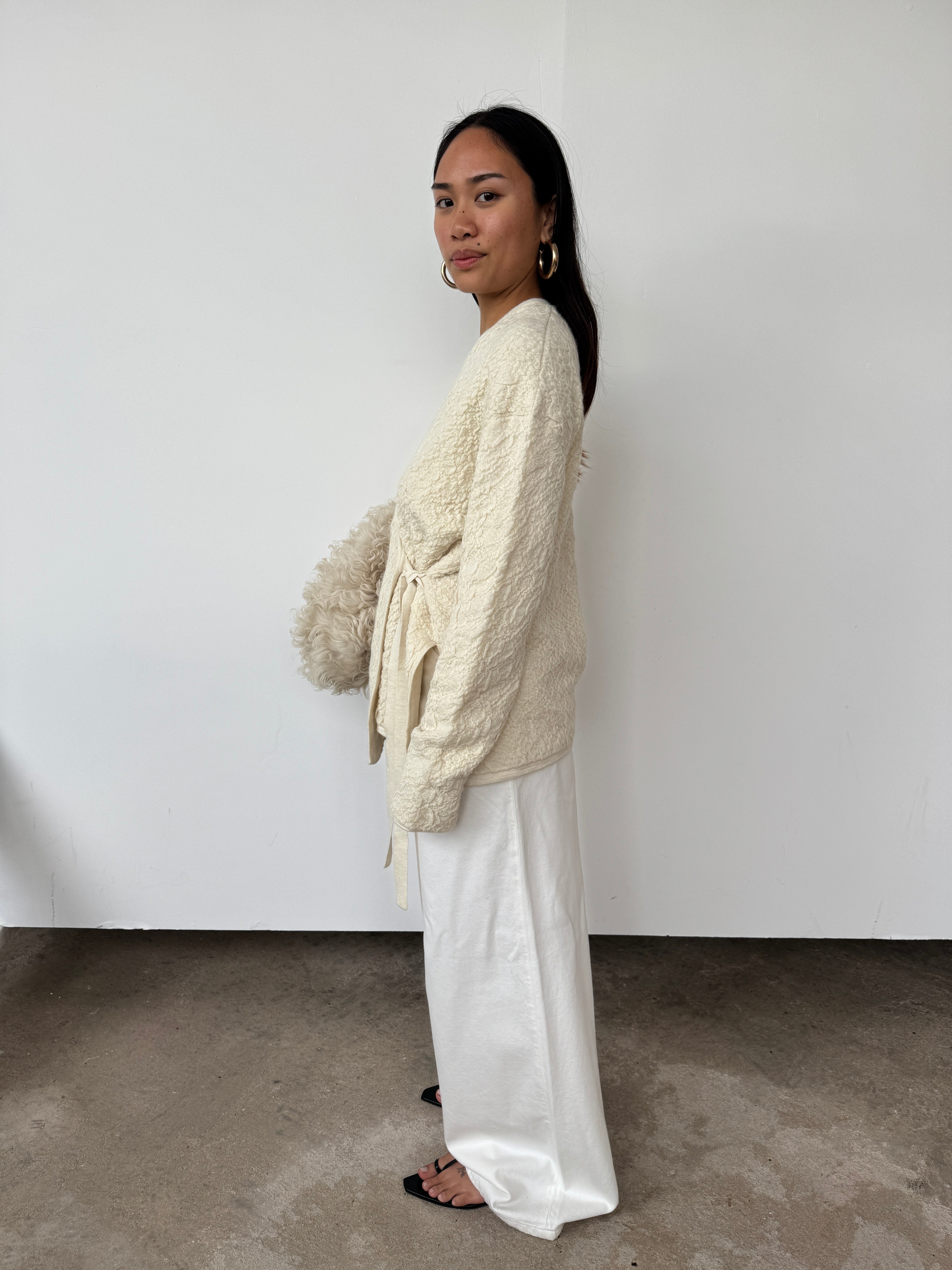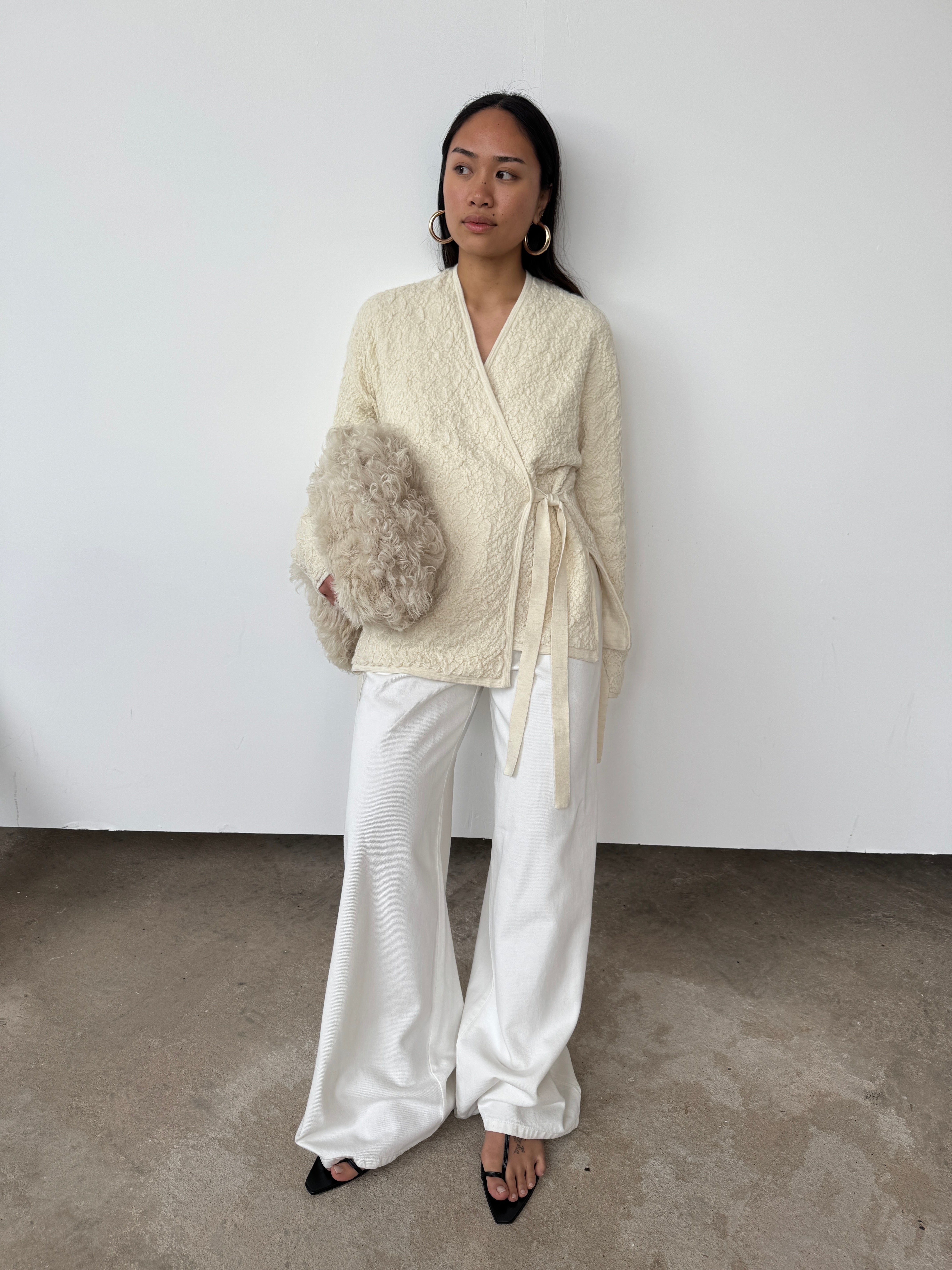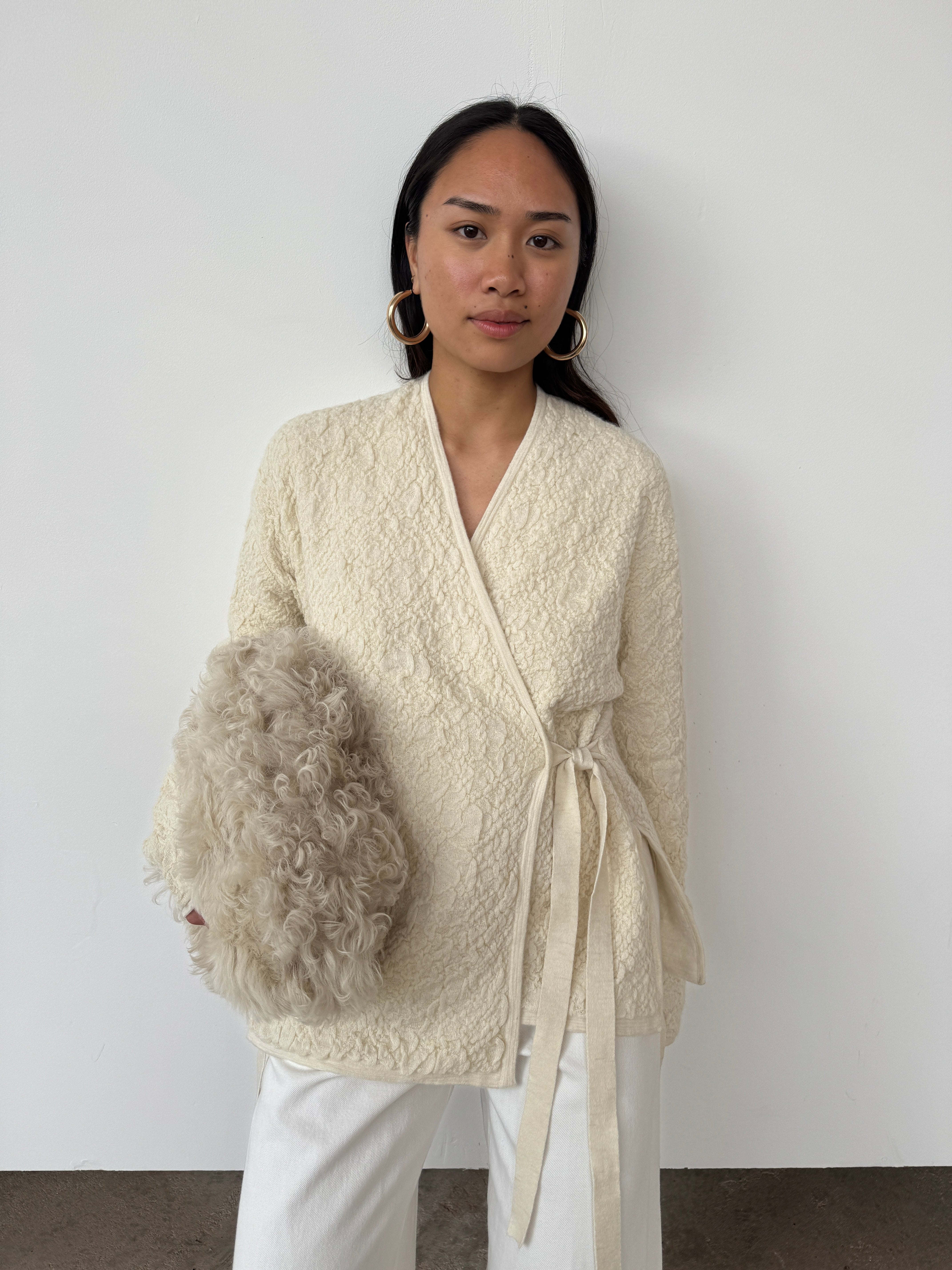 Lauren Manoogian Cream Textured Alpaca Cardigan | O/S