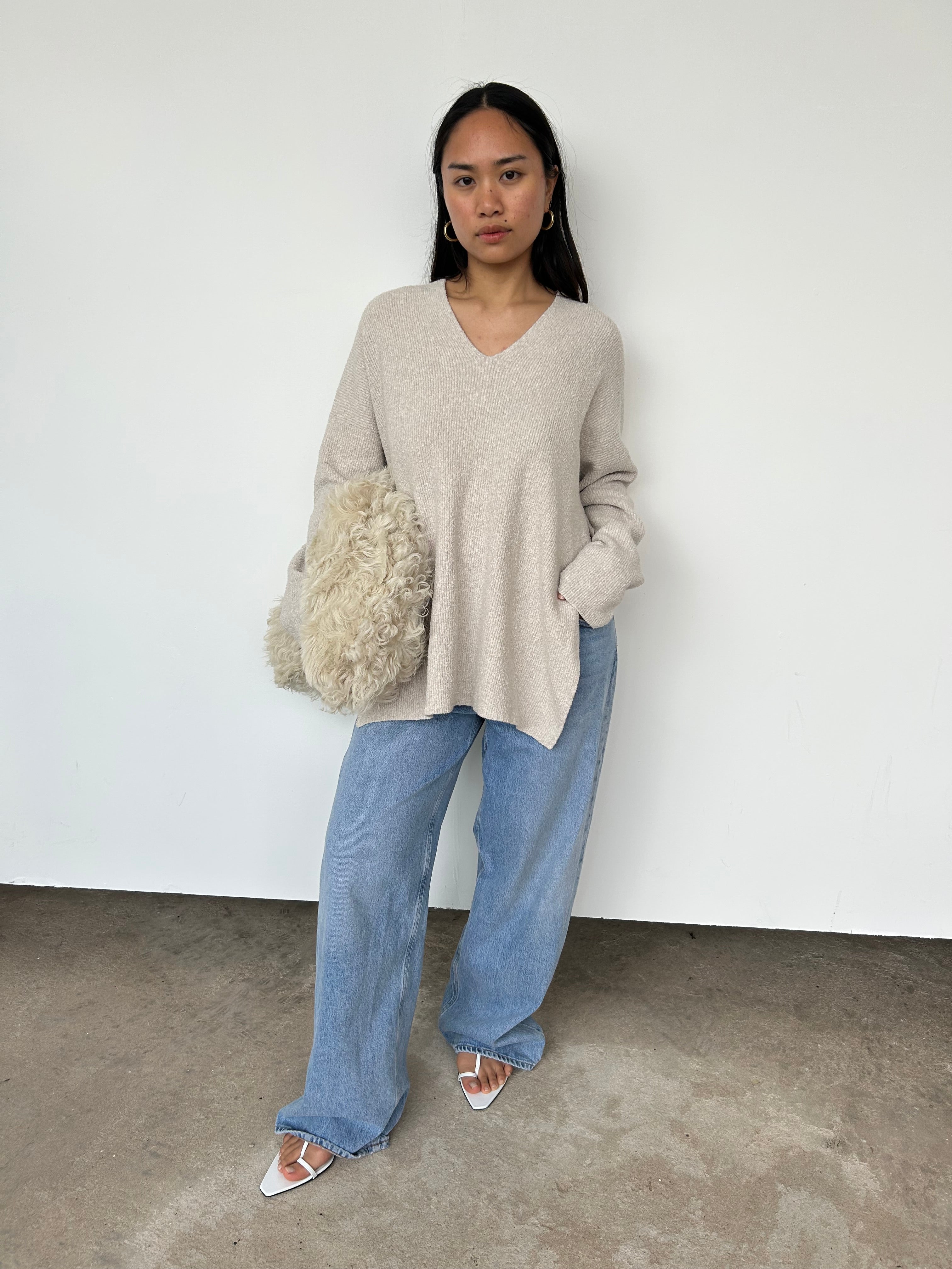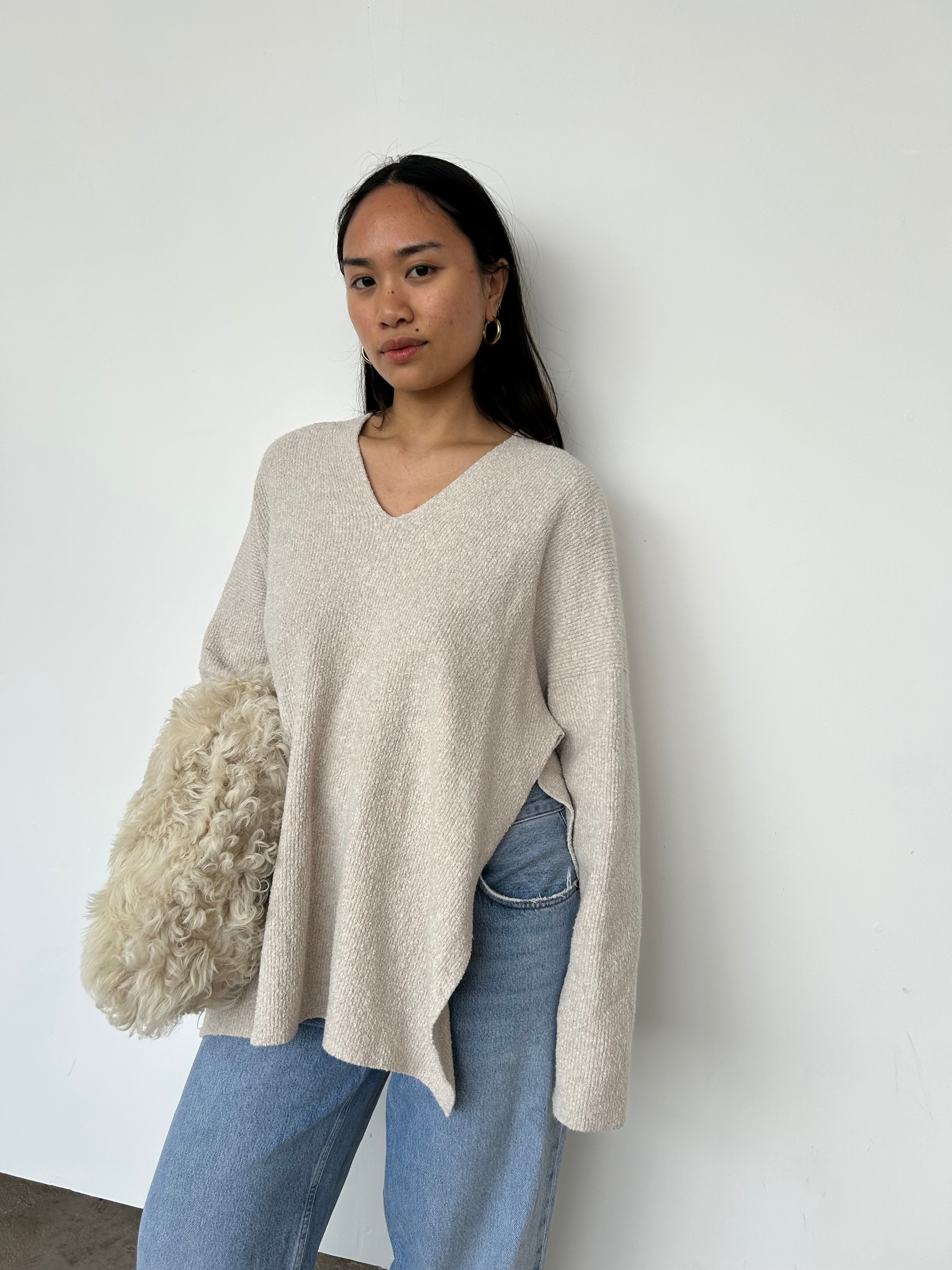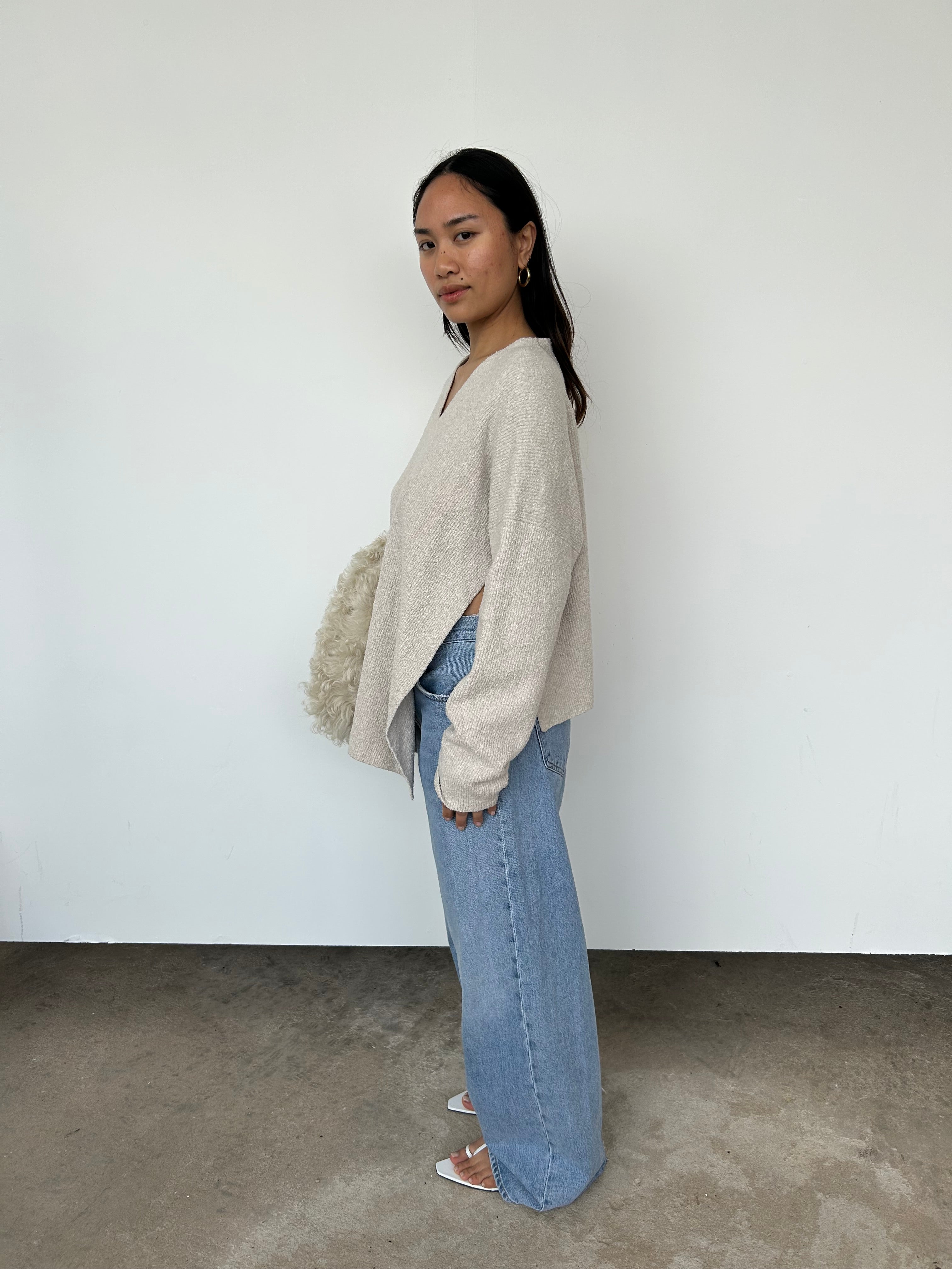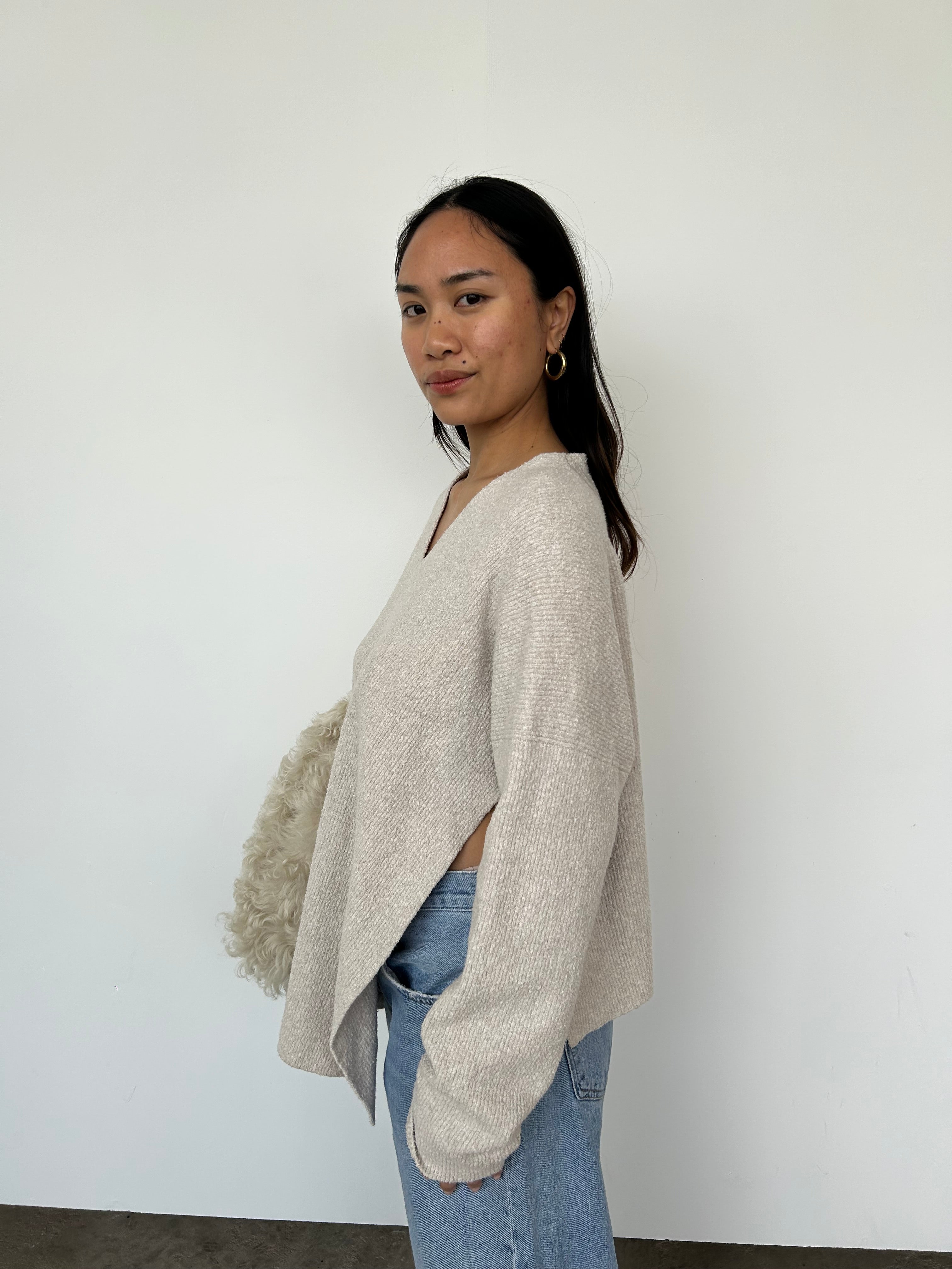 This jumper has splits to each side, as seen.