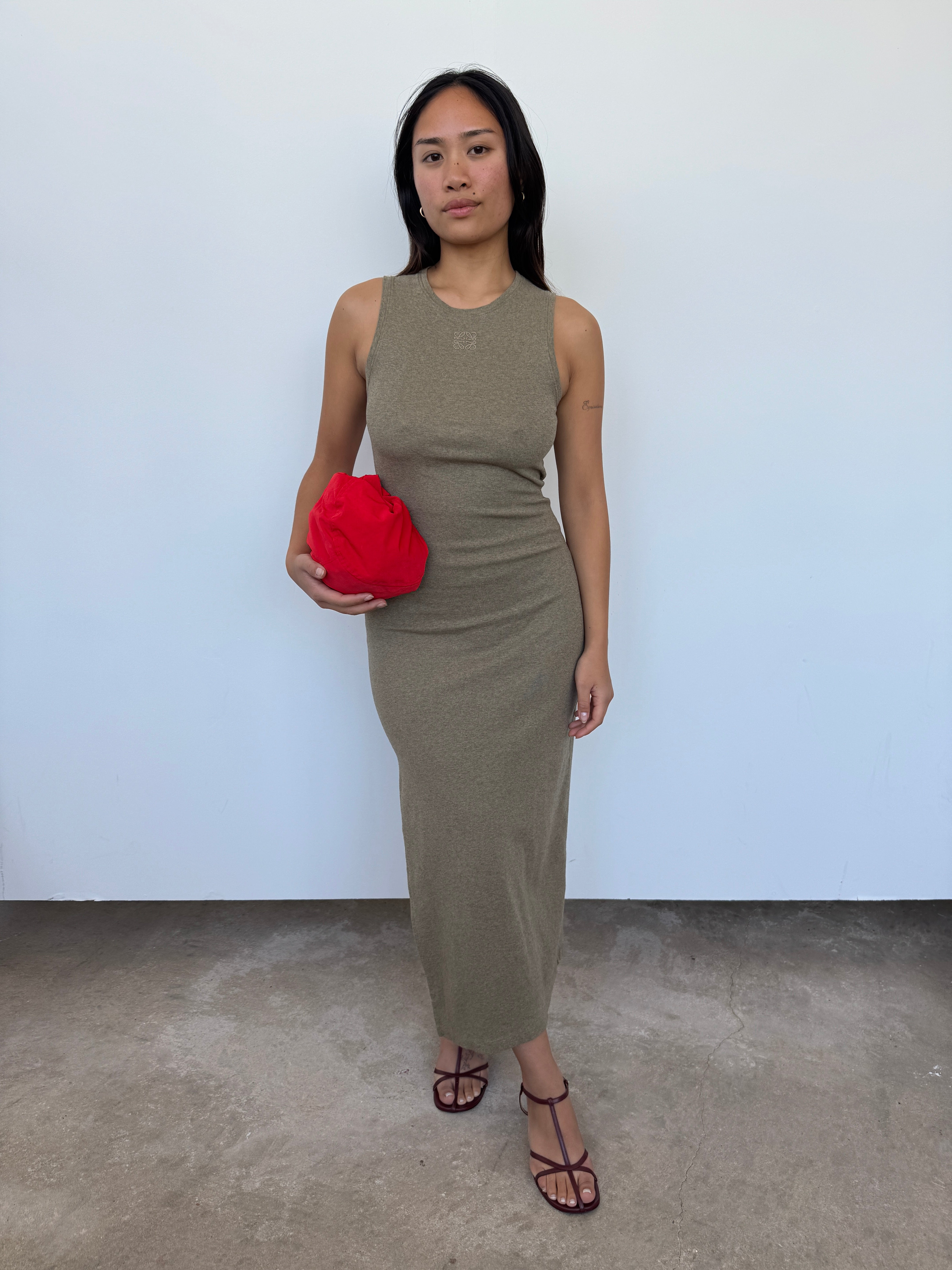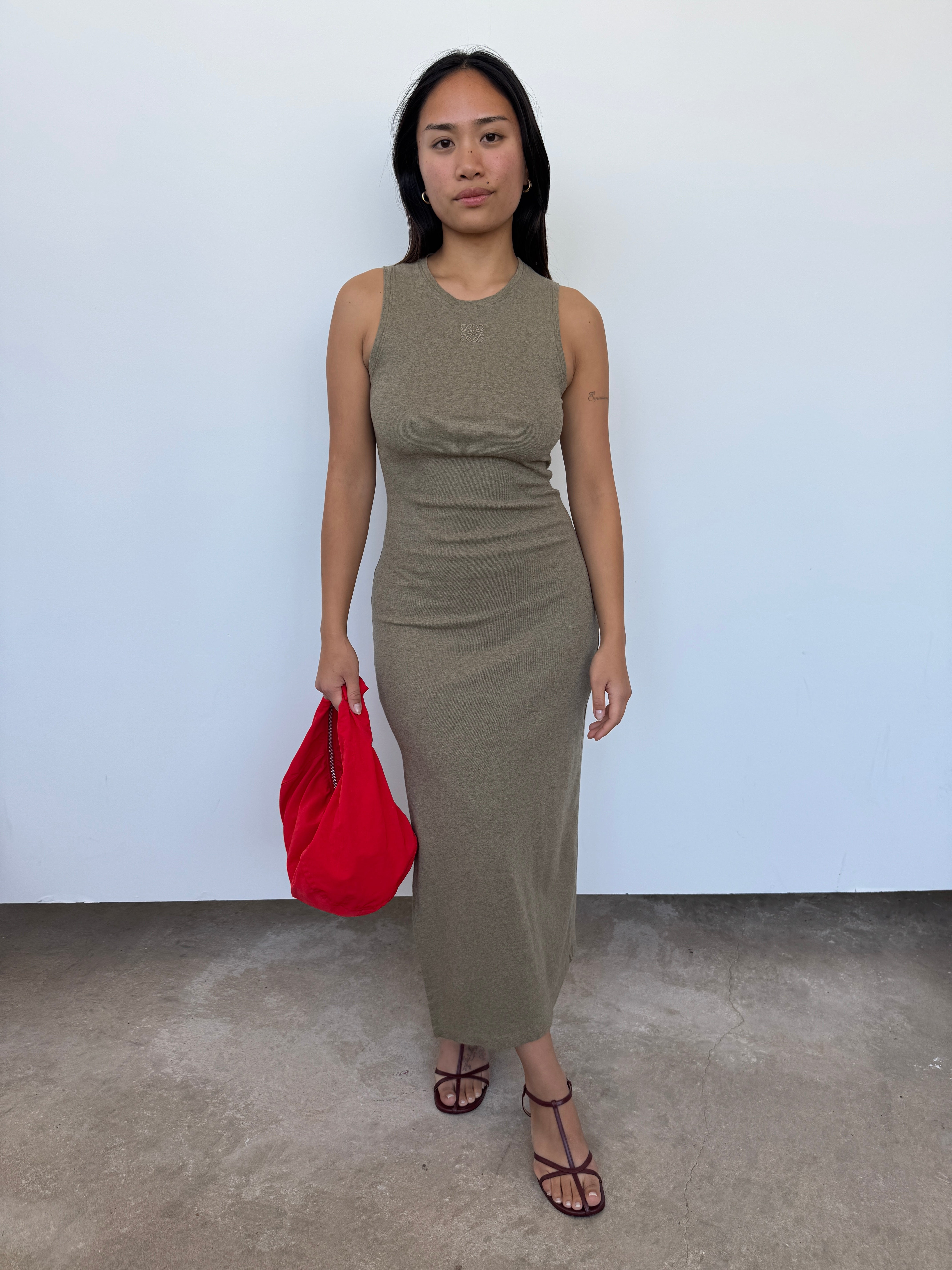 Styles as simple as Loewe's maxi dress shouldn't be overlooked, as they form the foundation of your wardrobe. It's knitted from lightweight jersey with an 'Anagram' logo embroidered at the neckline.