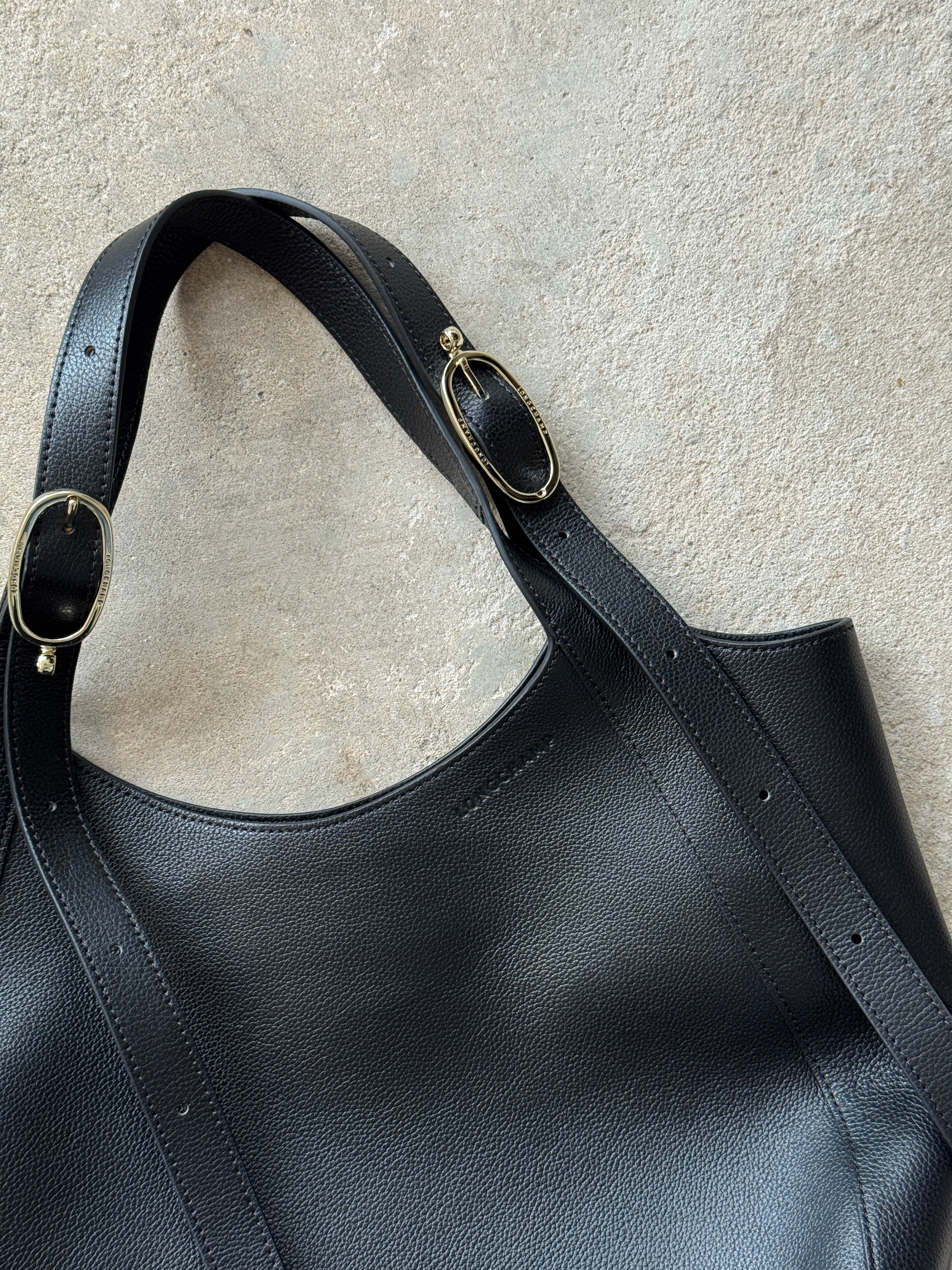 Longchamp Black Extra Large Leather Le Foulonné Top-Handle Bag