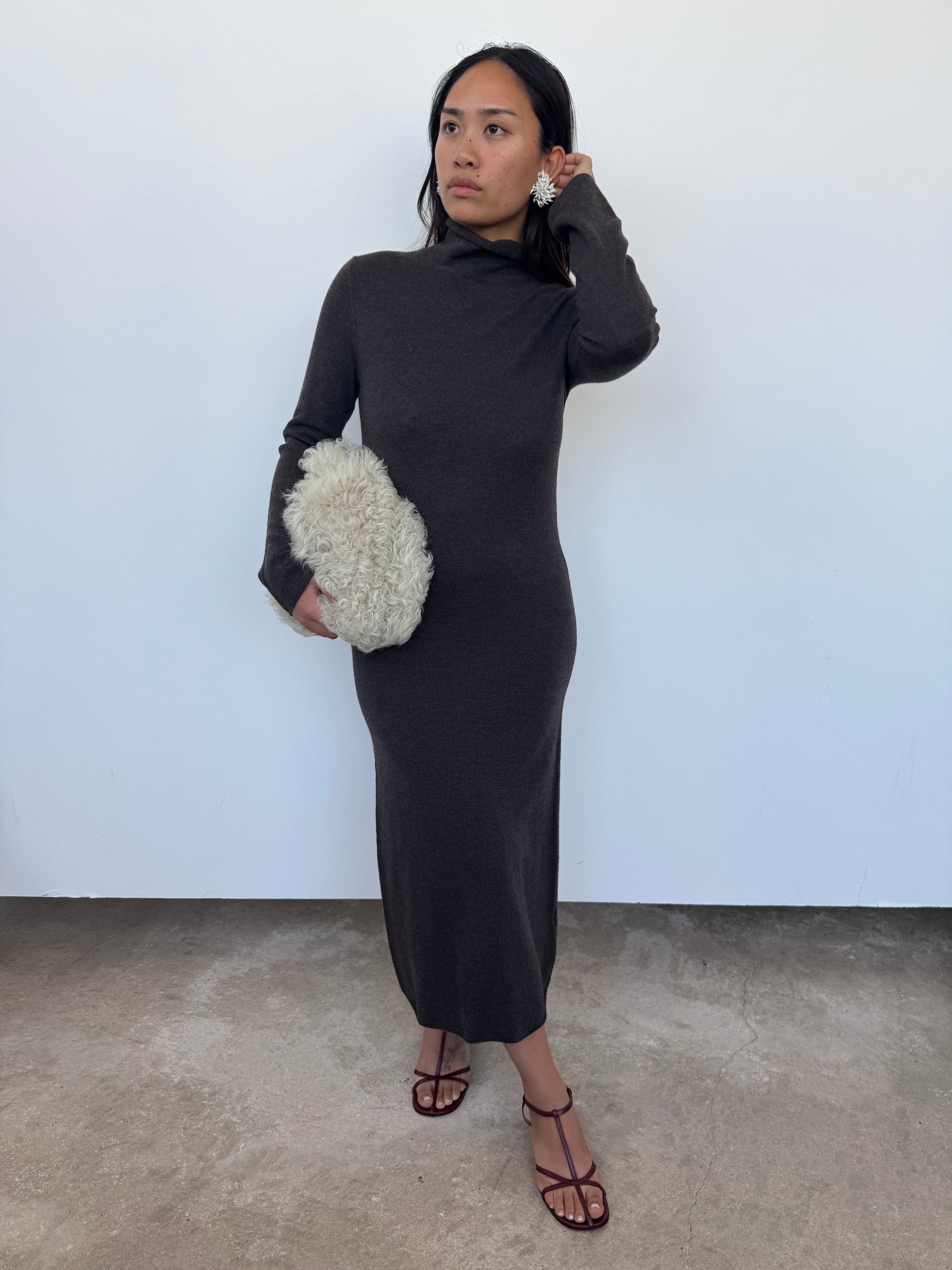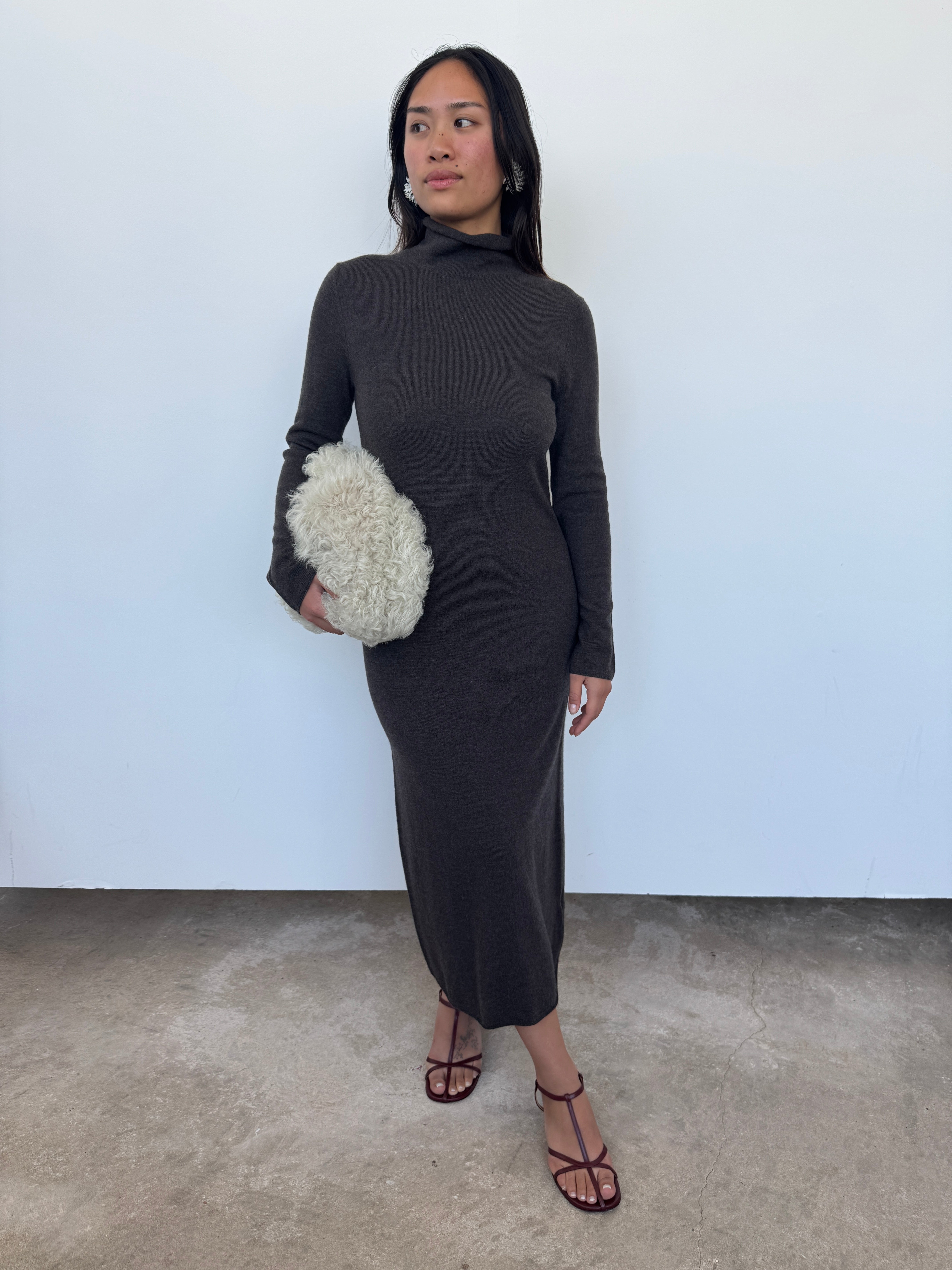 Marcela London Brown Roll Neck Knit Maxi Dress | UK8-12