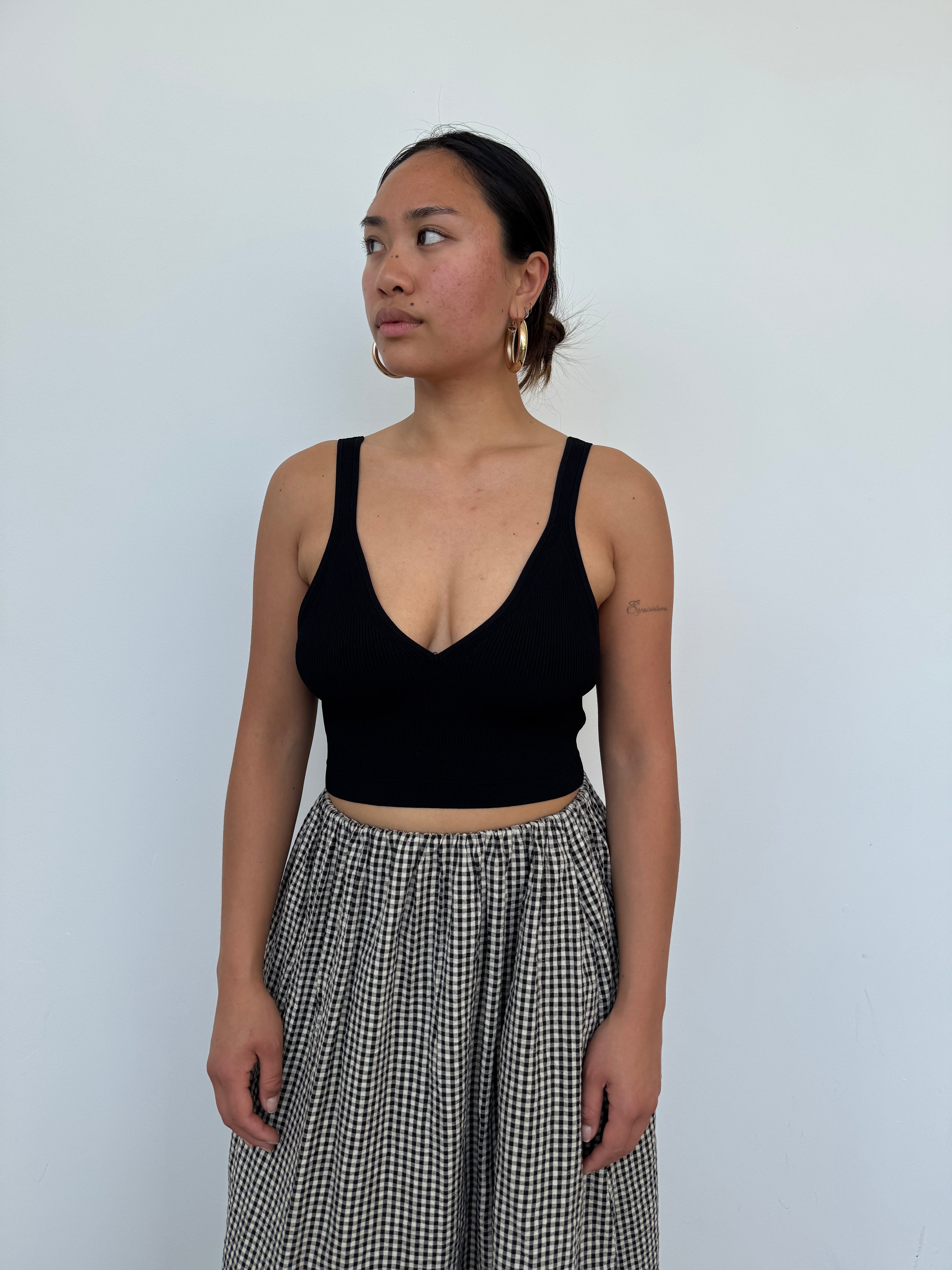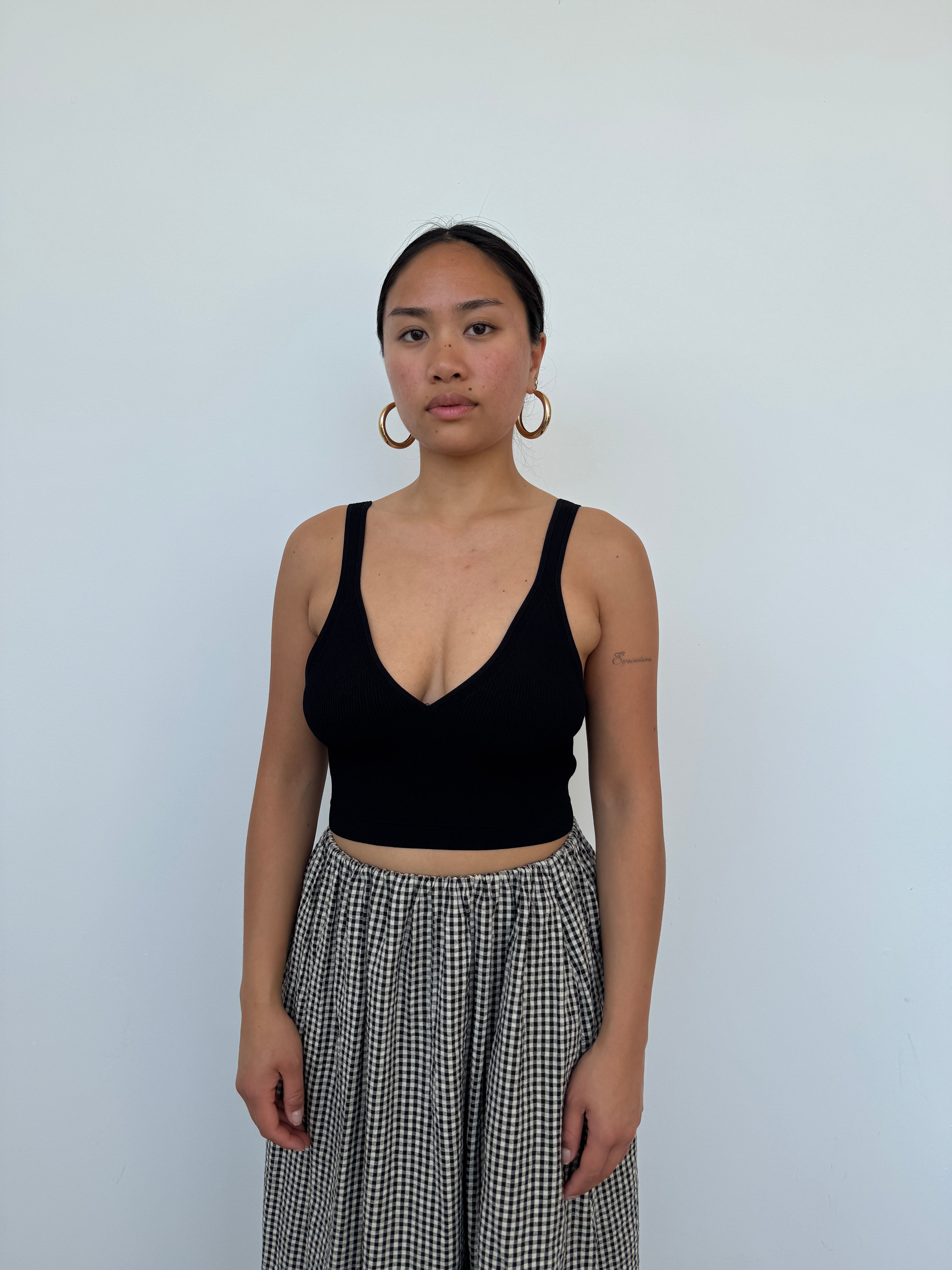Maria Mcmanus Black Ribbed Cropped Top | L