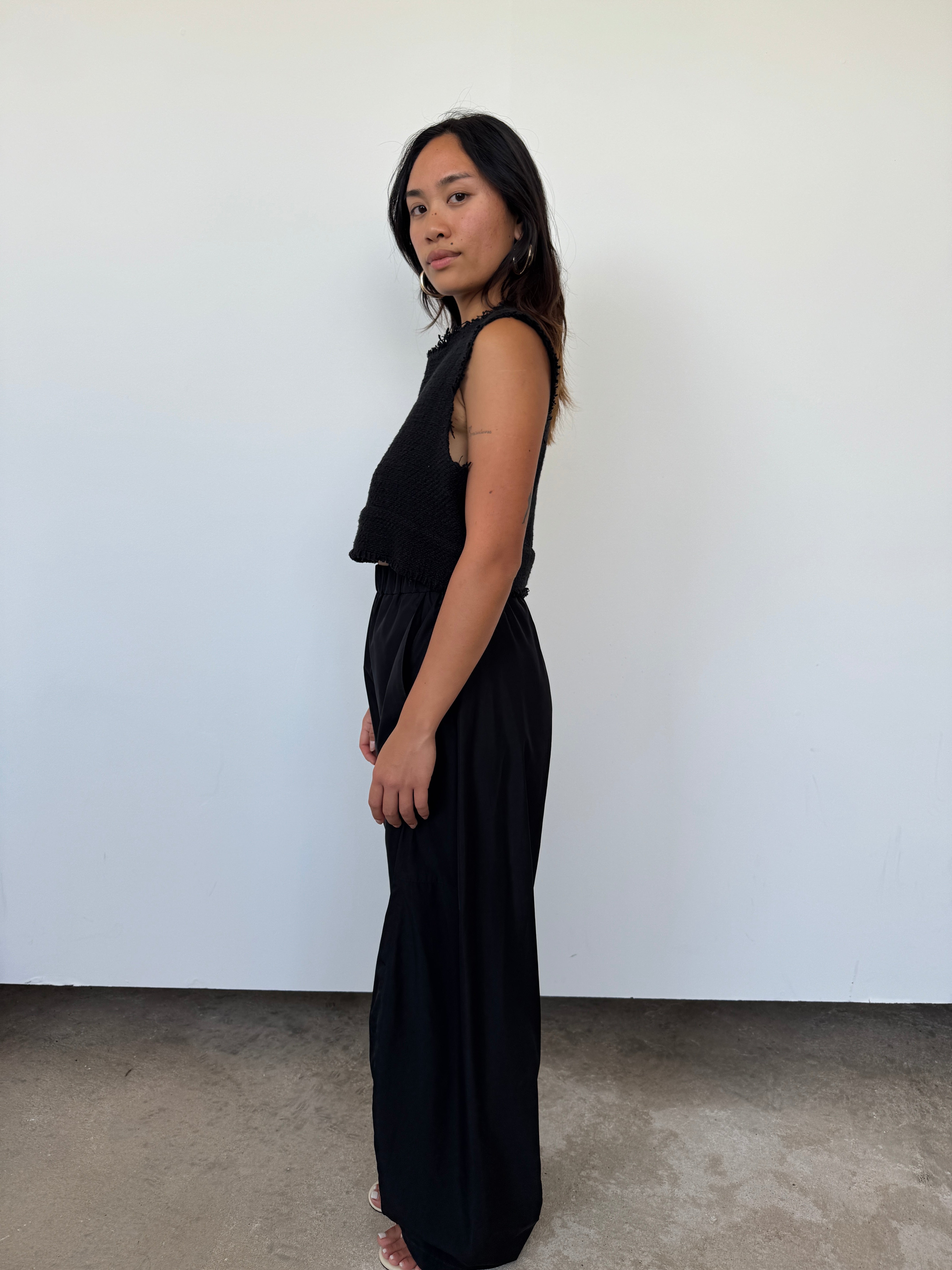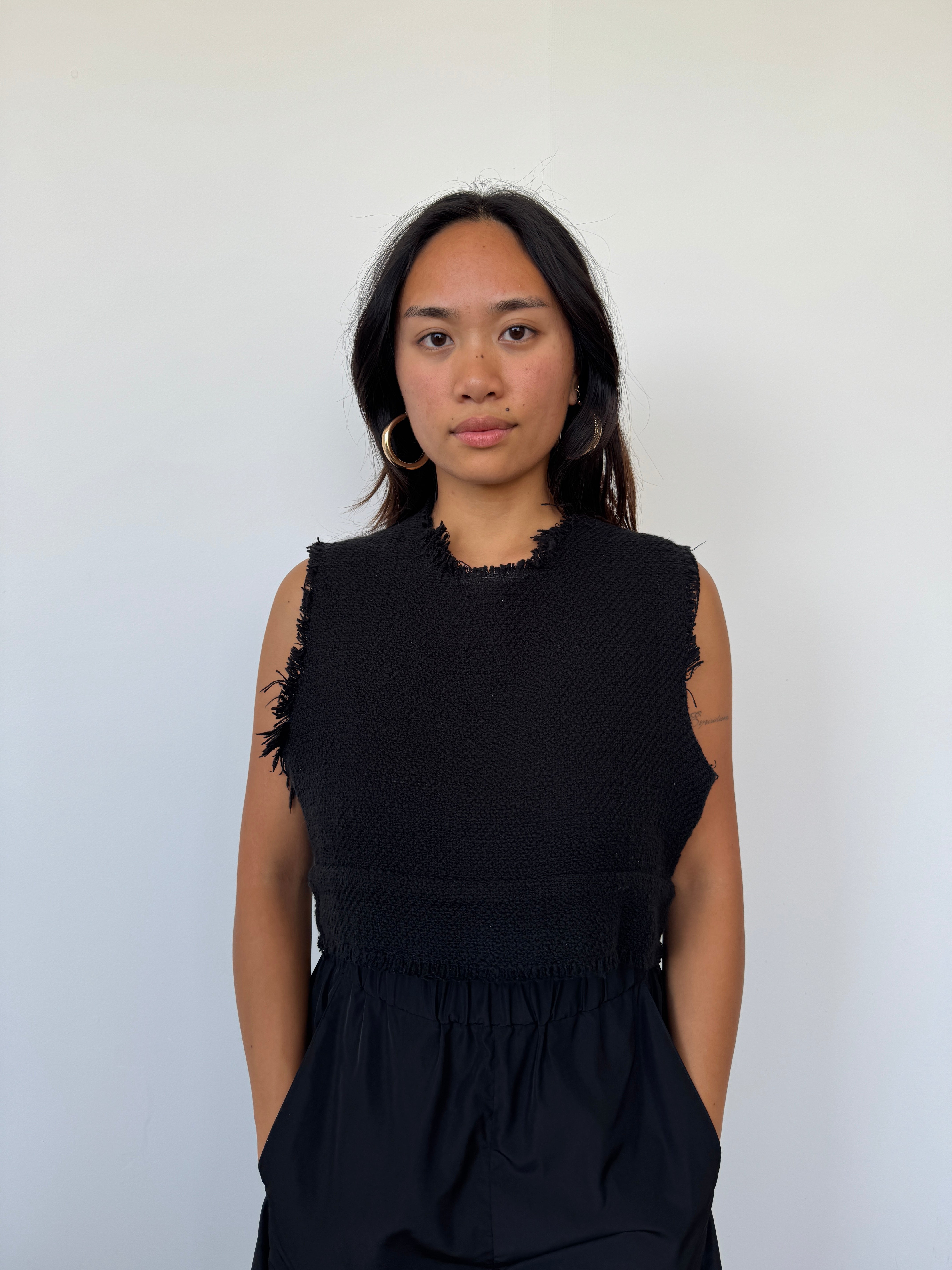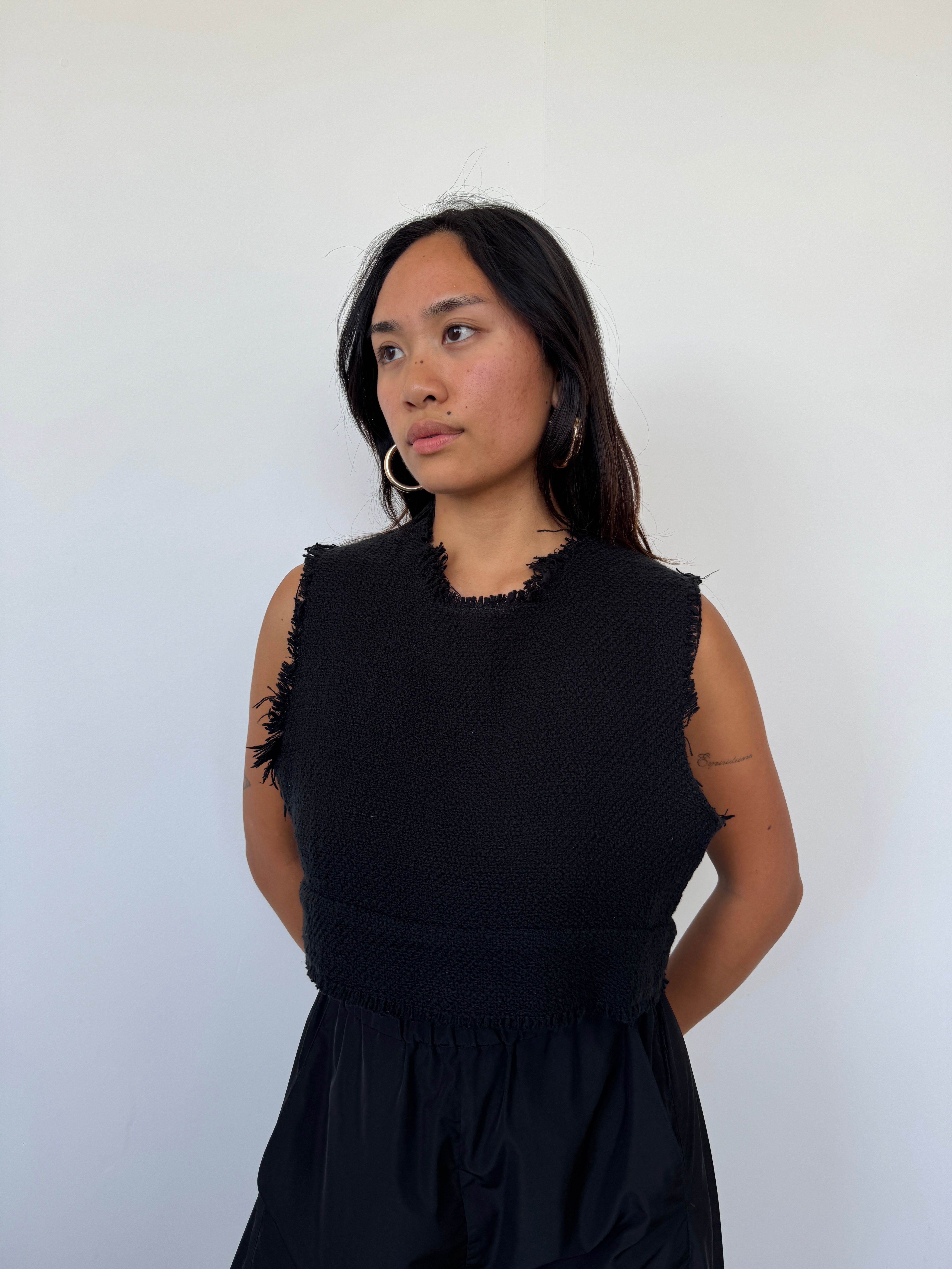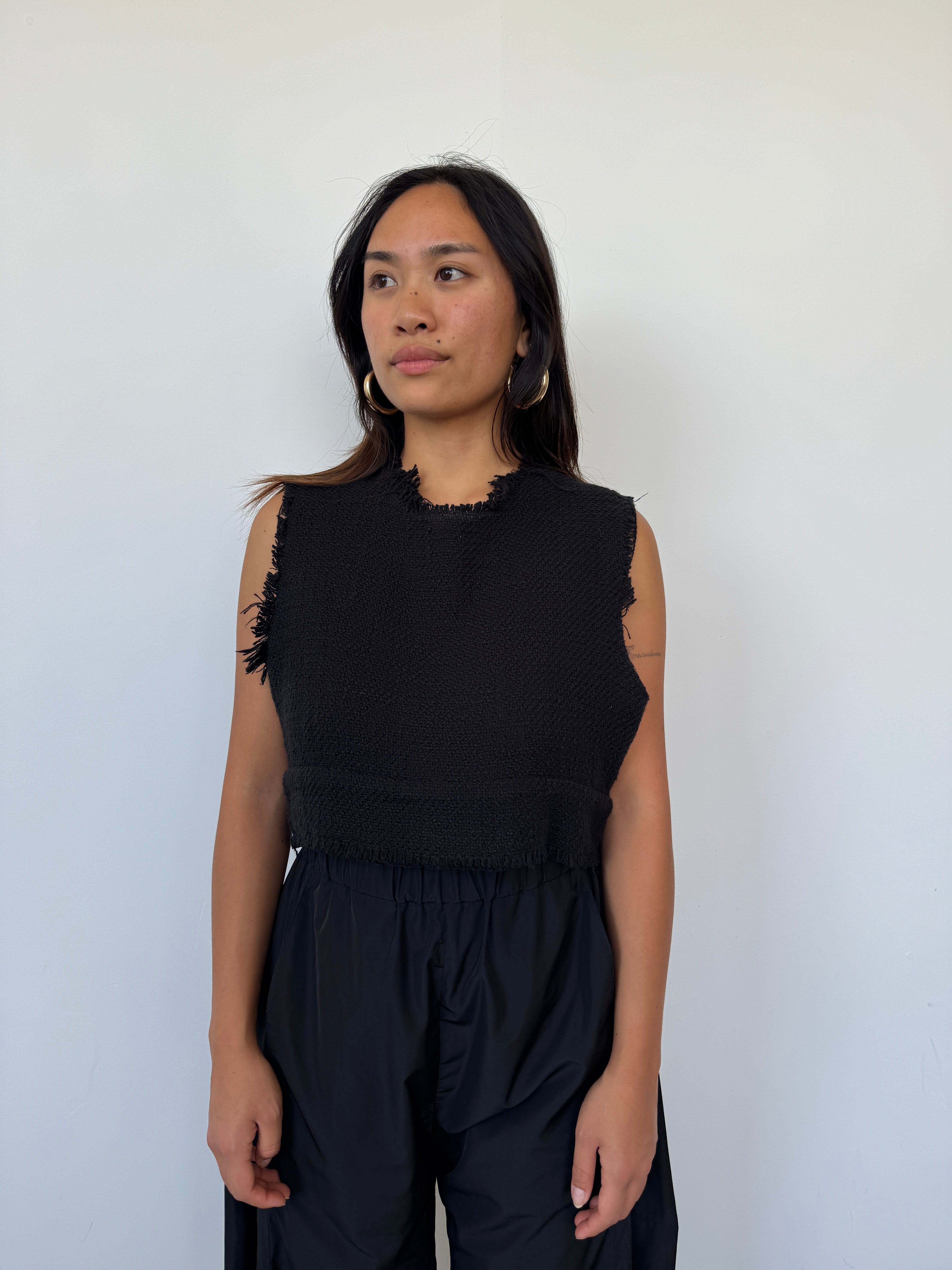 Matin Black Frayed Crop Top | UK10