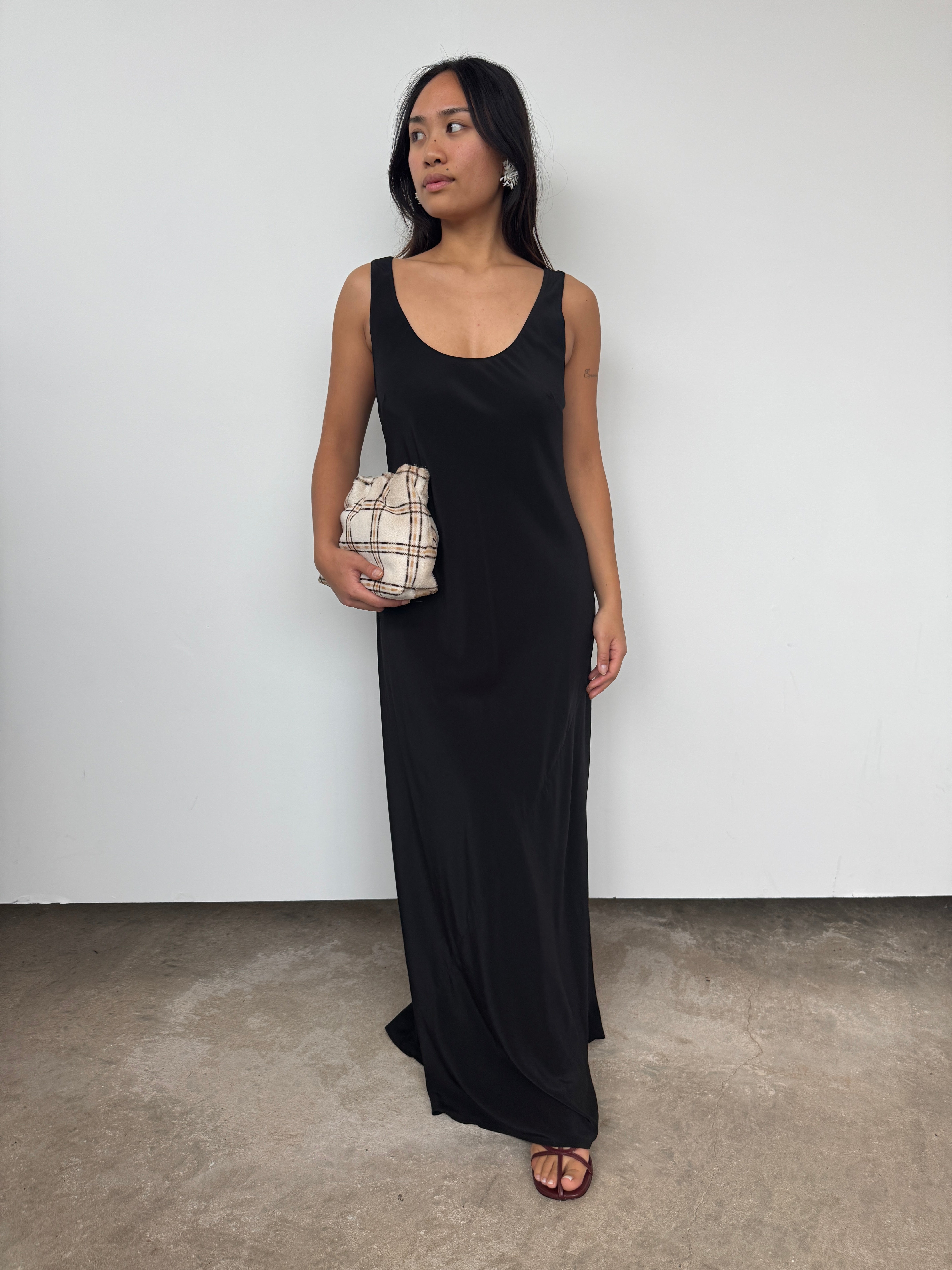 Matteau Black Silk Bias Tank Dress | UK10
