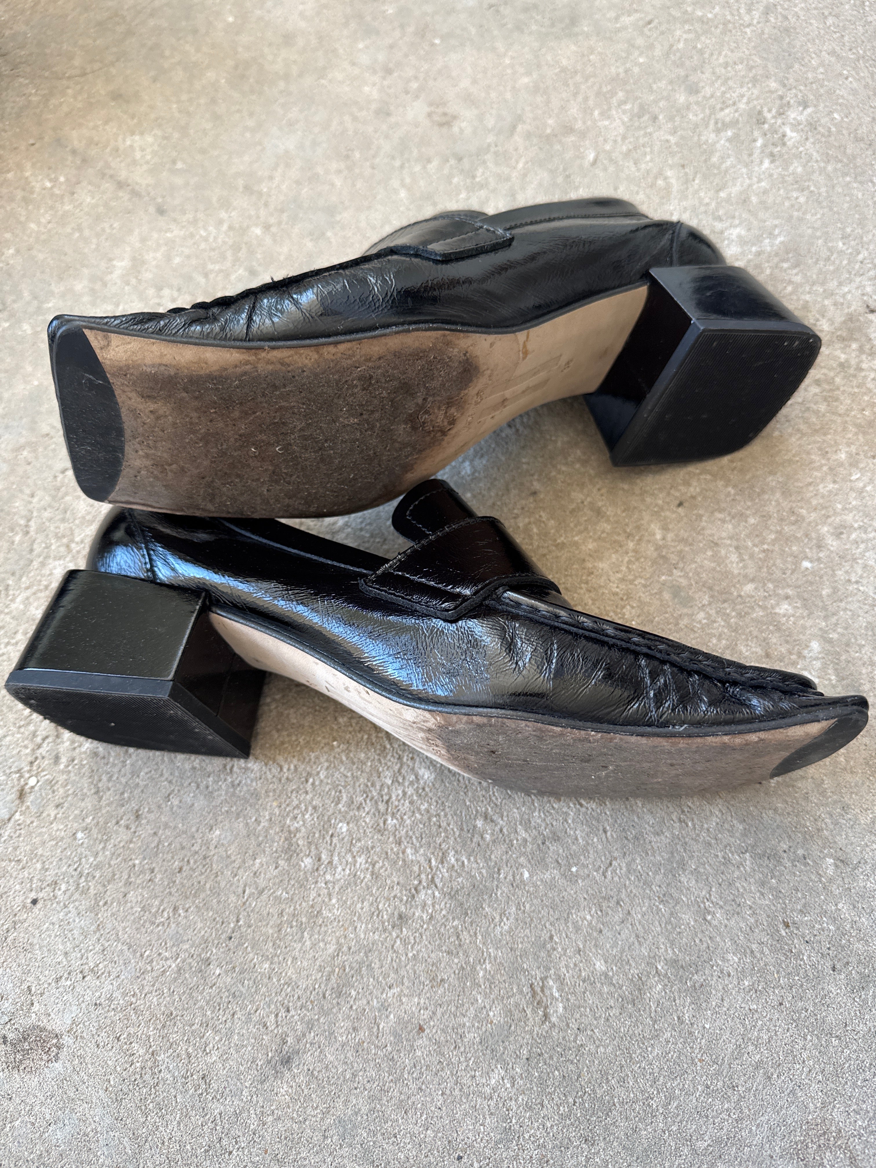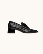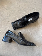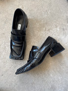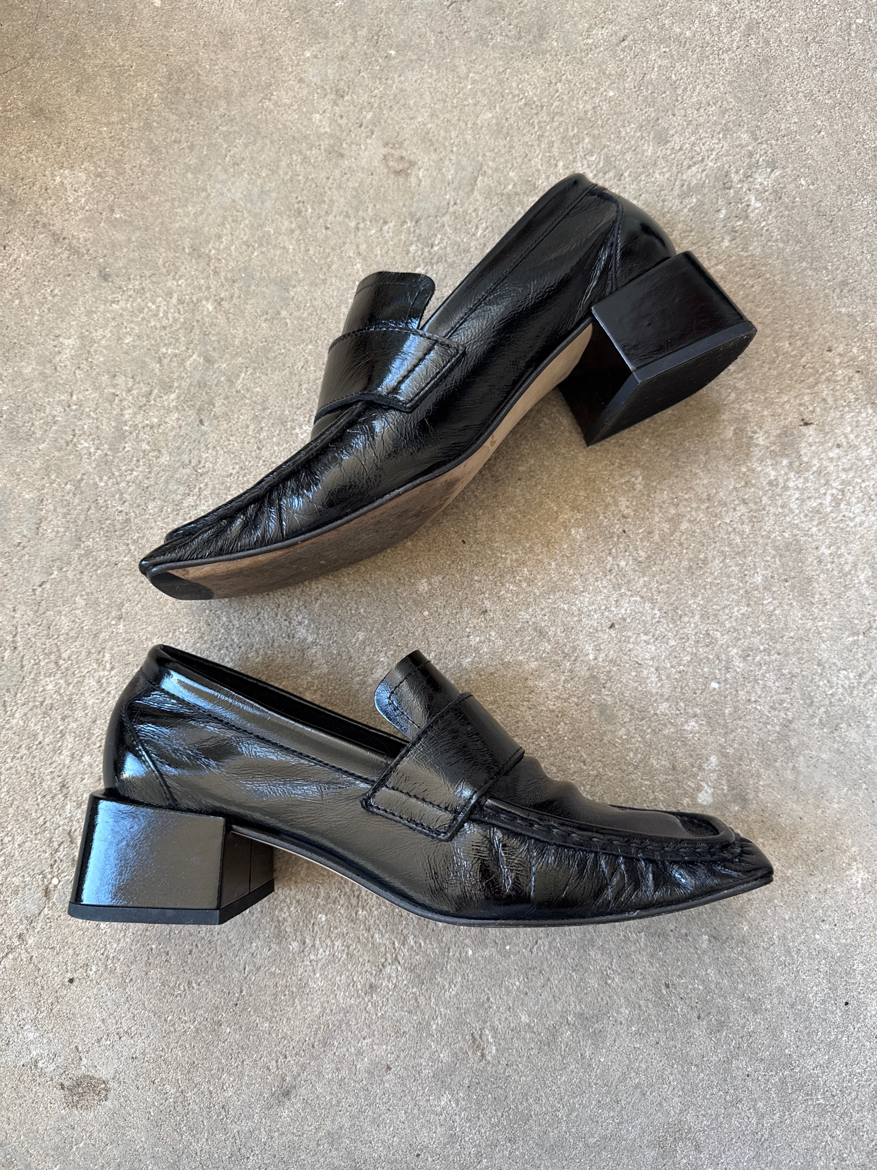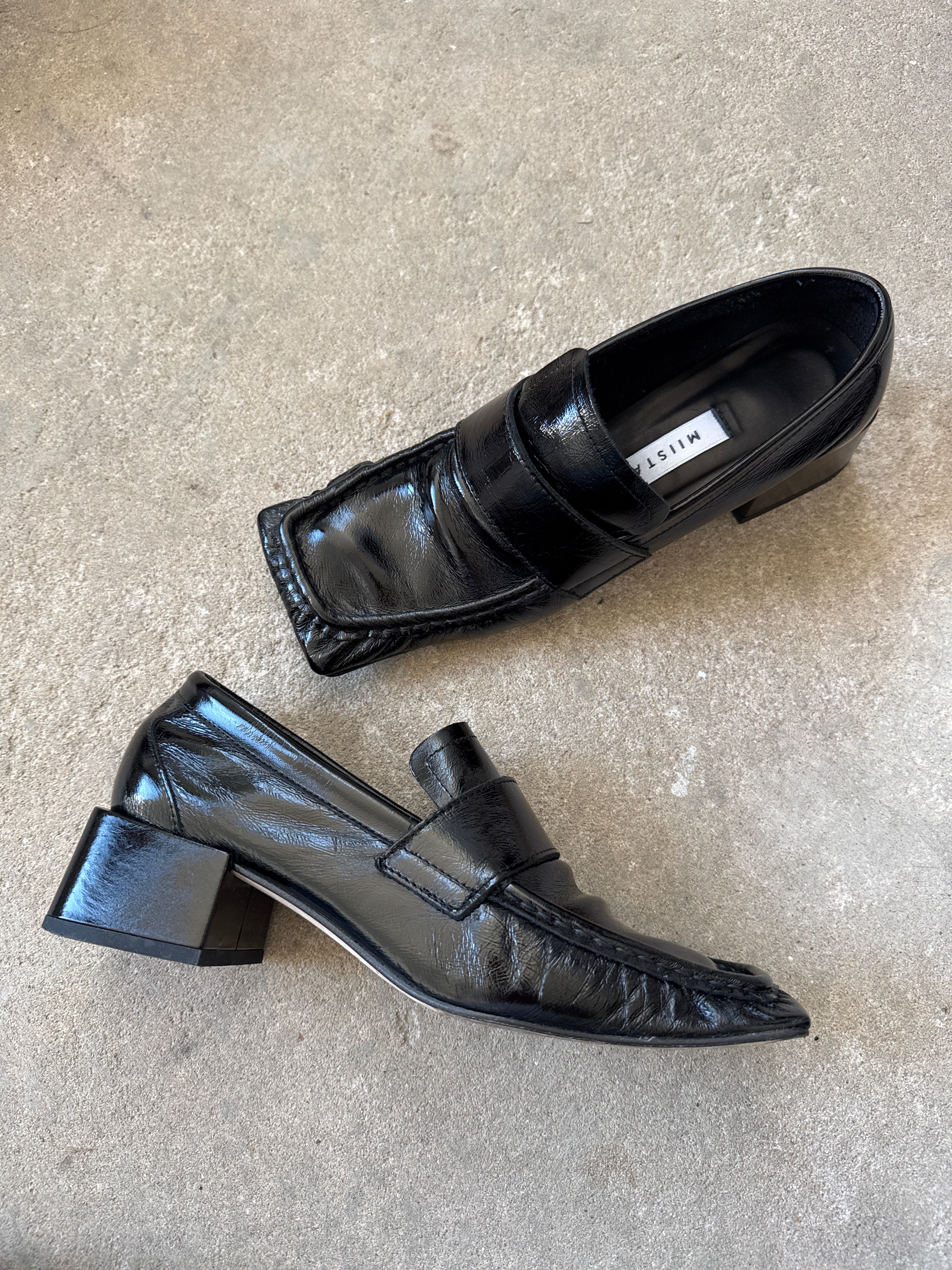 Serena's a staple heeled loafer – iconic and bold, but your go-to goes-with-everything best friend for everyday wear. Her vanilla patent leather upper features a ruched frontage, hand-stapled to her extended, leading up to a thick strap across the tongue to keep you grounded. Her leather coated heel sits at a low-mid height, finished with a rubber heel cap for durability. Serena's complete with memory foam insoles and vegetable tan cow leather lining for enhanced comfort, plus a rubber heel and a rubber-invected toe.