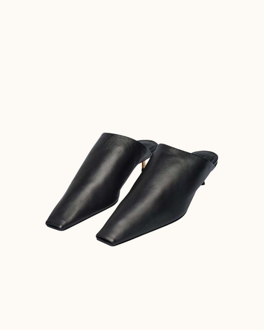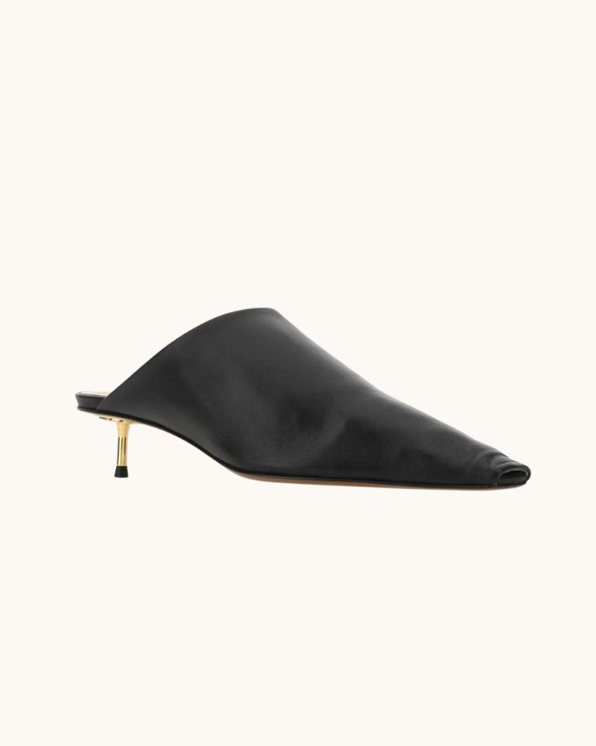 A contemporary take on the classic mule, the Shakka has a gold detail kitten heel and is crafted from supple Nappa. The angular shape means this shoe style is the perfect companion for pants.