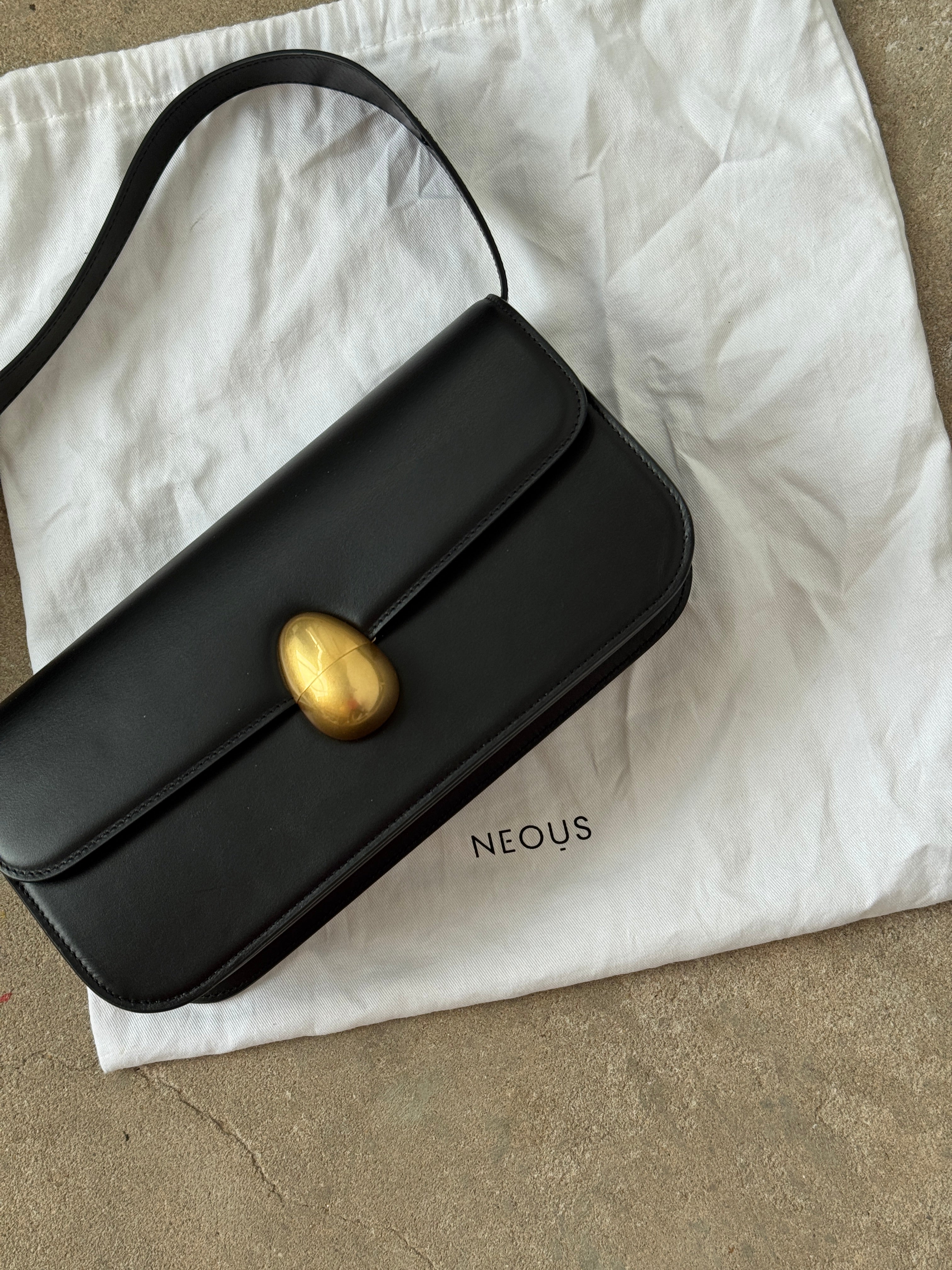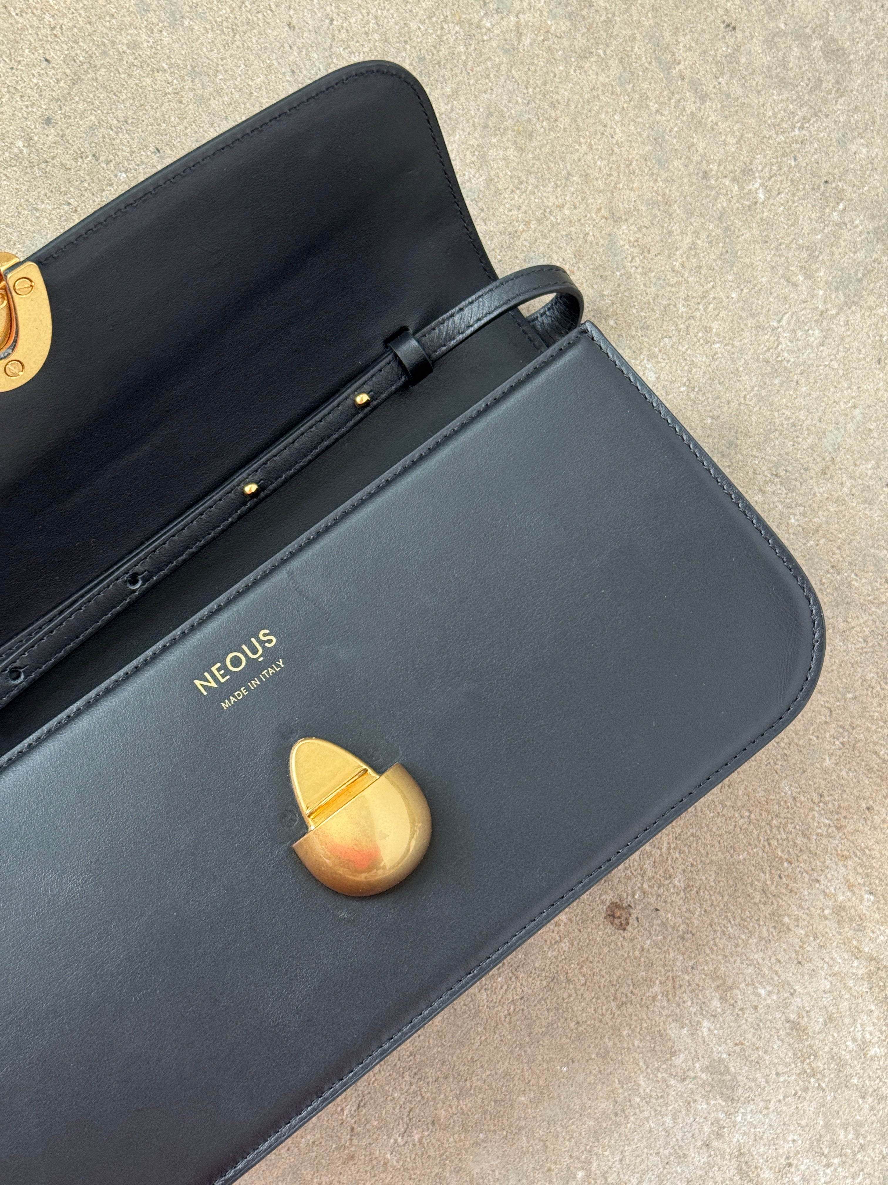 An elongated version of the classic PHOENIX, the shoulder bag is complete with an adjustable strap that can be worn at the shoulder or removed entirely and transformed into a clutch. Secured by NEOUS’ signature egg magnetic closure, the gusset creates a roomy interior divided into two compartments.