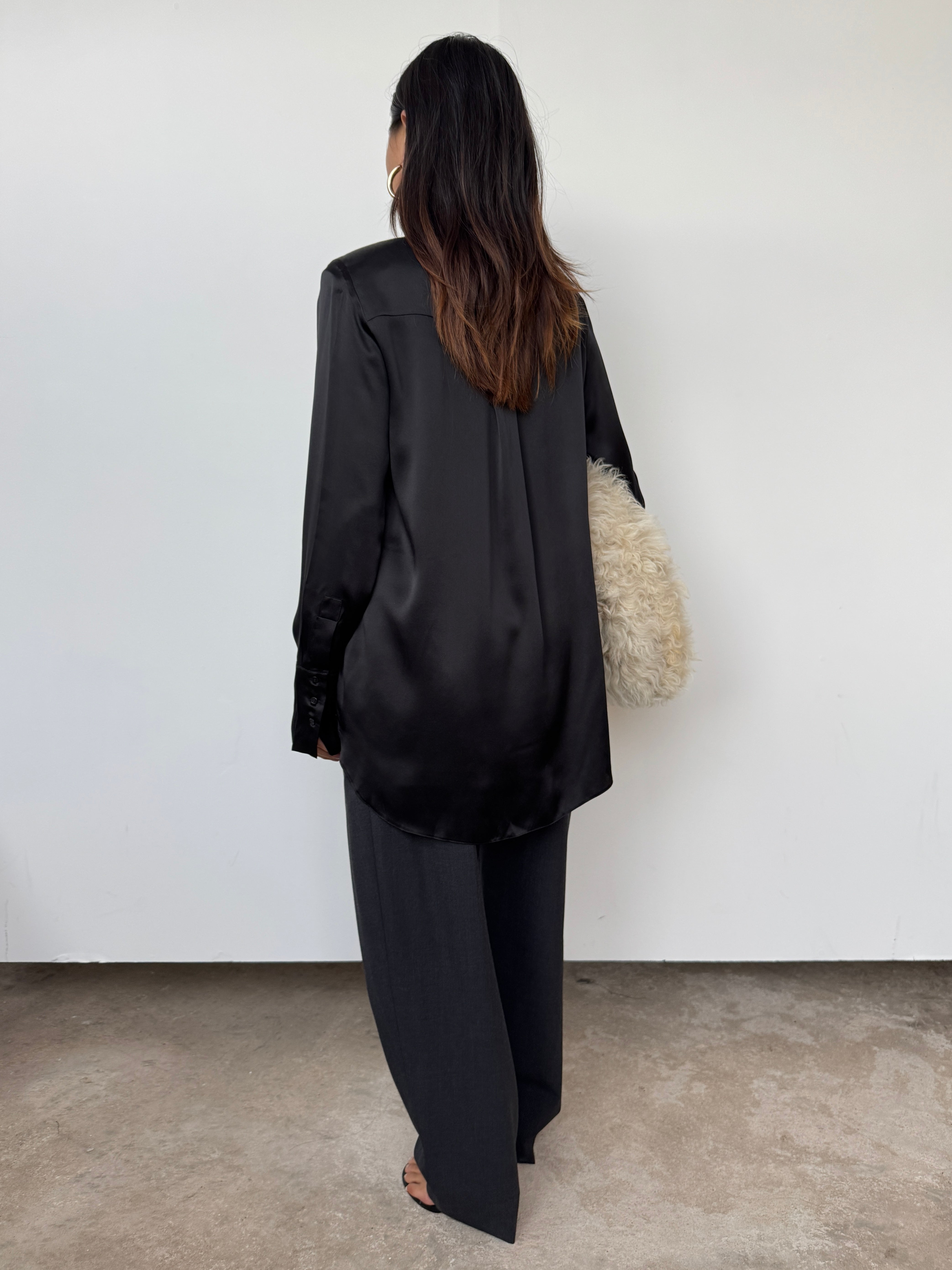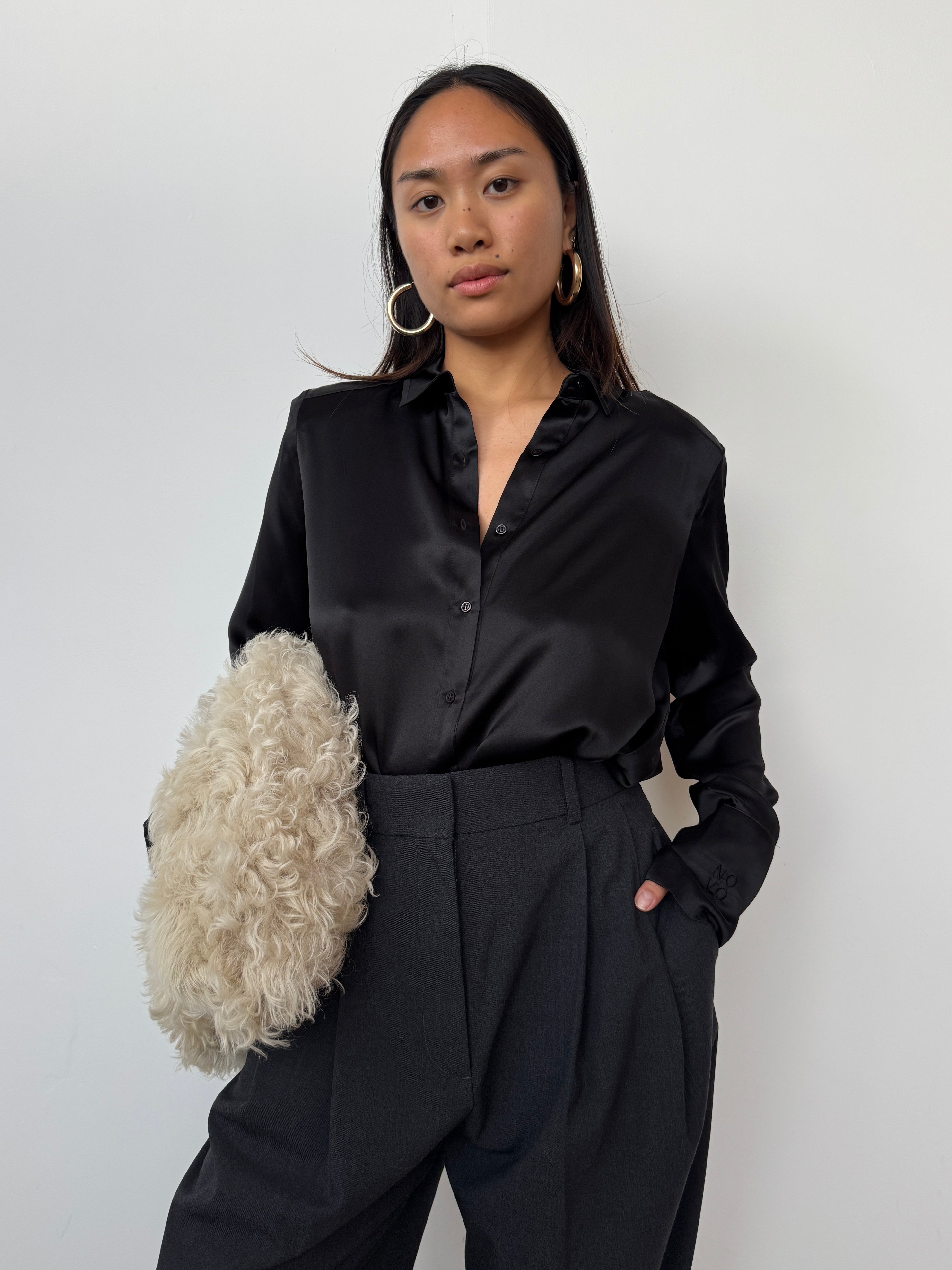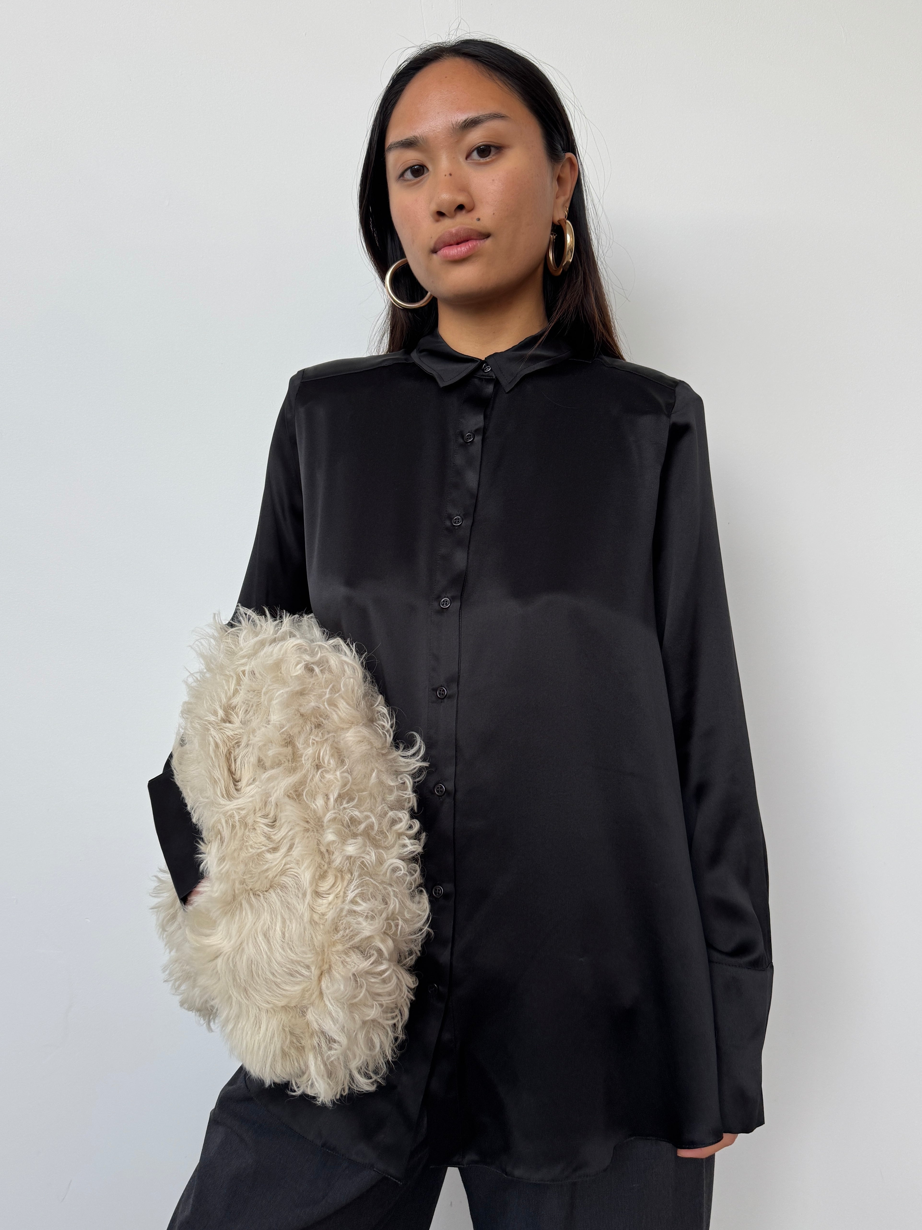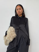 NOVO CURATED Black Oversized 100% Premium Silk Shirt | UK6, UK8