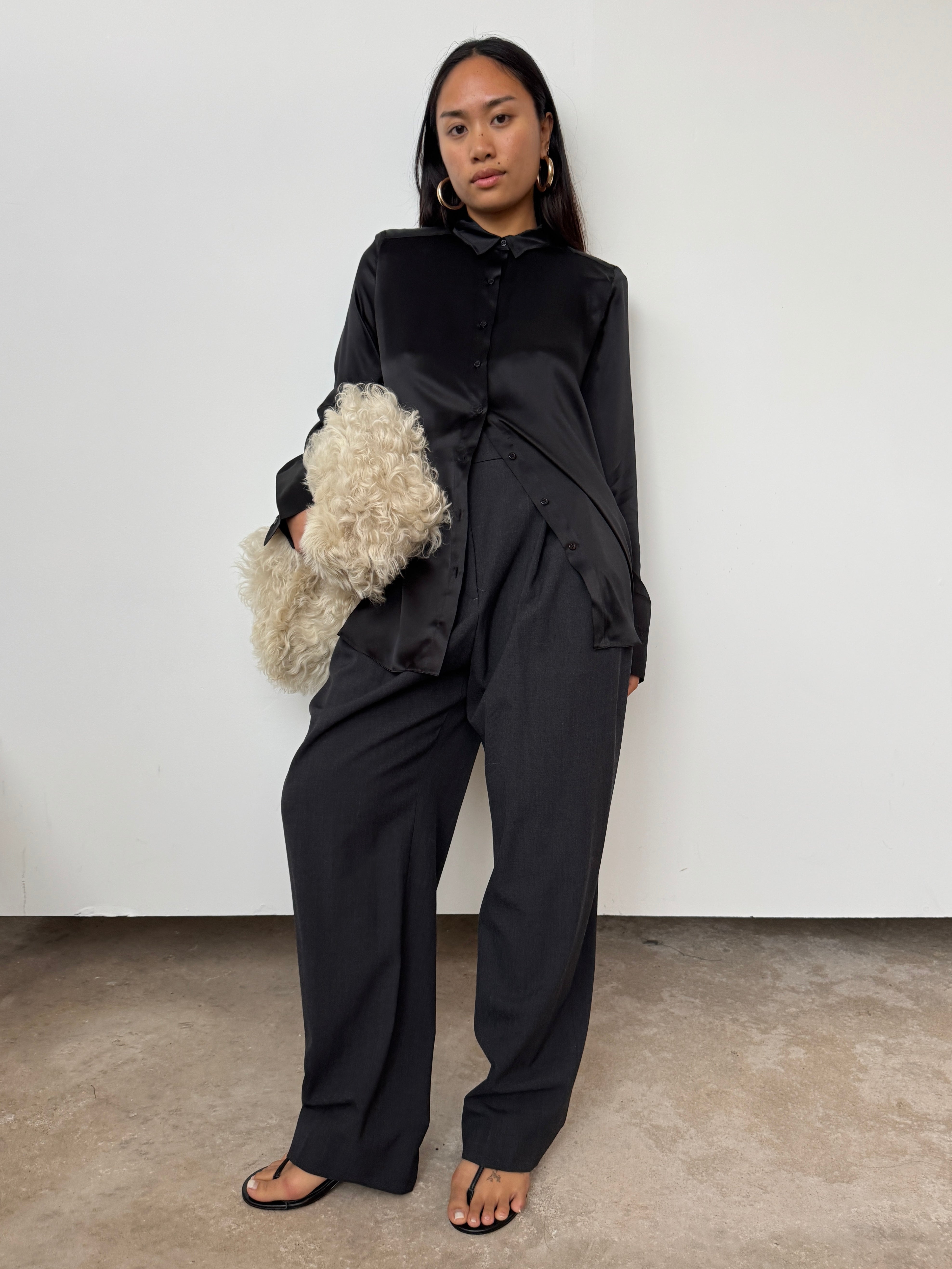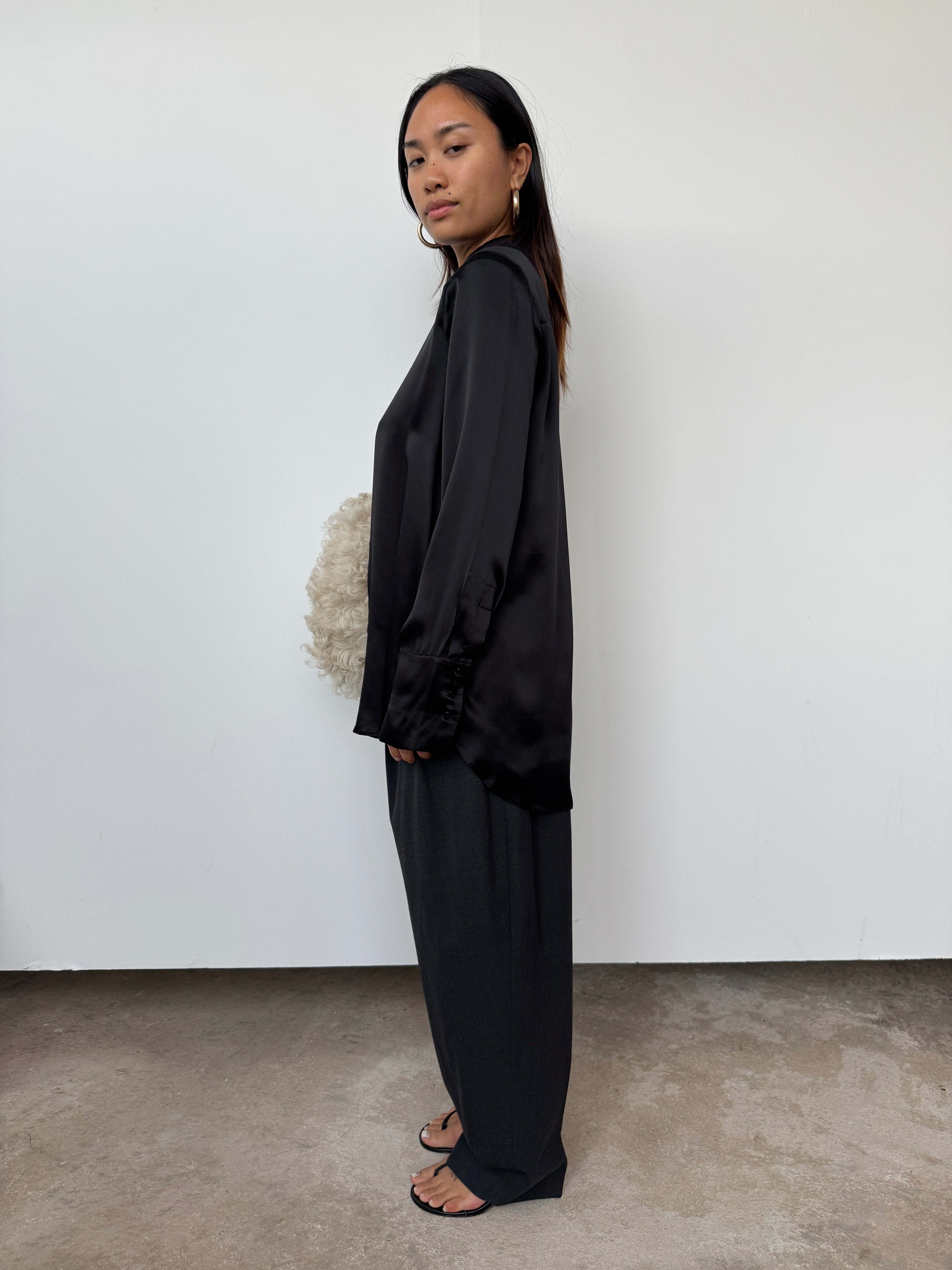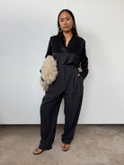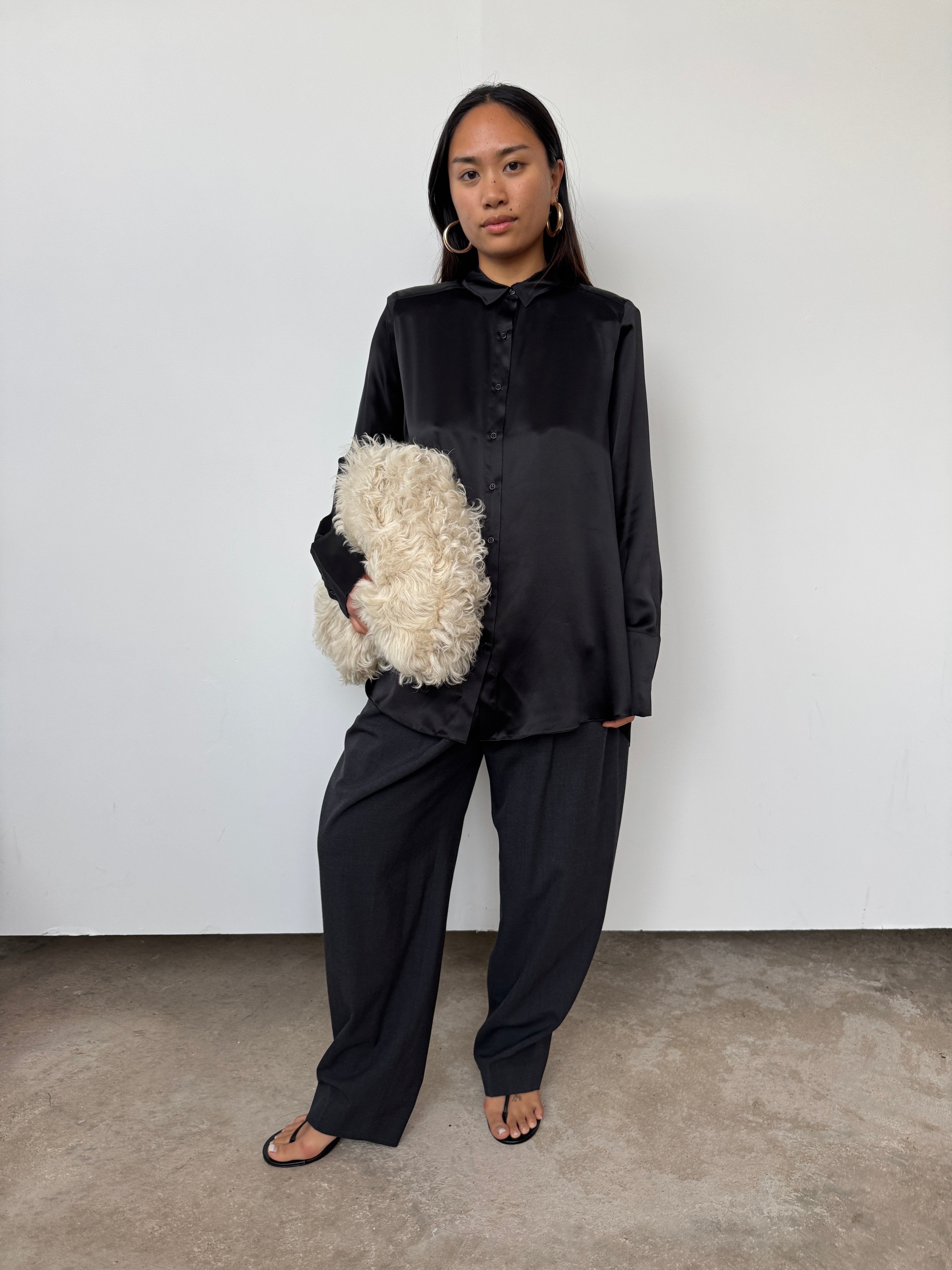 NOVO CURATED Black Oversized 100% Premium Silk Shirt | UK6, UK8