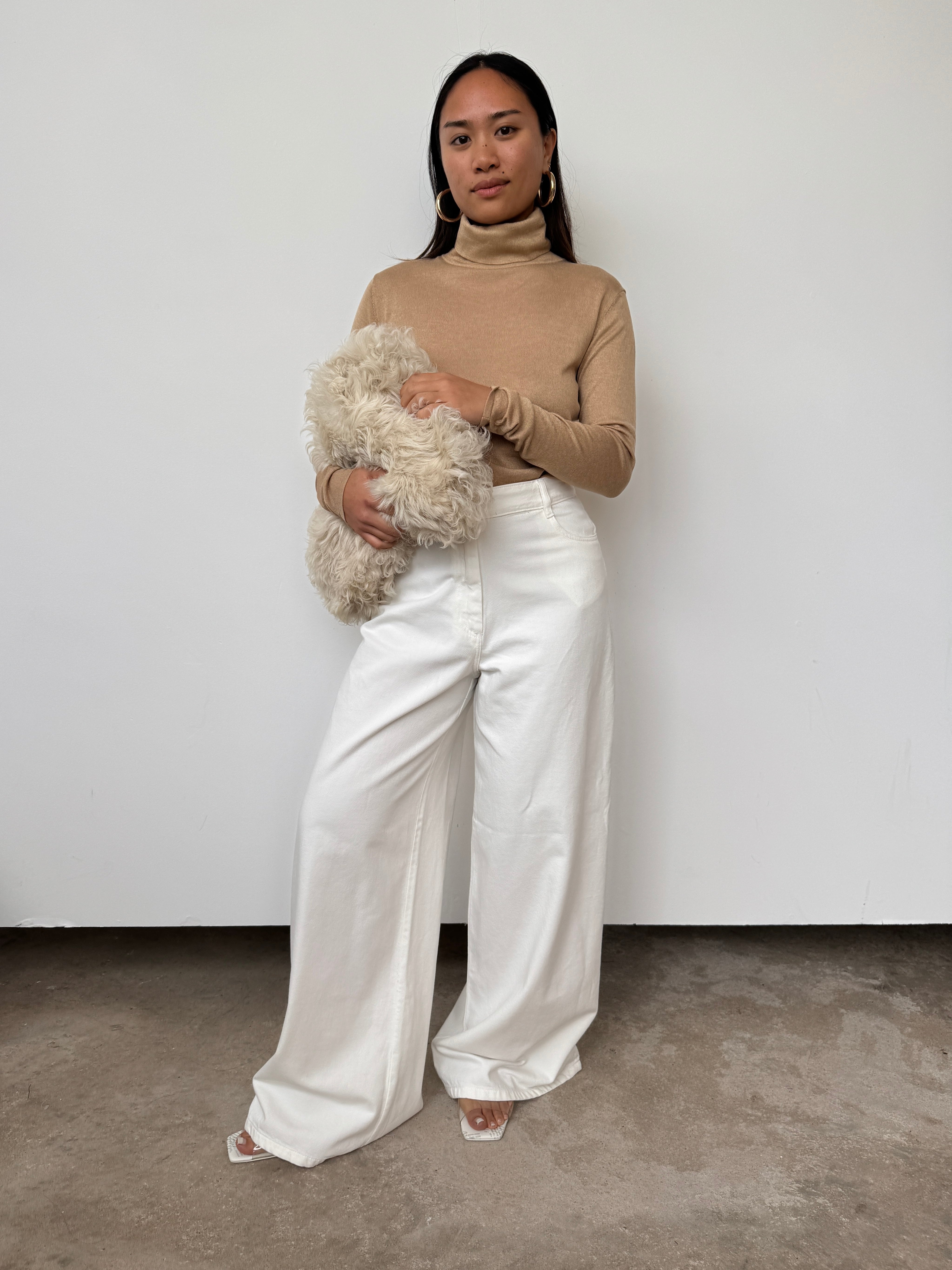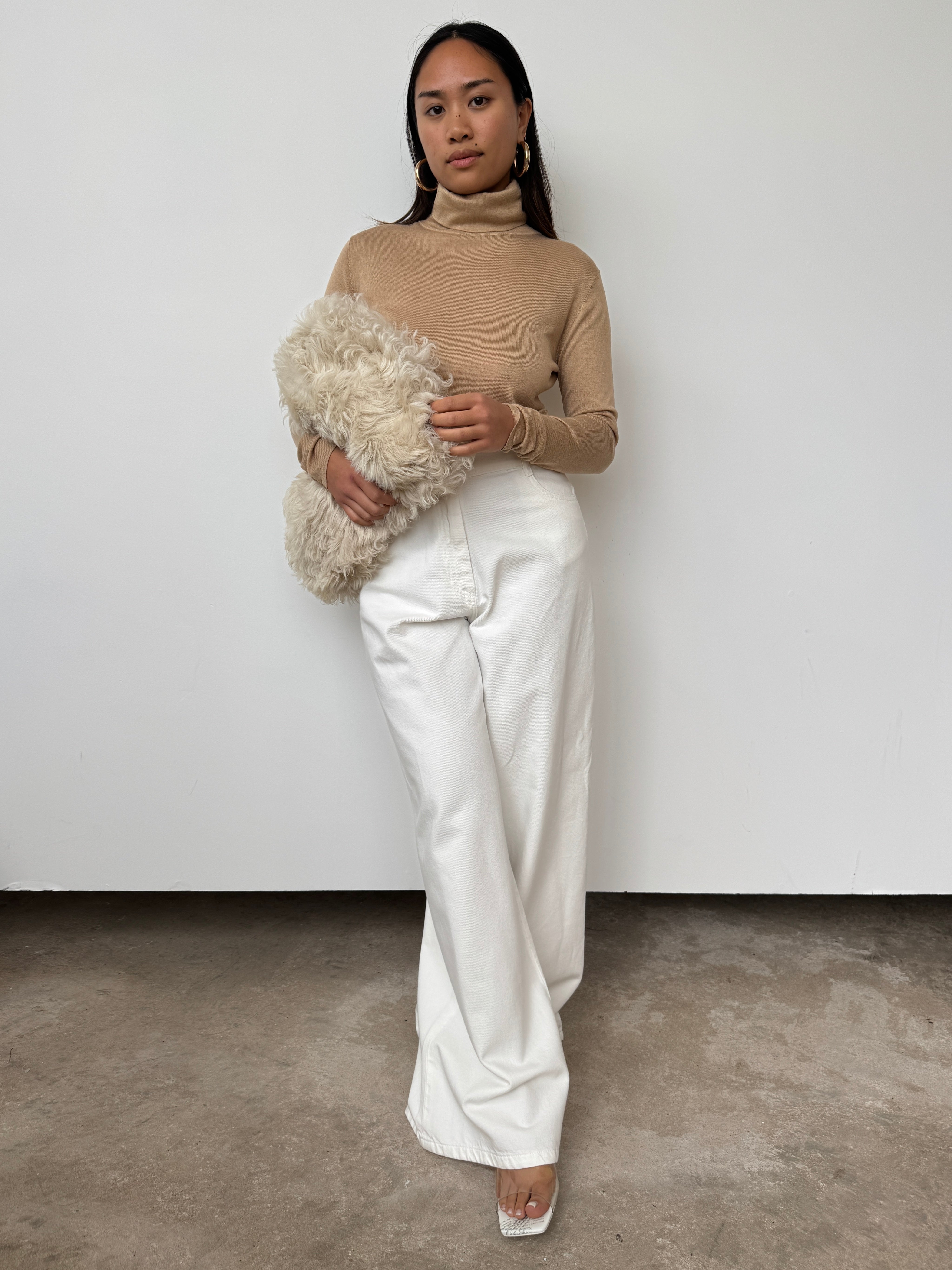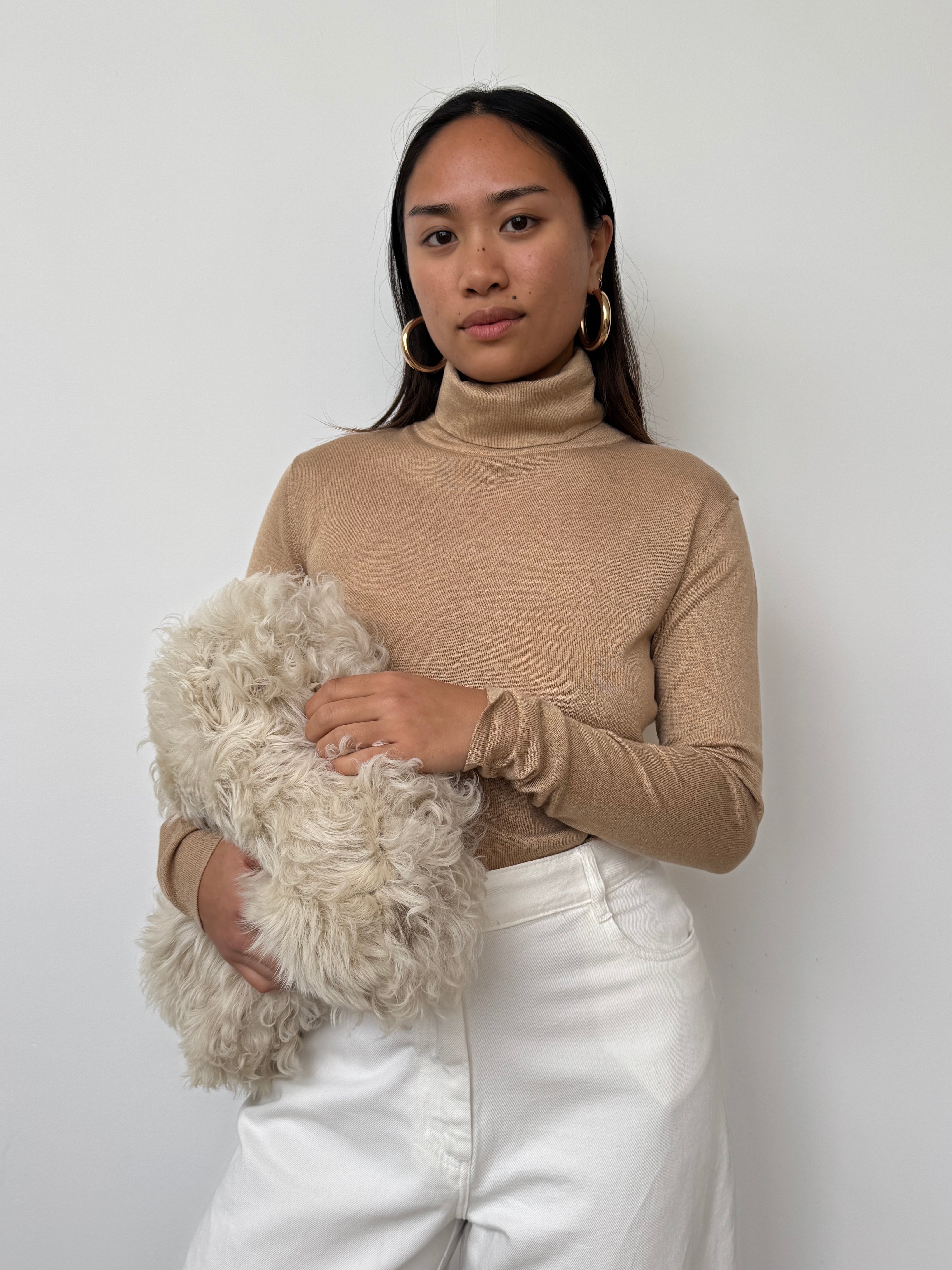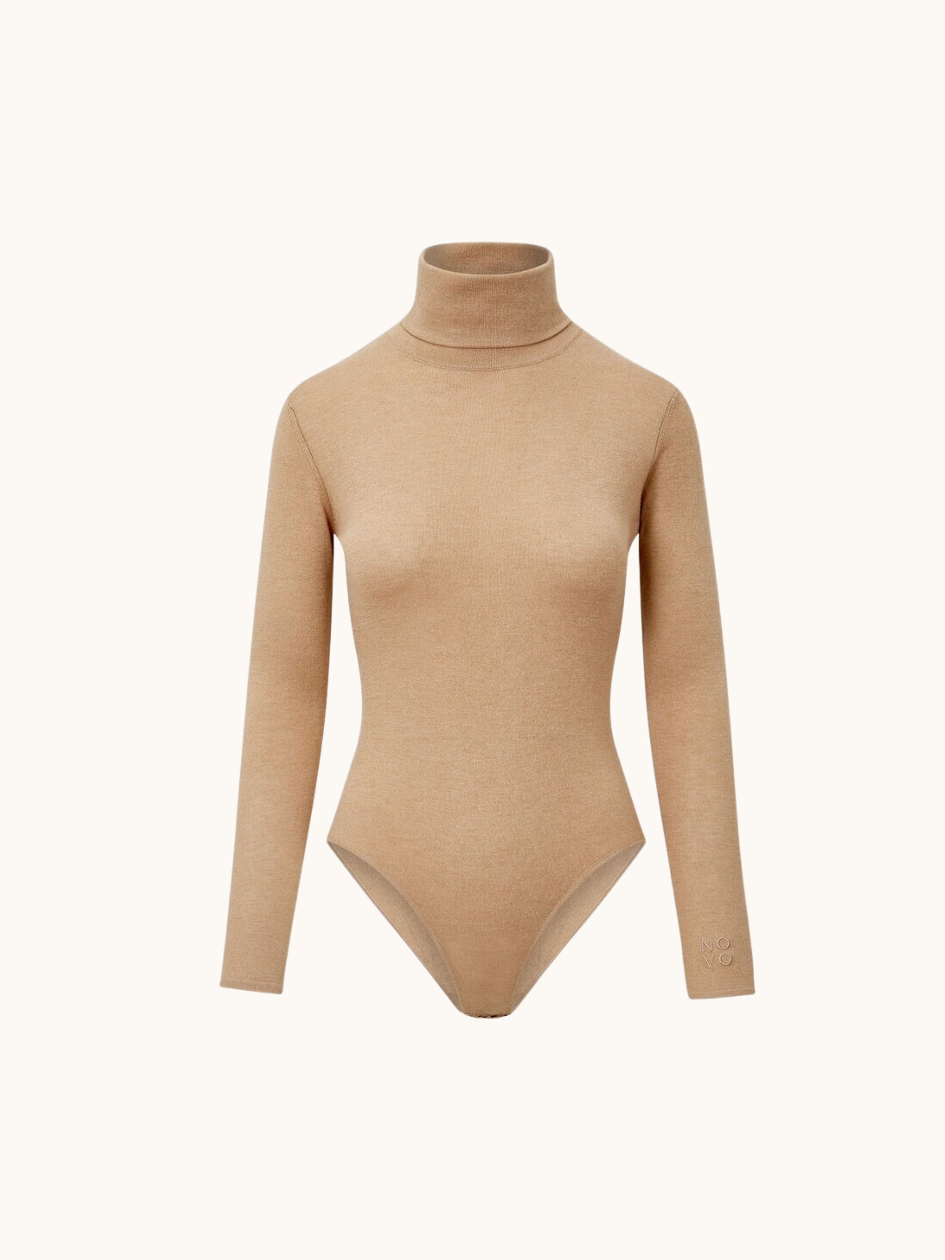 NOVO CURATED Camel Semi Sheer Premium Silk and Cashmere Blend Turtleneck Bodysuit | UK6, UK10