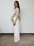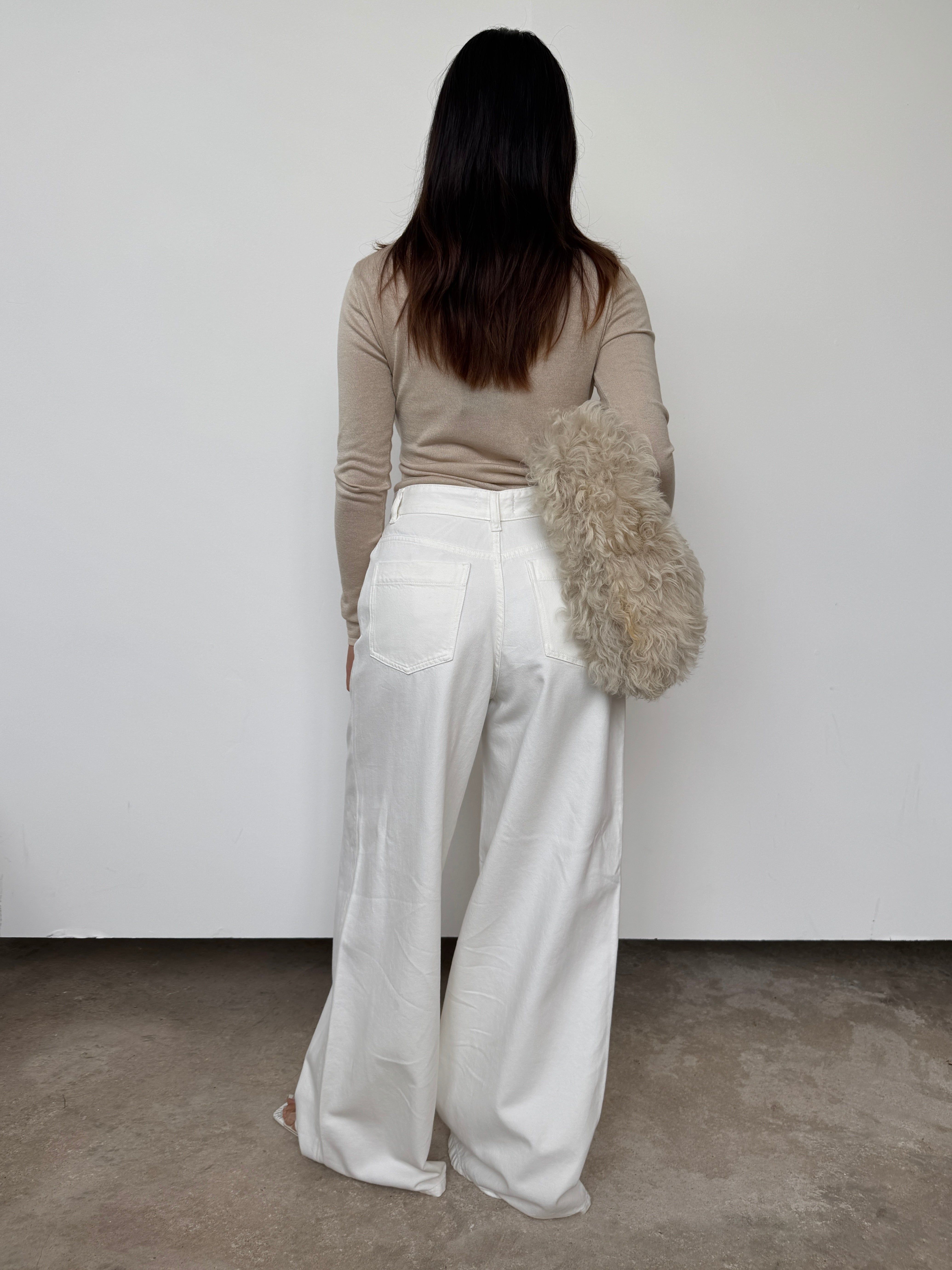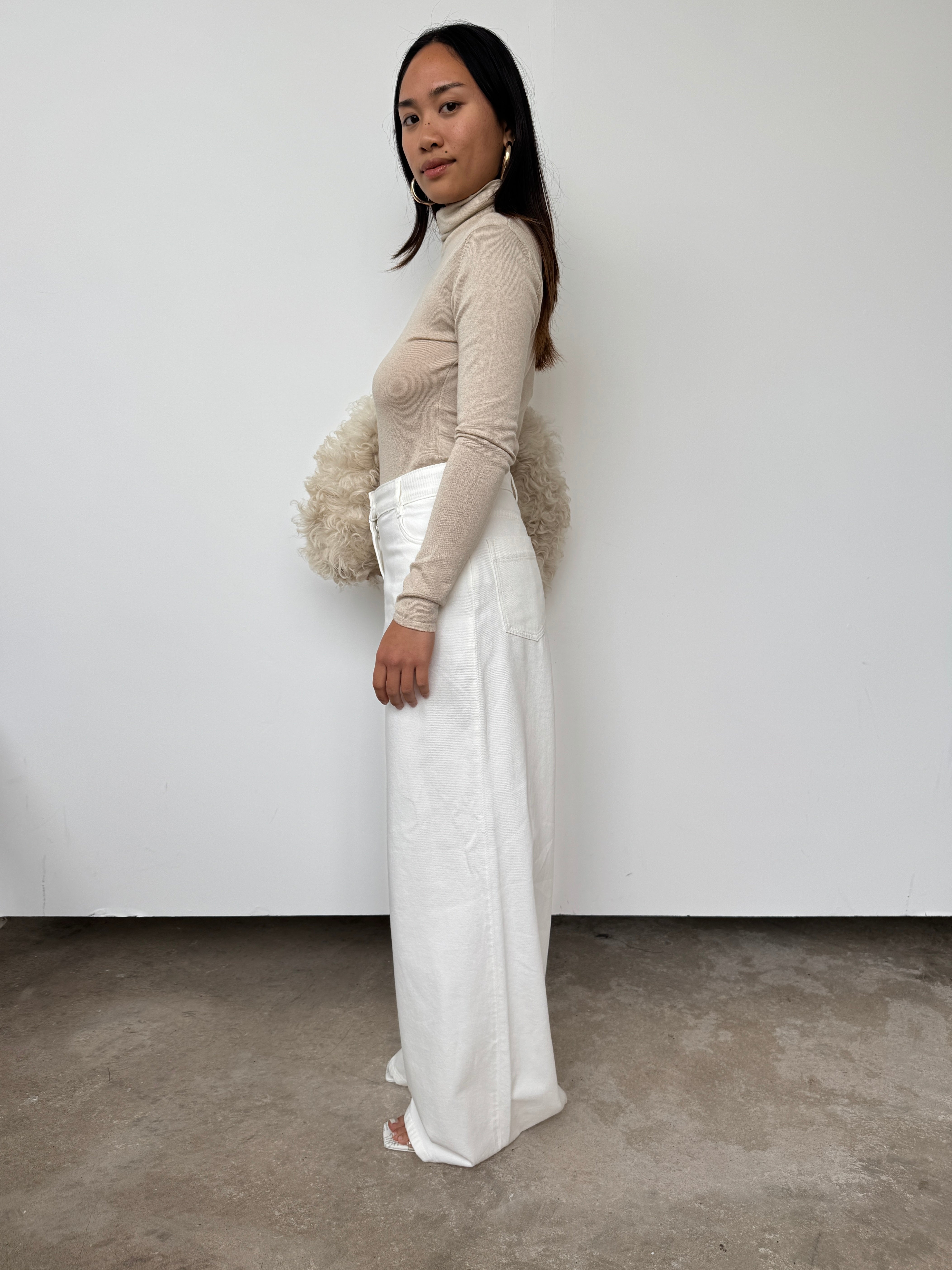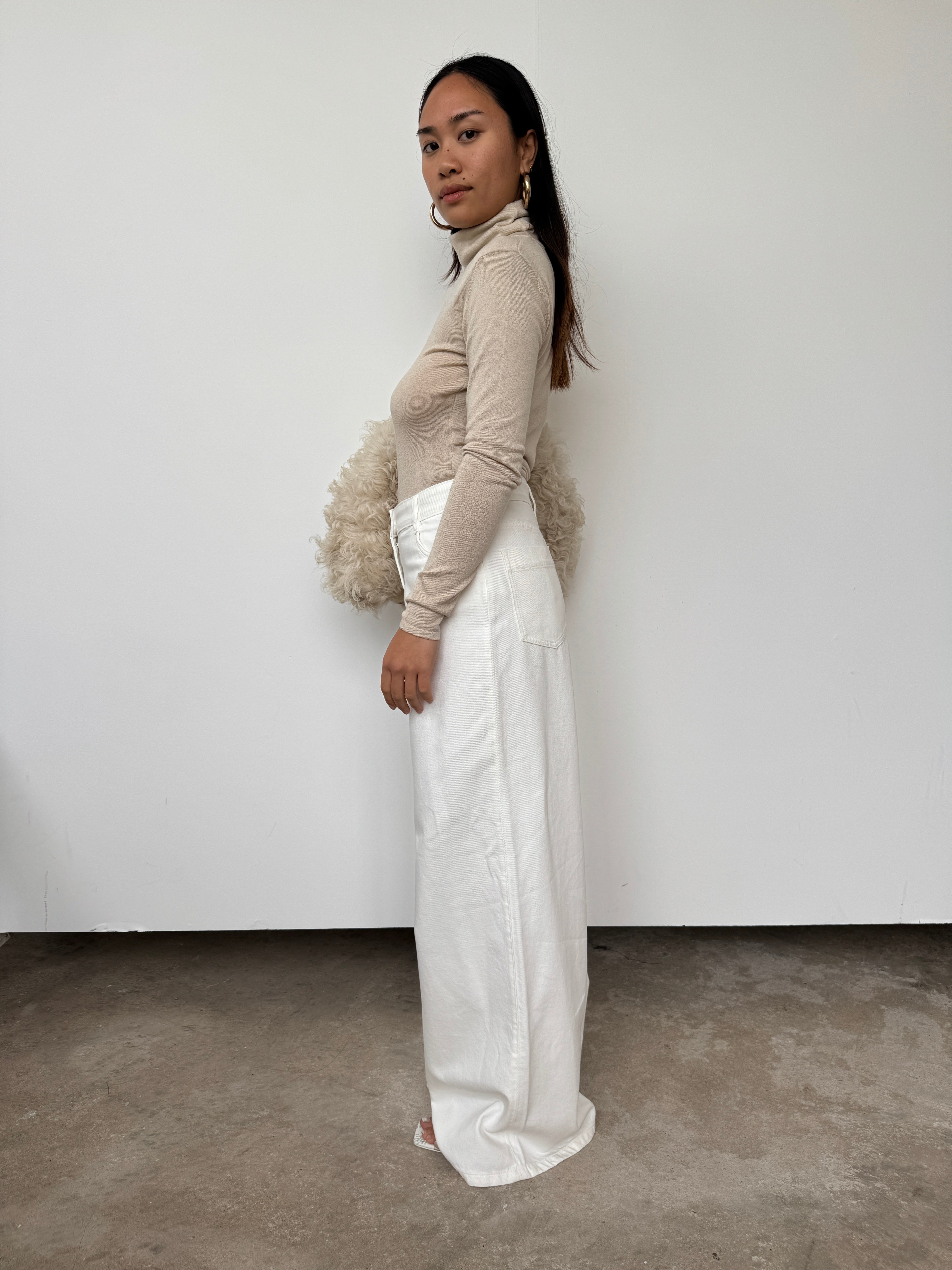 NOVO CURATED Sand Semi Sheer Premium Silk and Cashmere Blend Turtleneck Bodysuit | UK8, UK16
