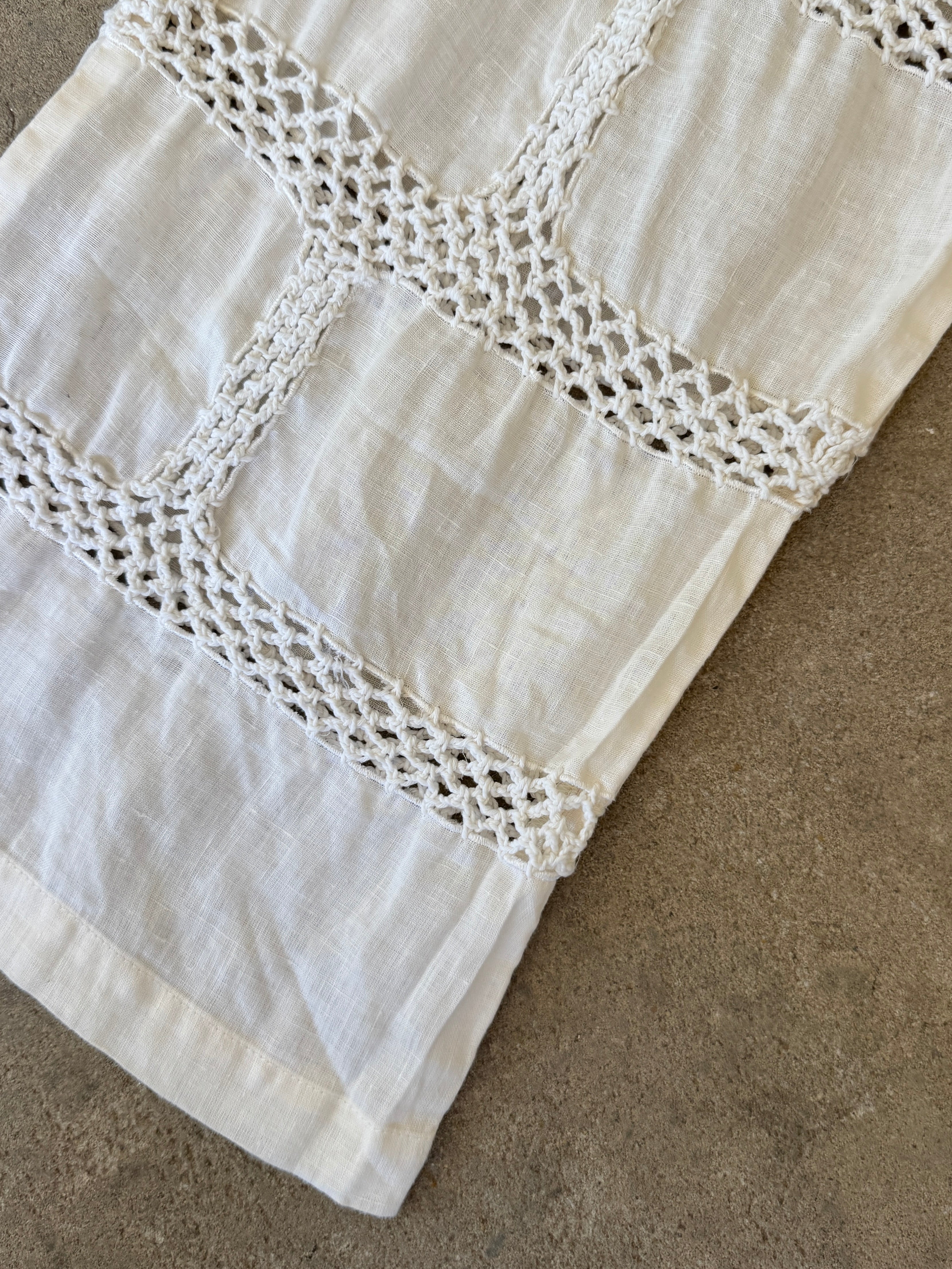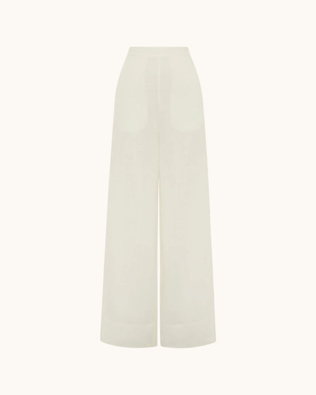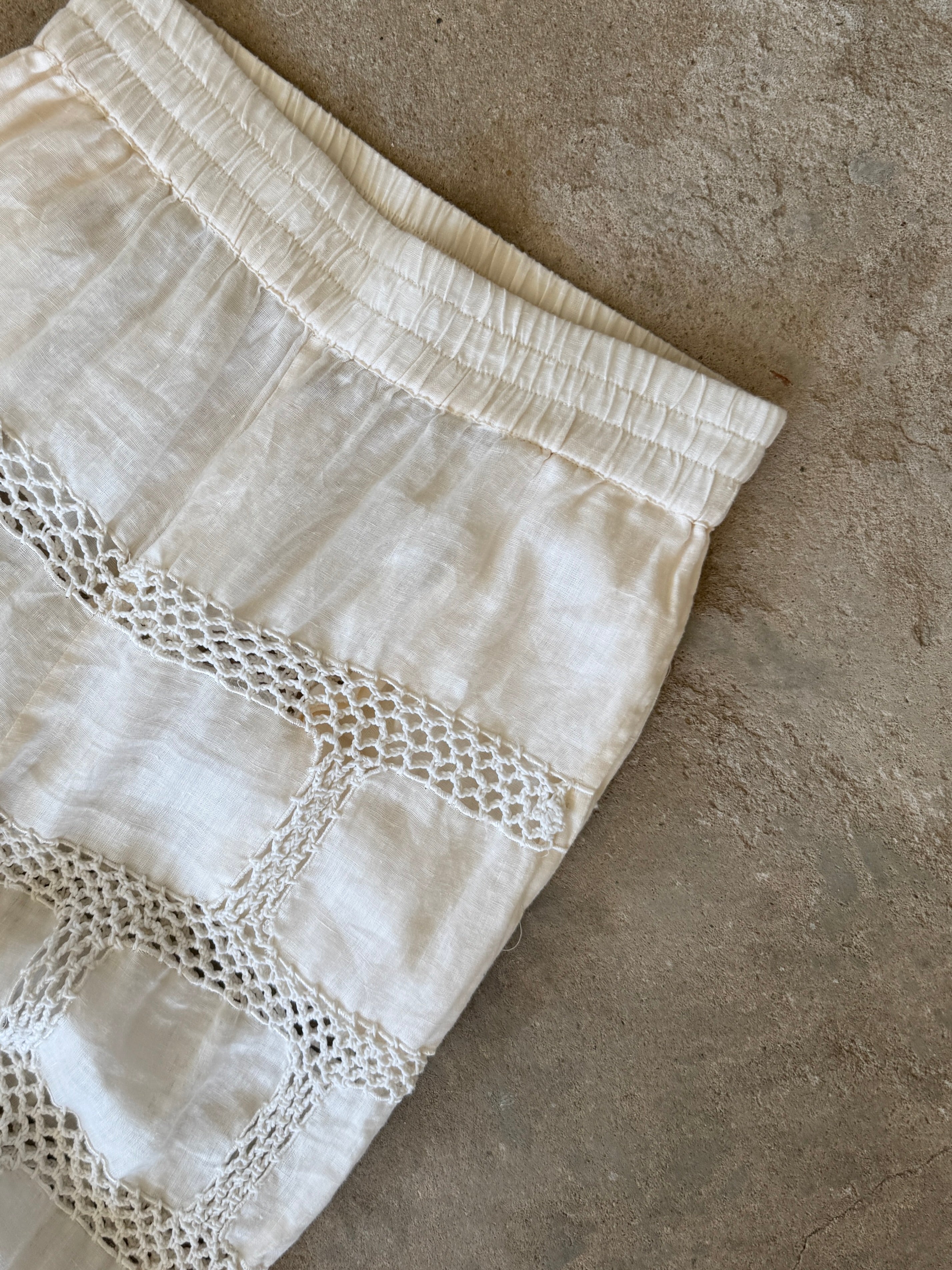 These trousers feature broderie detailing to the sides, as well as pockets.