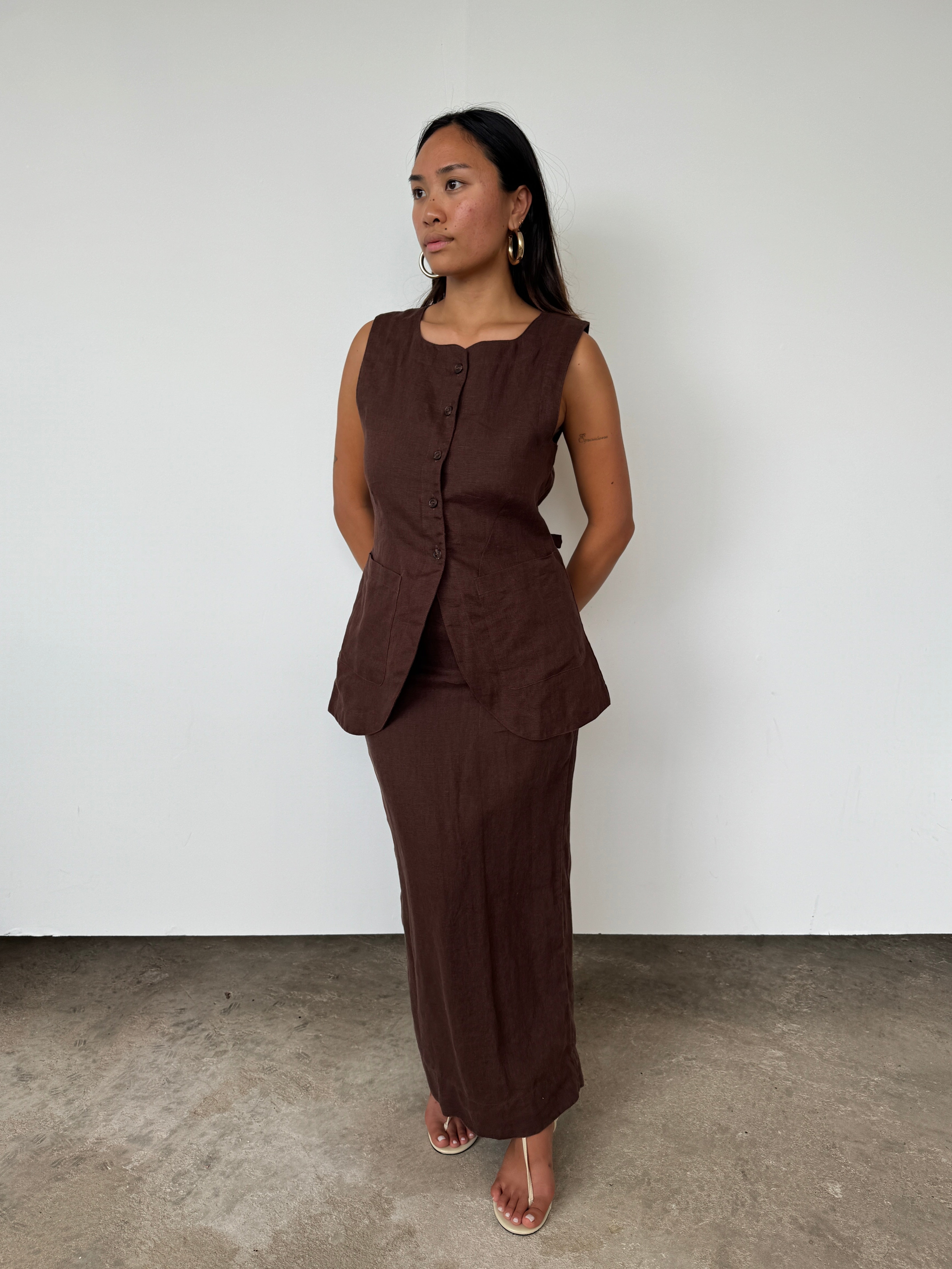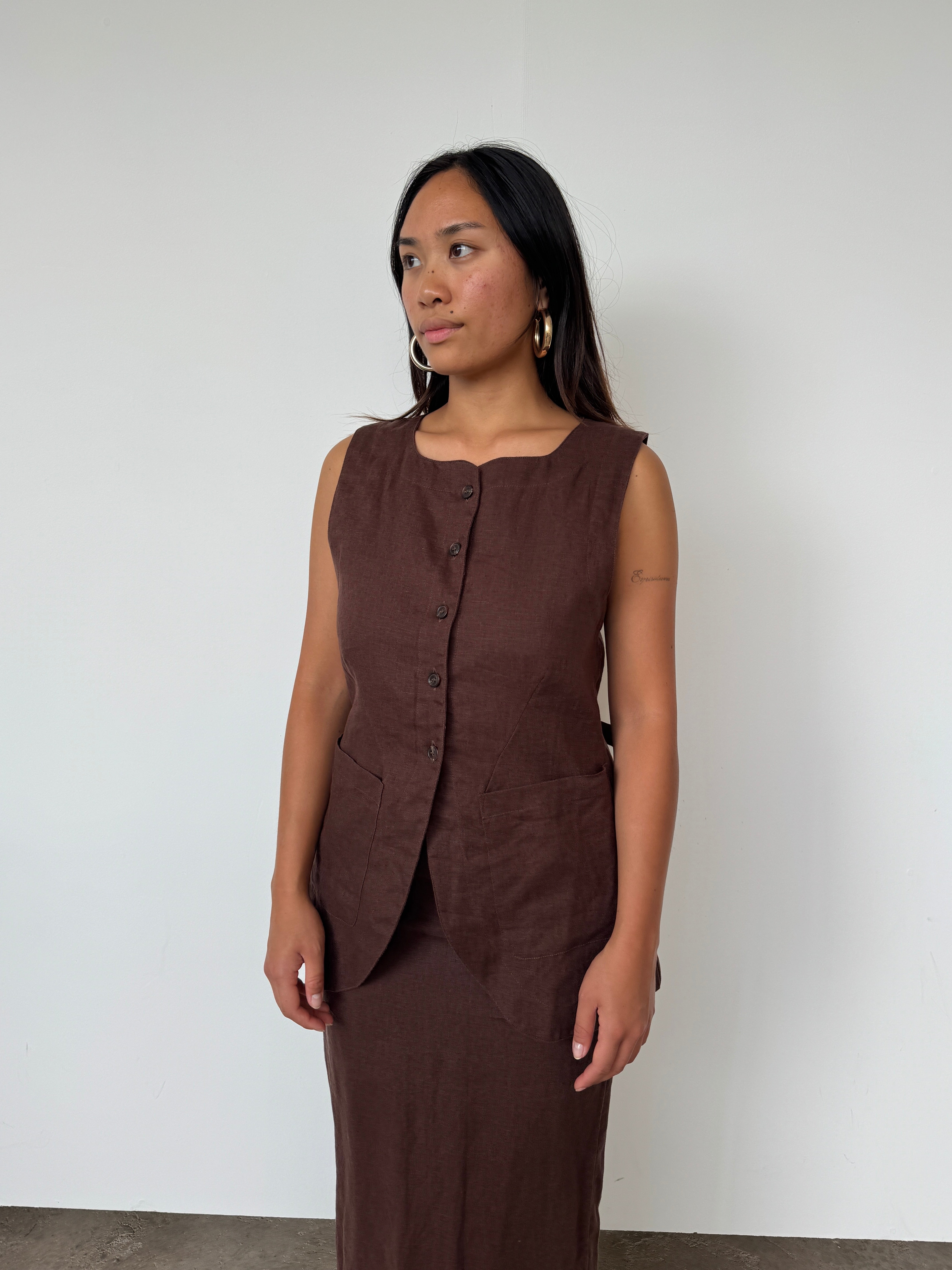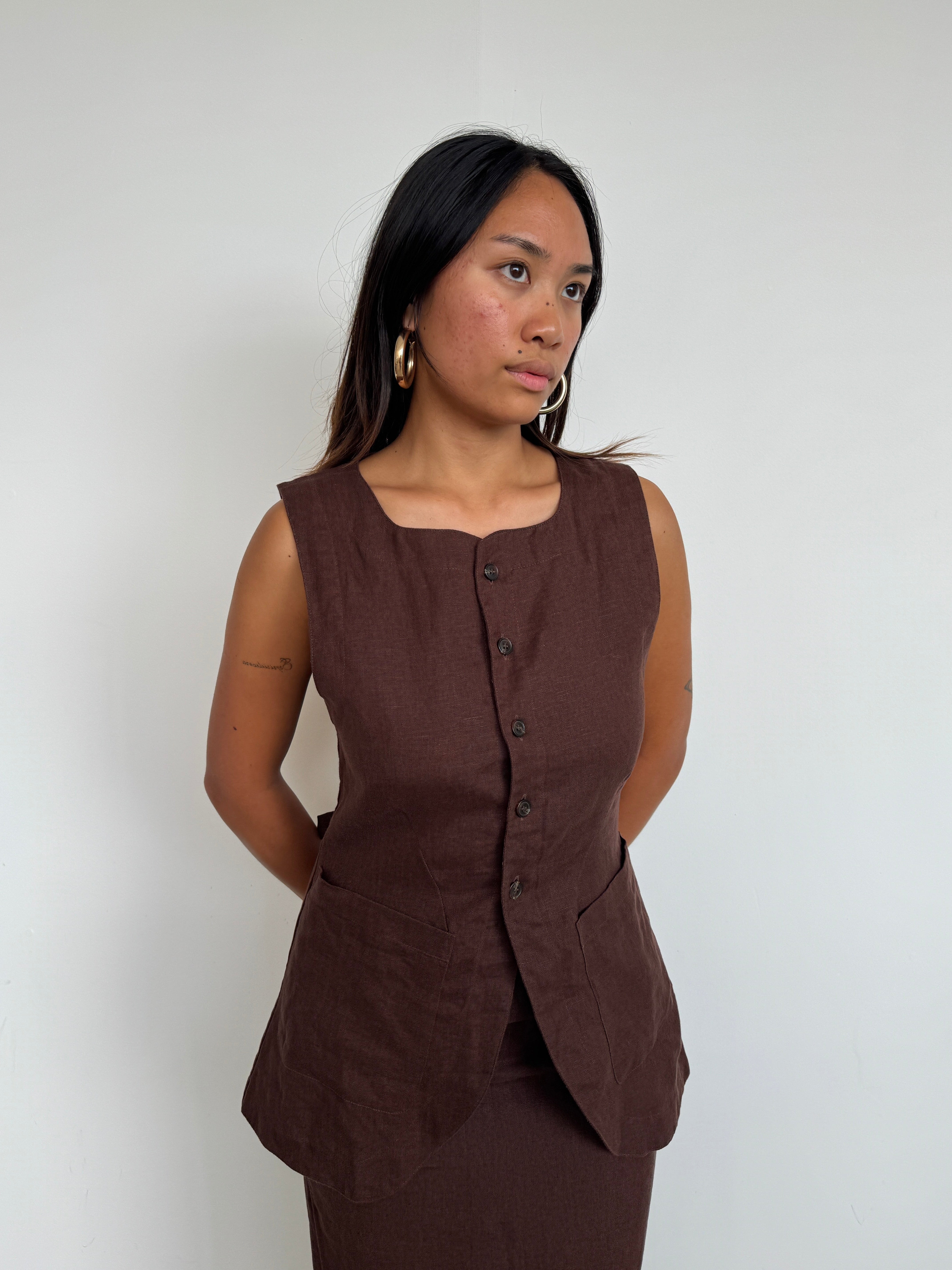 Posse Brown Linen 'Lorenzo' Linen Waistcoat | S