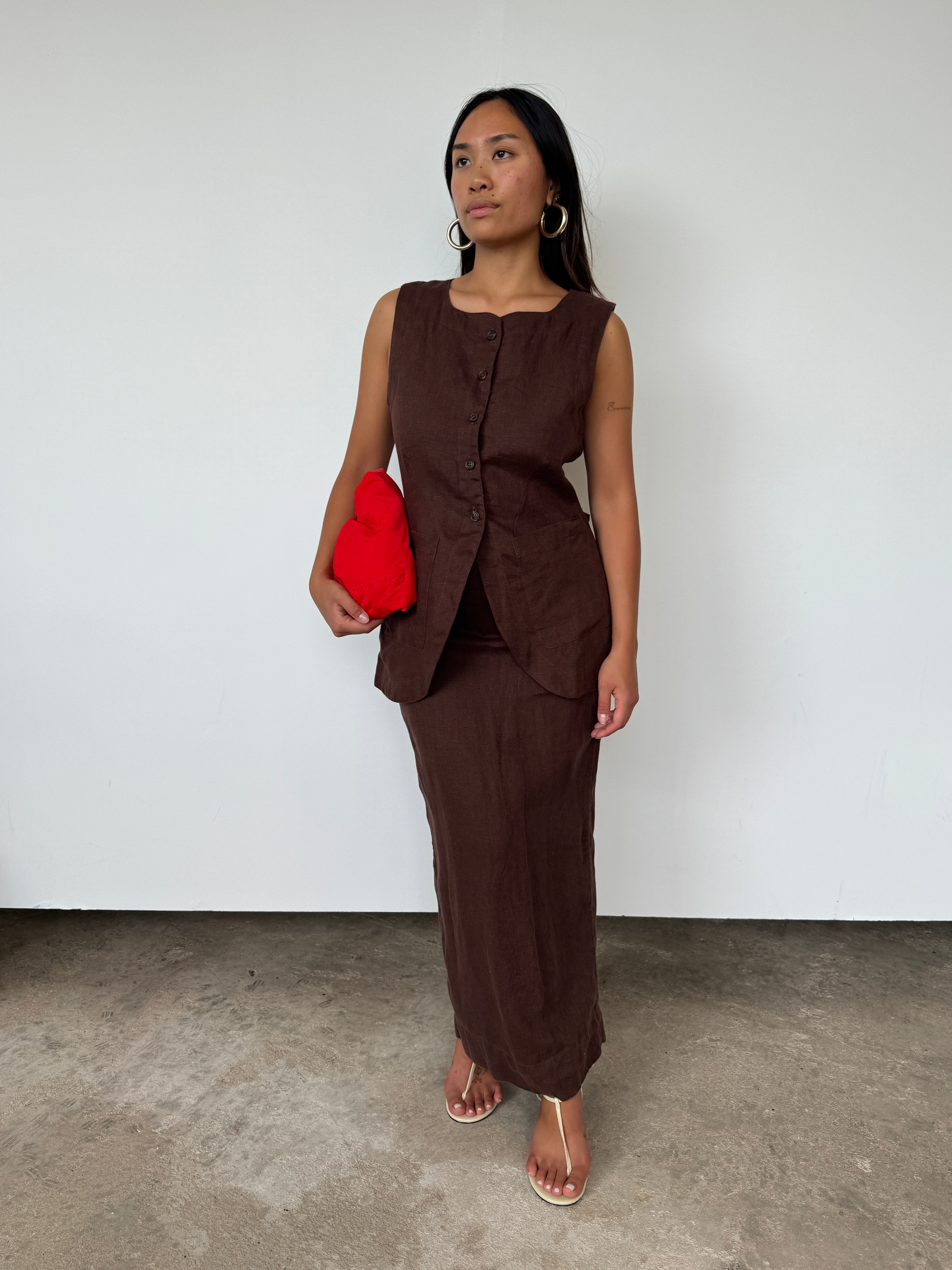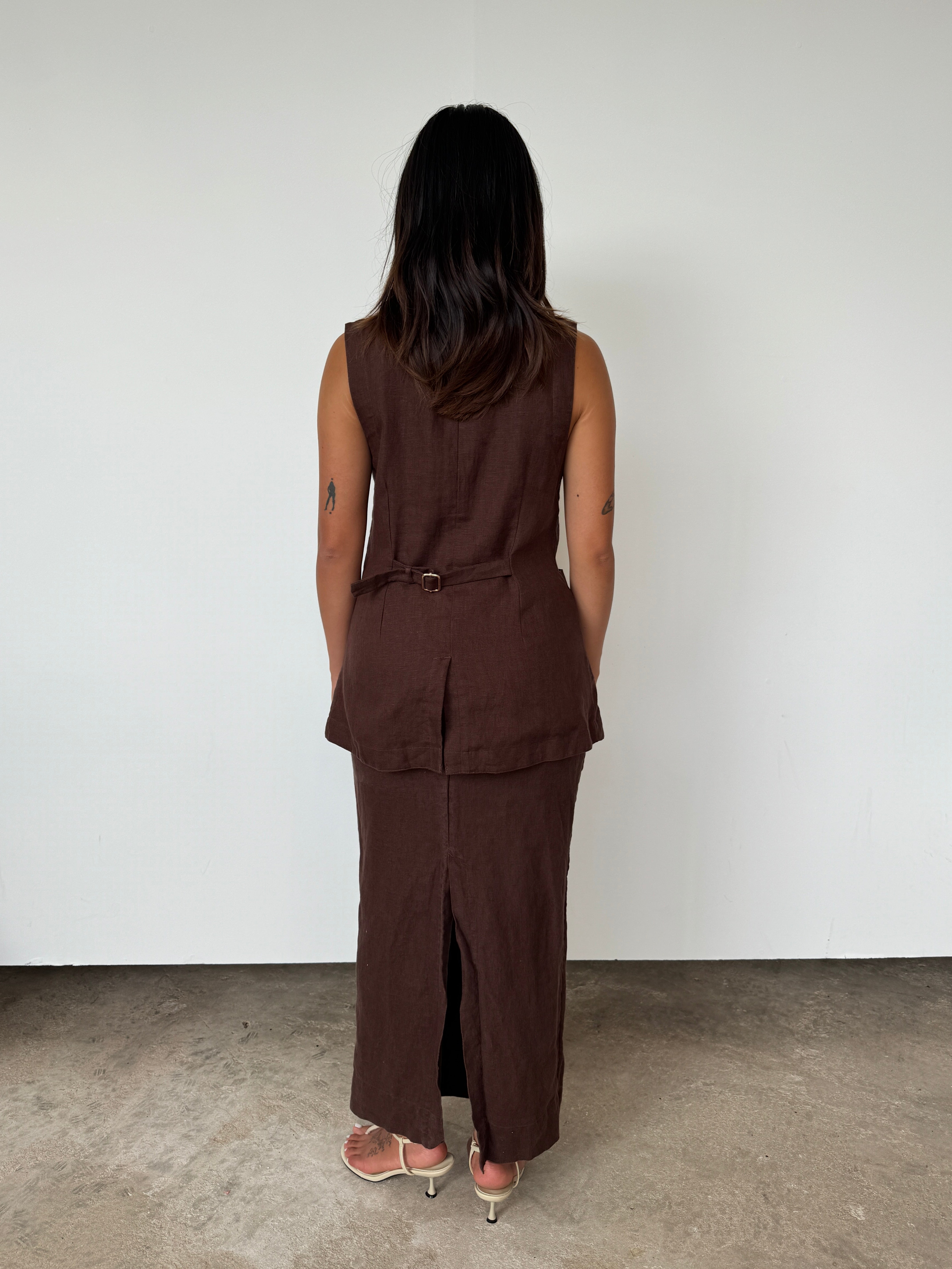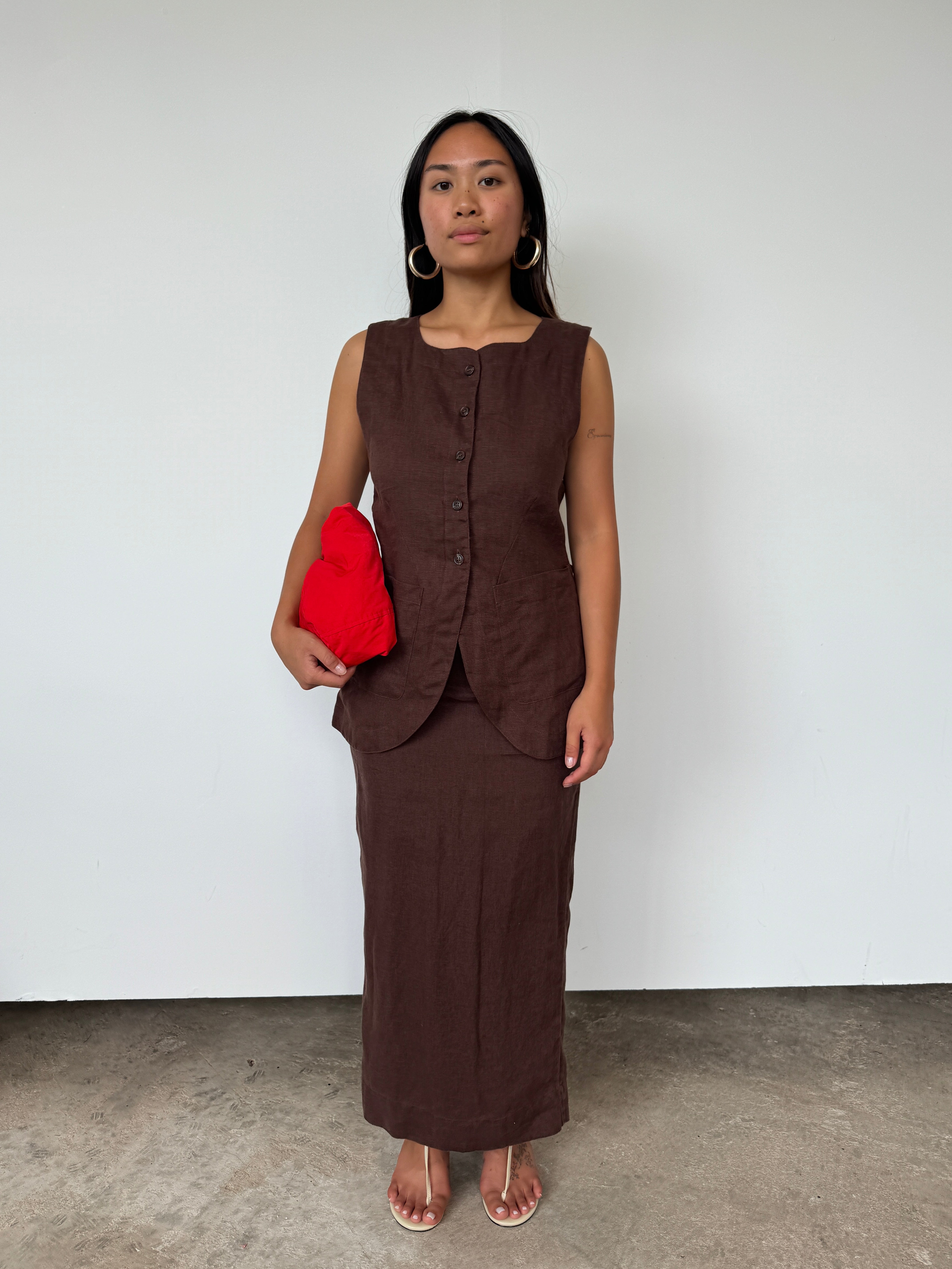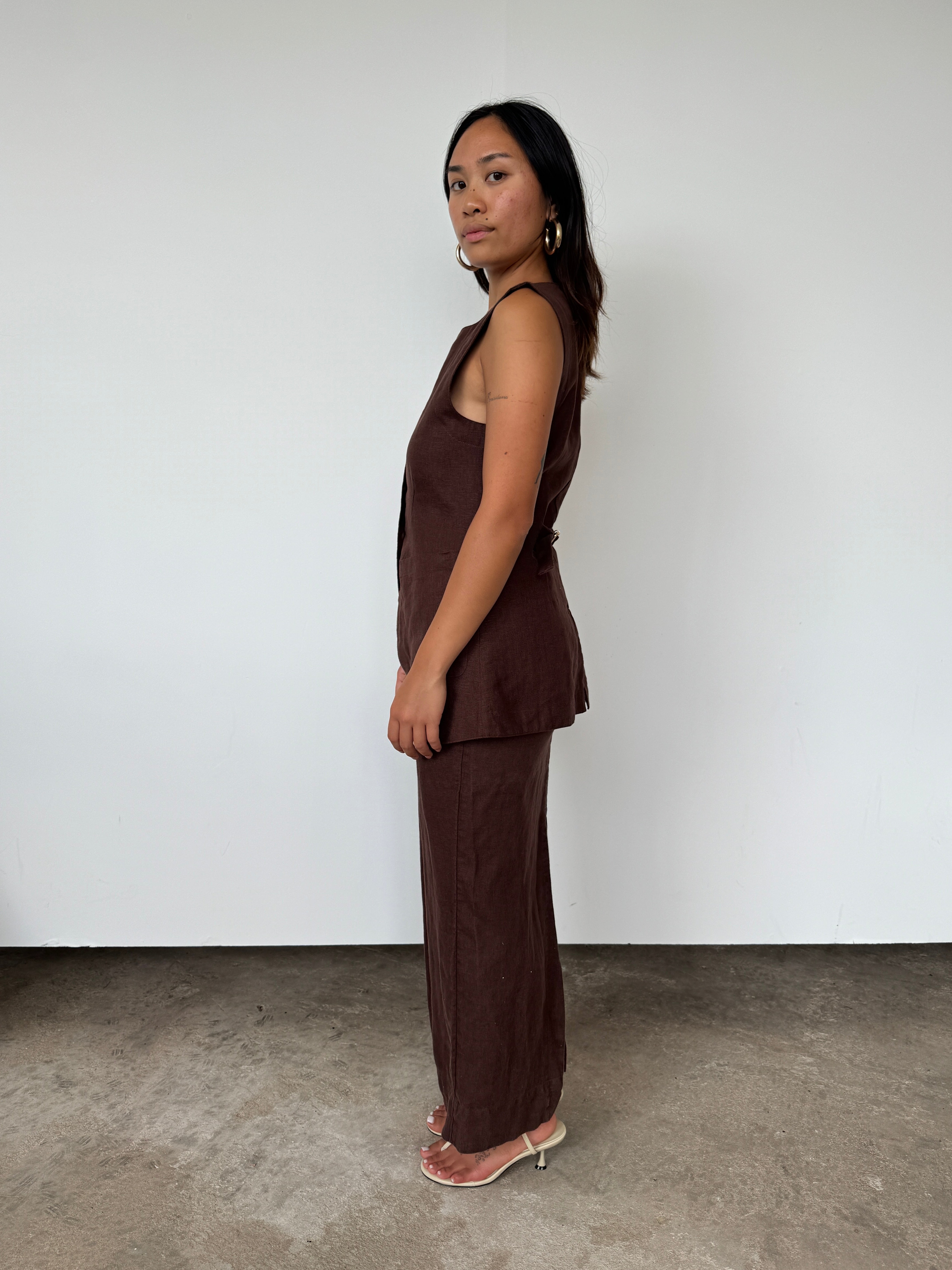 Posse Brown Linen 'Lorenzo' Linen Waistcoat | S
