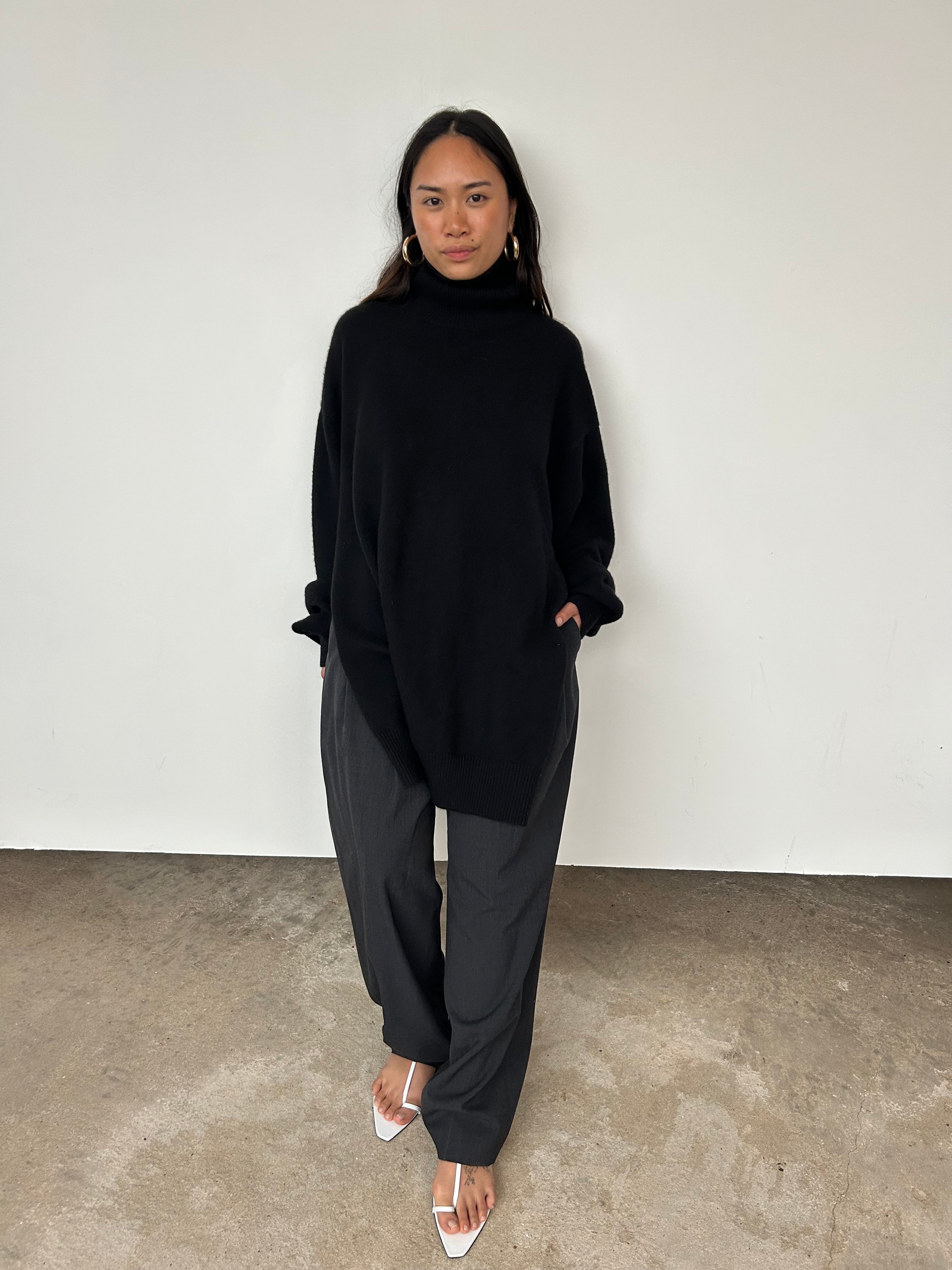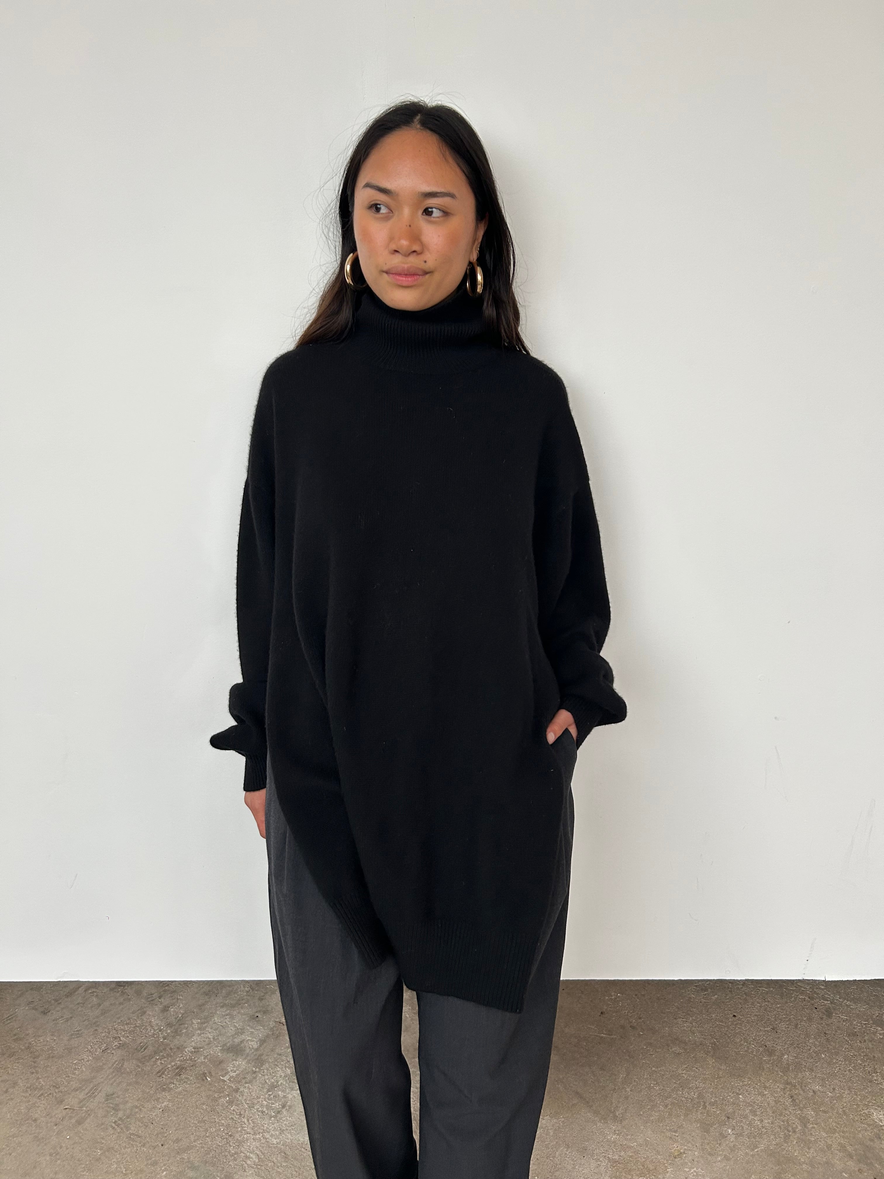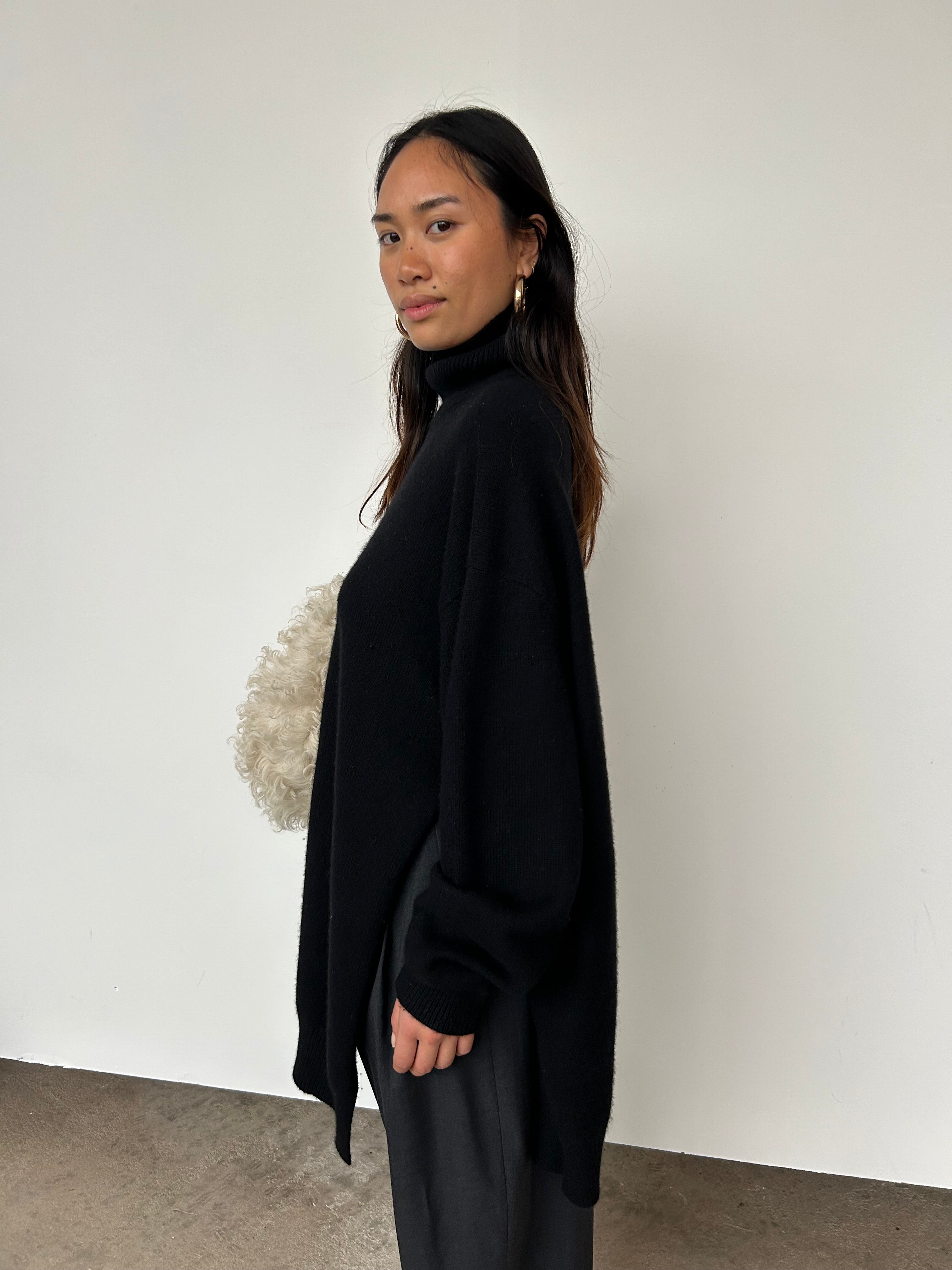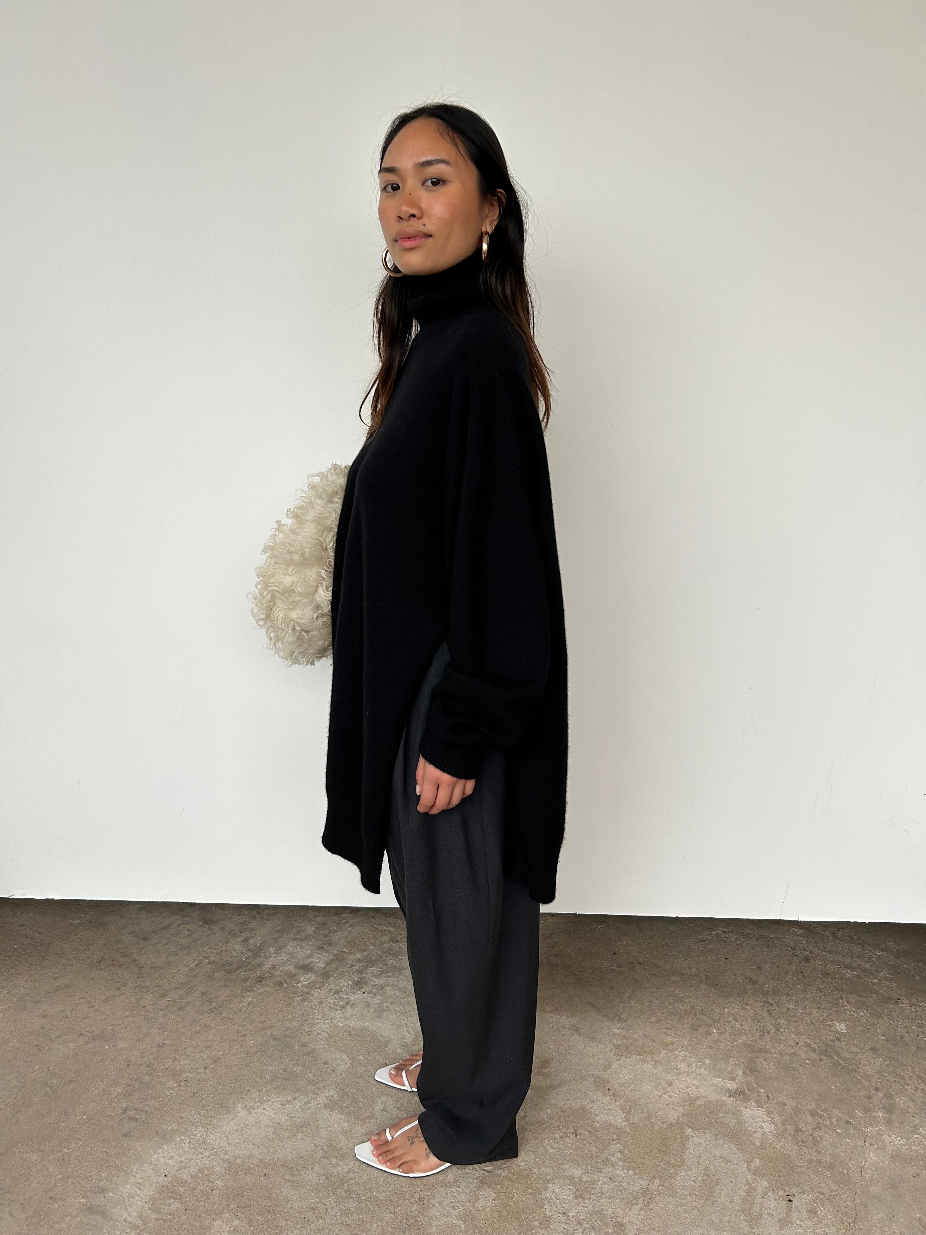 Knitted from heavyweight wool, we love the slits to both sides and the 'slouchiness' of this piece.