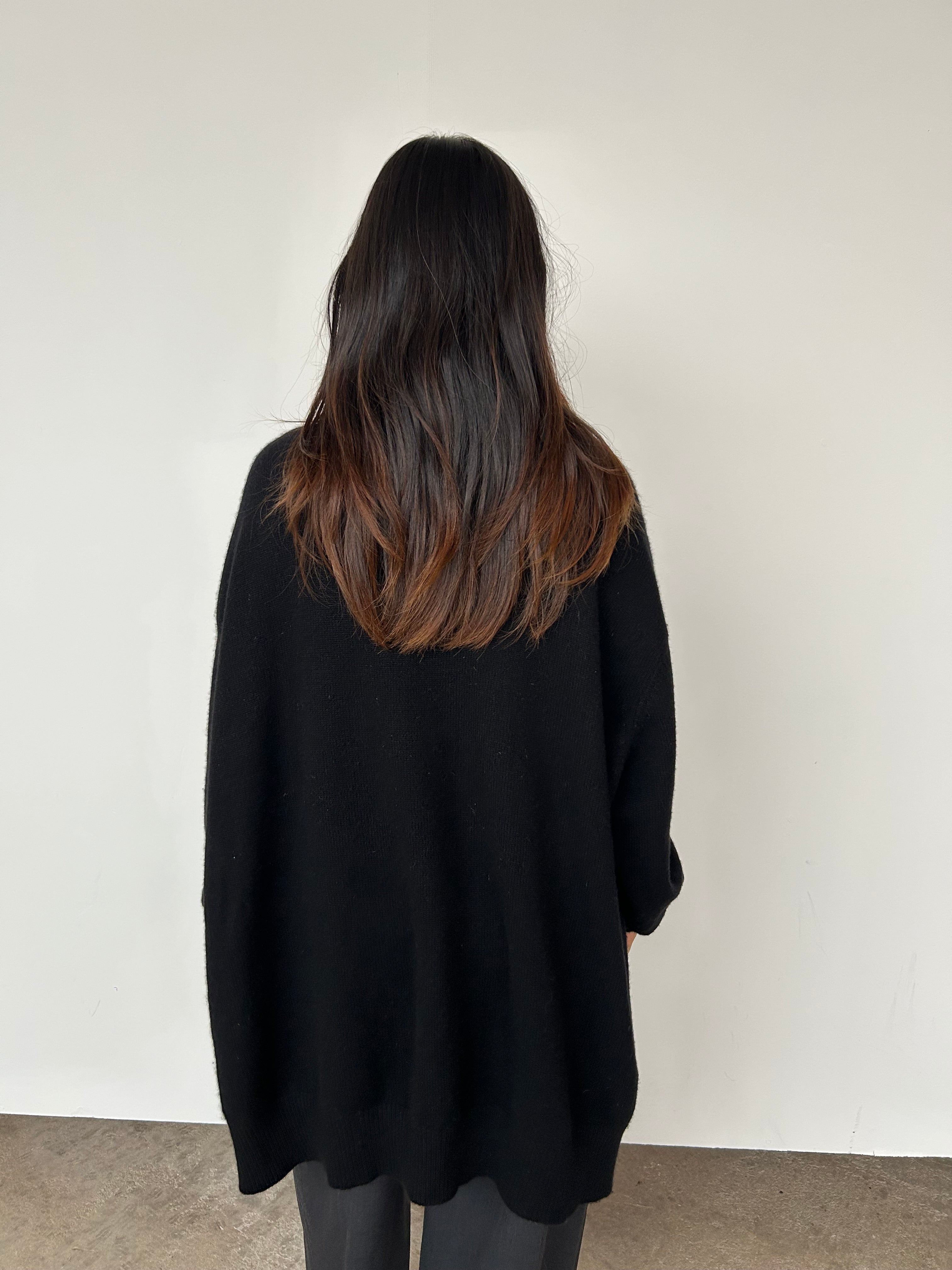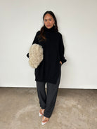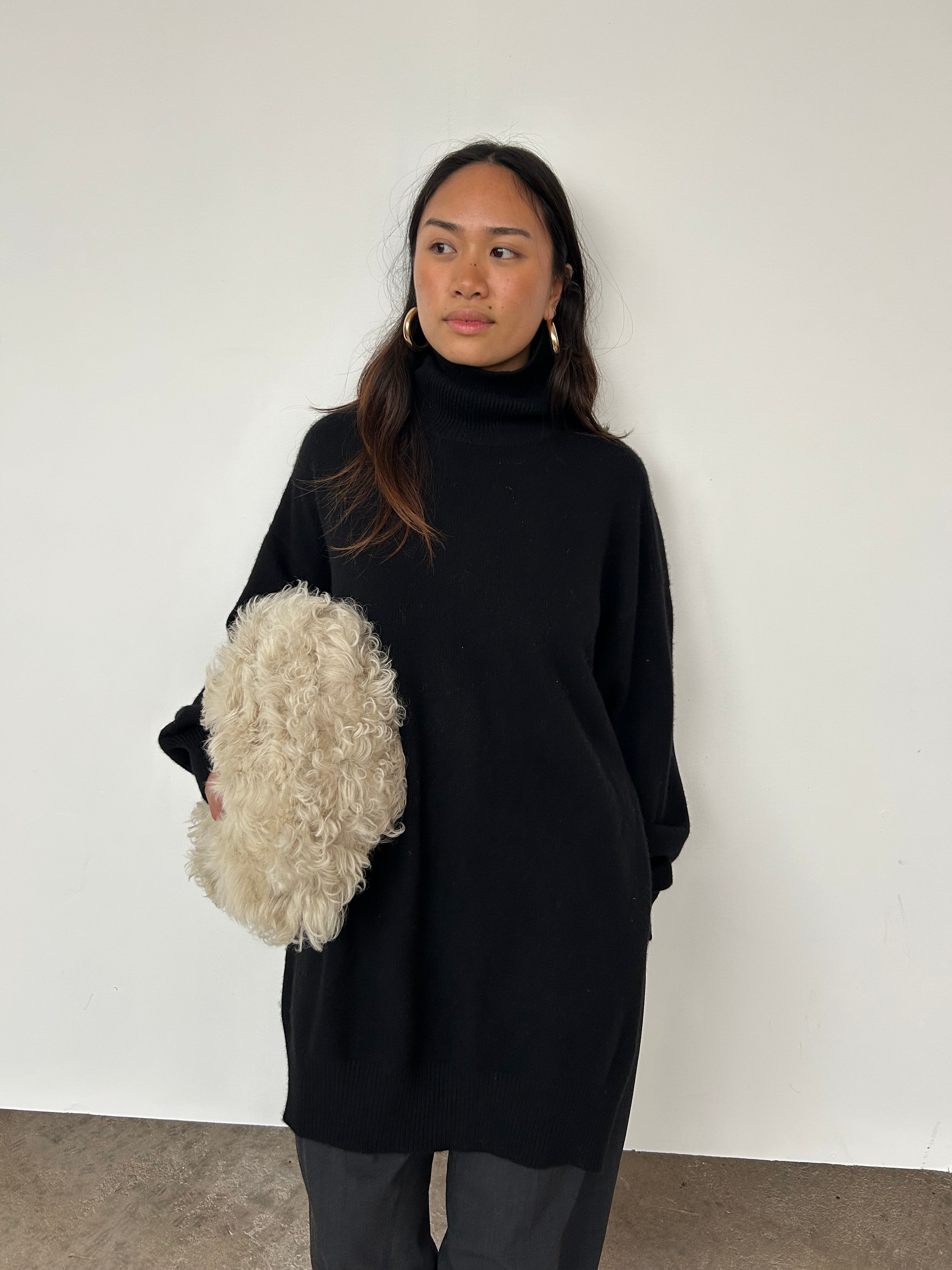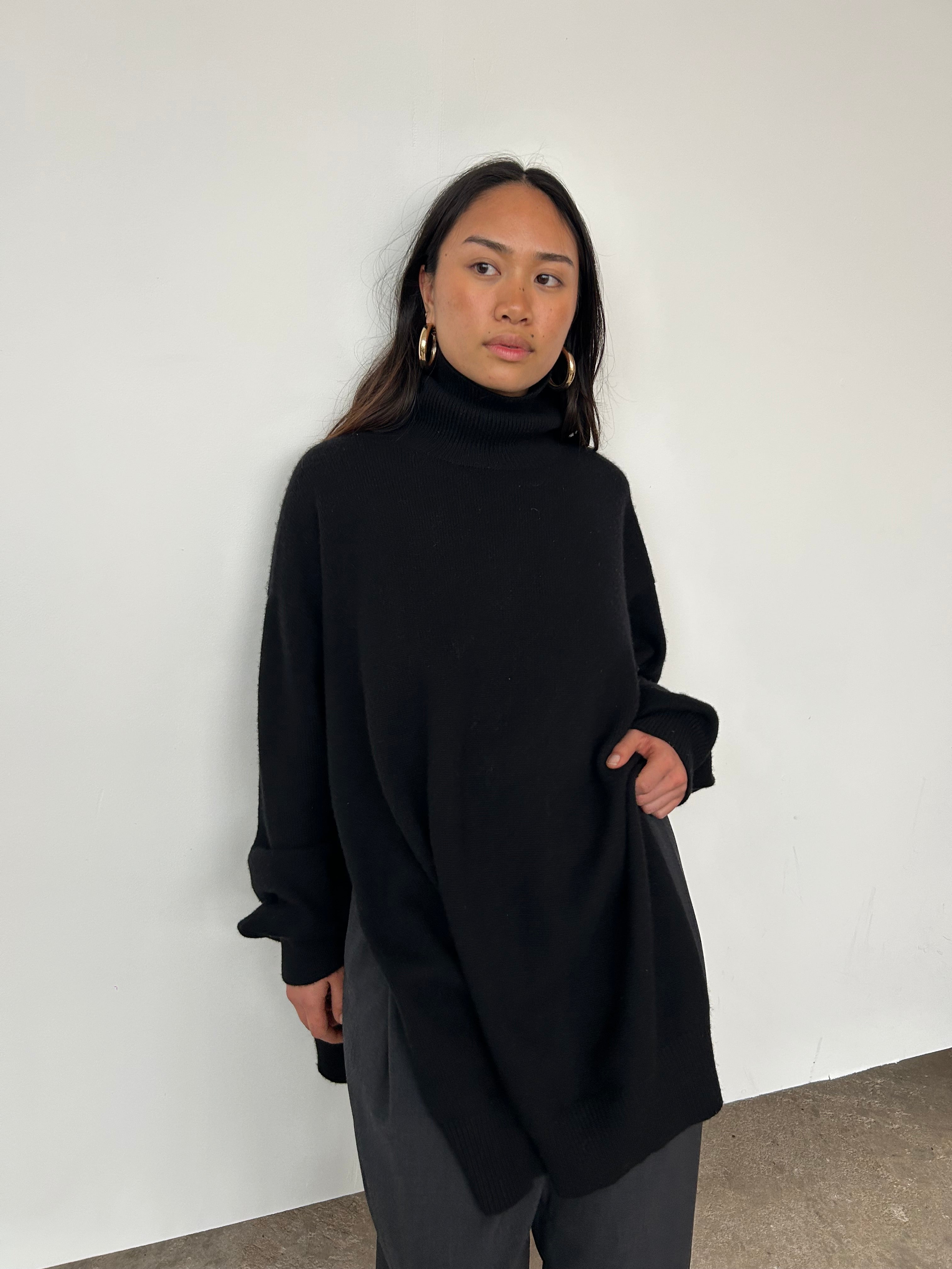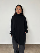 Knitted from heavyweight wool, we love the slits to both sides and the 'slouchiness' of this piece.