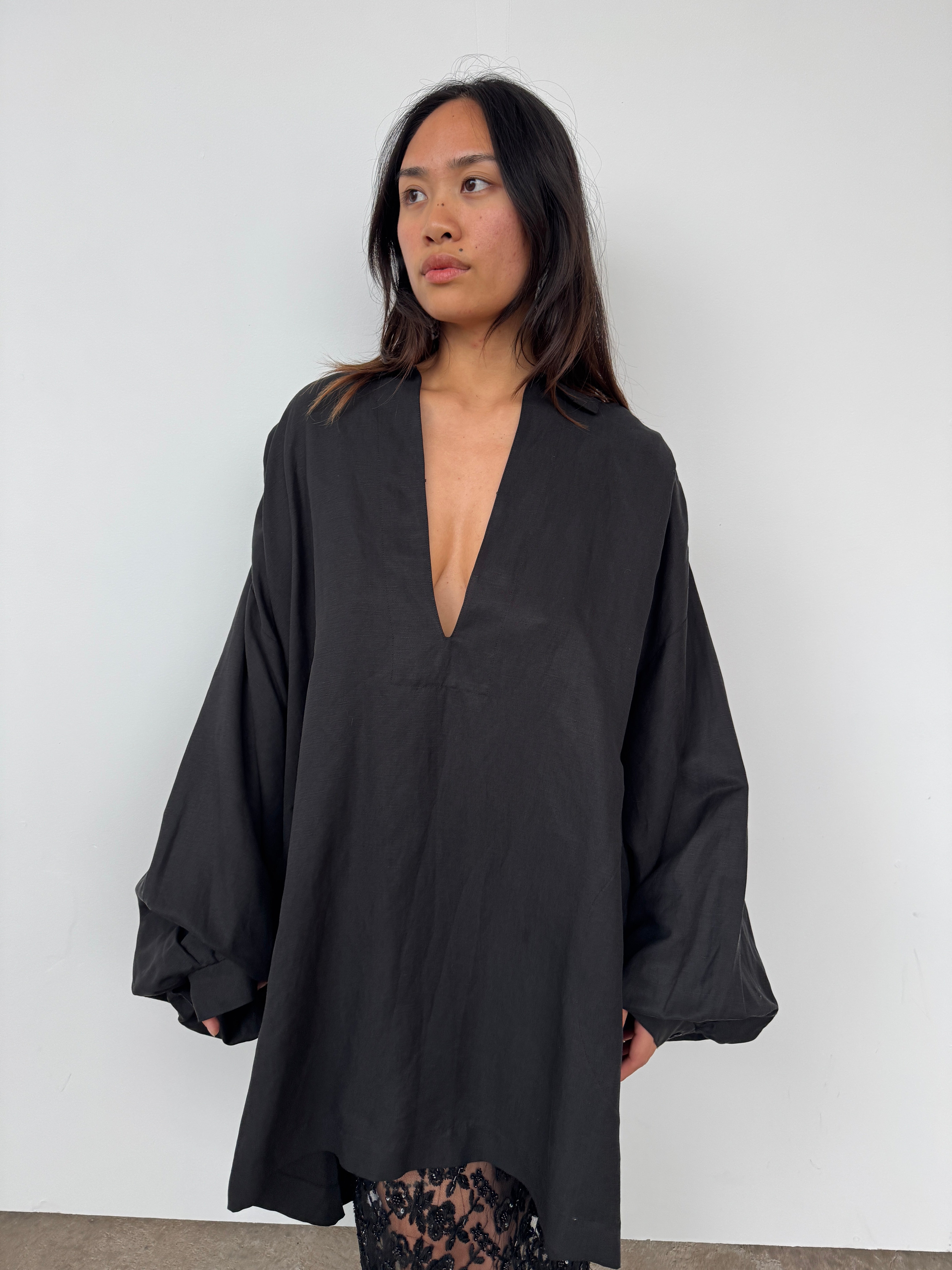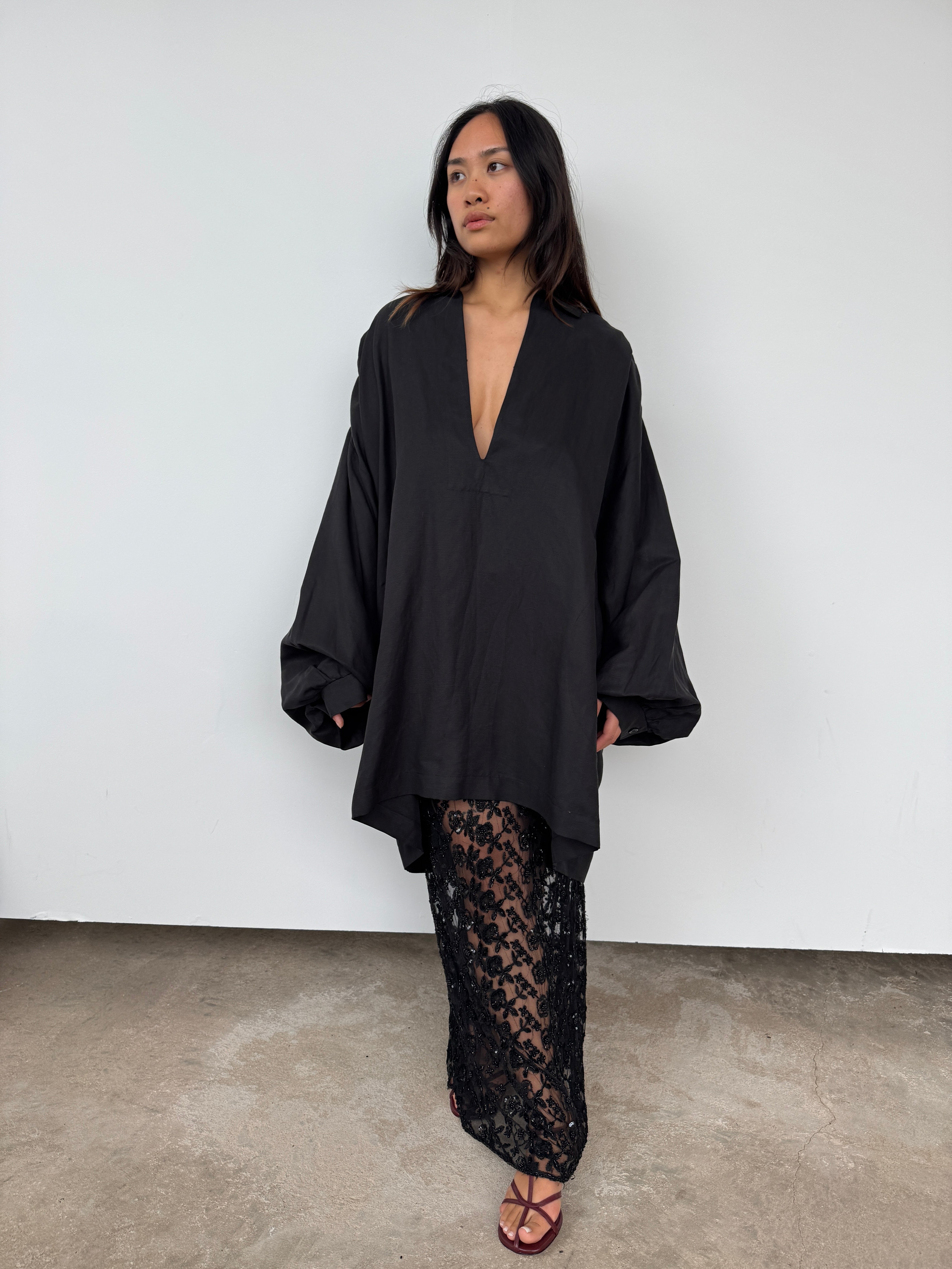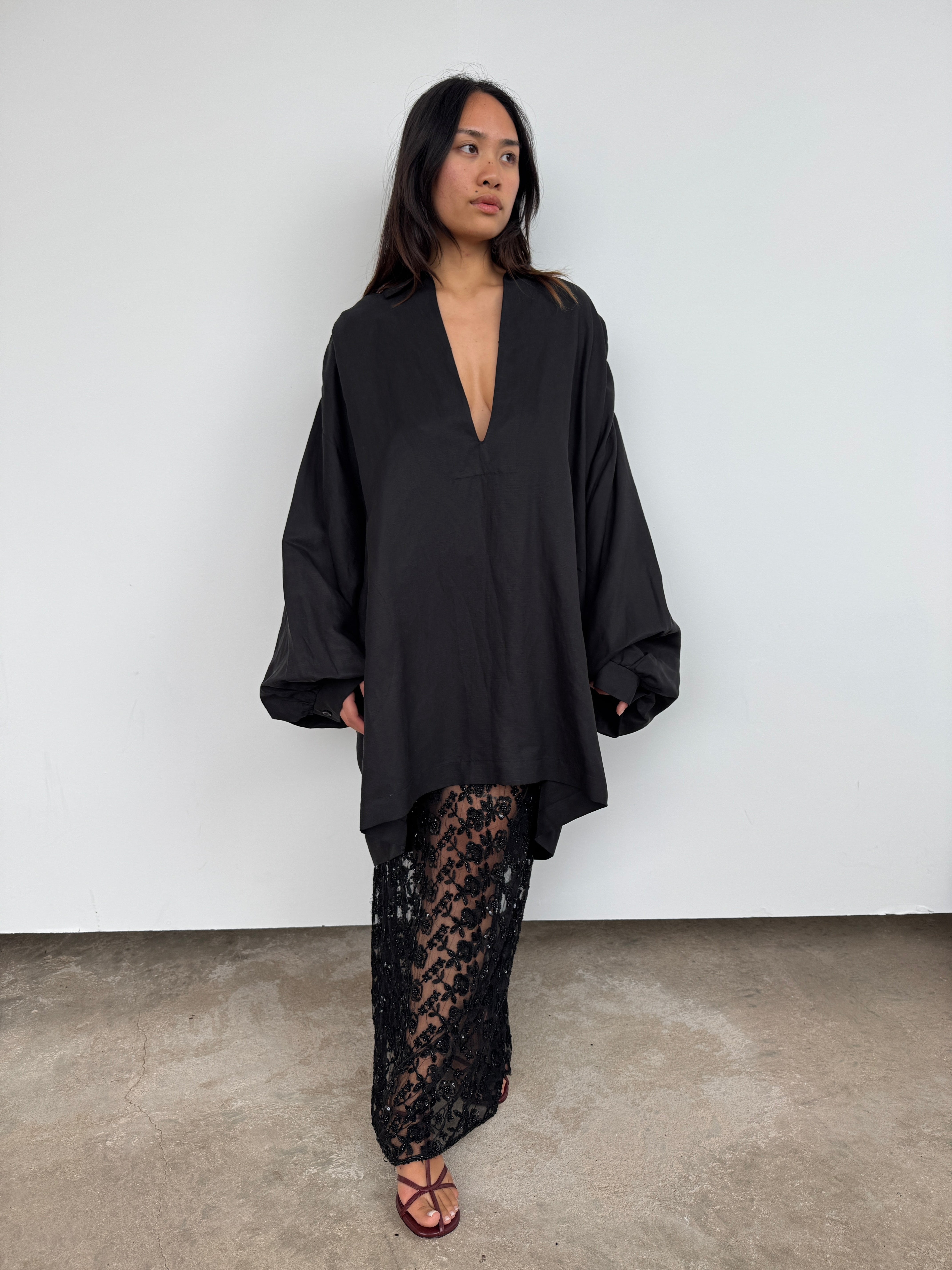 Raey Black Linen + Silk Oversized Tunic | O/S