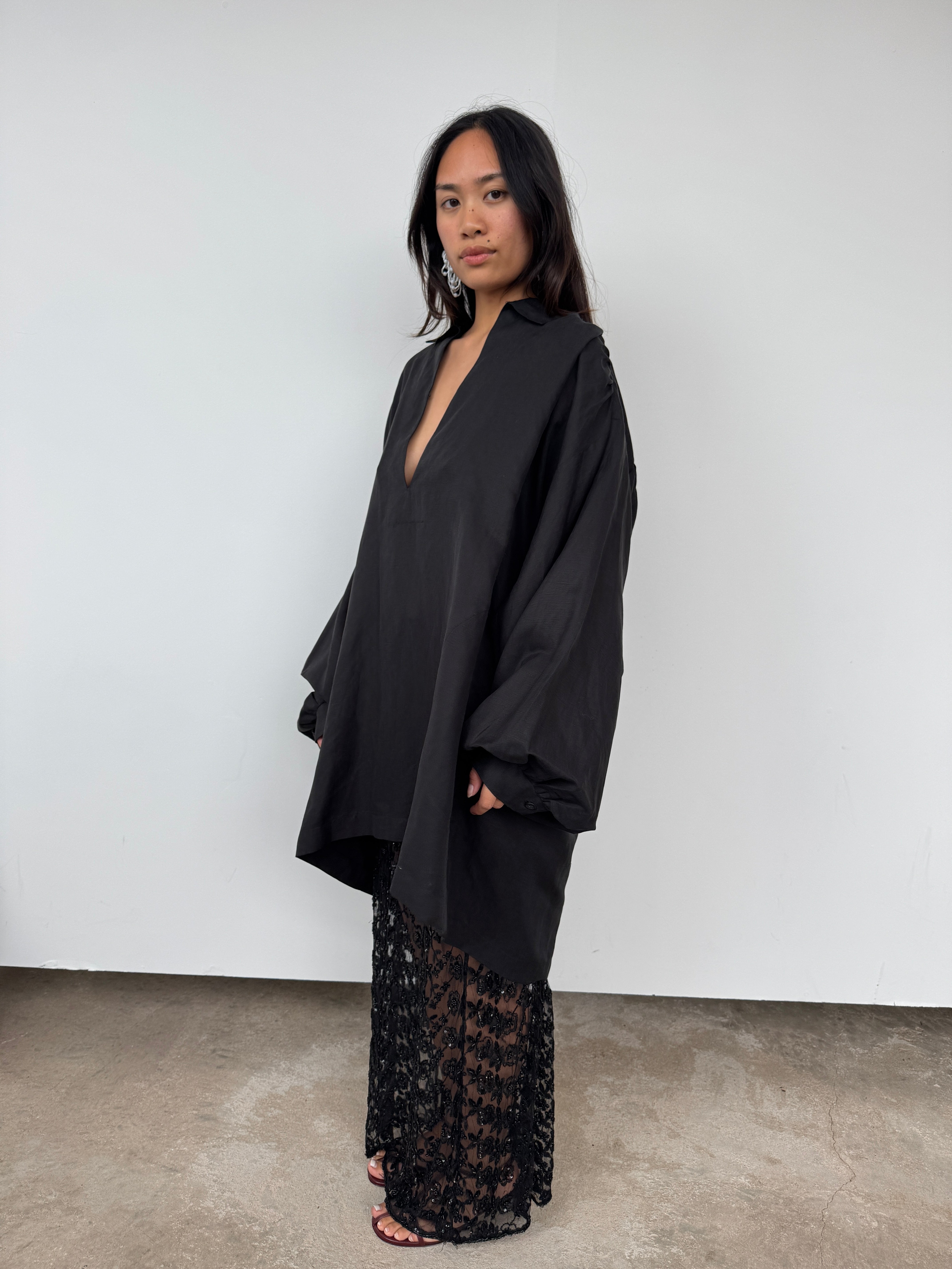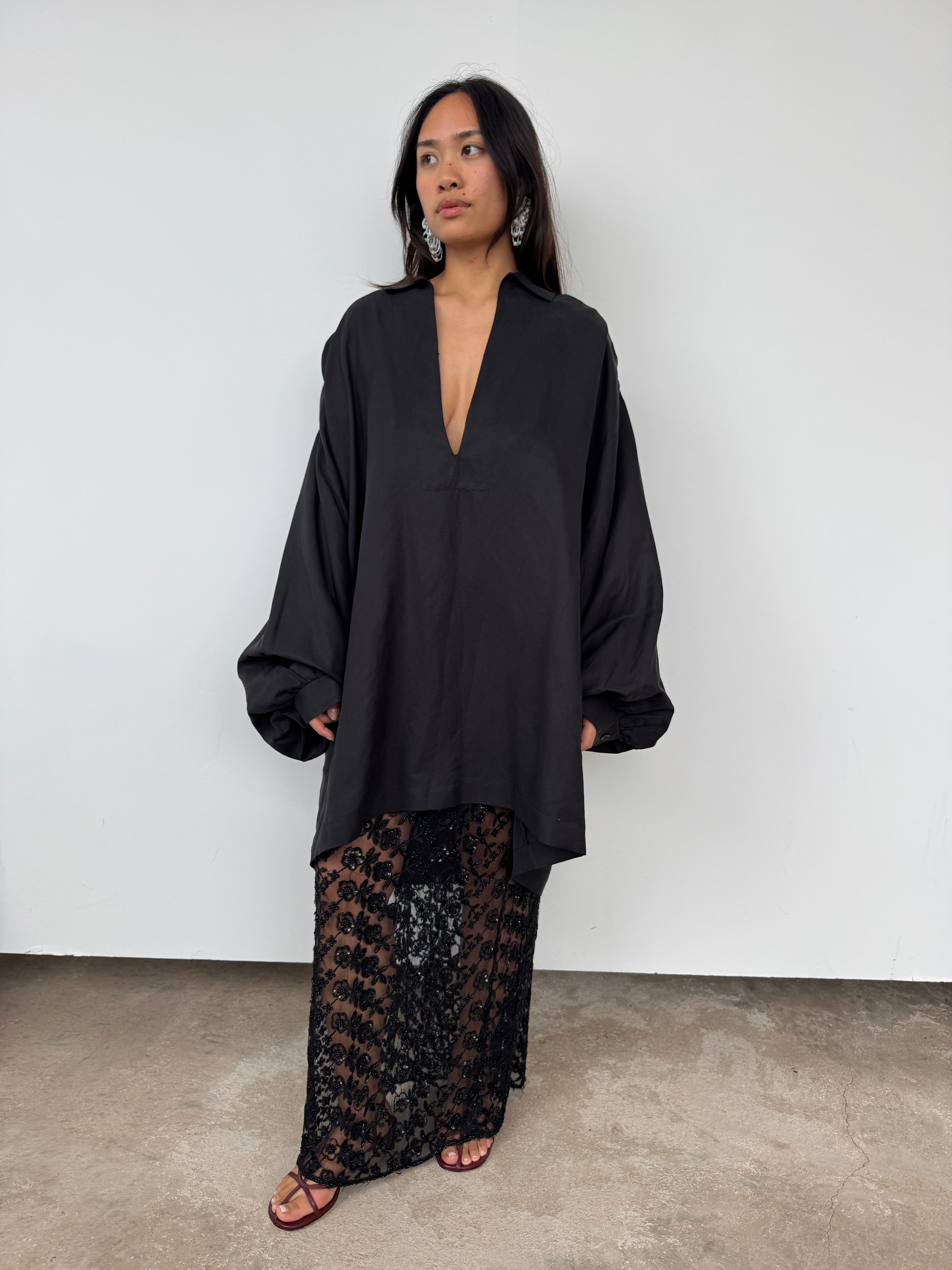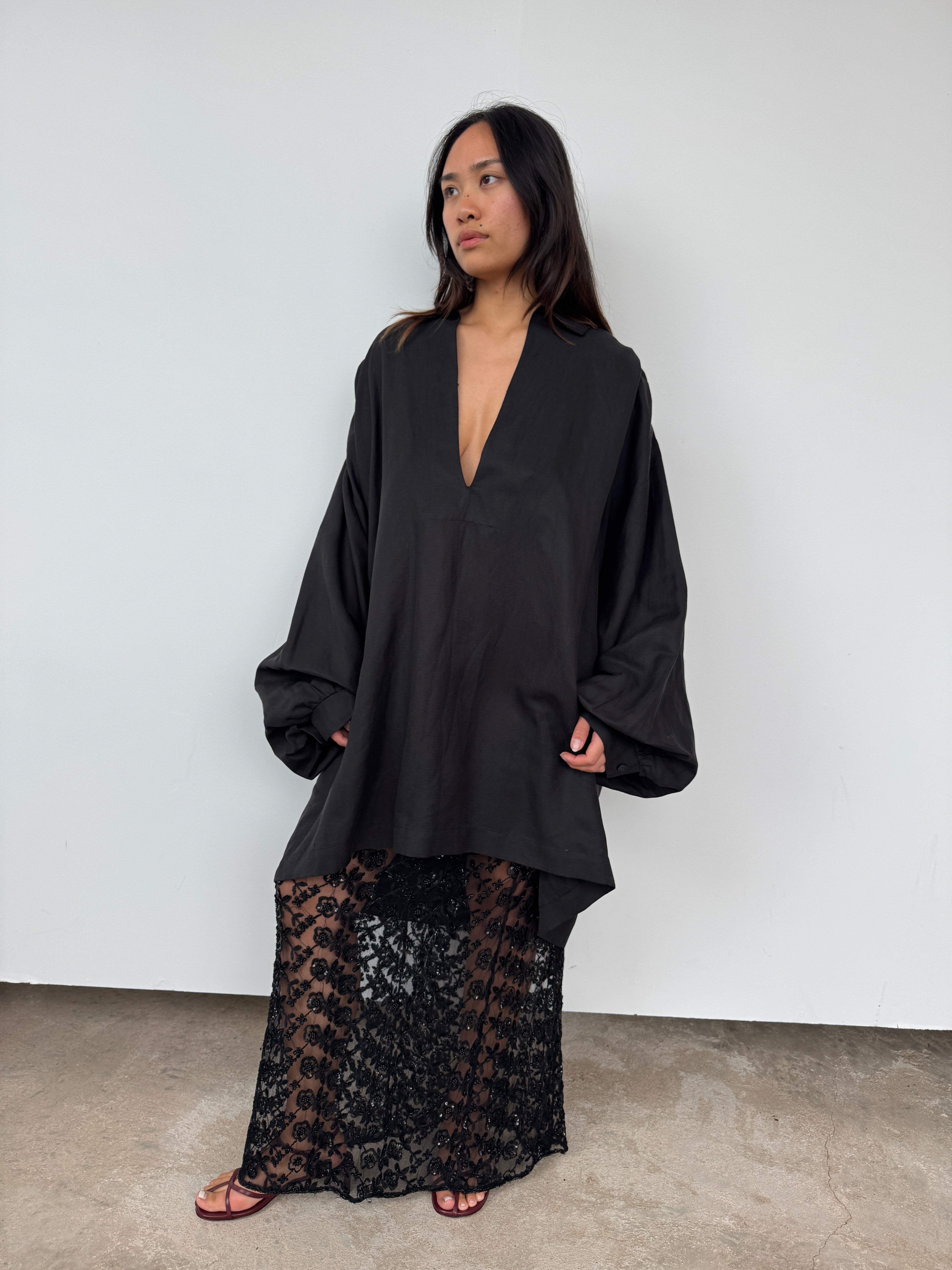 Raey Black Linen + Silk Oversized Tunic | O/S
