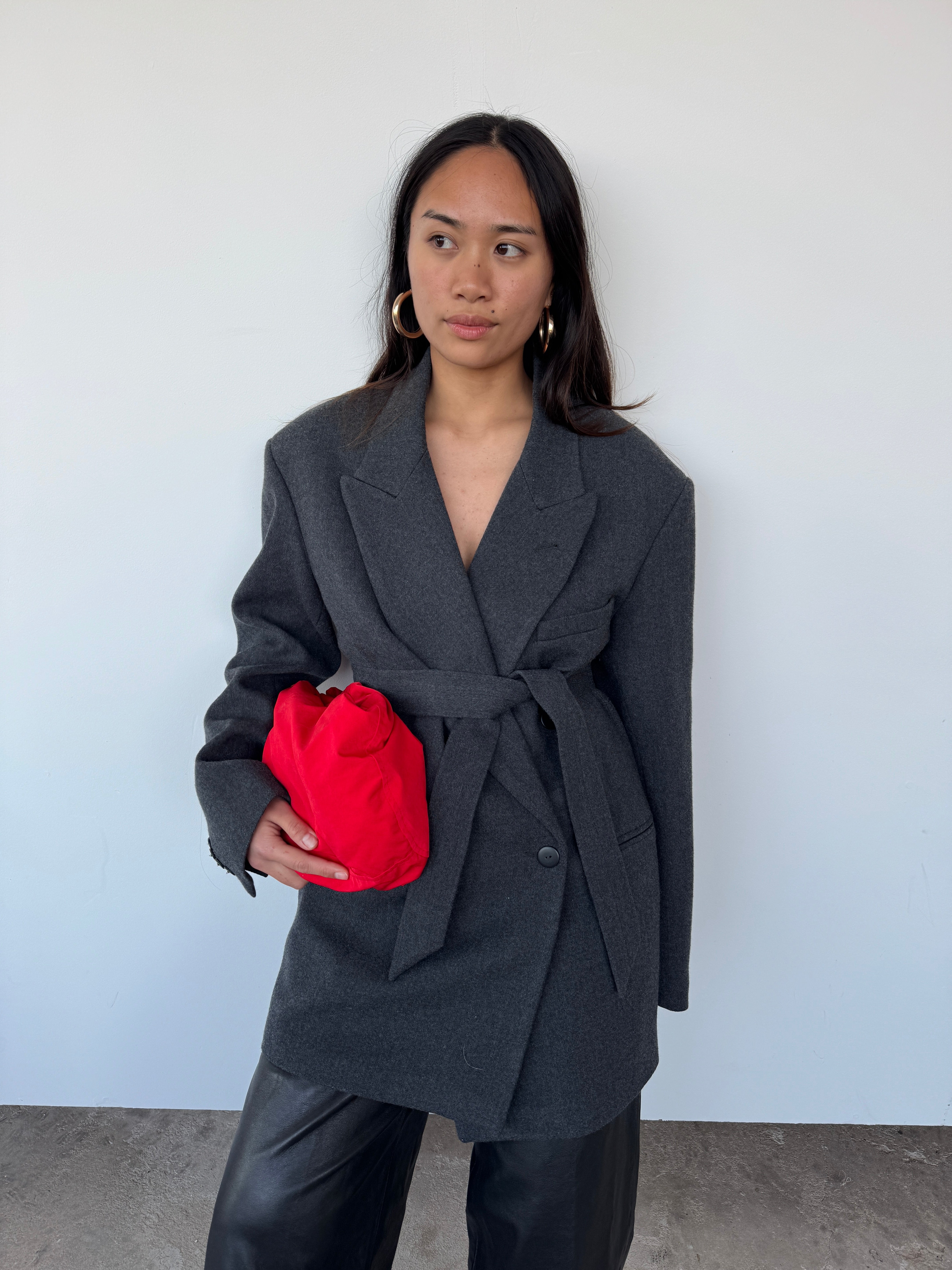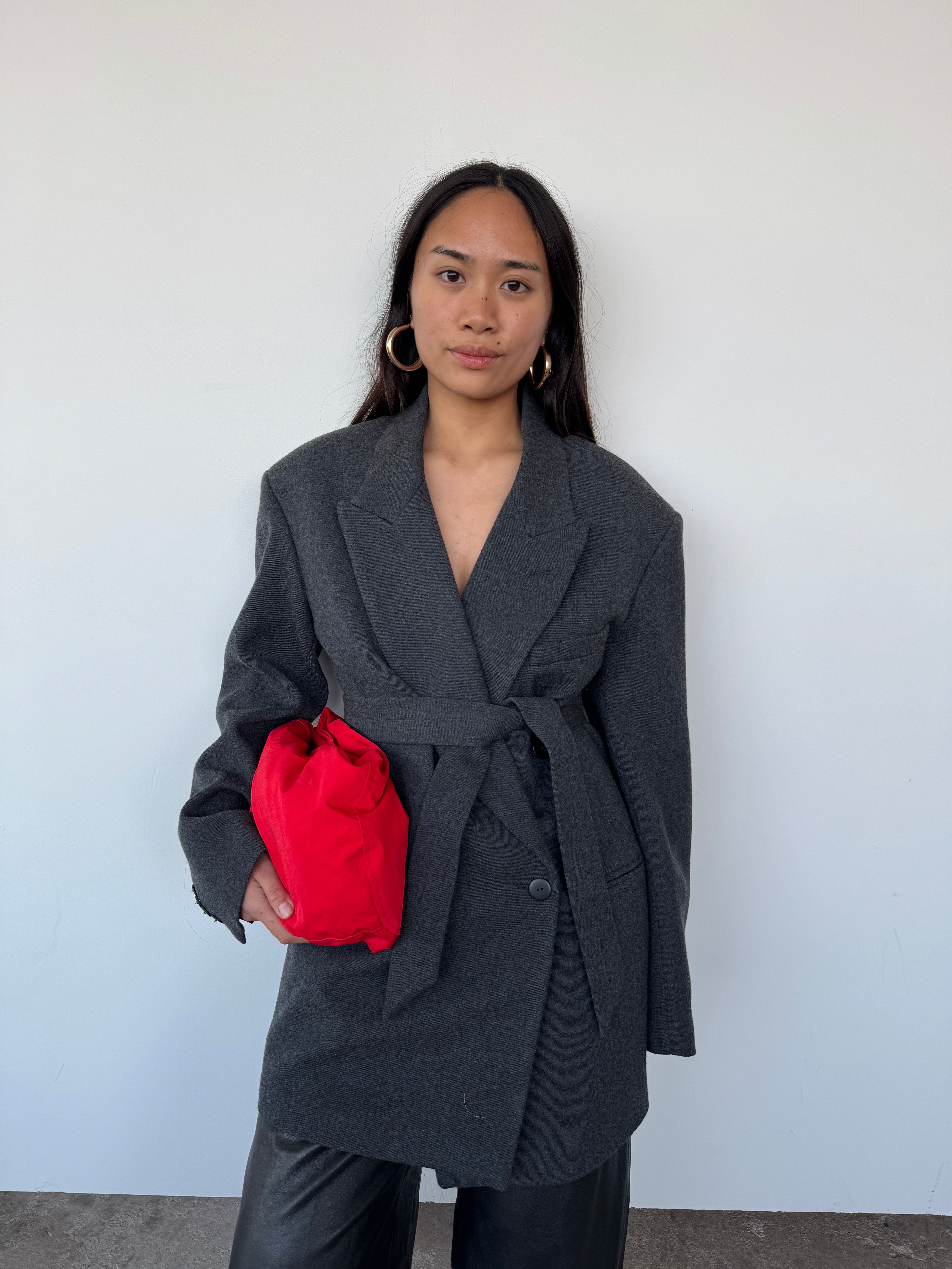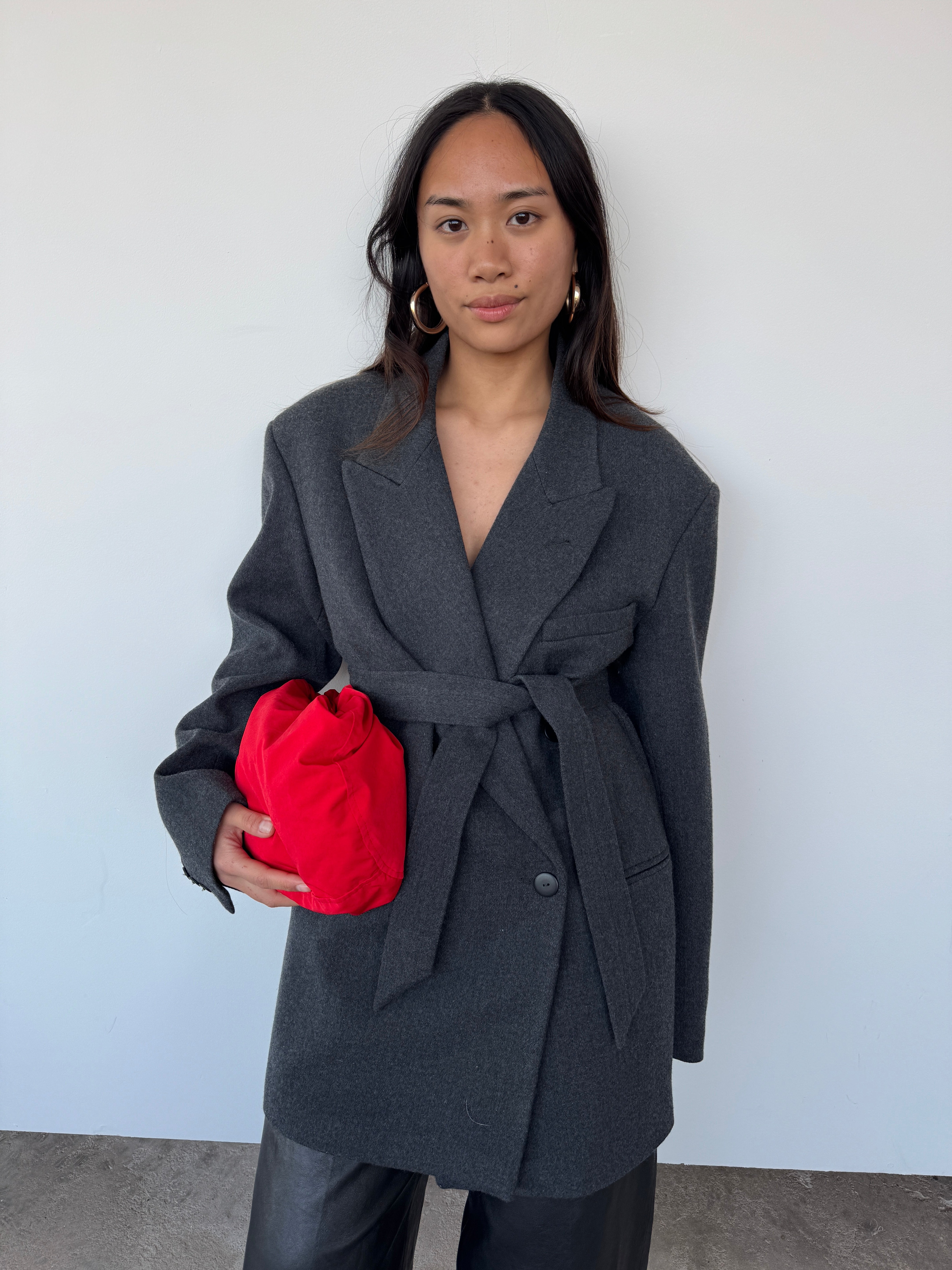 This Exaggerated Recycled Wool-blend Blazer by Raey is a timeless piece for your wardrobe. Crafted from a wool-blend fabric, the blazer offers an adjustable fit and is sustainably produced using recycled yarns. Classic grey hue and structured silhouette will work with any occasion.