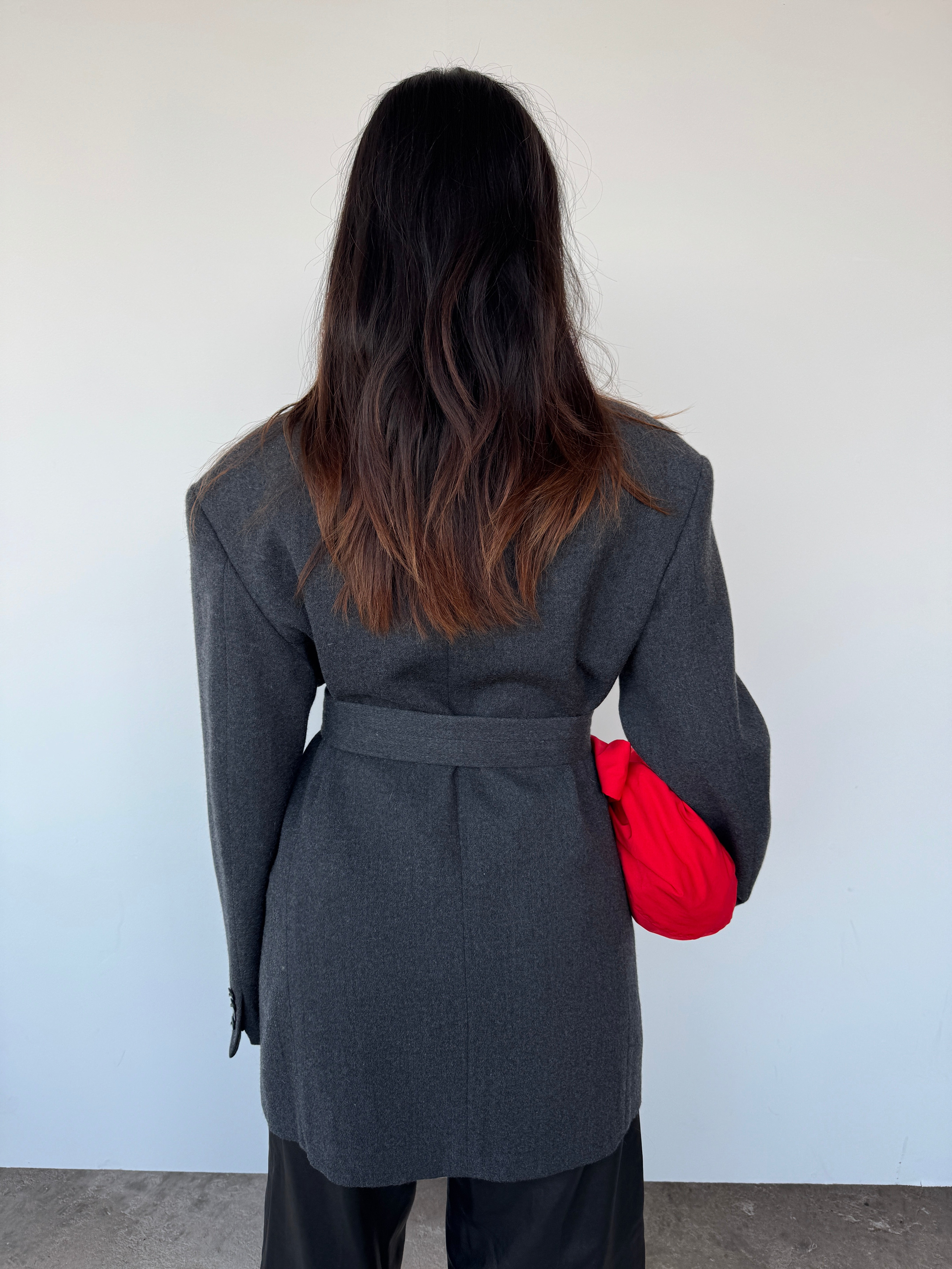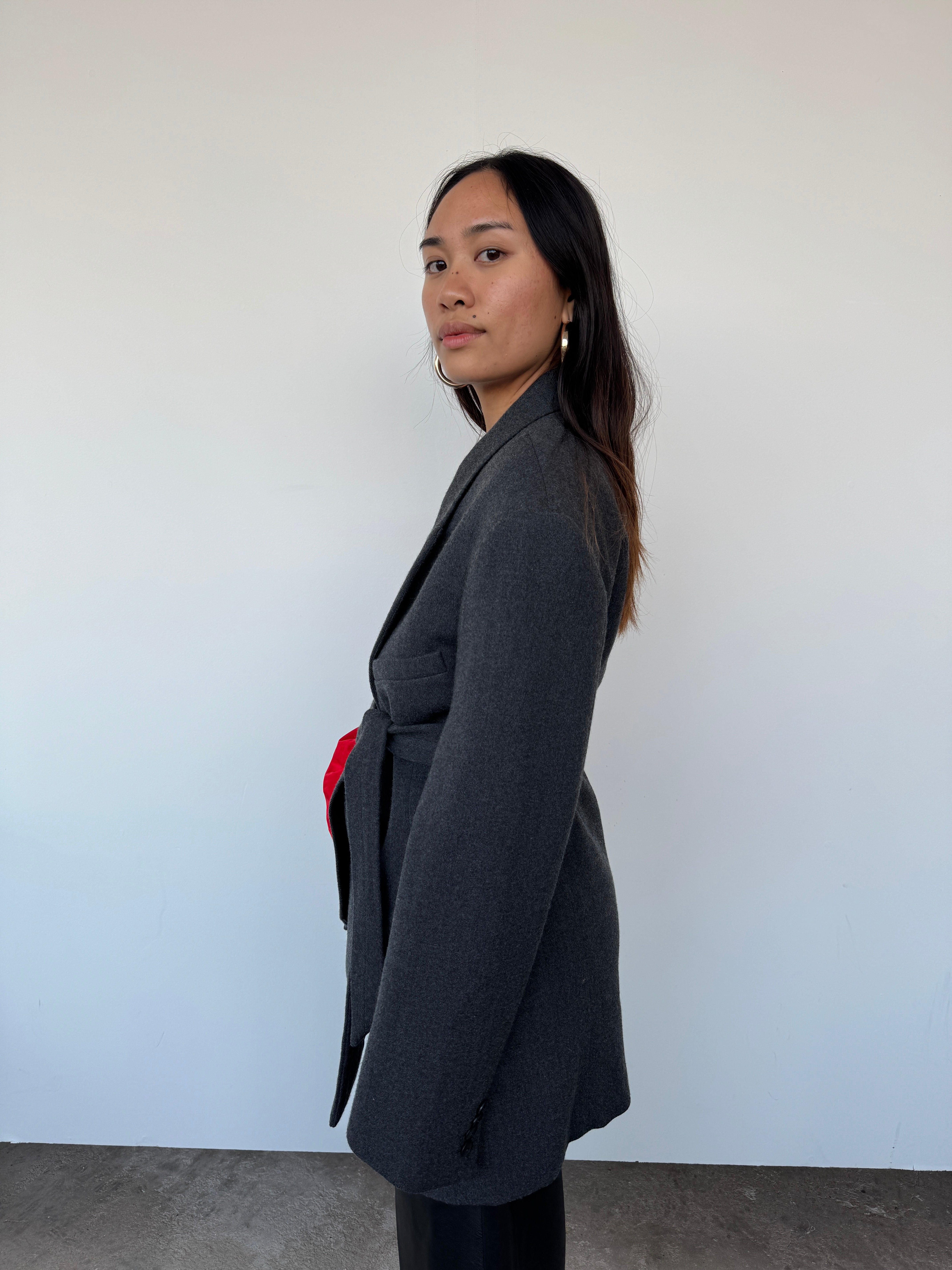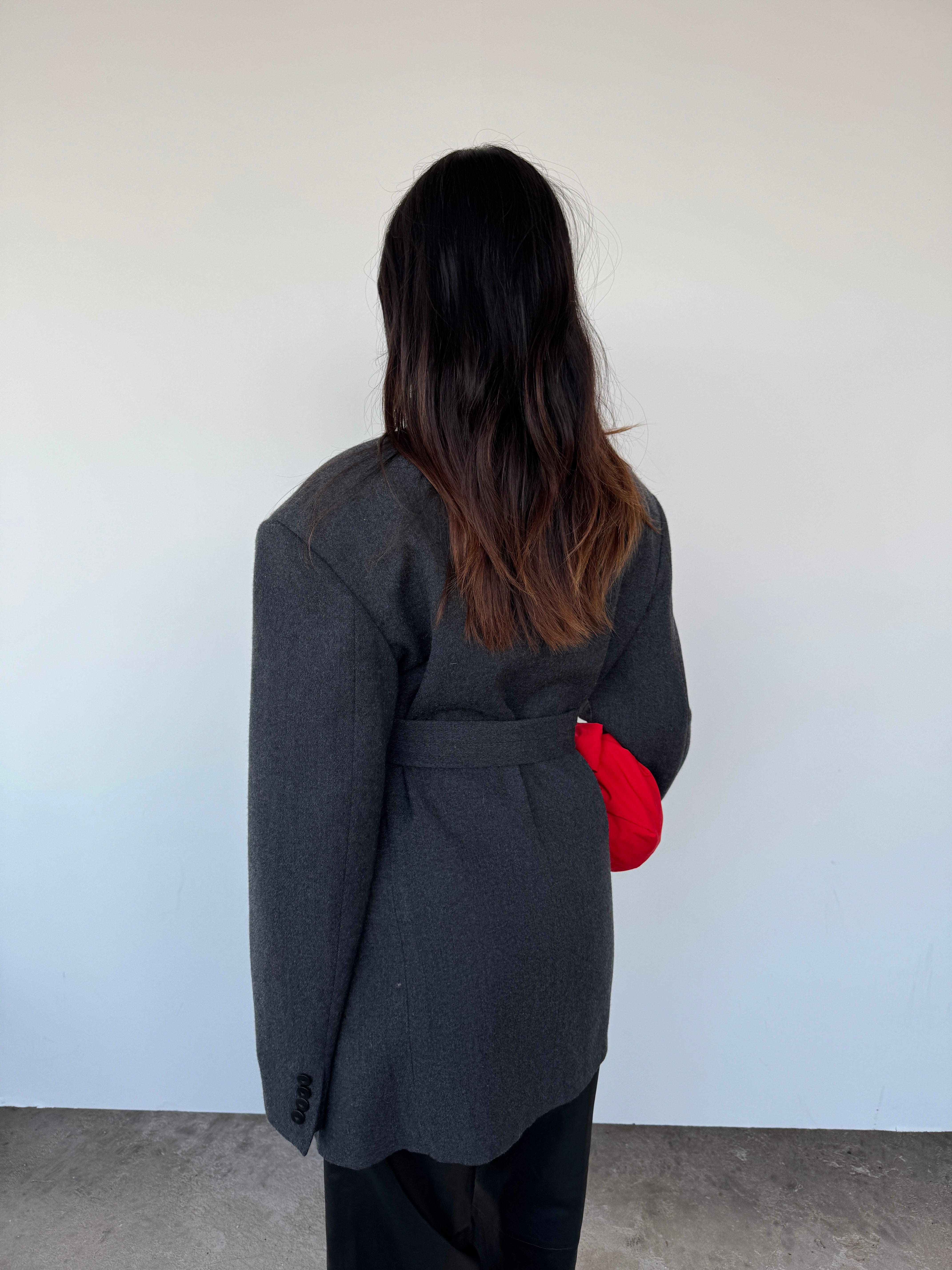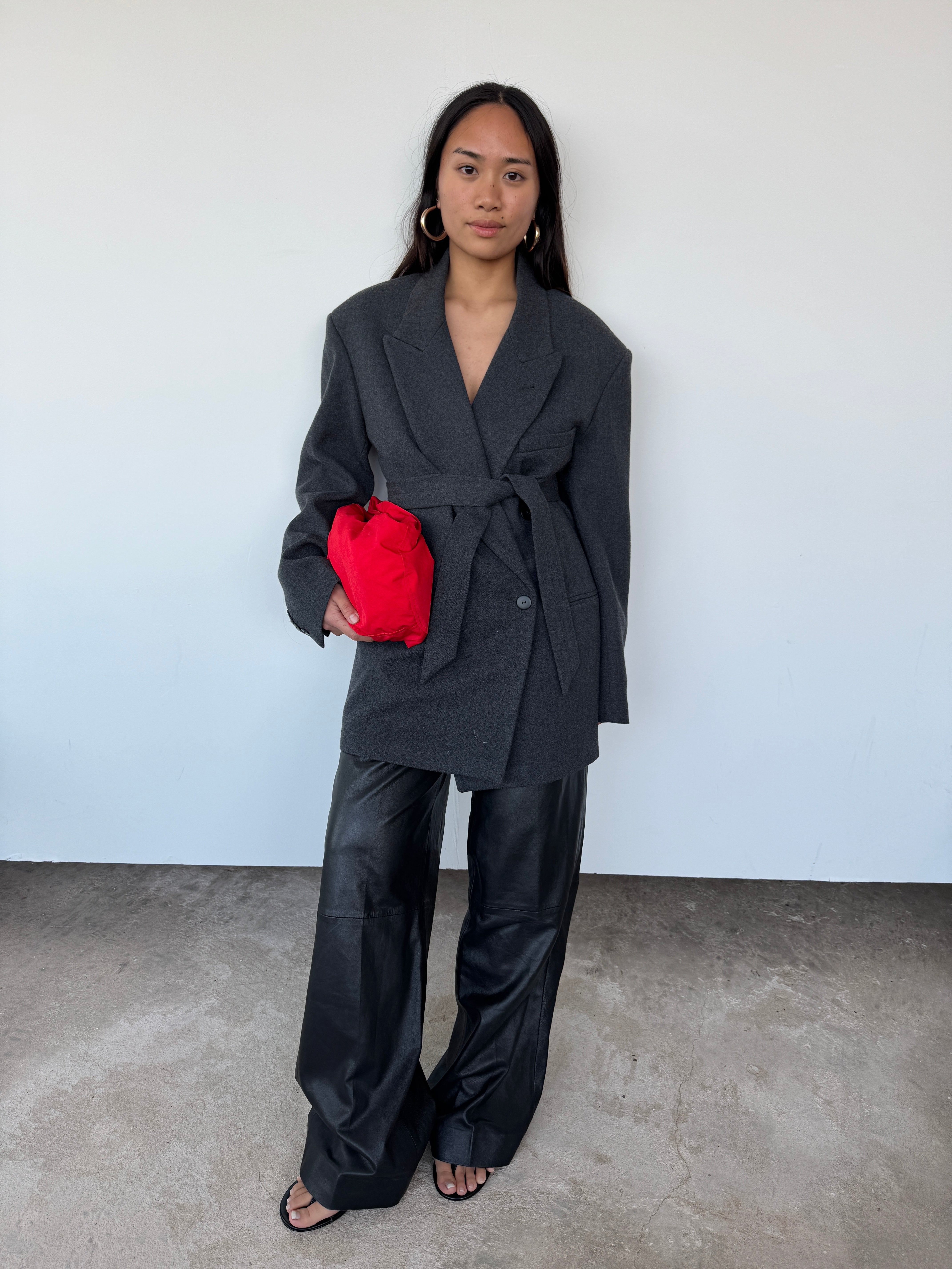 This Exaggerated Recycled Wool-blend Blazer by Raey is a timeless piece for your wardrobe. Crafted from a wool-blend fabric, the blazer offers an adjustable fit and is sustainably produced using recycled yarns. Classic grey hue and structured silhouette will work with any occasion.