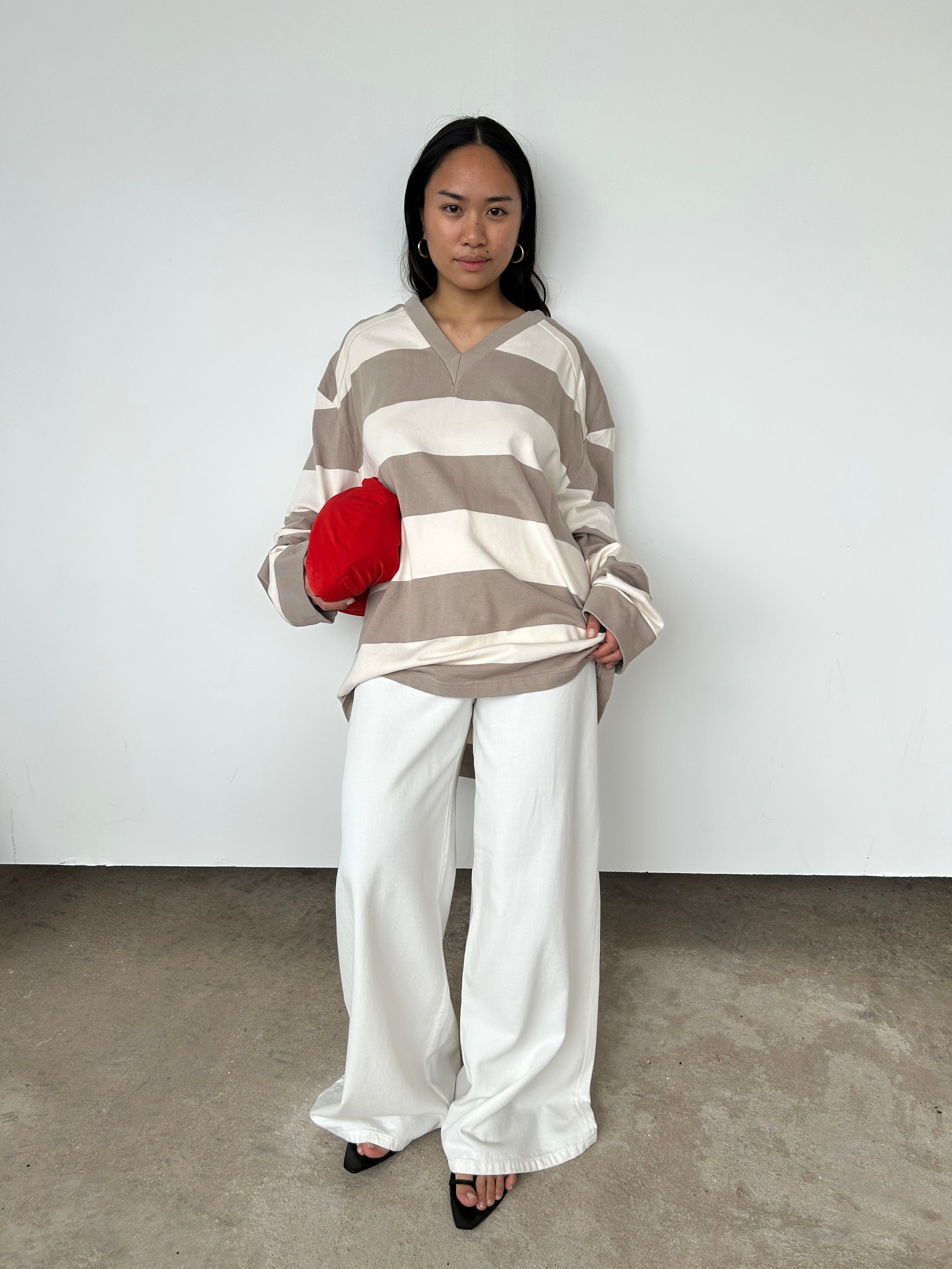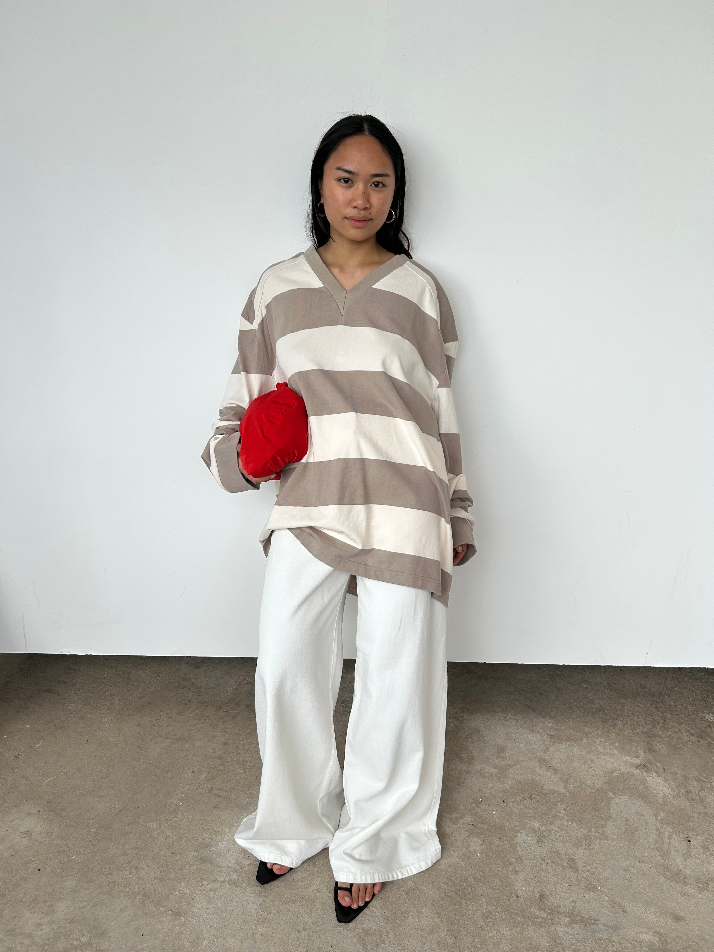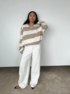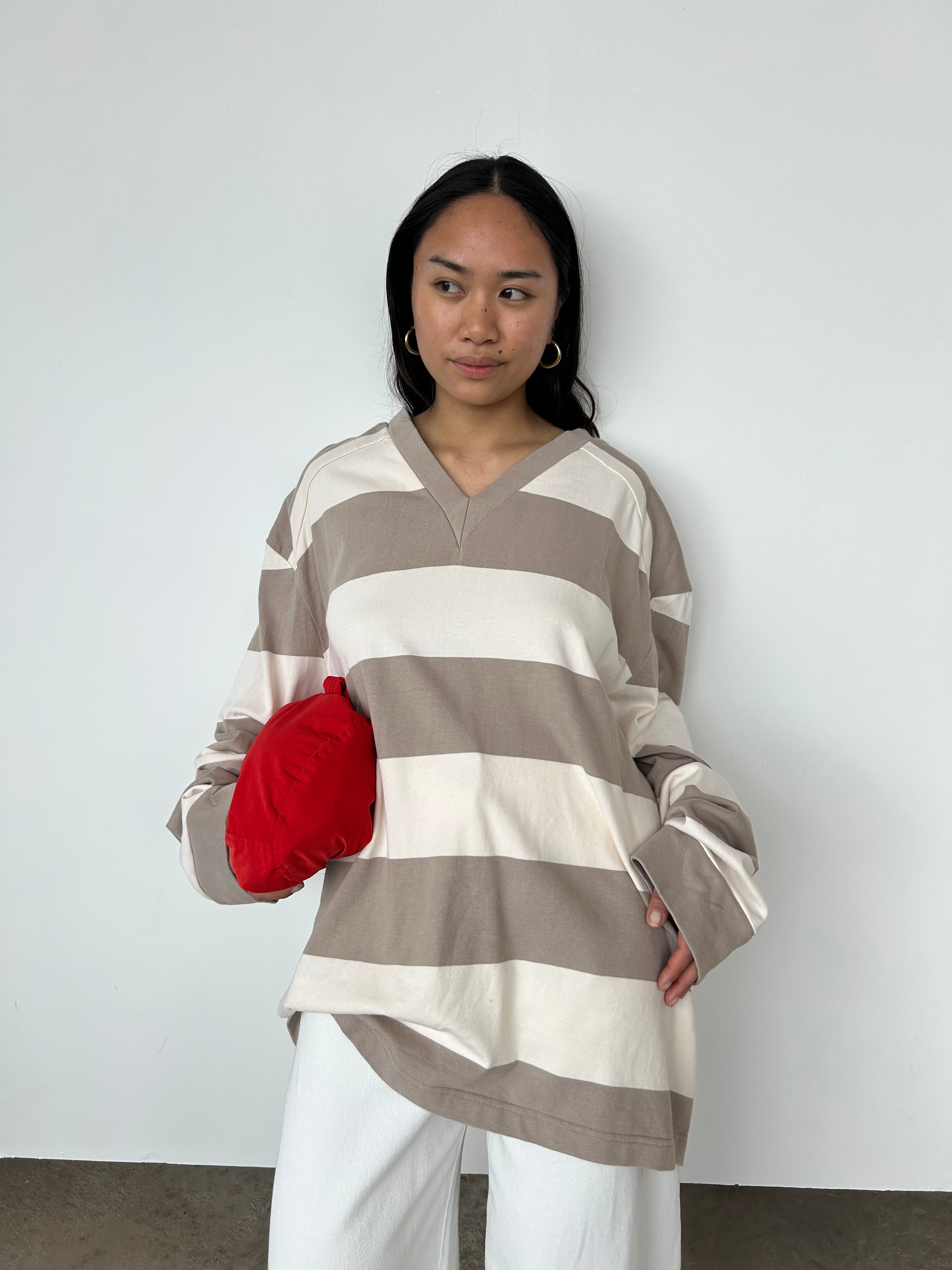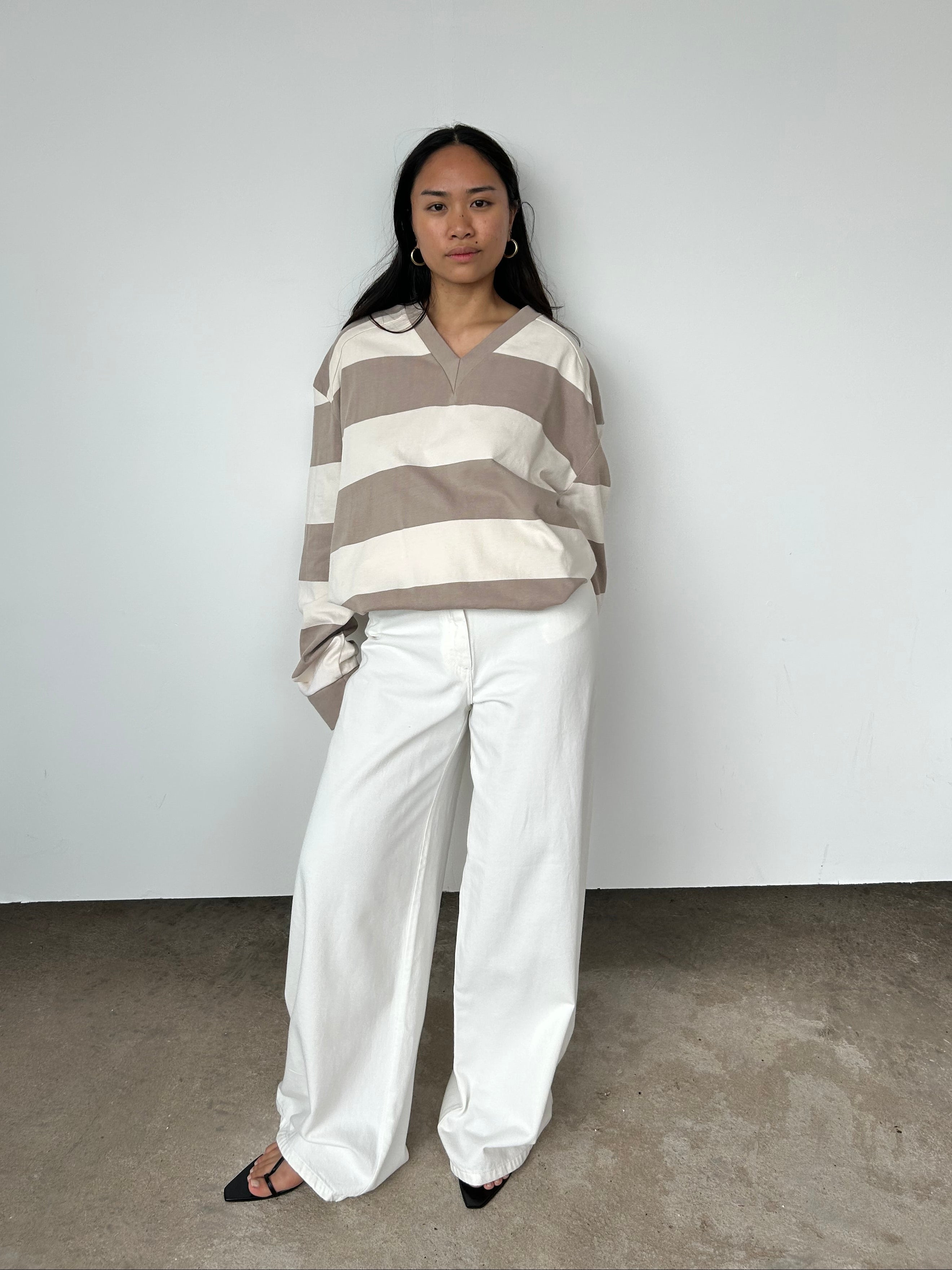 Raey's beige and white striped rugby top is shaped to an oversized fit from cotton jersey and has dropped shoulders for a relaxed, slouchy fit.