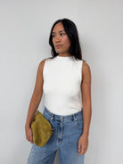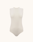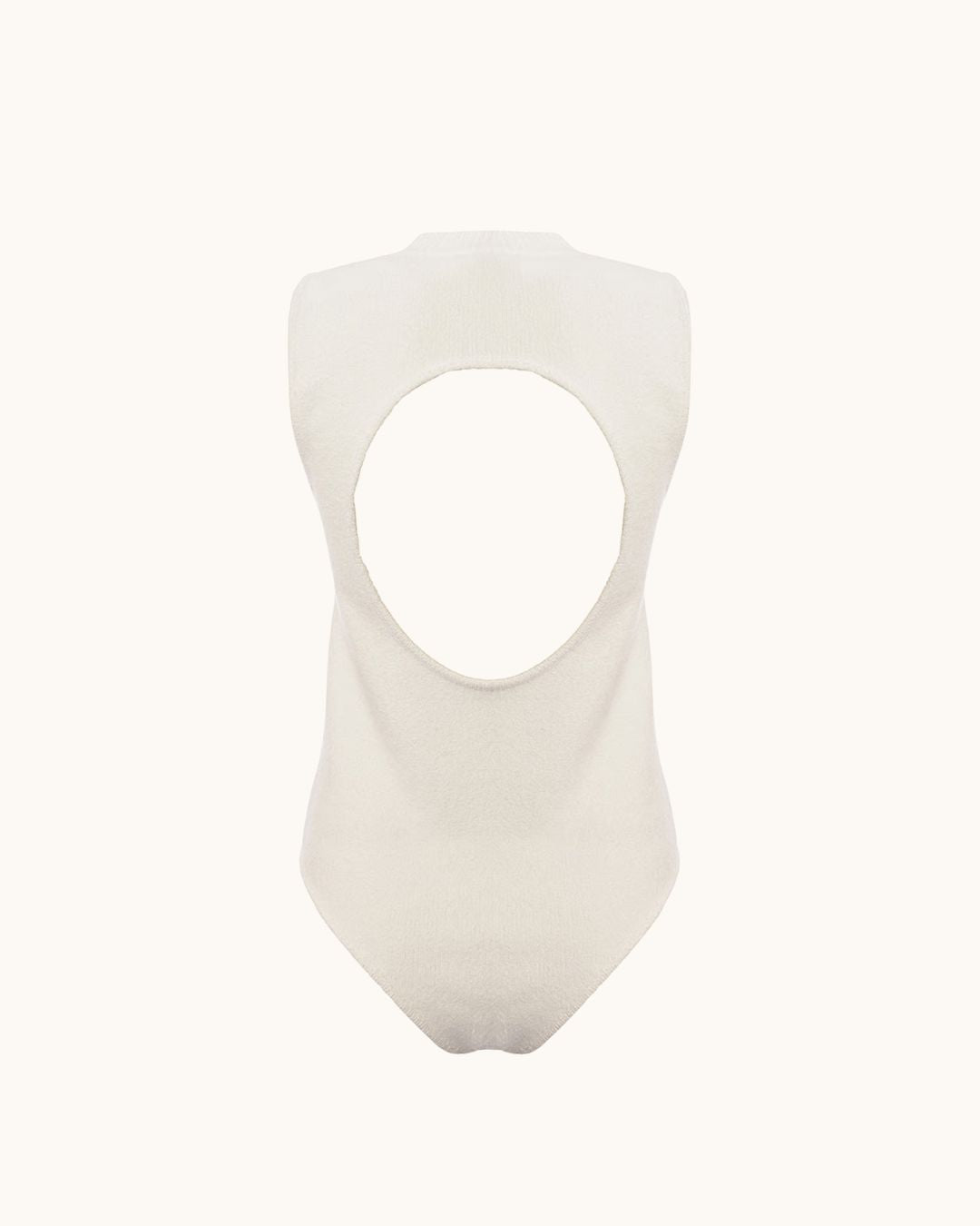 Raey's ivory bodysuit is knitted from cotton-blend boucle and shaped to a high neck, then turns to reveal a circular cutout.