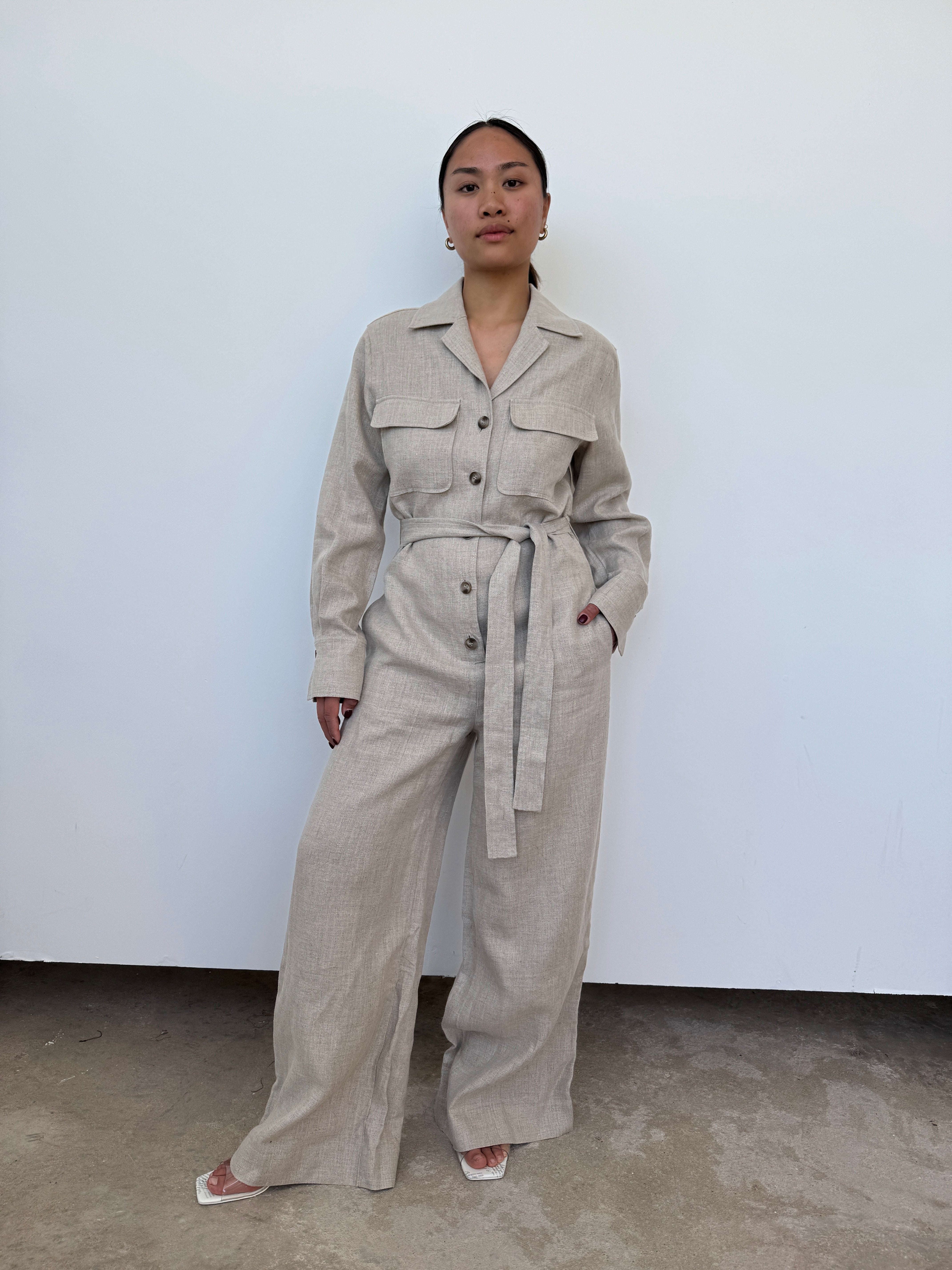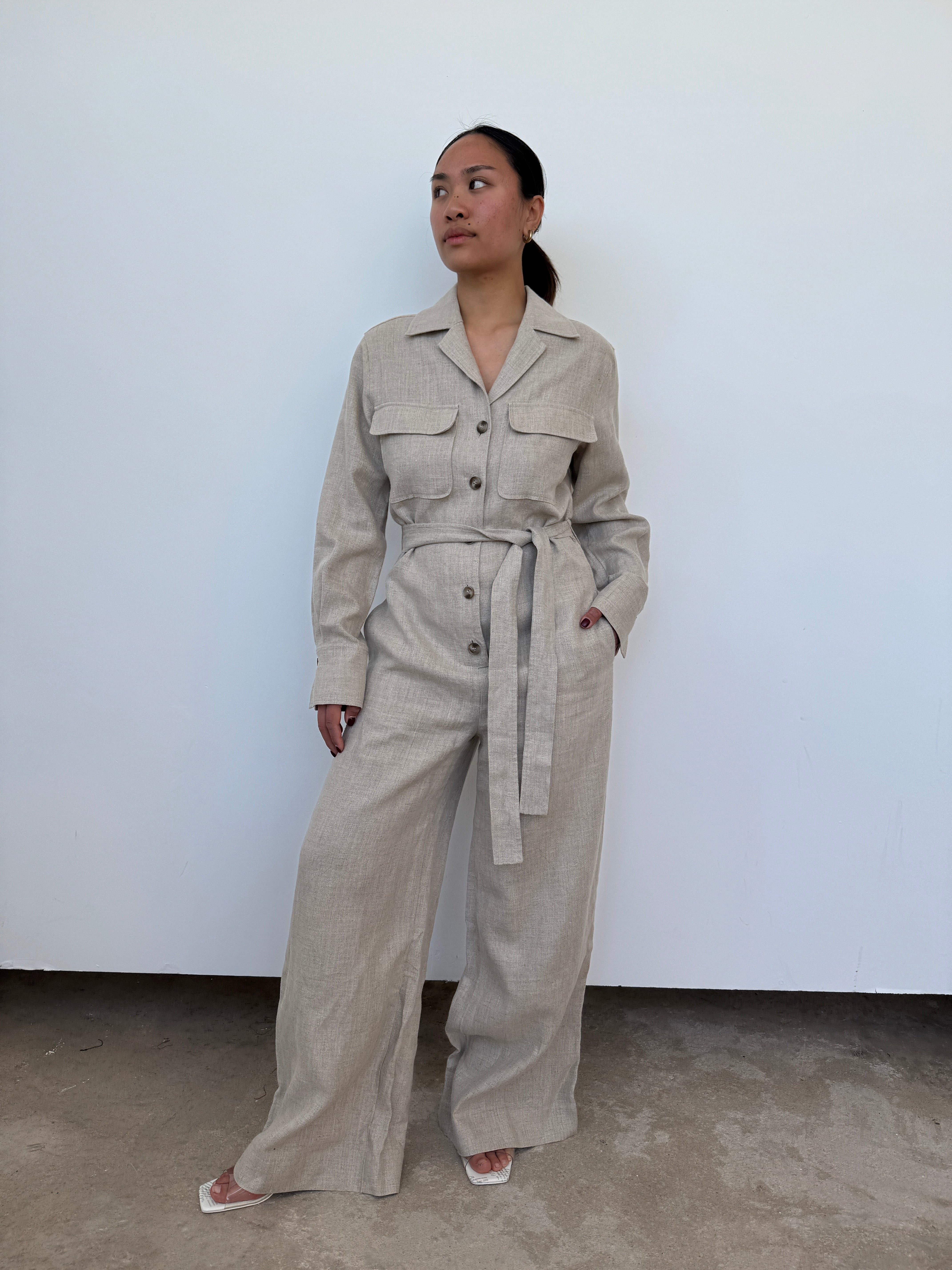 Reiss Oatmeal Linen Jumpsuit | UK10