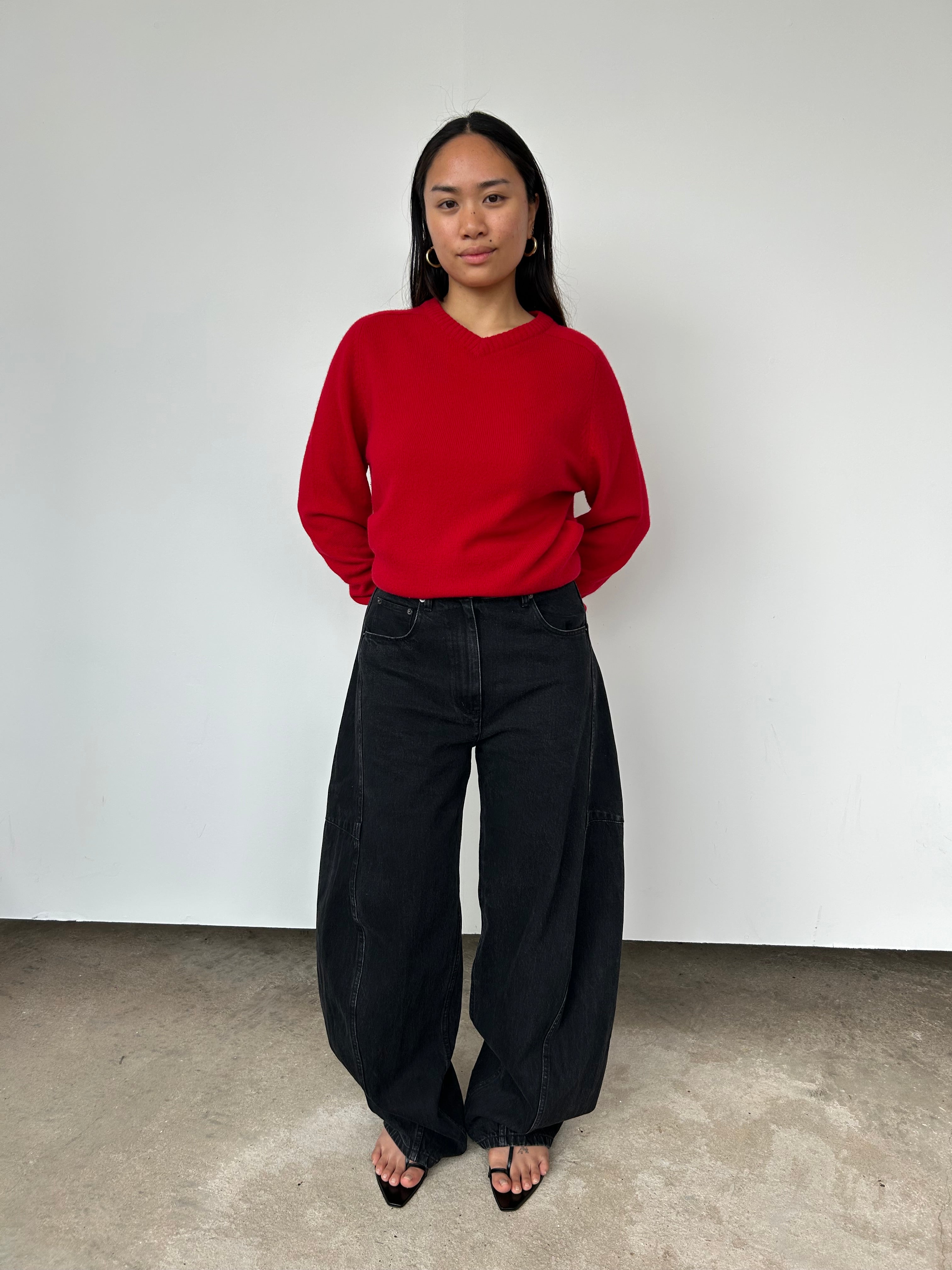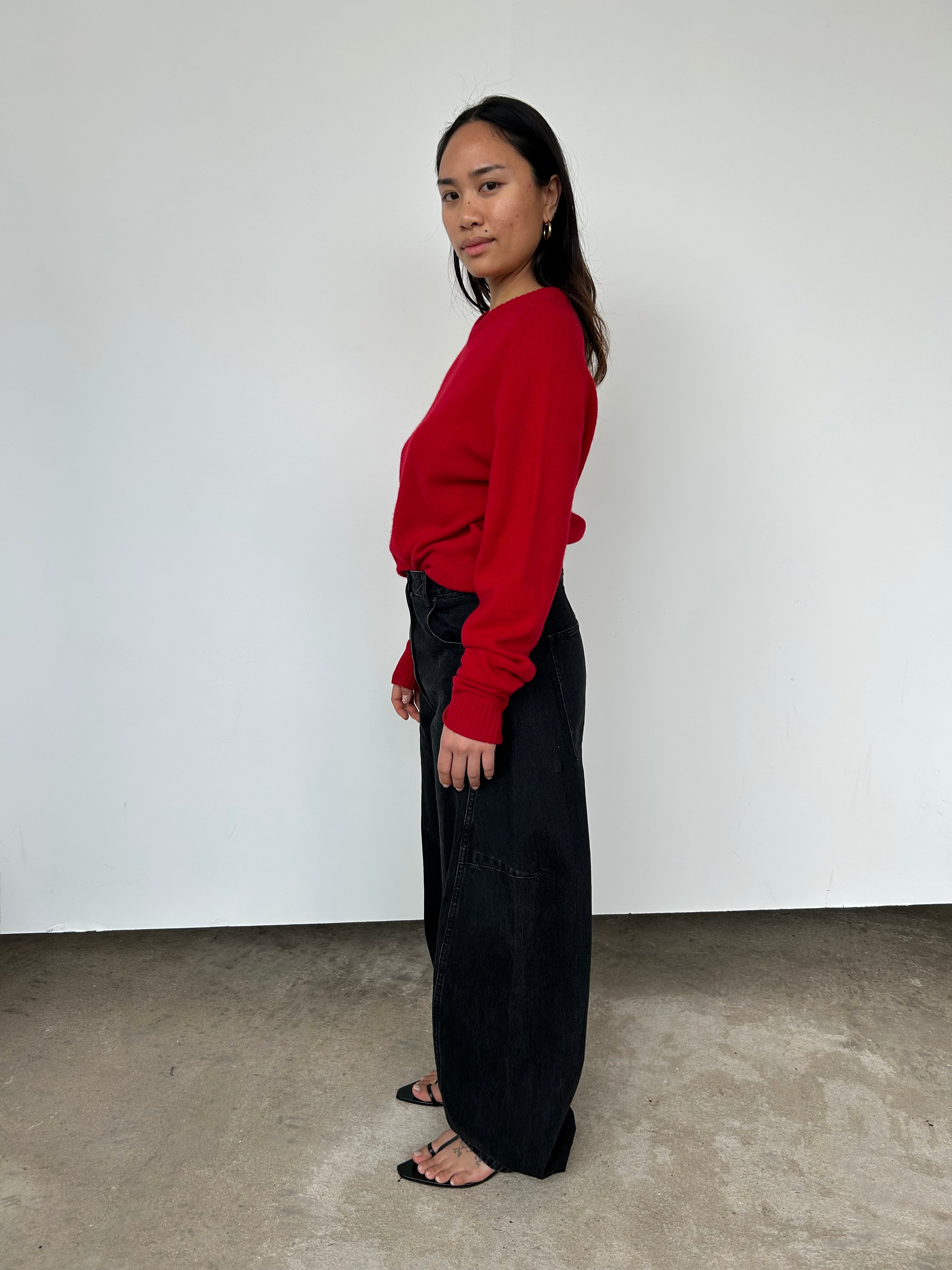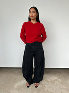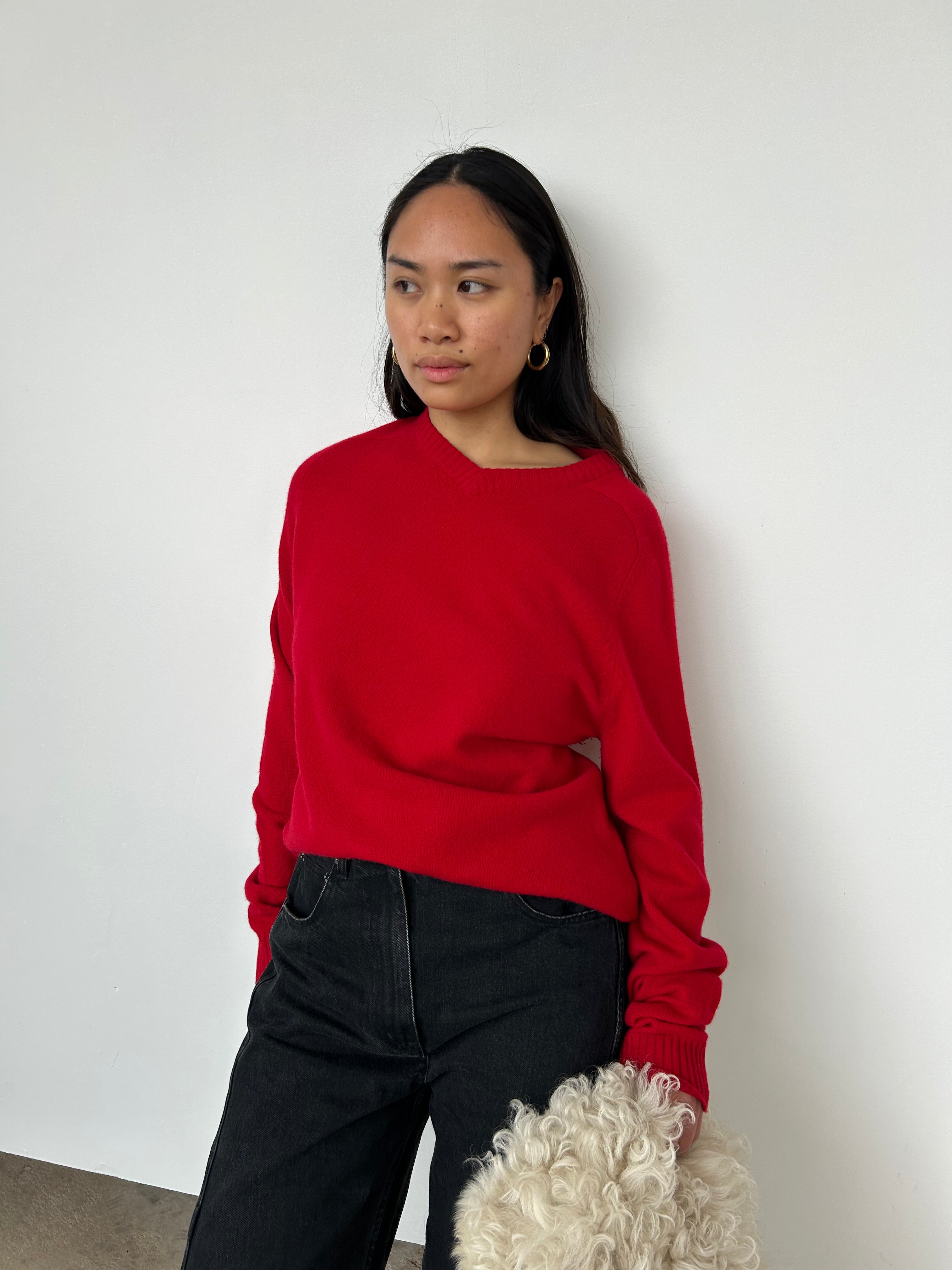 We love this jumper worn traditionally, or styled creatively - wrapped around the neck or waist - for the perfect pop of red.