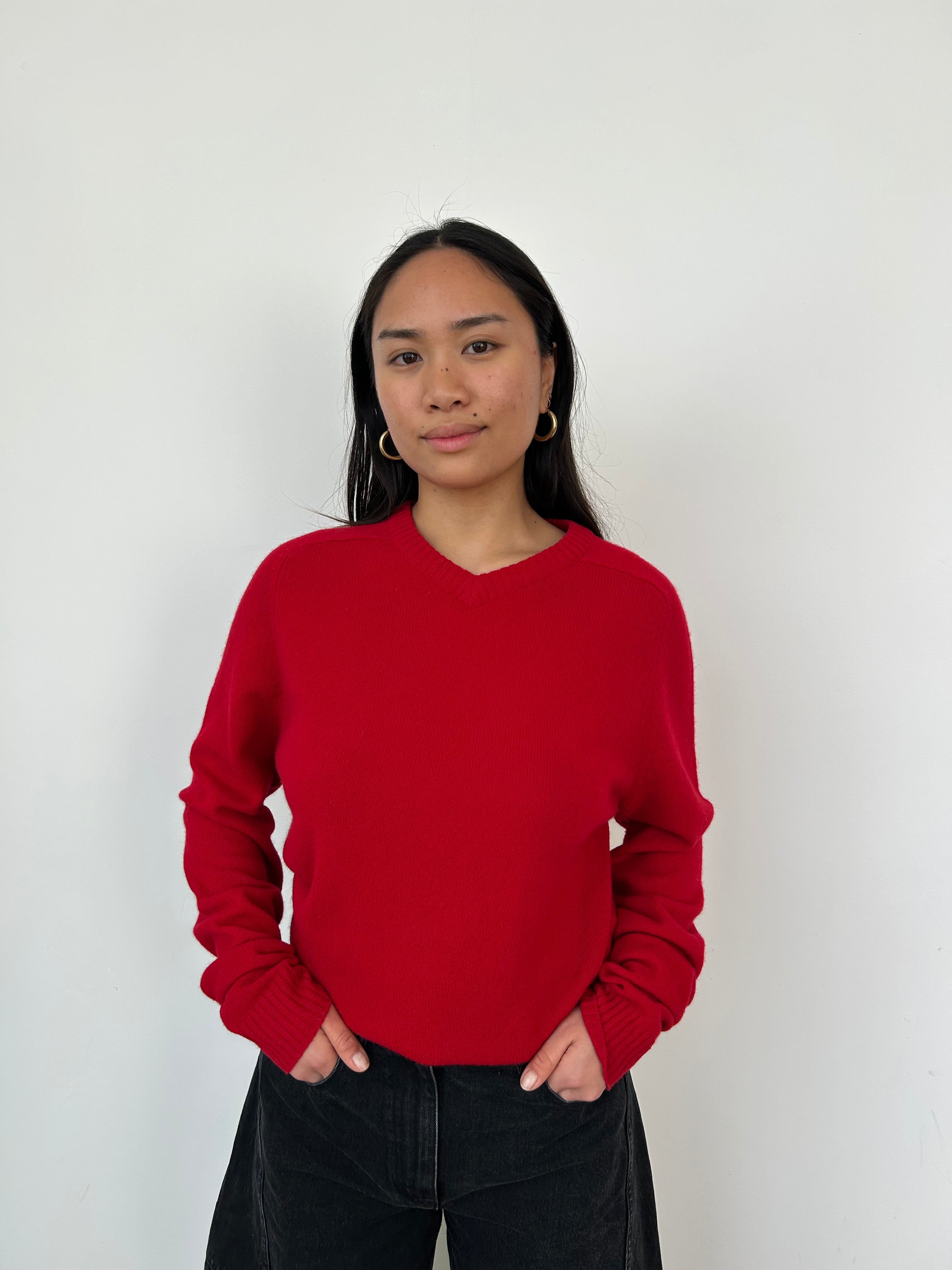 Vintage Jaeger Red V-Neck Wool Jumper | M