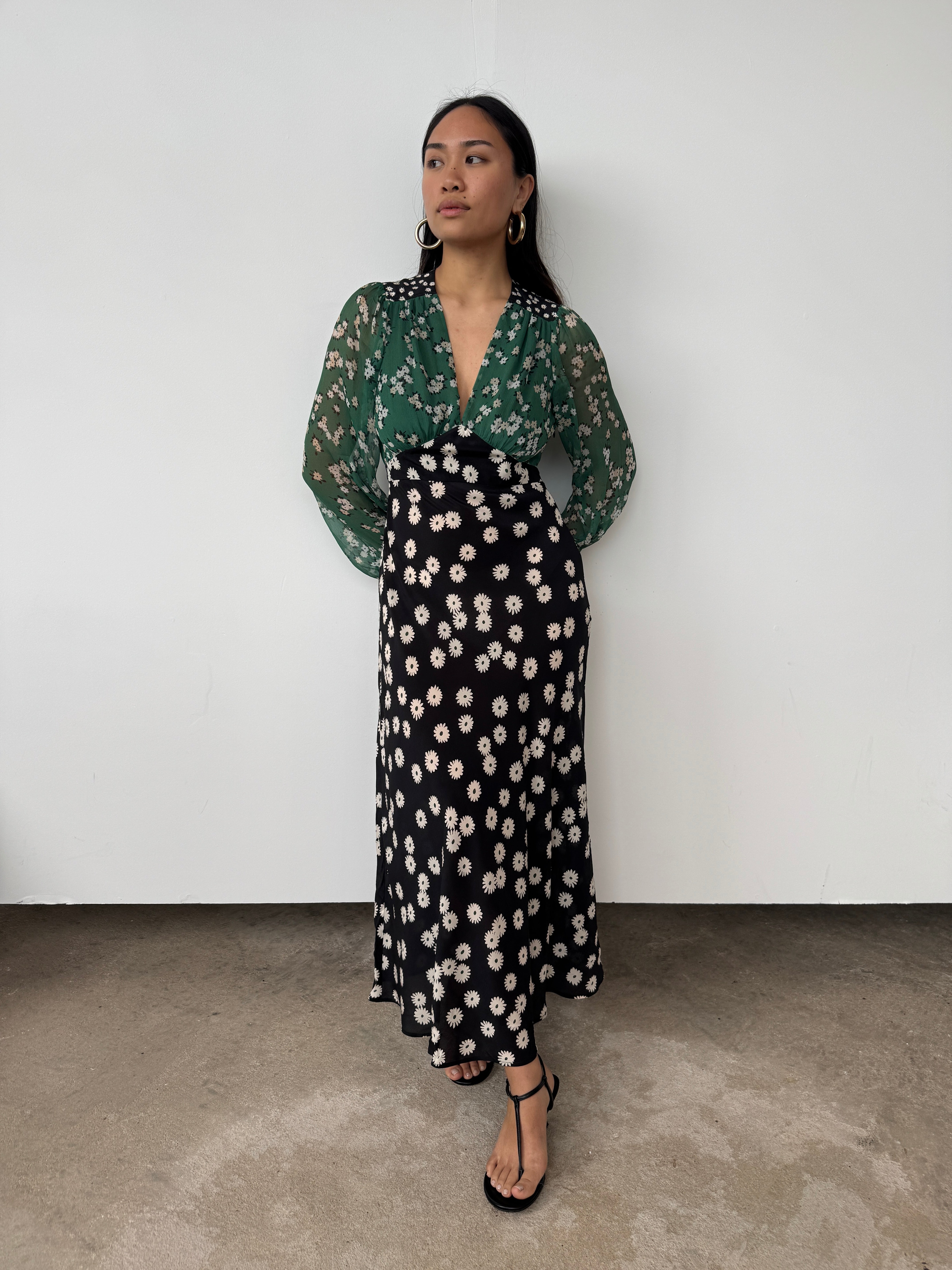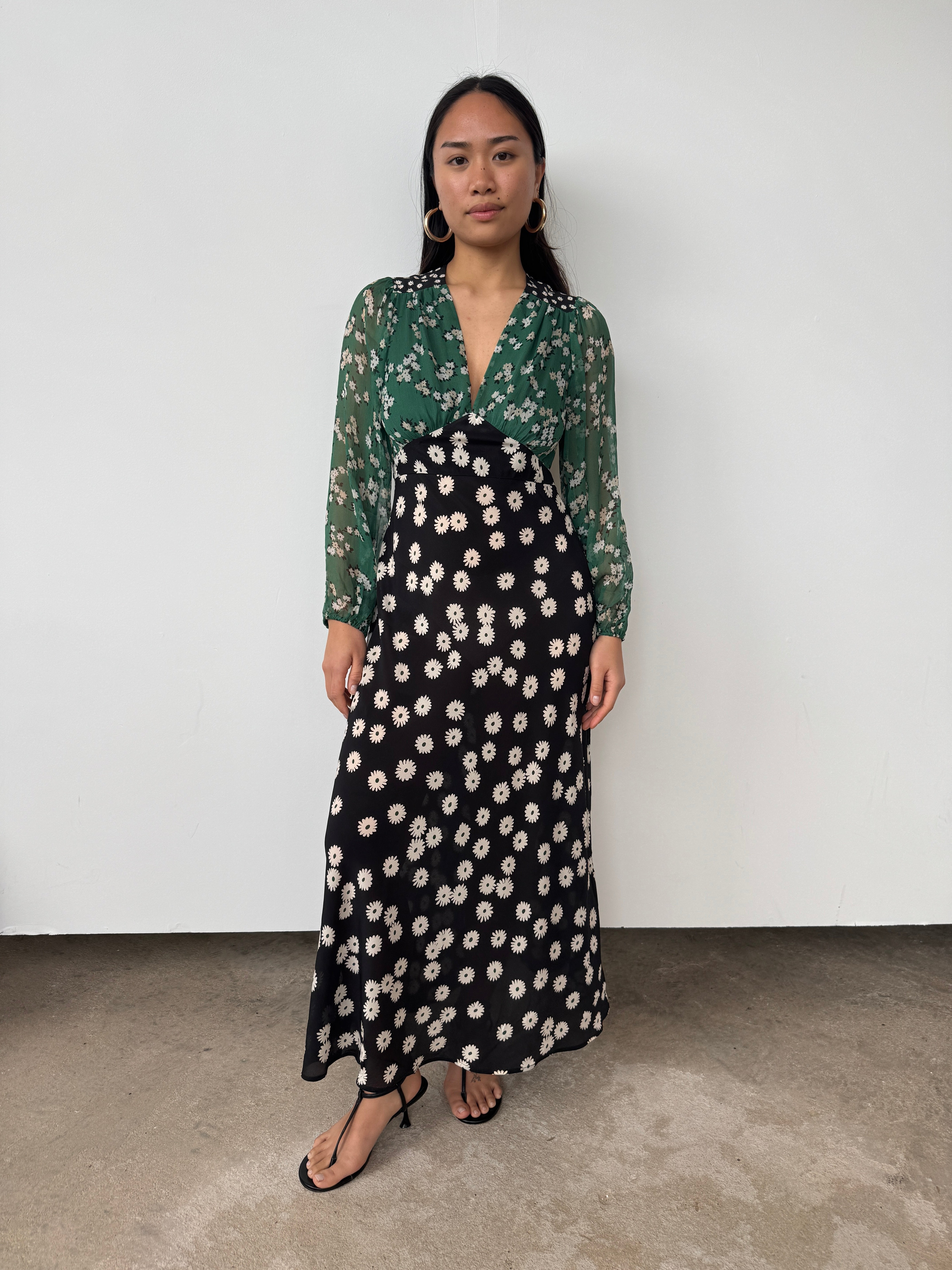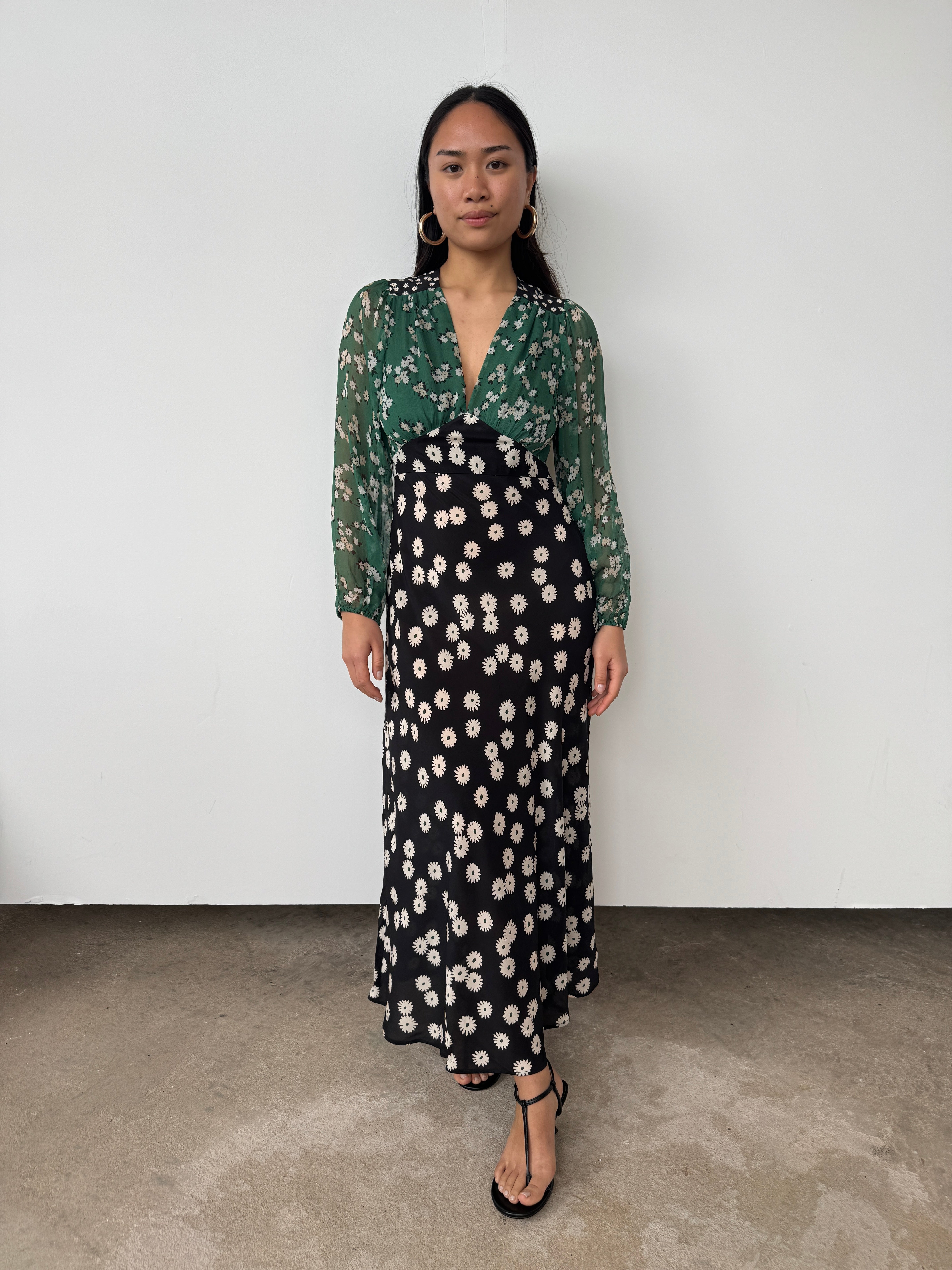 Rixo Floral Black + Green 'Kaila' Silk Dress | UK8