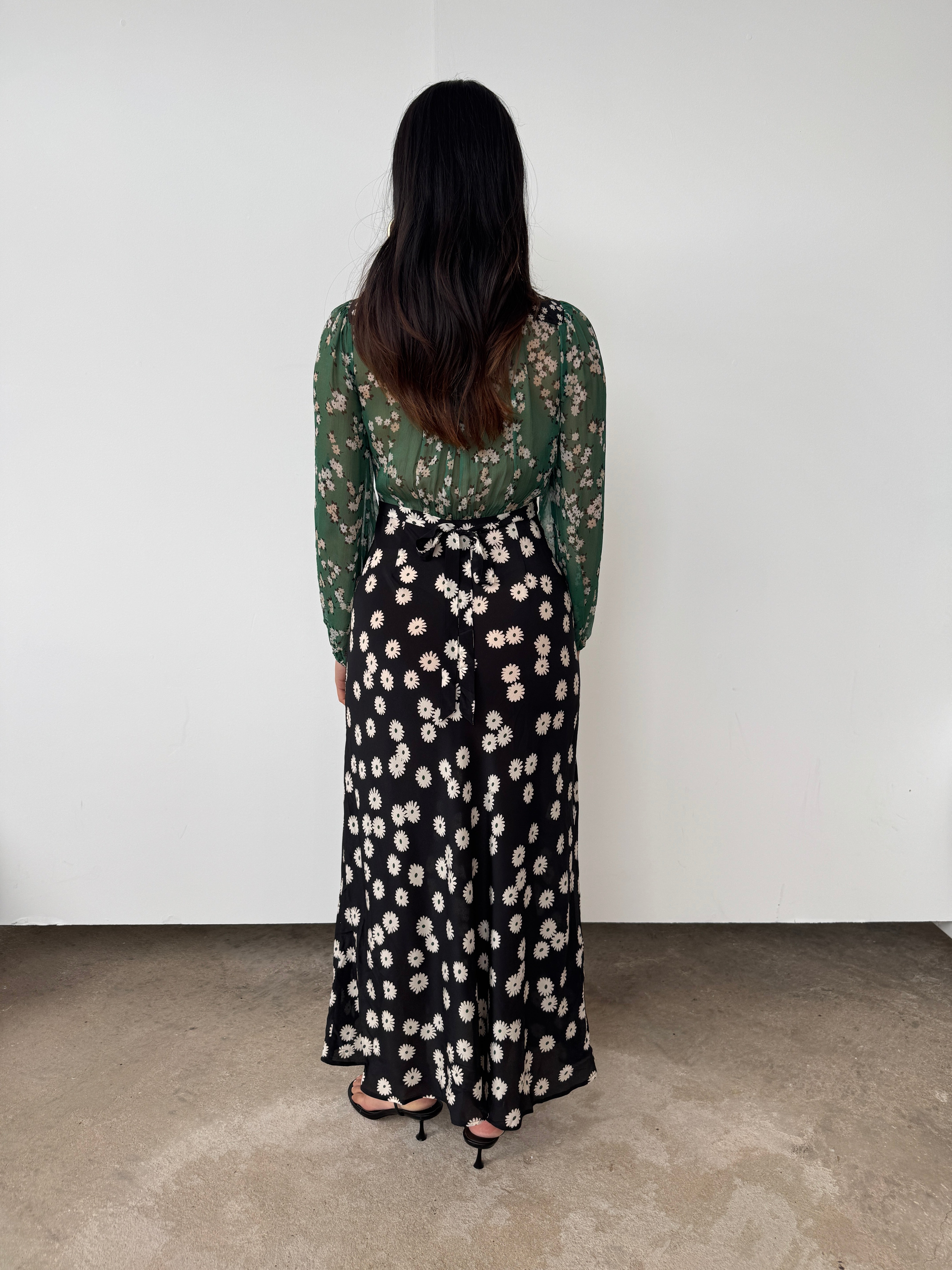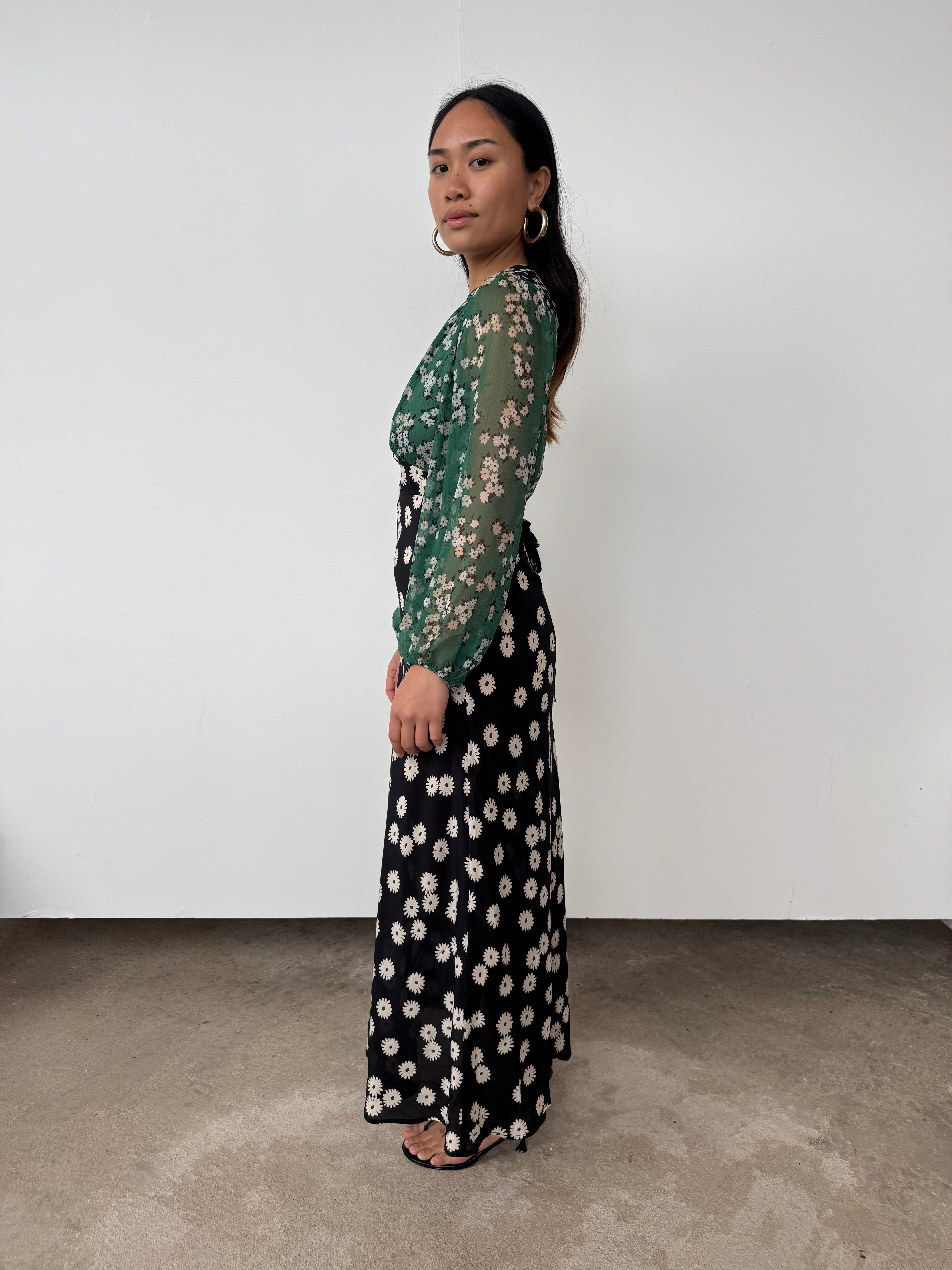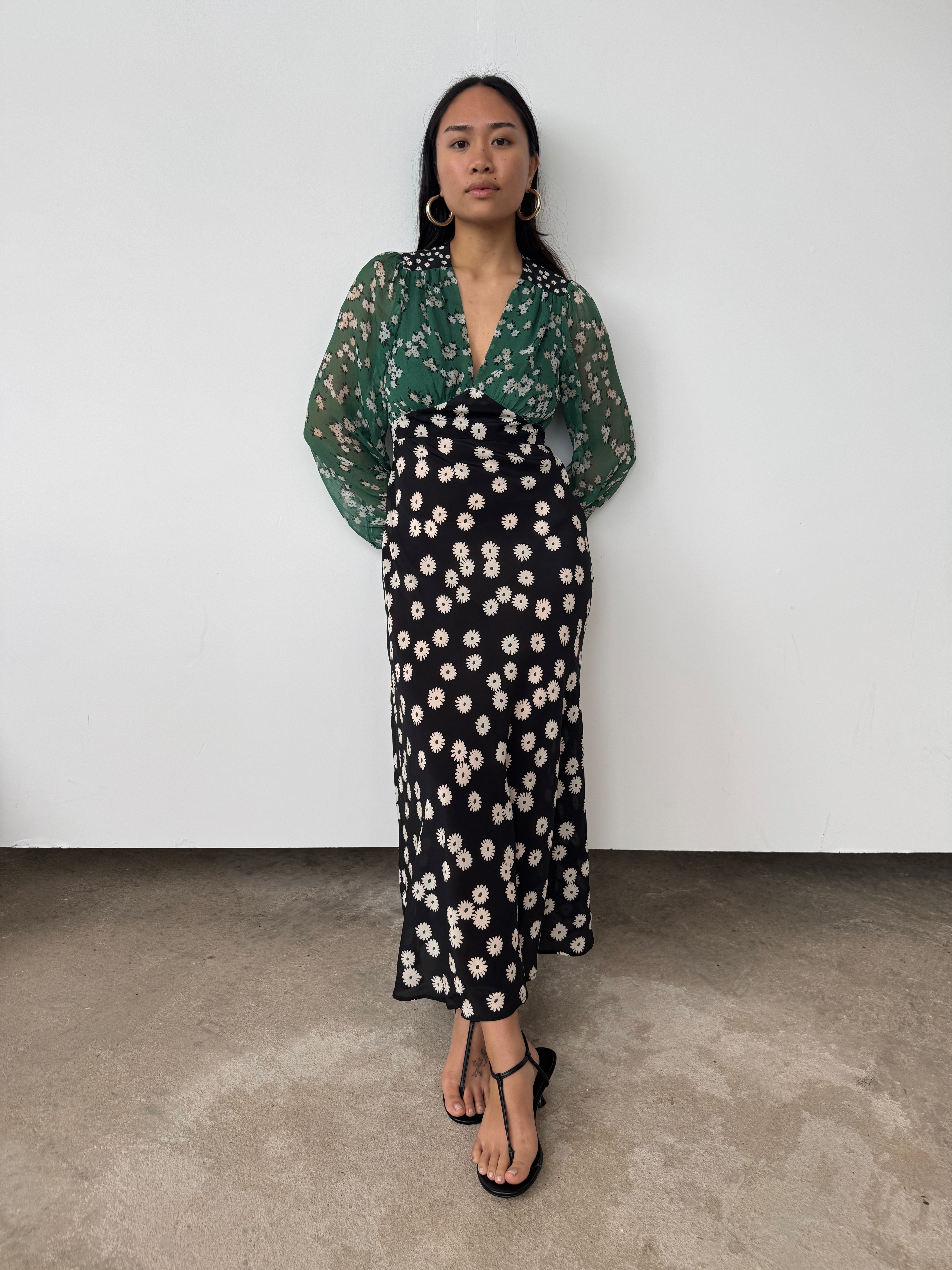 Rixo Floral Black + Green 'Kaila' Silk Dress | UK8