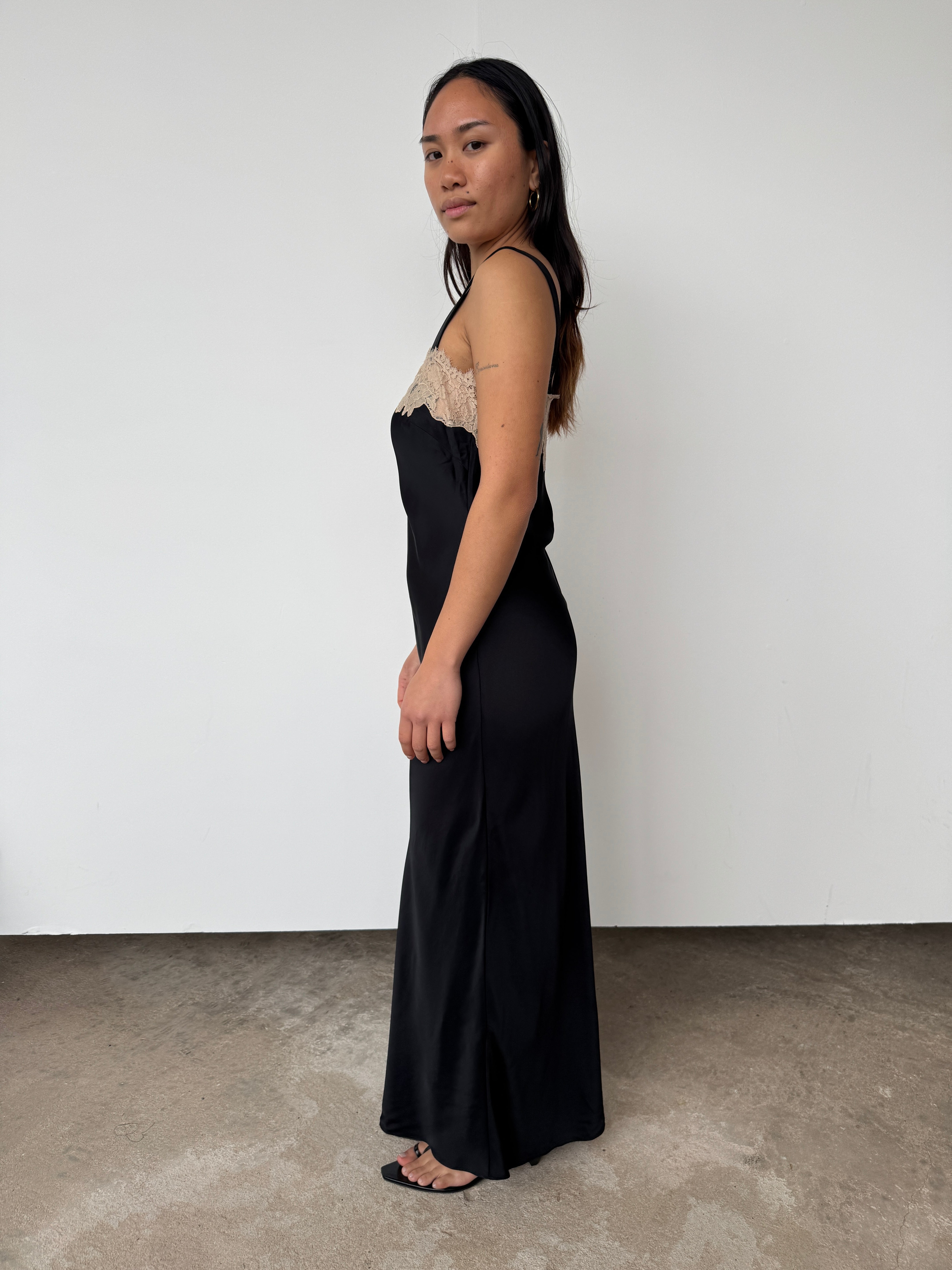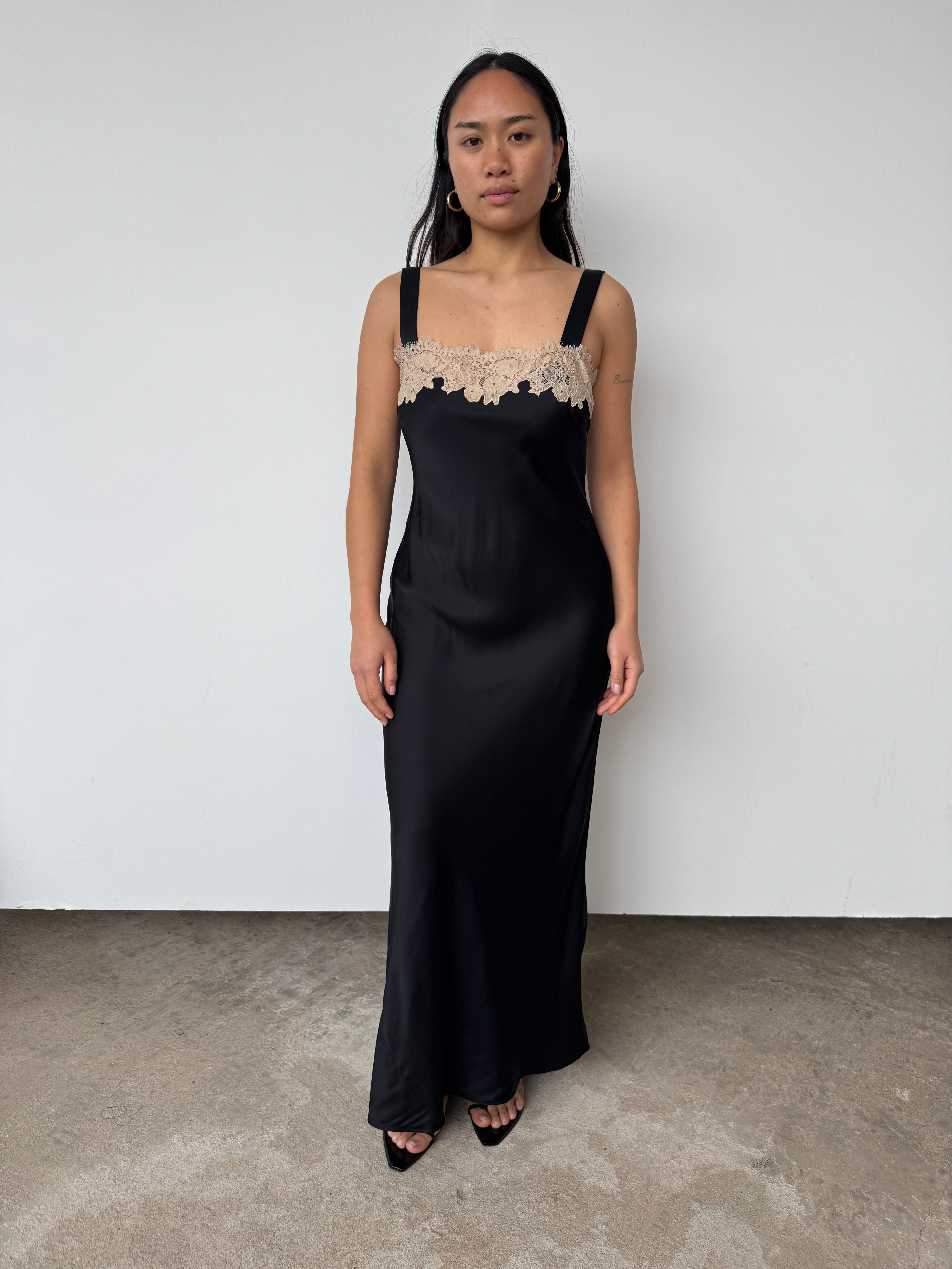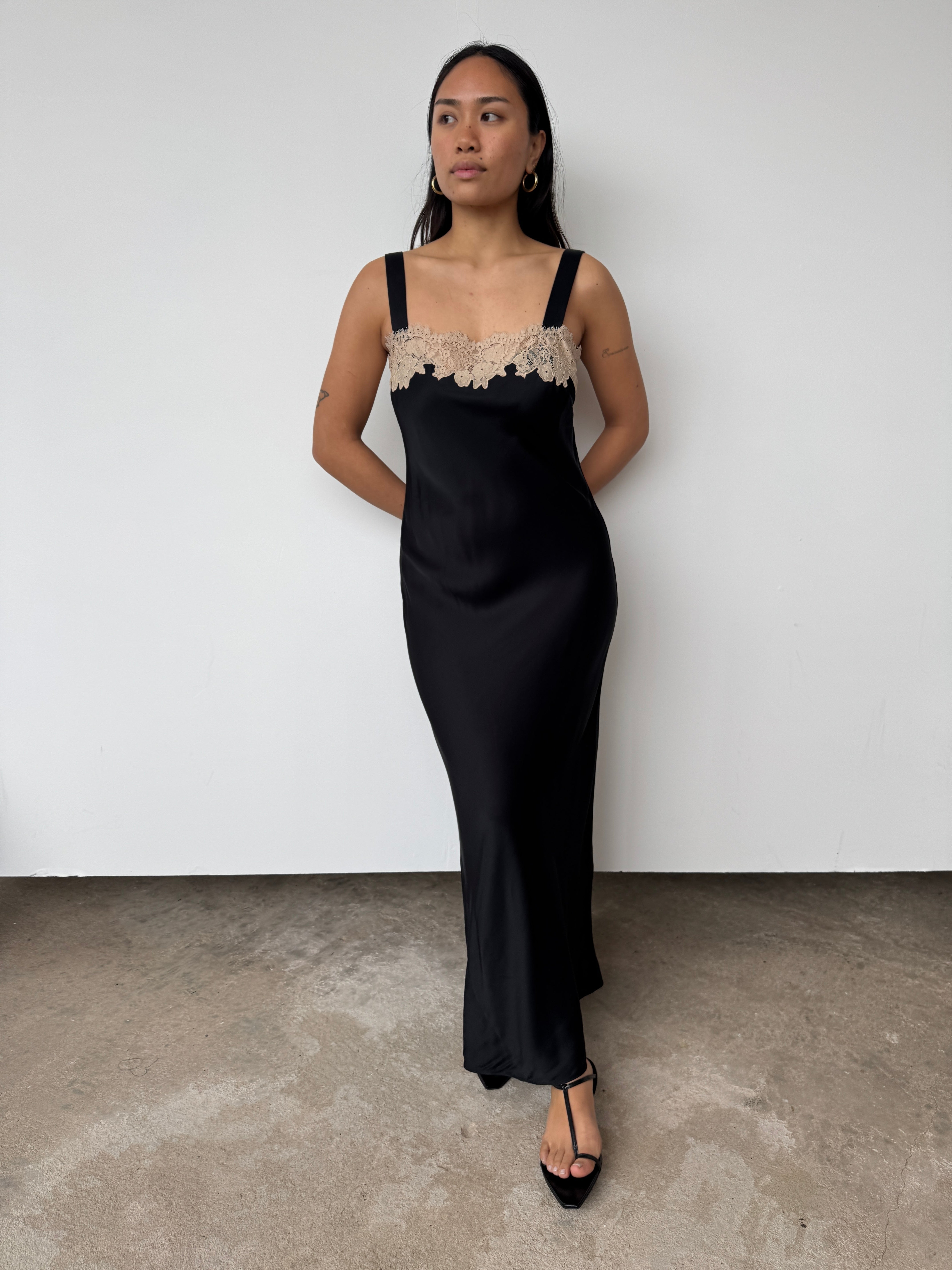 Rixo's 'Rosamarie' dress is "a timeless piece inspired by vintage slip dress styles. The delicate lace trim and silky satin fabric are 1920s-inspired and evoke an ethereal romanticism."