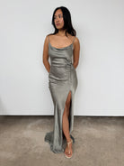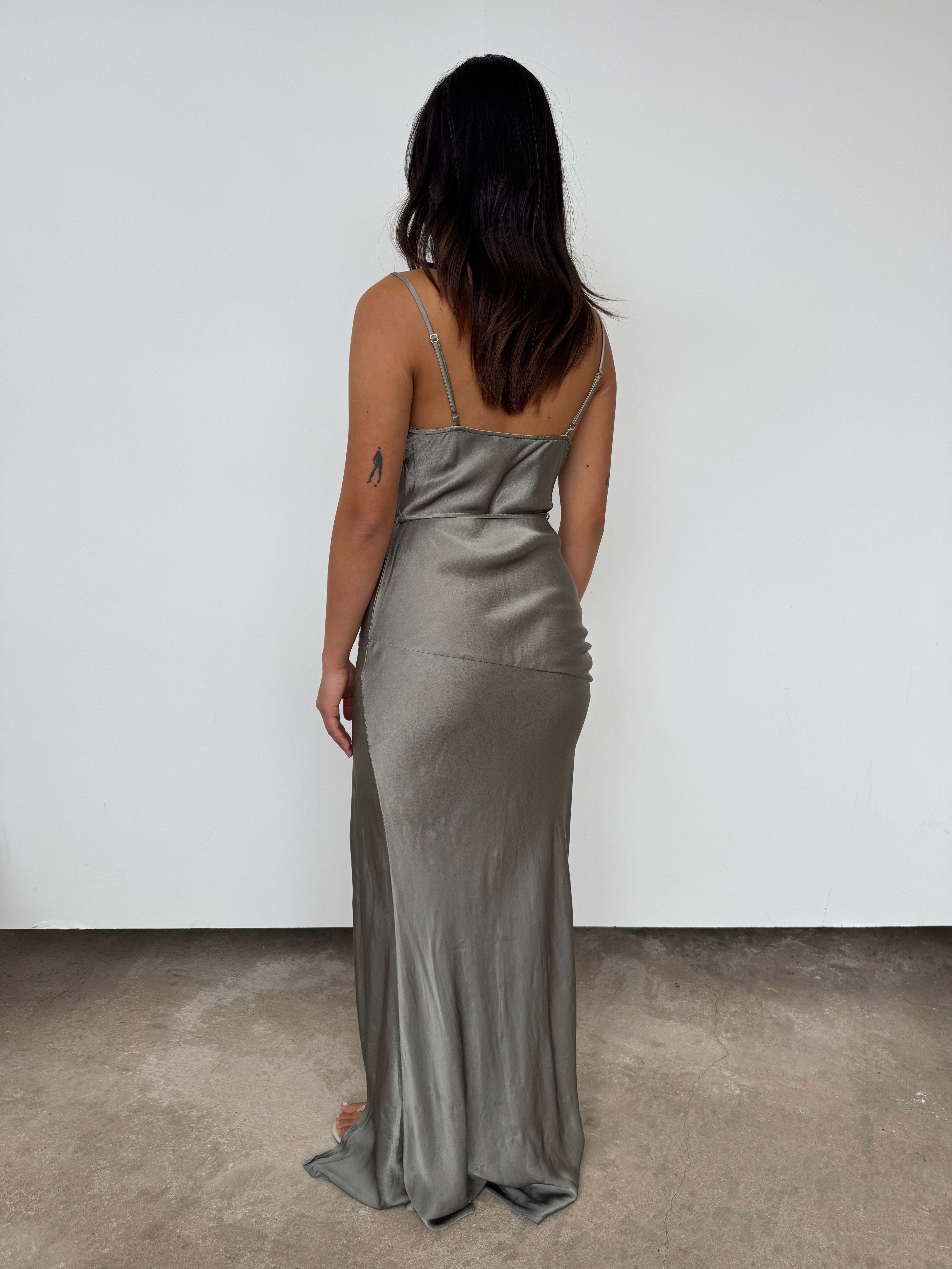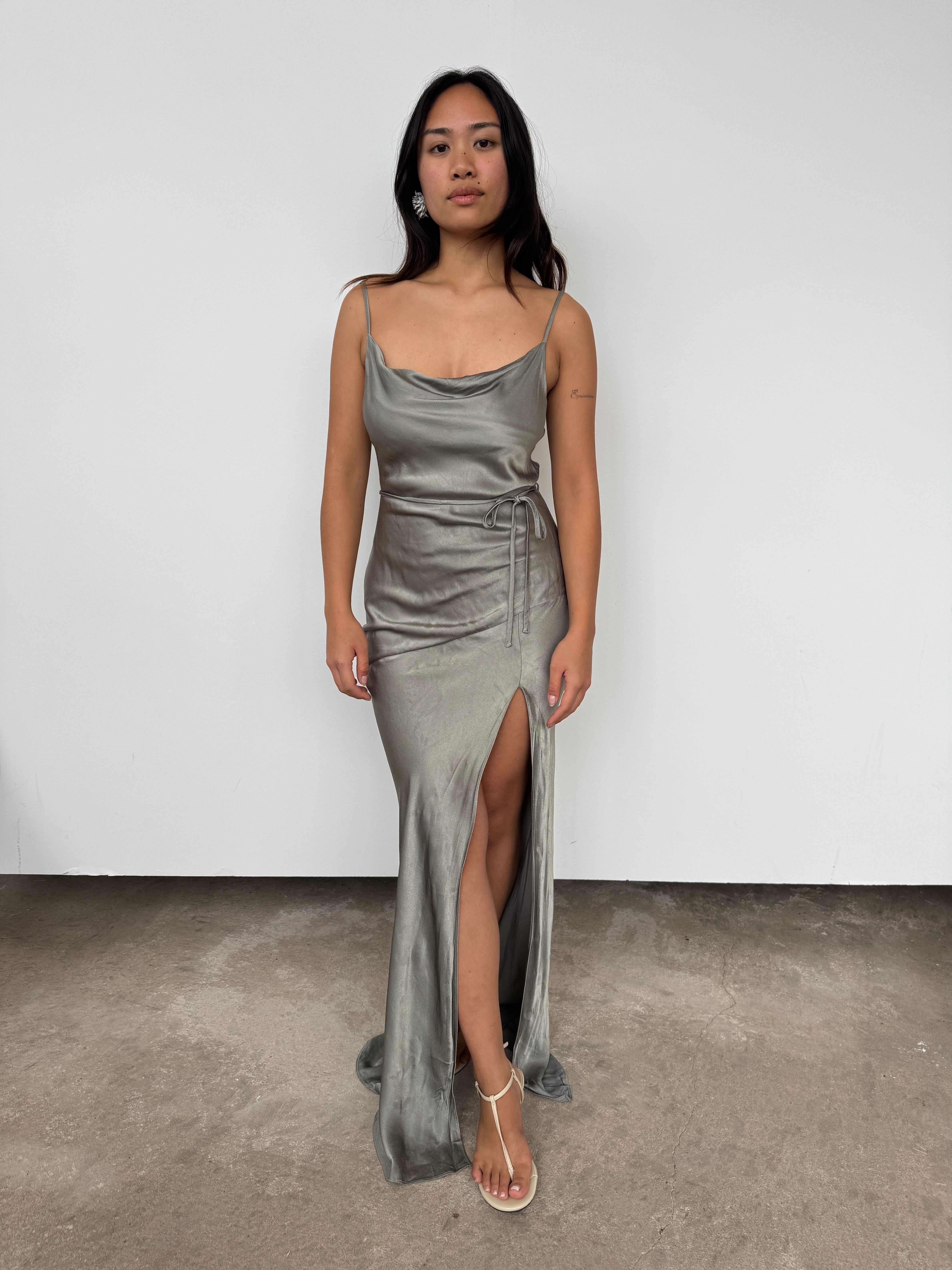 Shona Joy Taupe 'La Lune' Bias Cowl Midi Dress | UK6
