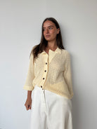 The Mari Cardigan from Skall Studio is a soft cotton knit in a relaxed fit. With a delicate pattern and collar details. Wear over a dress or pair with denim.