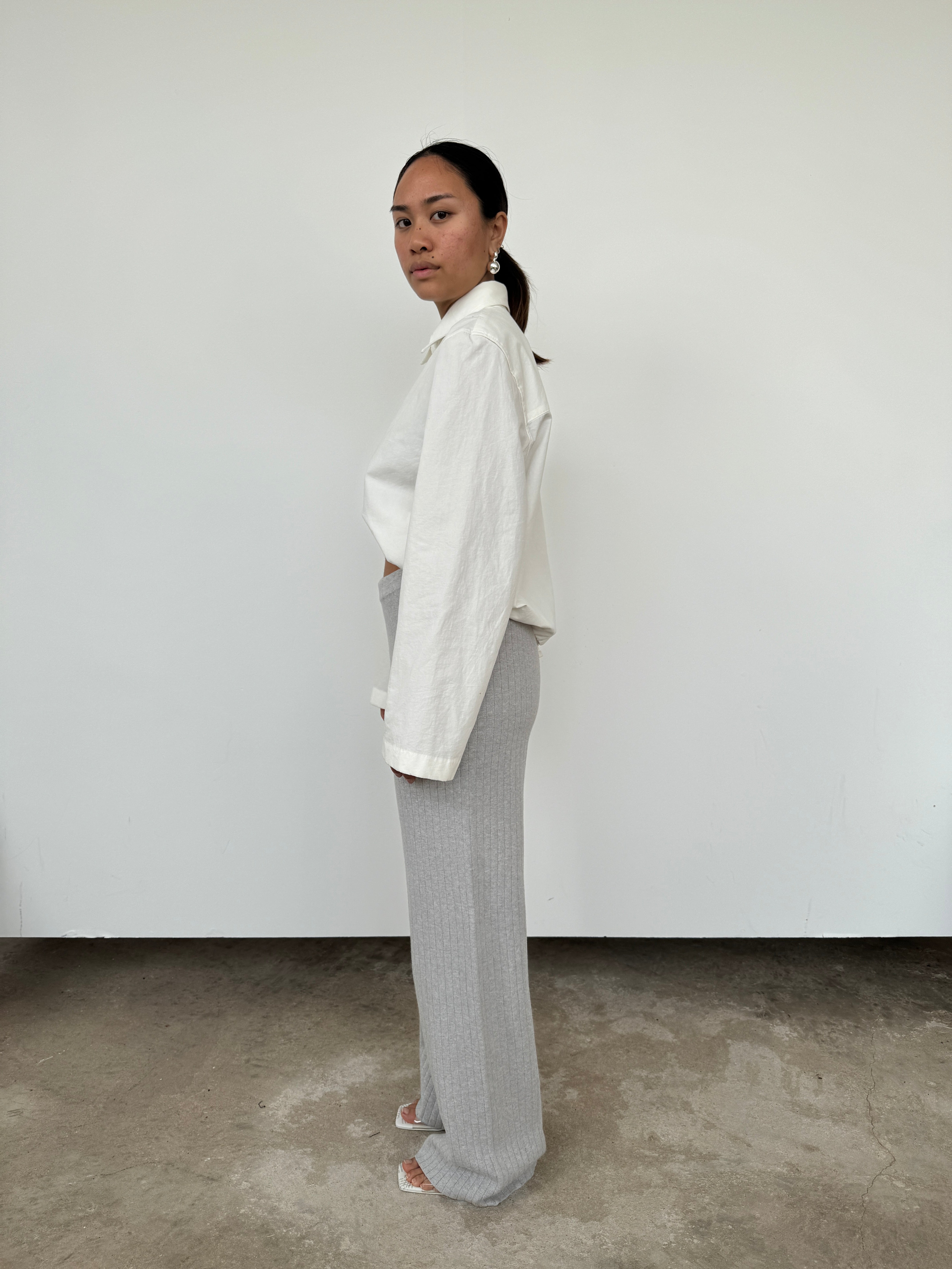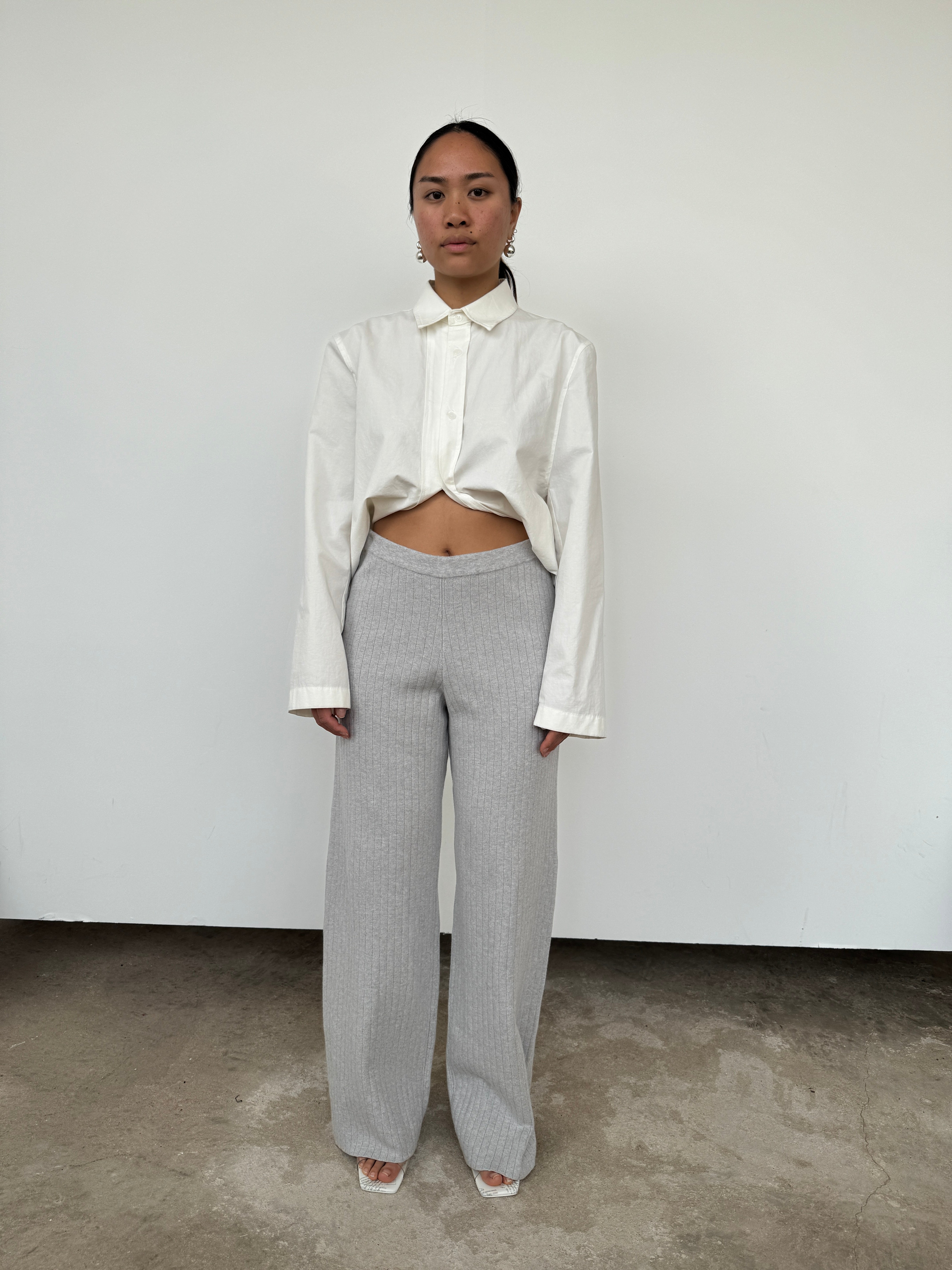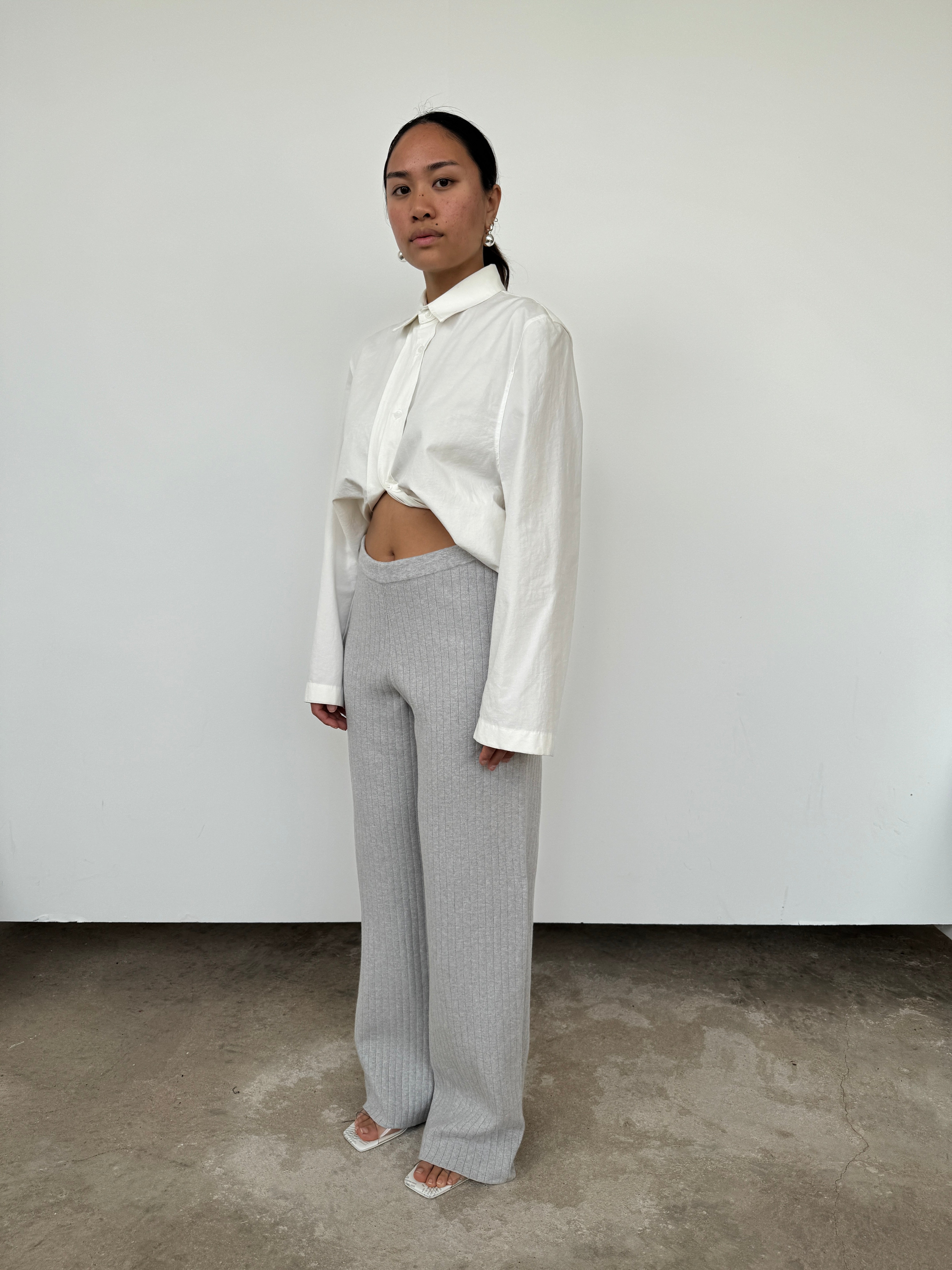 "Skin's 'Milan' pants are the kind you pull on without a second thought. They're made from sumptuous ribbed organic cotton and cashmere-blend and have a slouchy shape."