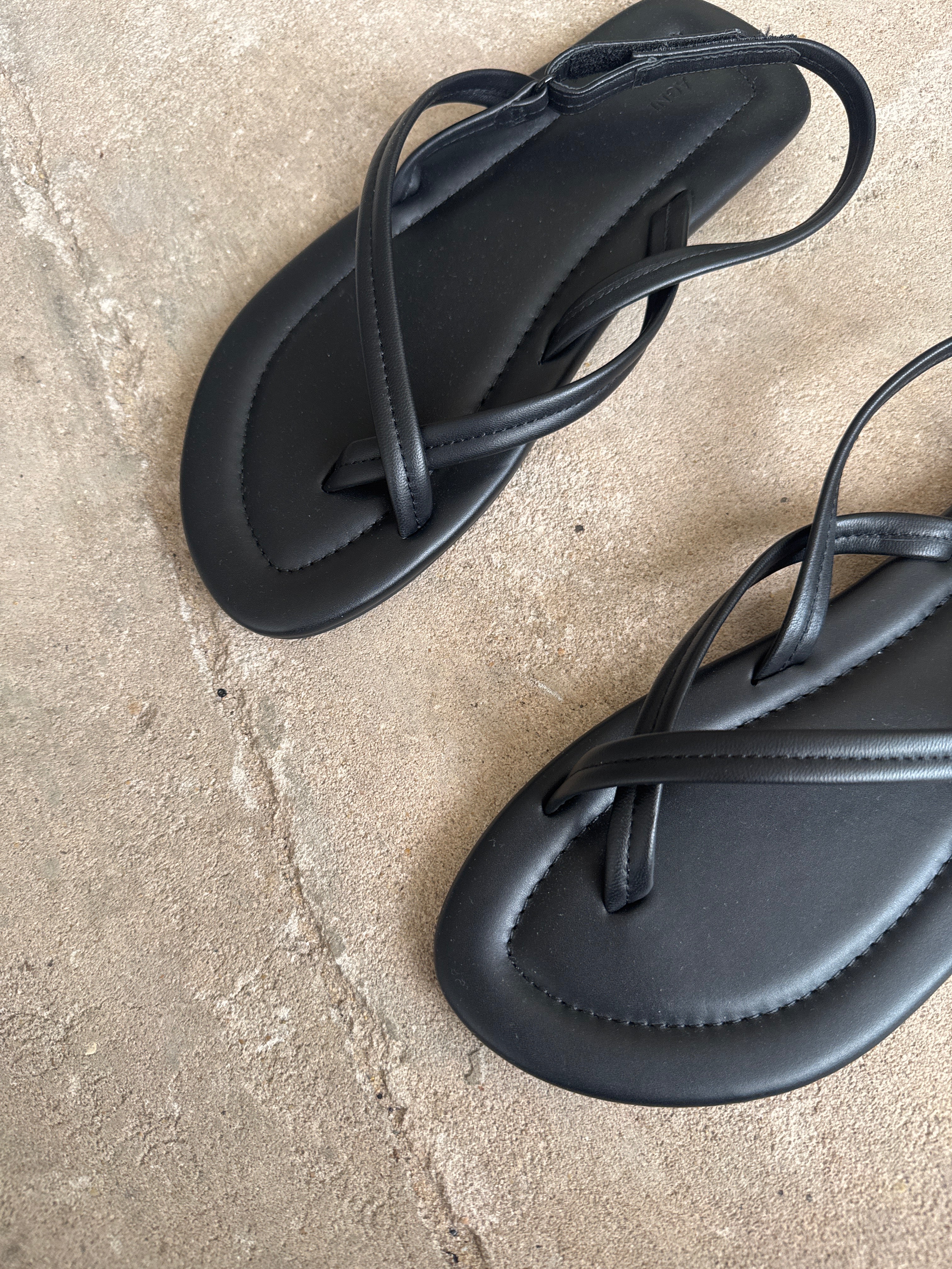 - Sling back flat, adjustable back strap, leather straps with stitch detail, soft padded insole