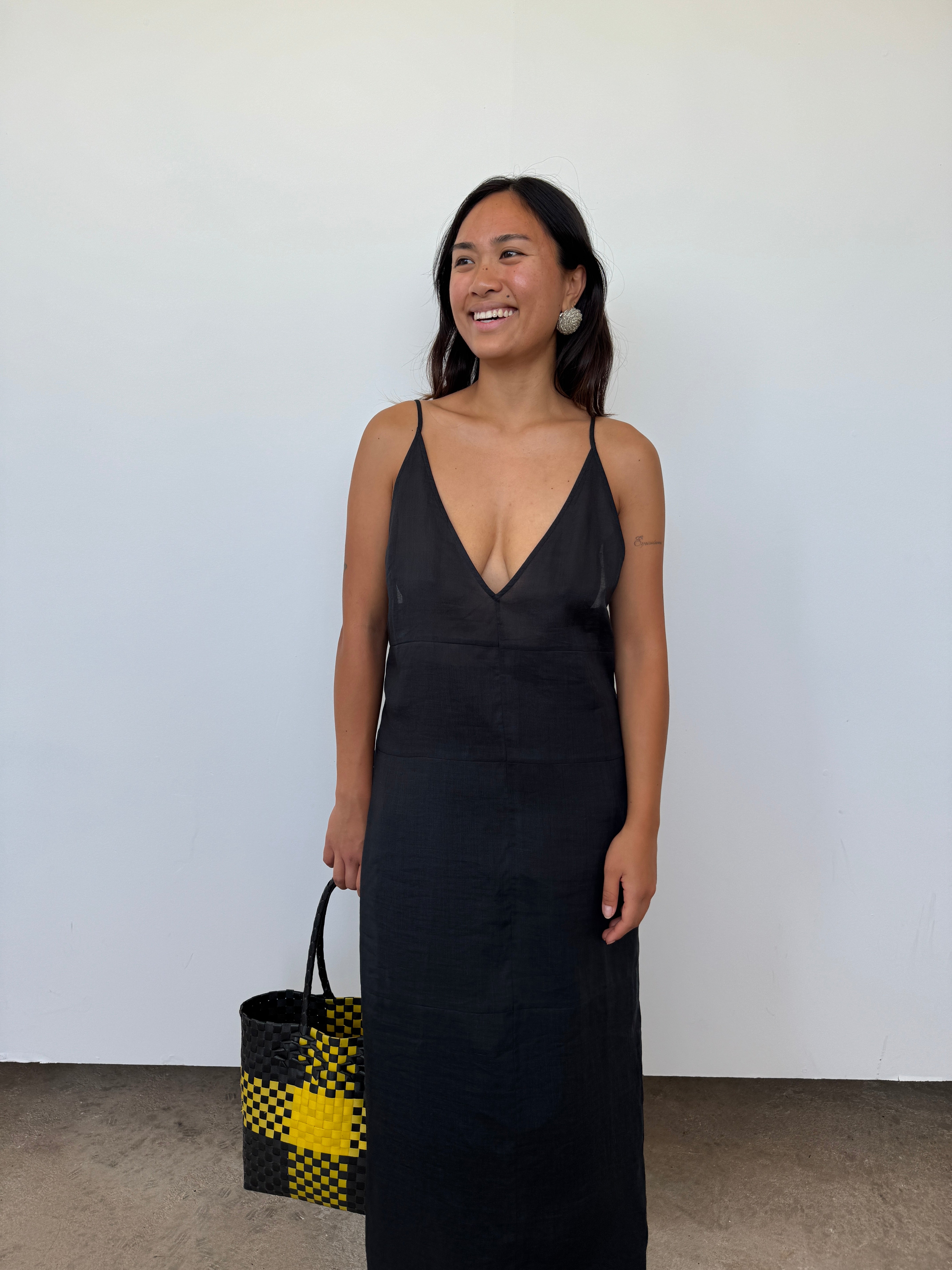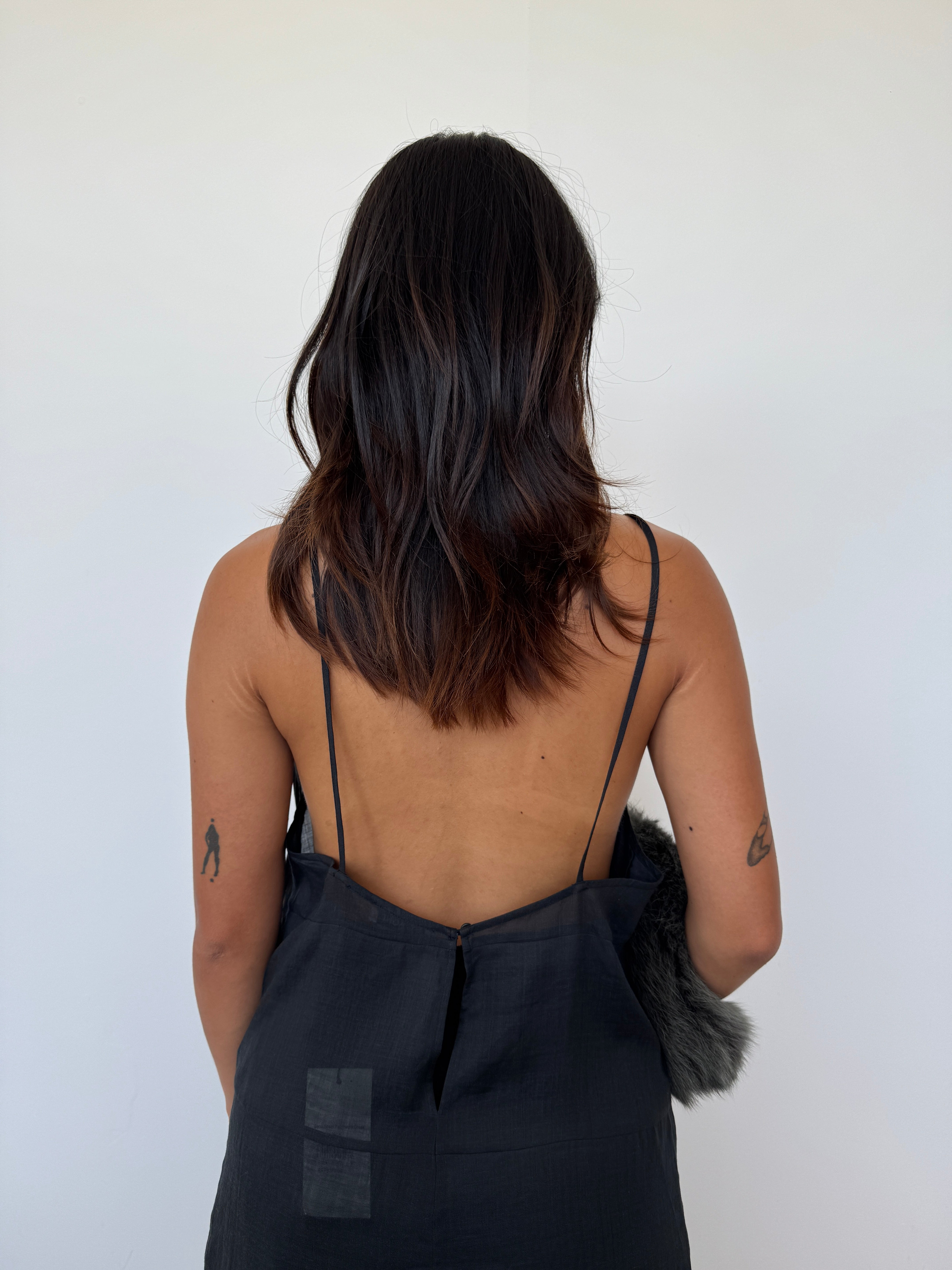 Tise Semi Sheer Patchwork Dress is crafted with a scoop neck, side tie detail, back keyhole closure and patchwork seam detailing. Layer it with your favourite minimalist accents or wear it alone for a high-rotation staple piece.
