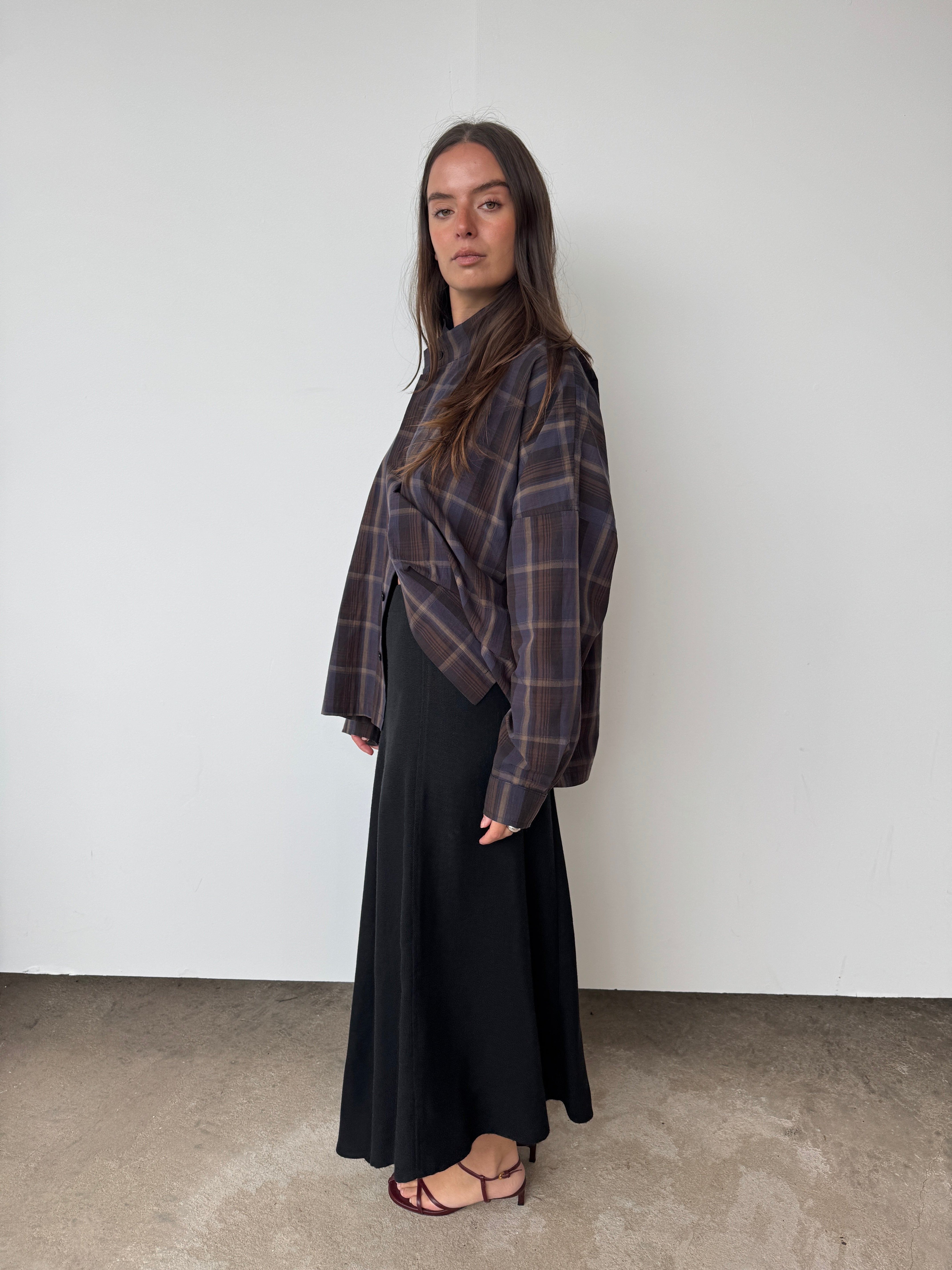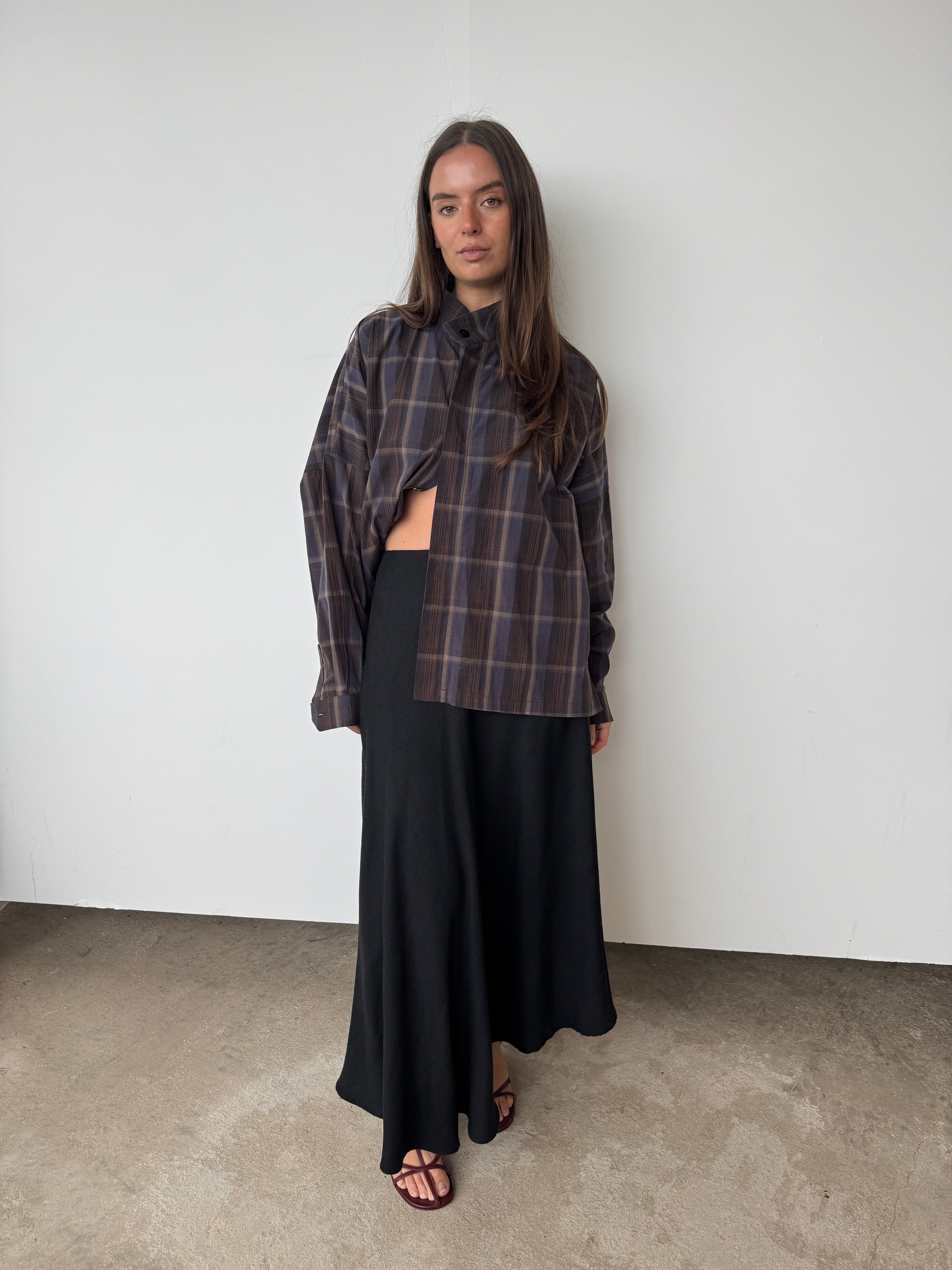 The Hirta skirt is cut from a fluid woven fabric that has a pleasing drape – a quality that's heightened by the asymmetric hem that falls softly on one side.