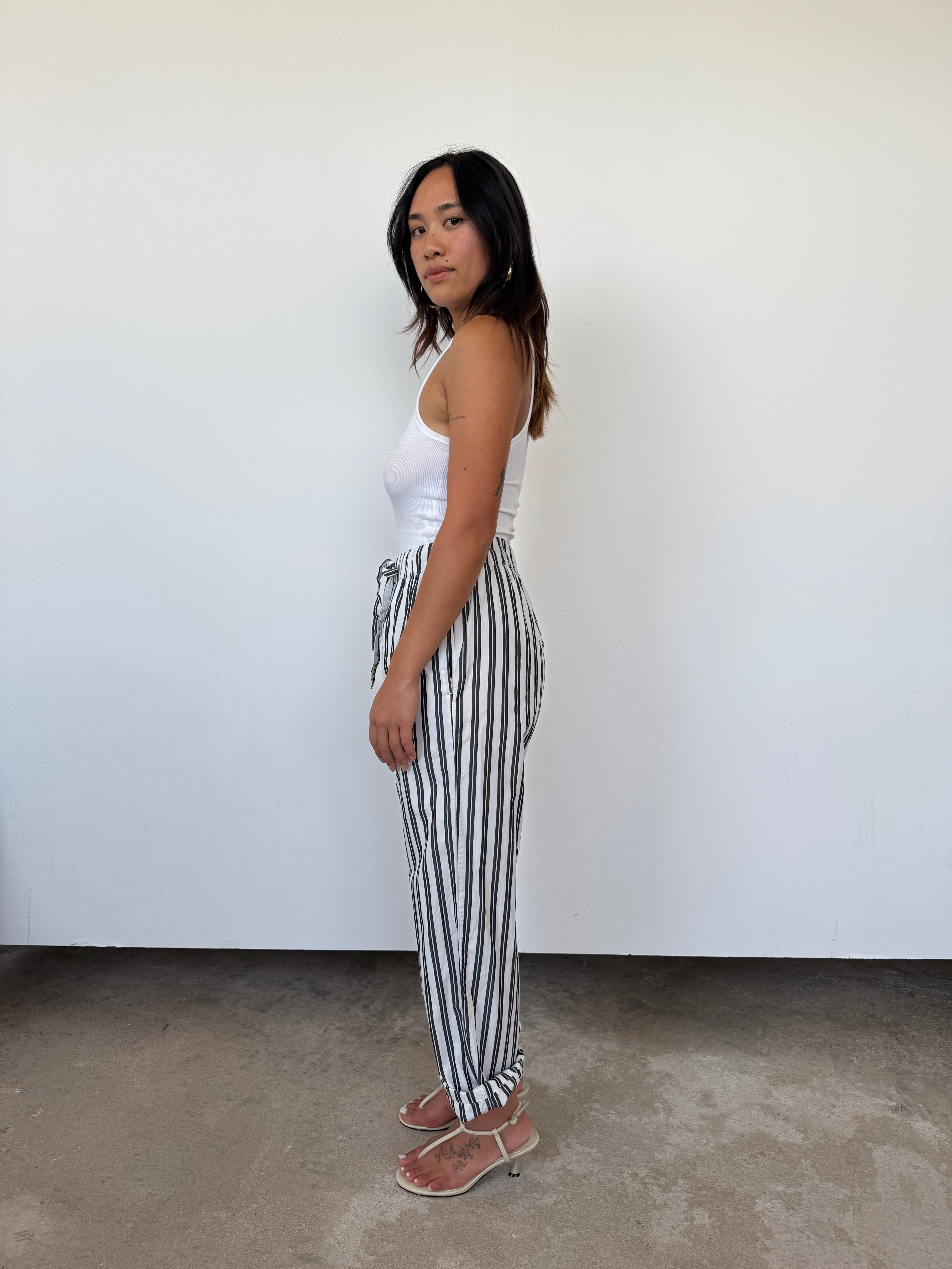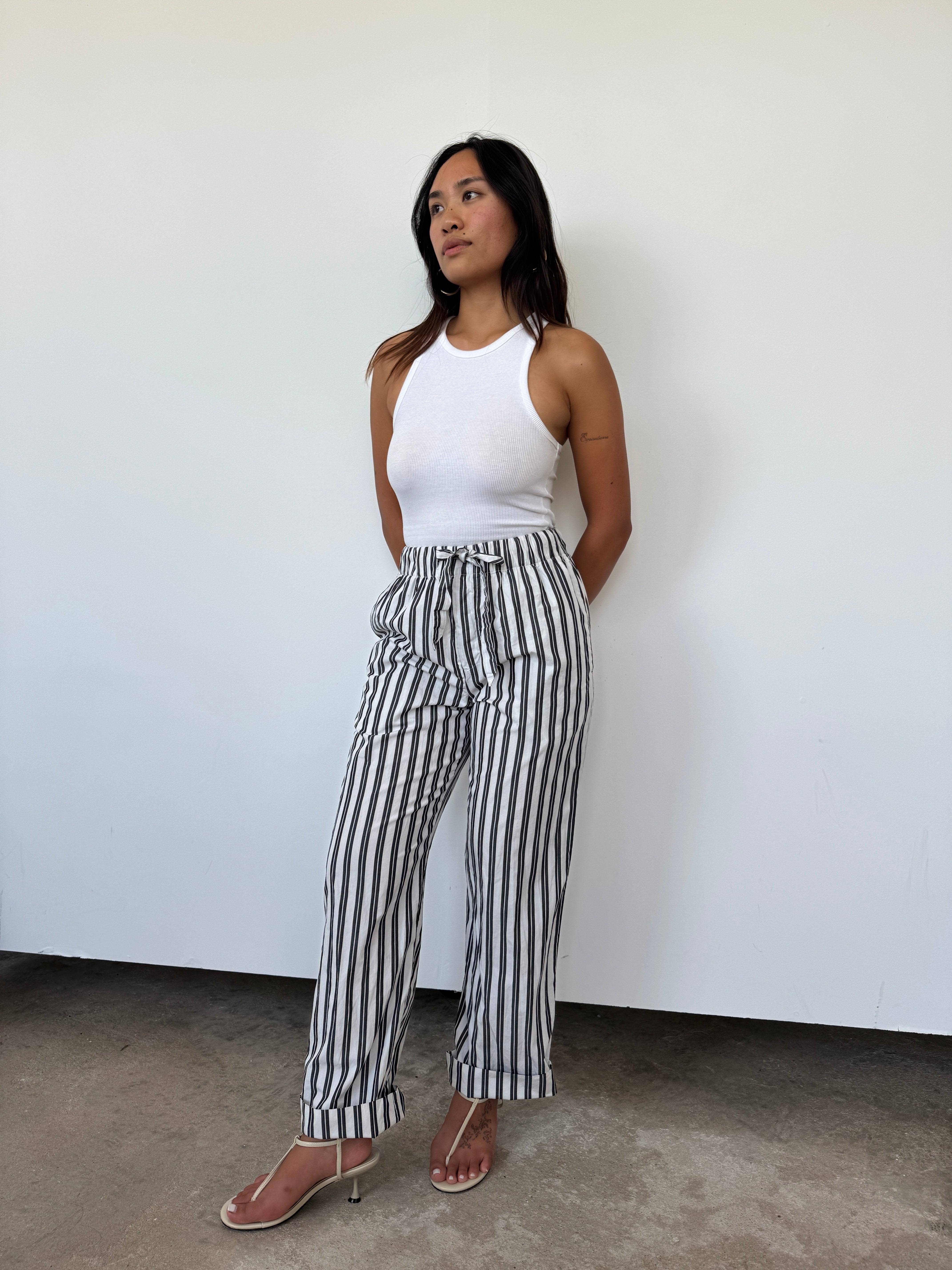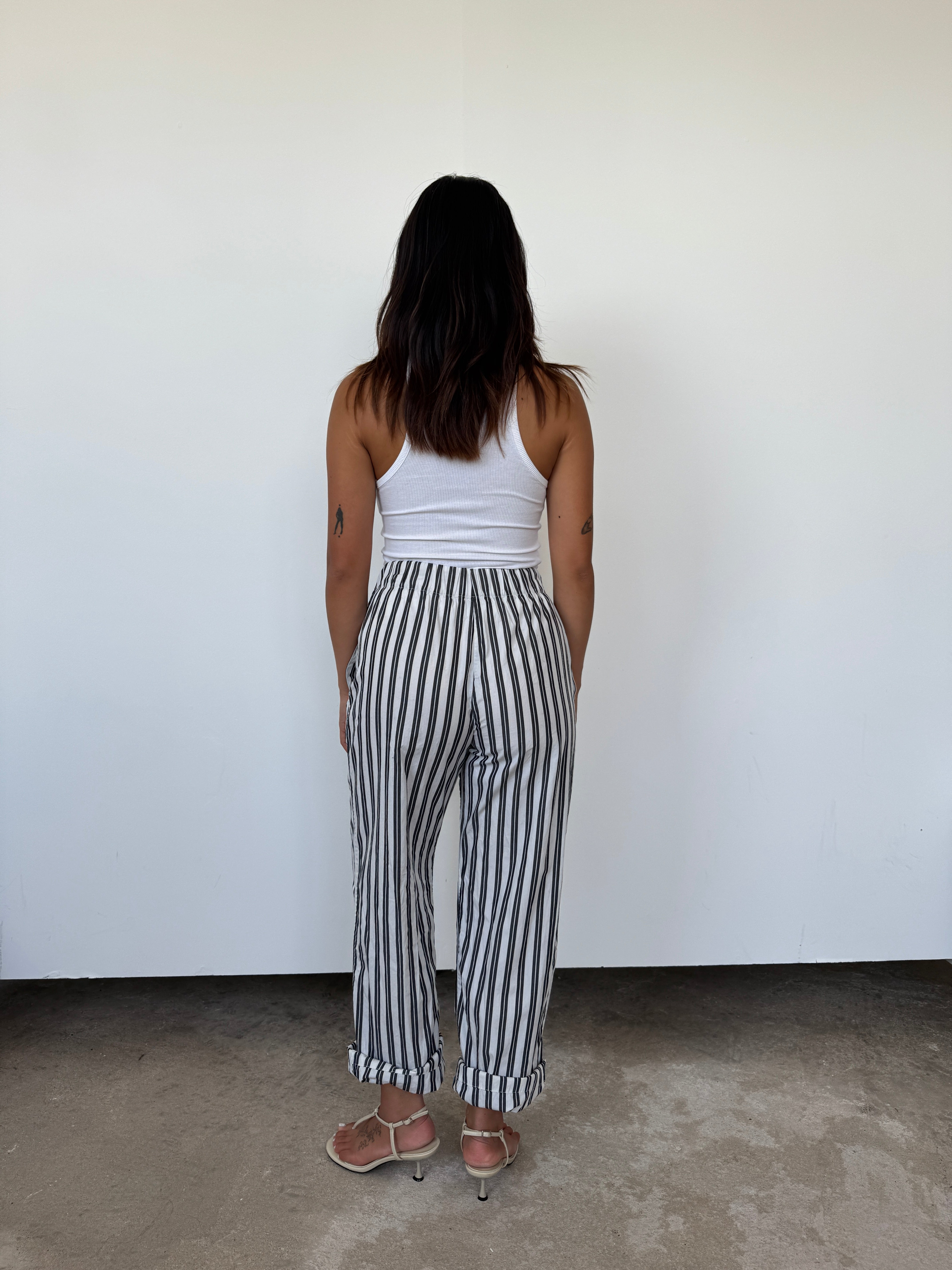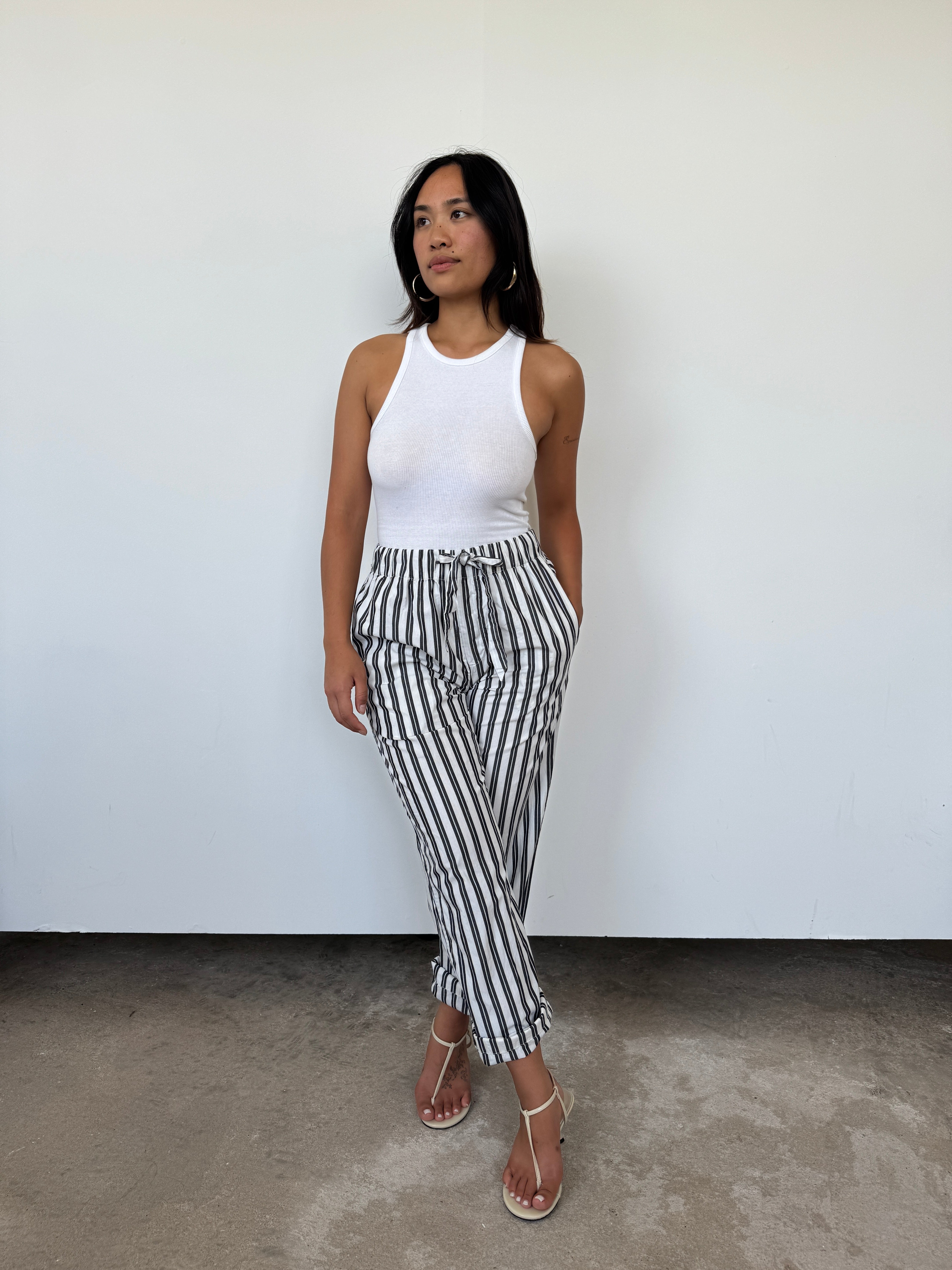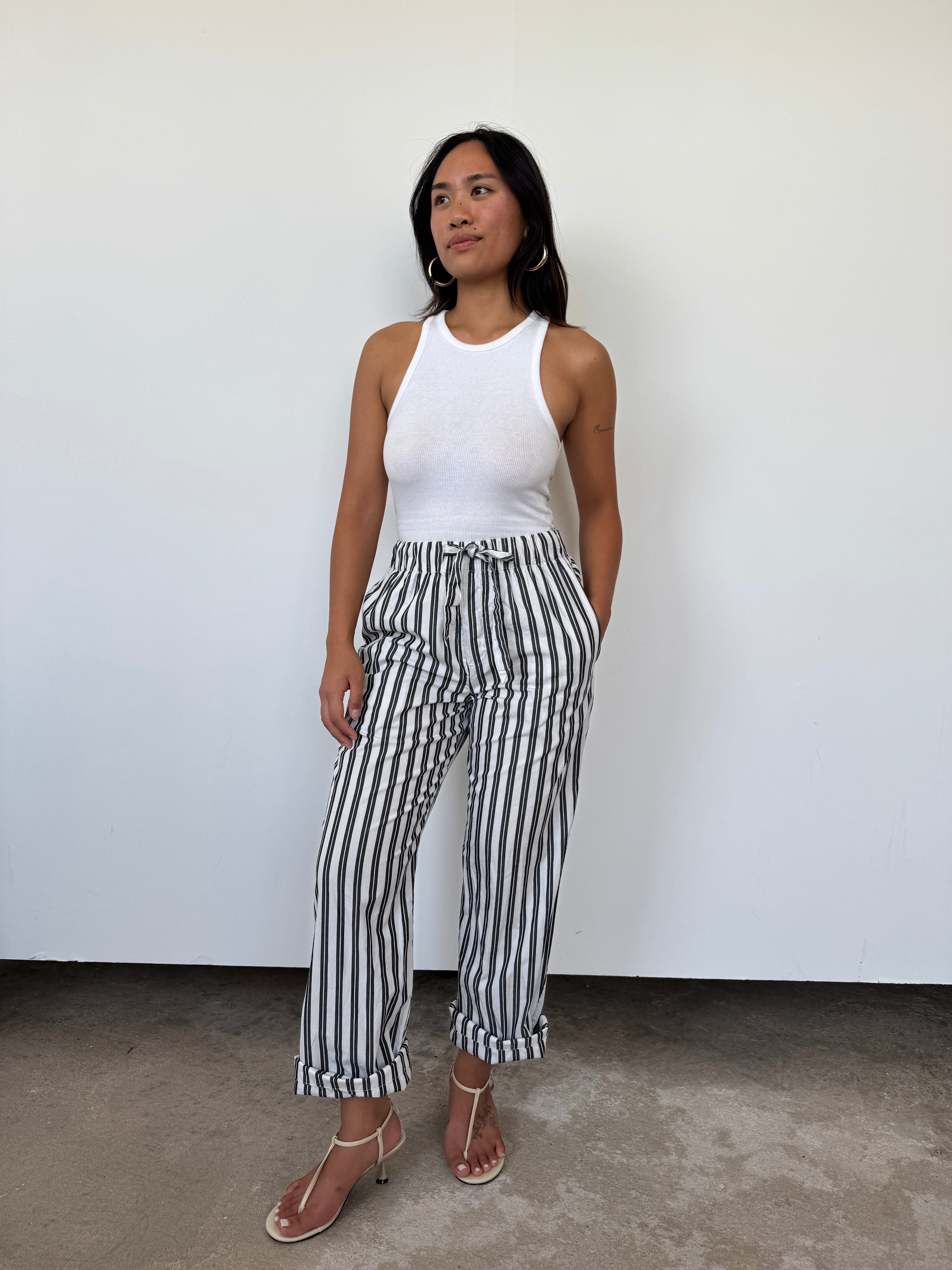 Tekla Charcoal + White Stripe Poplin Trousers | S