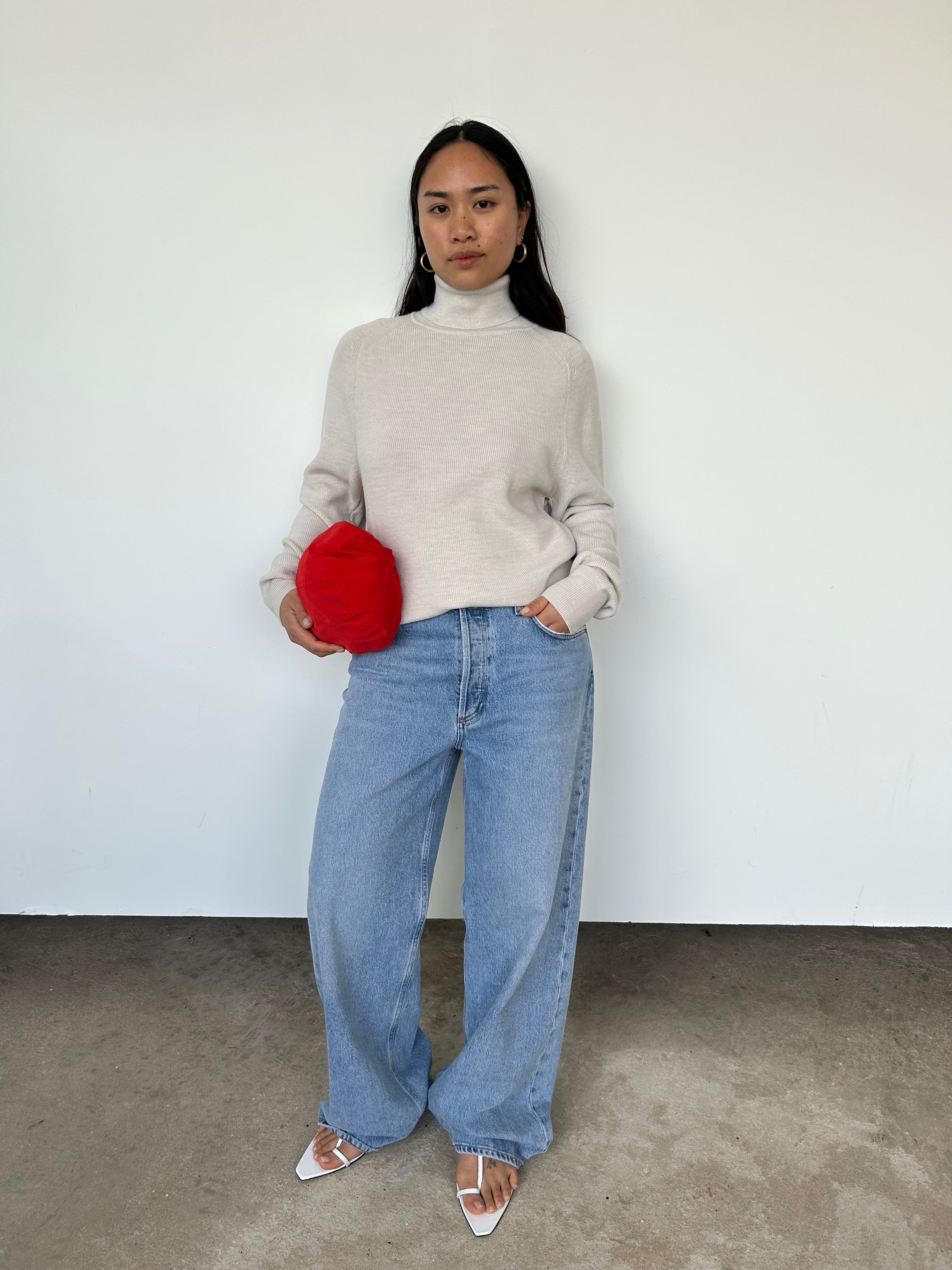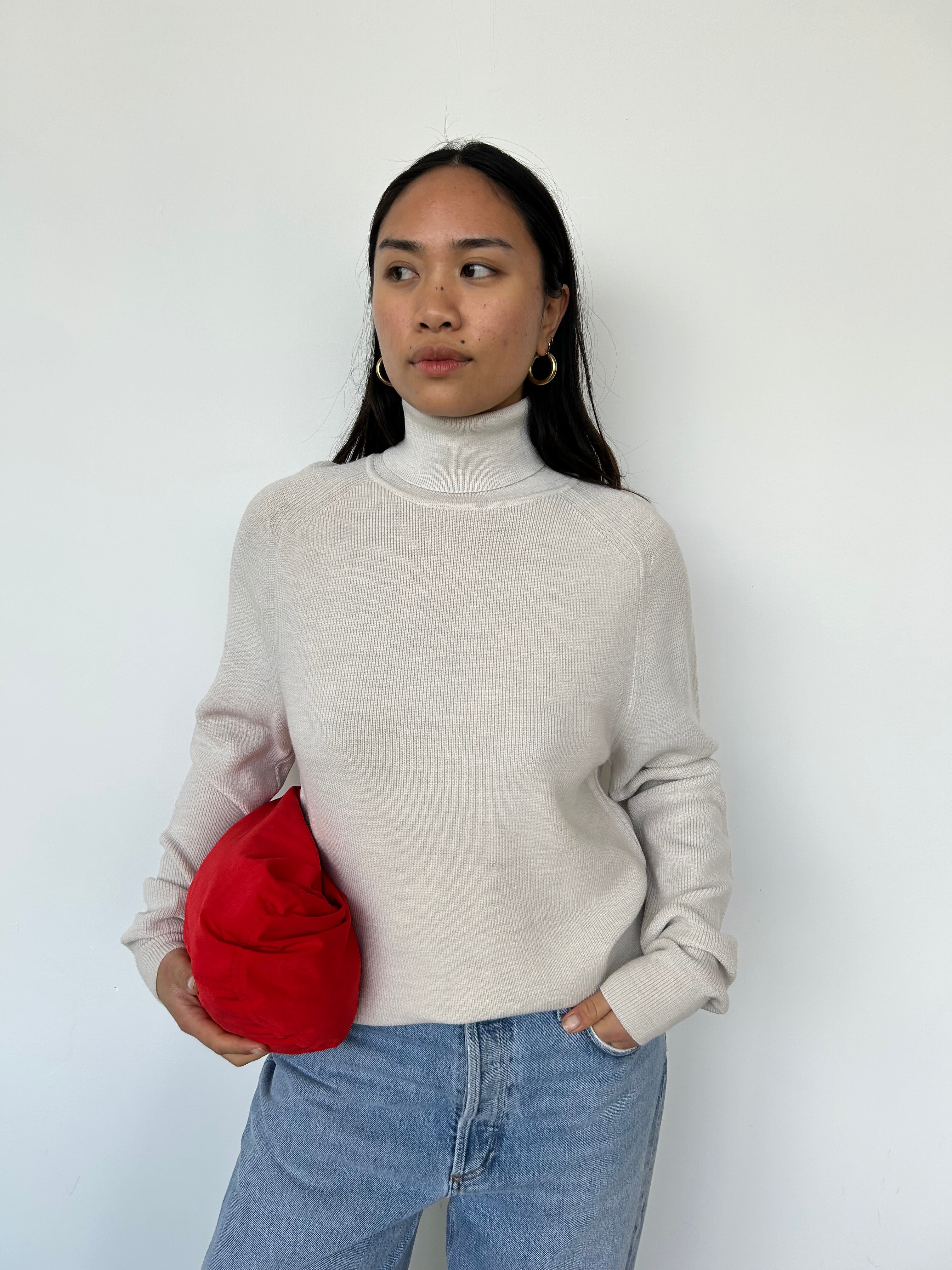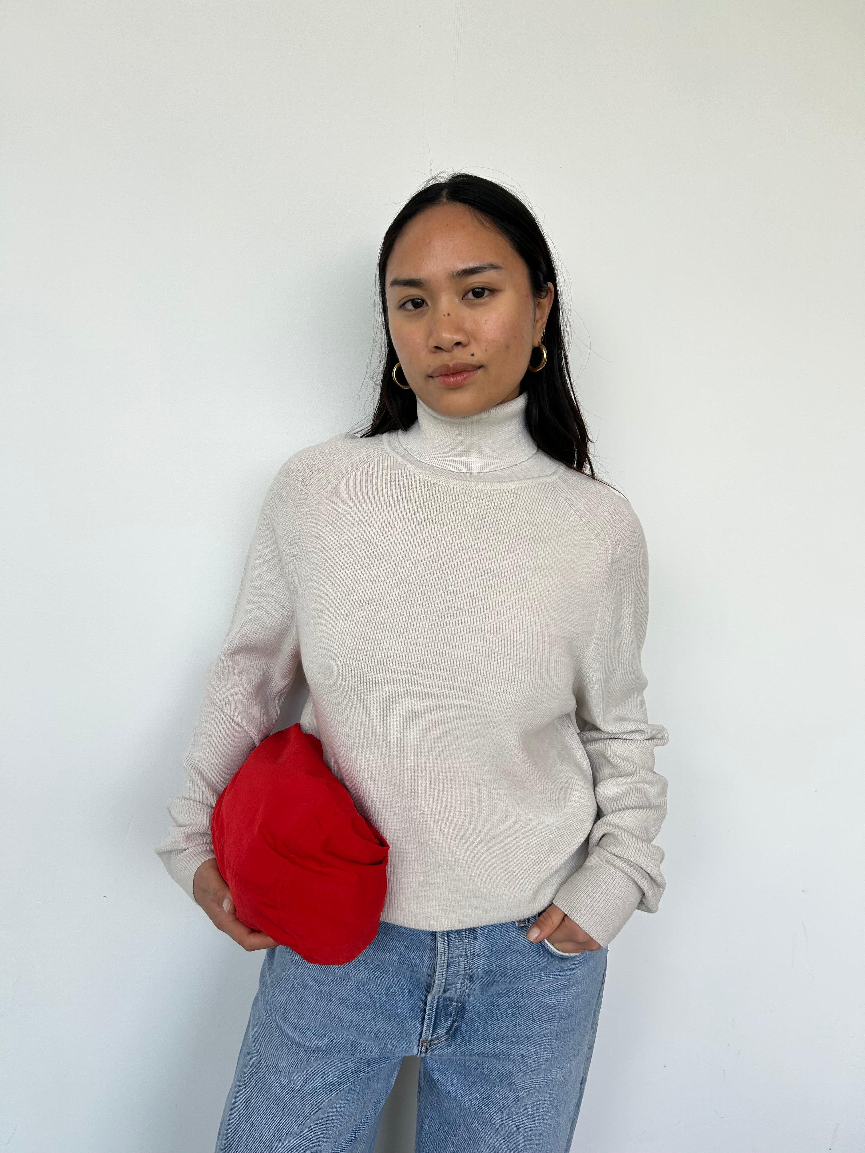 "The Merino Turtleneck feels as good as it looks. Crafted from non-mulesed Italian yarns, this smooth 100% merino knit is machine washable, will hold its shape and will keep its neat look. Please note that this is a unisex sweater so it fits slightly oversized for women. We recommend to take one size smaller if you like a more fitted style."