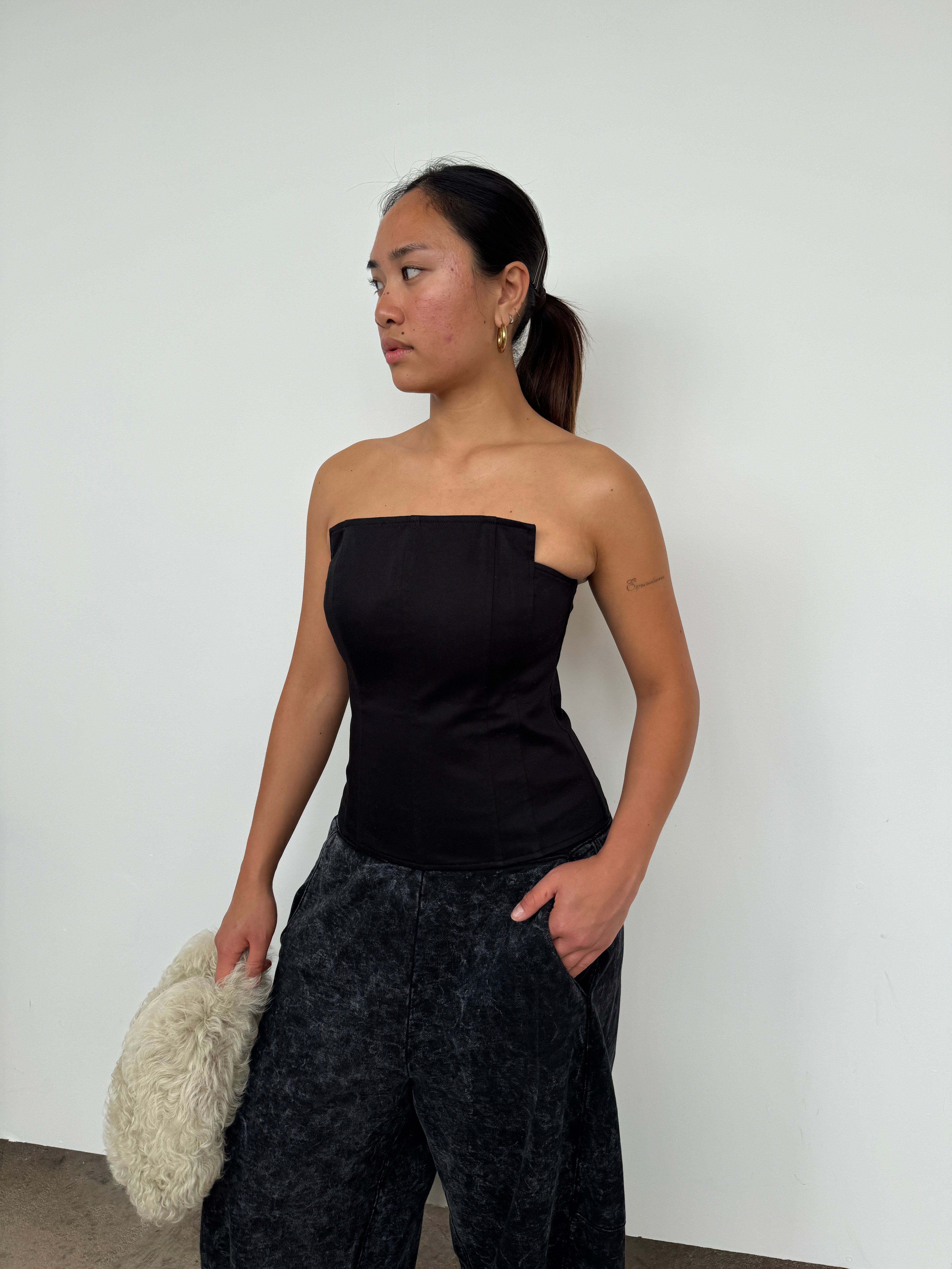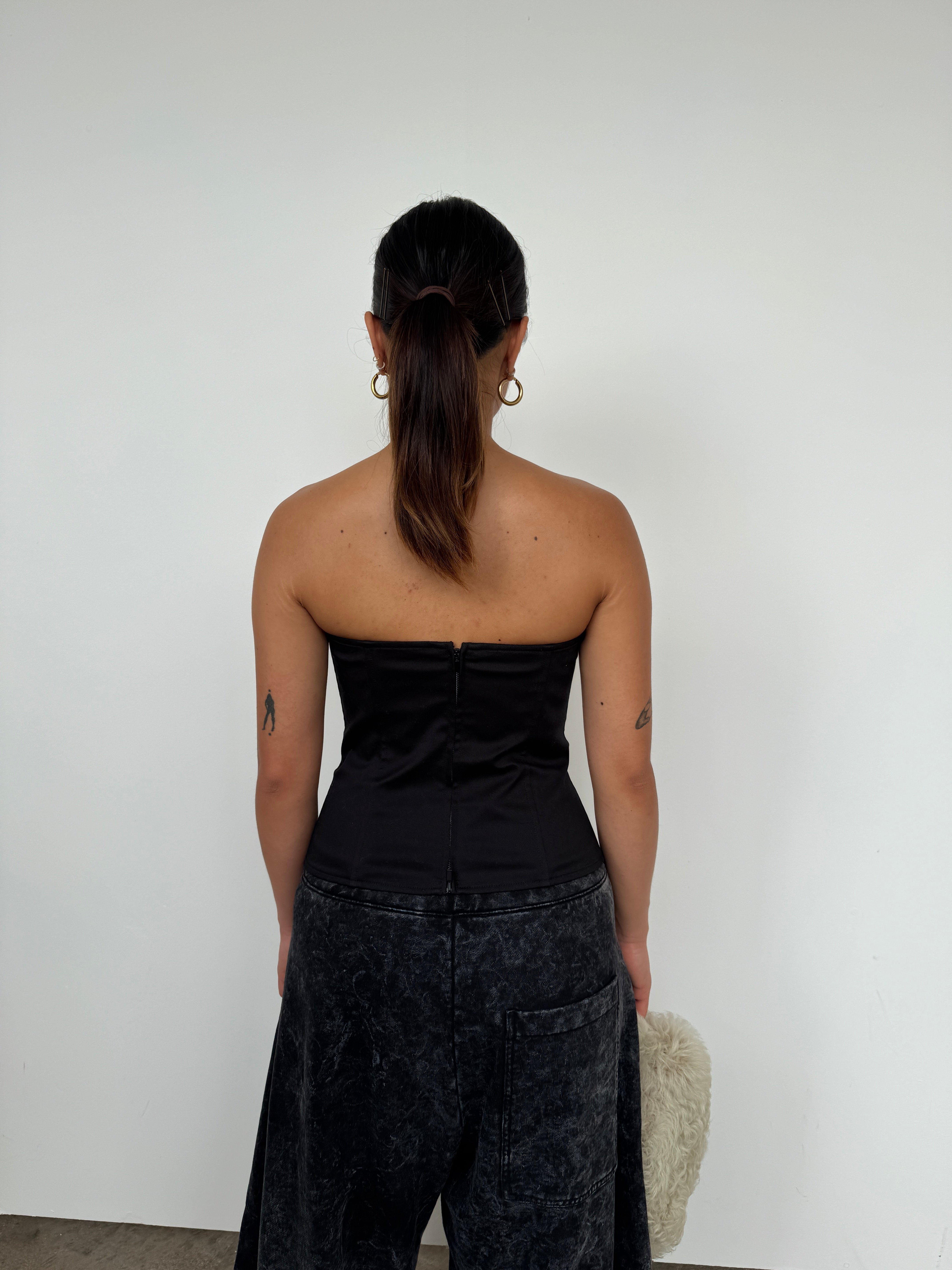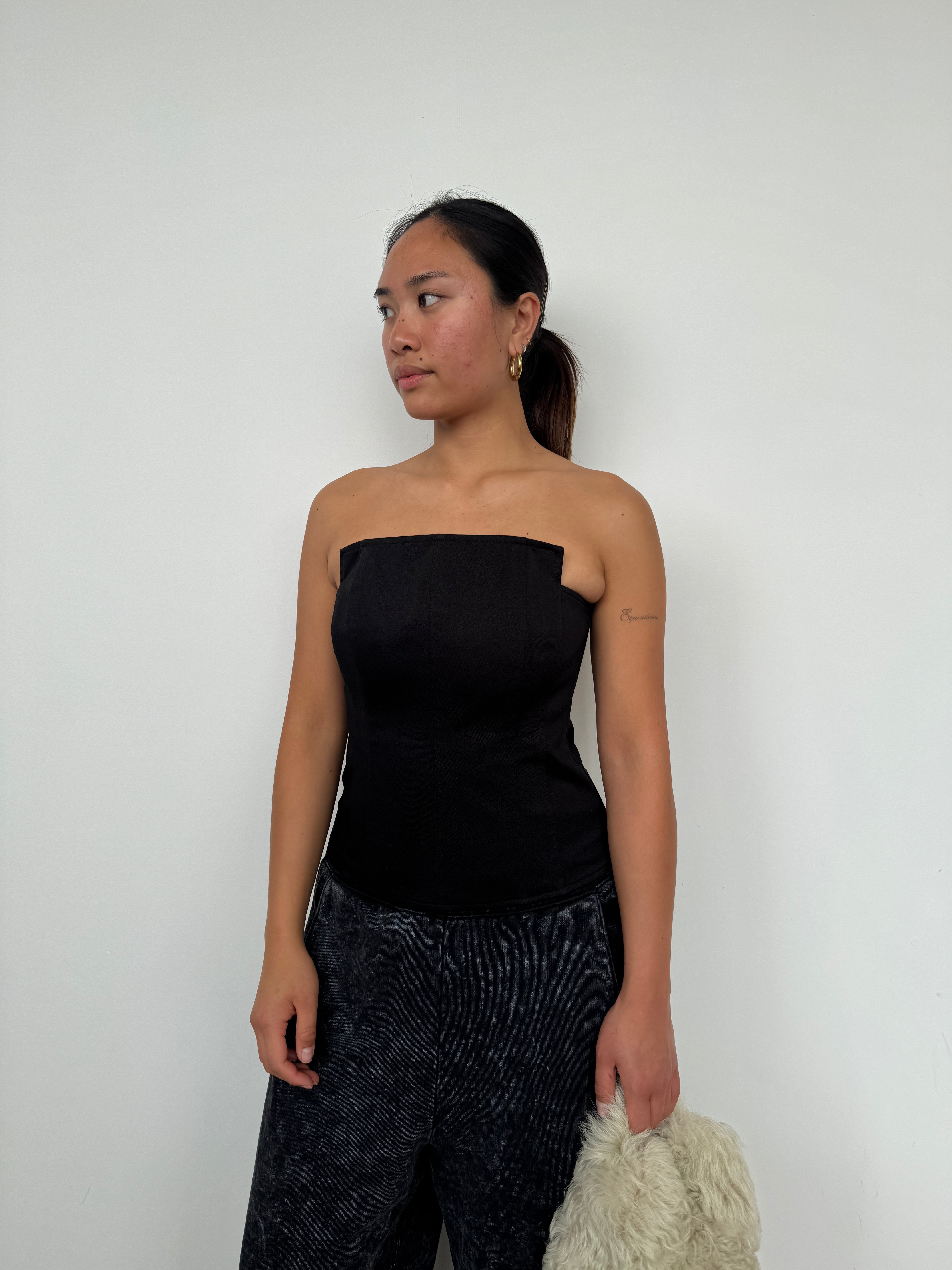 Tibi Black Cotton Bandeau Top | UK8/10